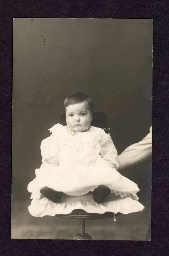 Photograph on postcard of Clarence Glen Ingram, on the back: "Clarence Glen Ingram born August 6th 1910, picture taken May 13th, 1911 to Mr & Mrs Fred Hyland Portland, Oregon."