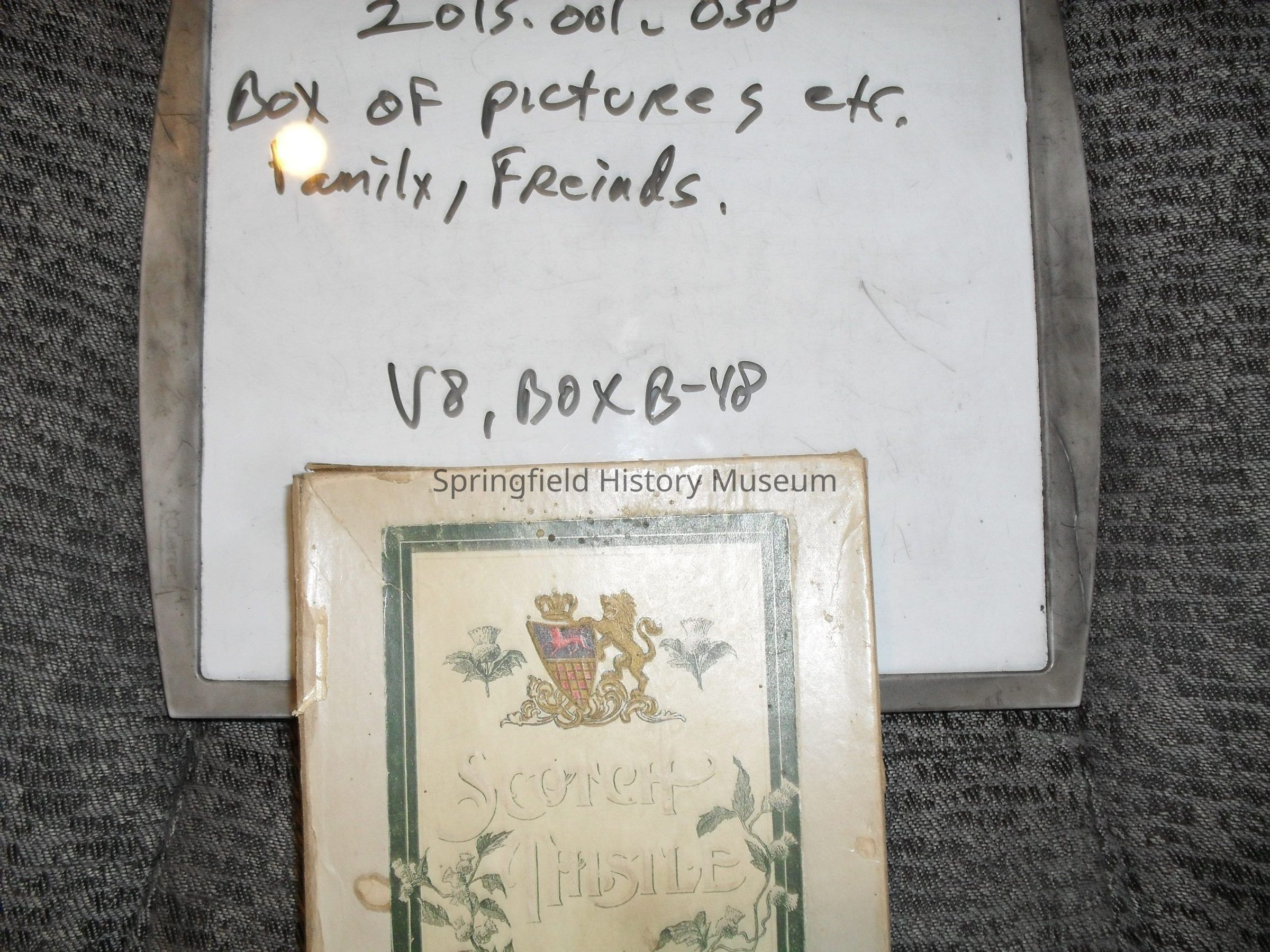 Photograph from 2015.001.078 - 2015.001.109 is from a box of photos: box is 5.5"x7.5" with "Scotch Thistle" printed on the front, filled with photographs of the Hyland and Christie families, box is not with photo records and the accession number is not 2005.001.058Collection