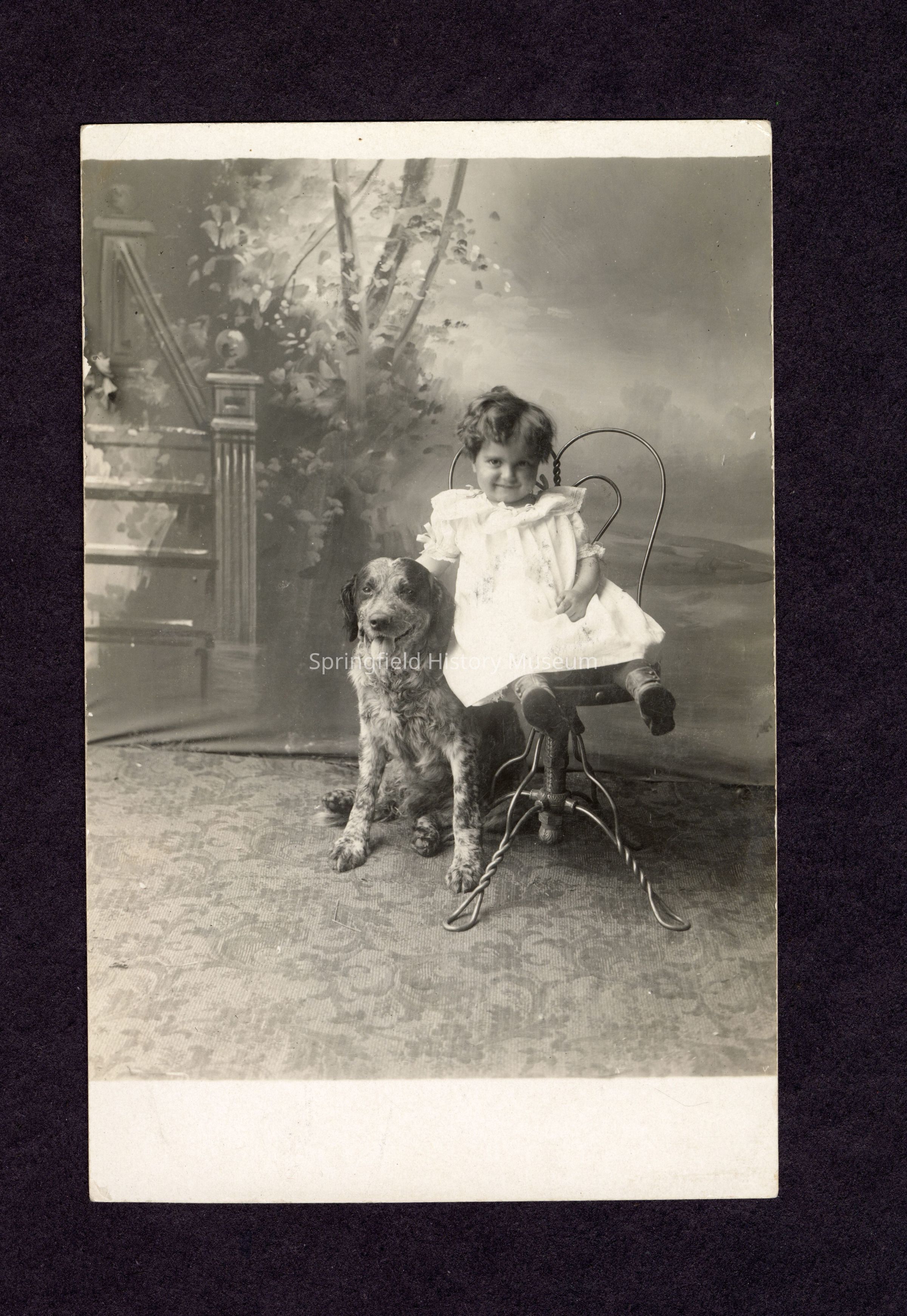 Postcard photograph of Clarence Glen Ingram, with dog Scotch Thistle, 1911Entry/Object ID