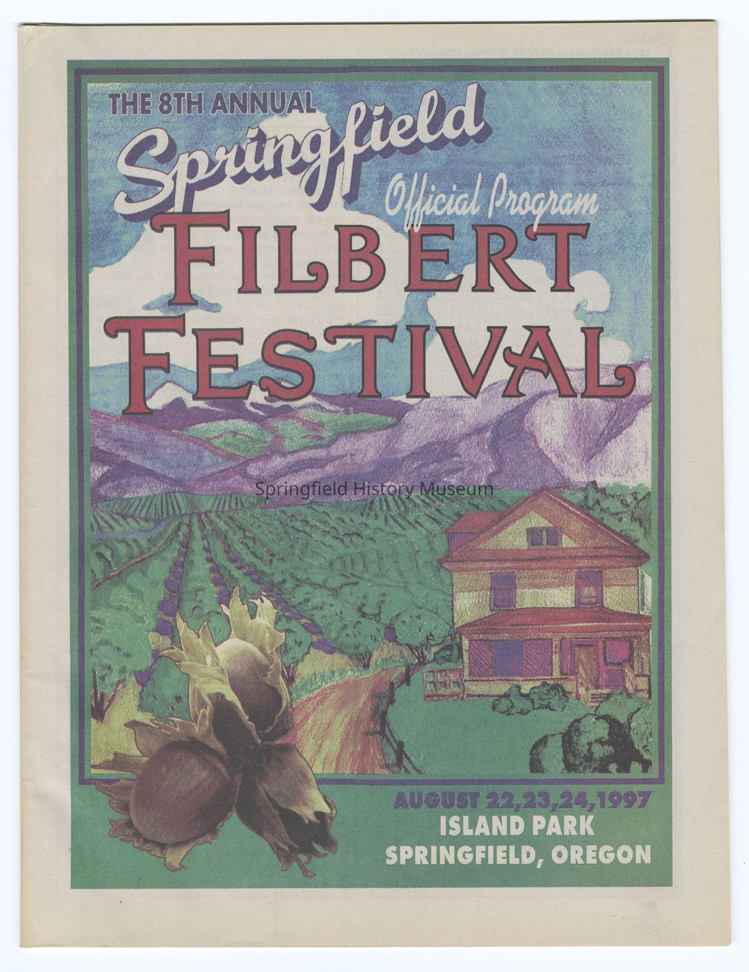 Program brochures of the Springfield Filbert Festival 1995 (5th Annual), 1996 (6th Annual), 1997 (7th Annual), 1998 (8th Annual). Contains festival information, and information about other Springfield events and news.Context