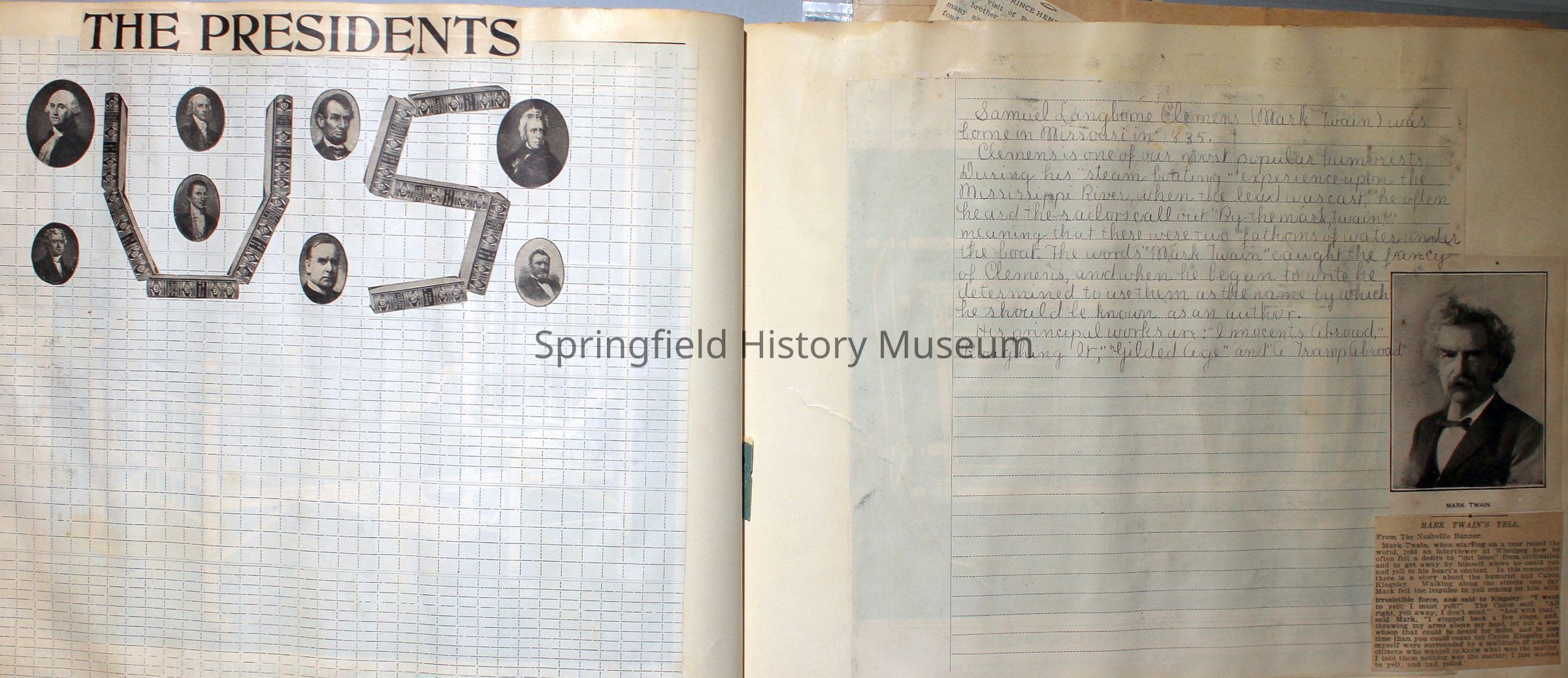 Scrapbook by Grace Eccleston containing clippings and notes, circa 1900Entry/Object ID
