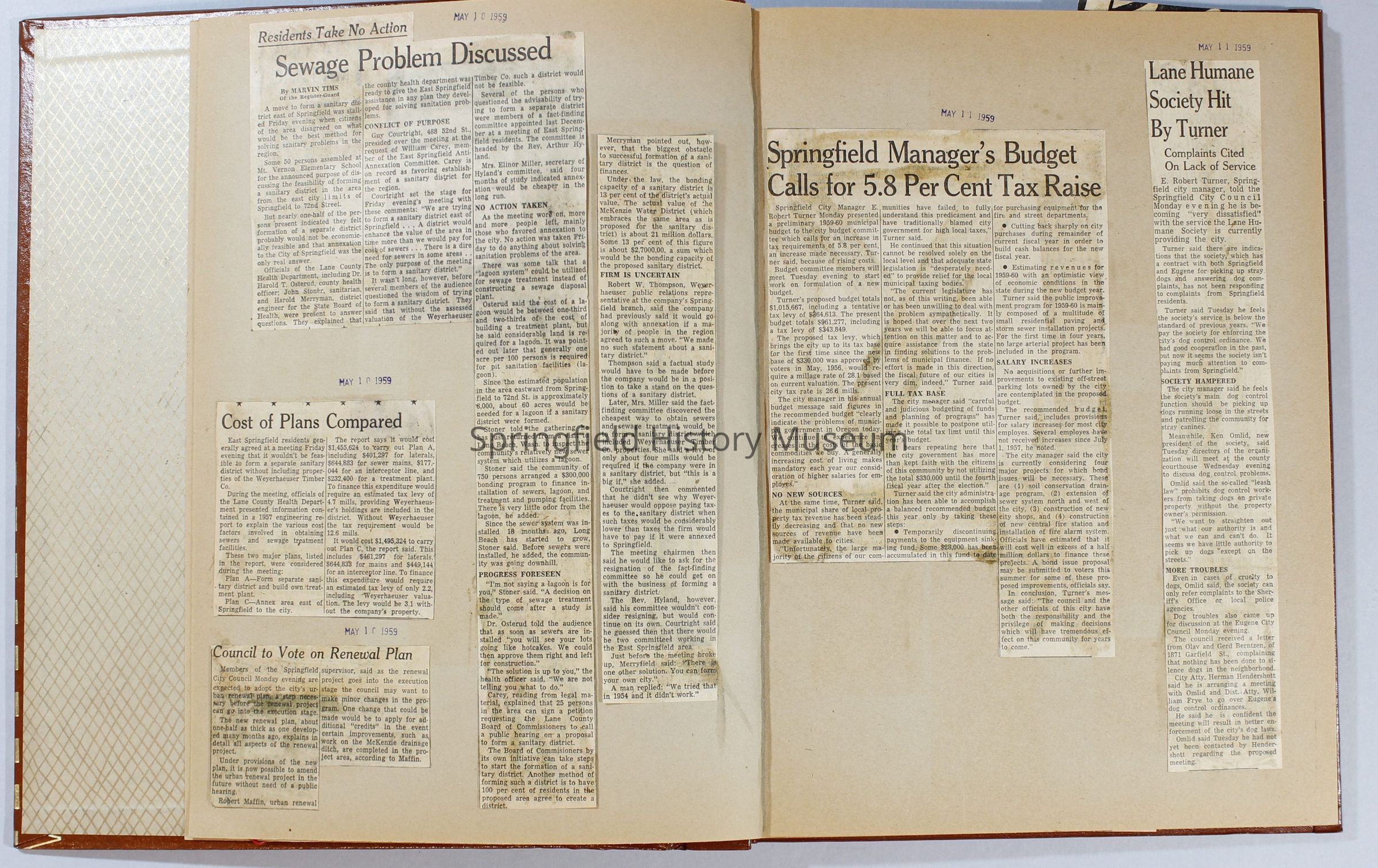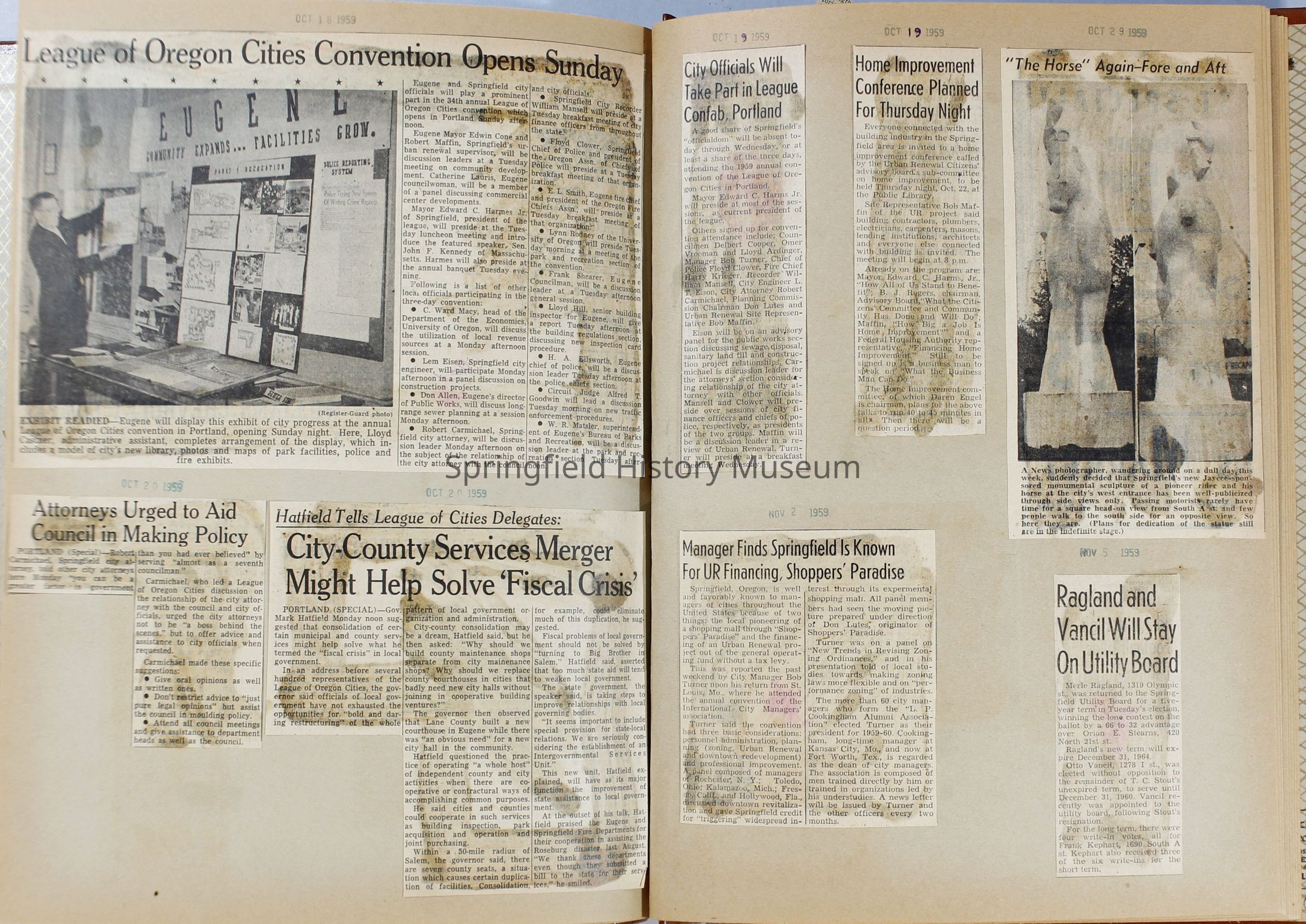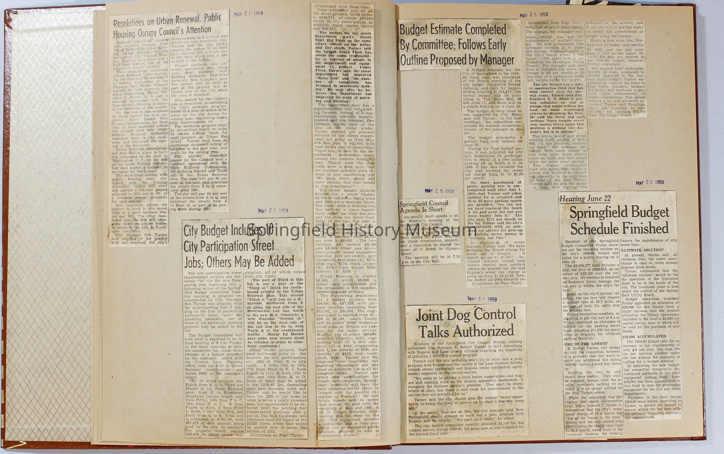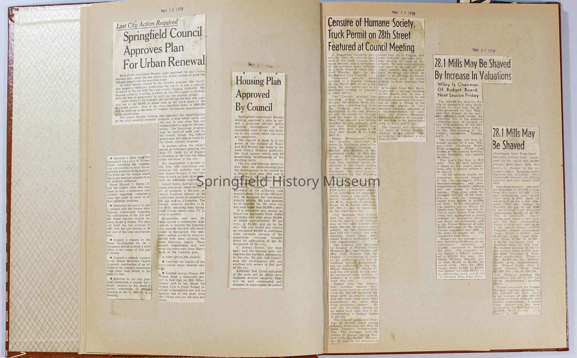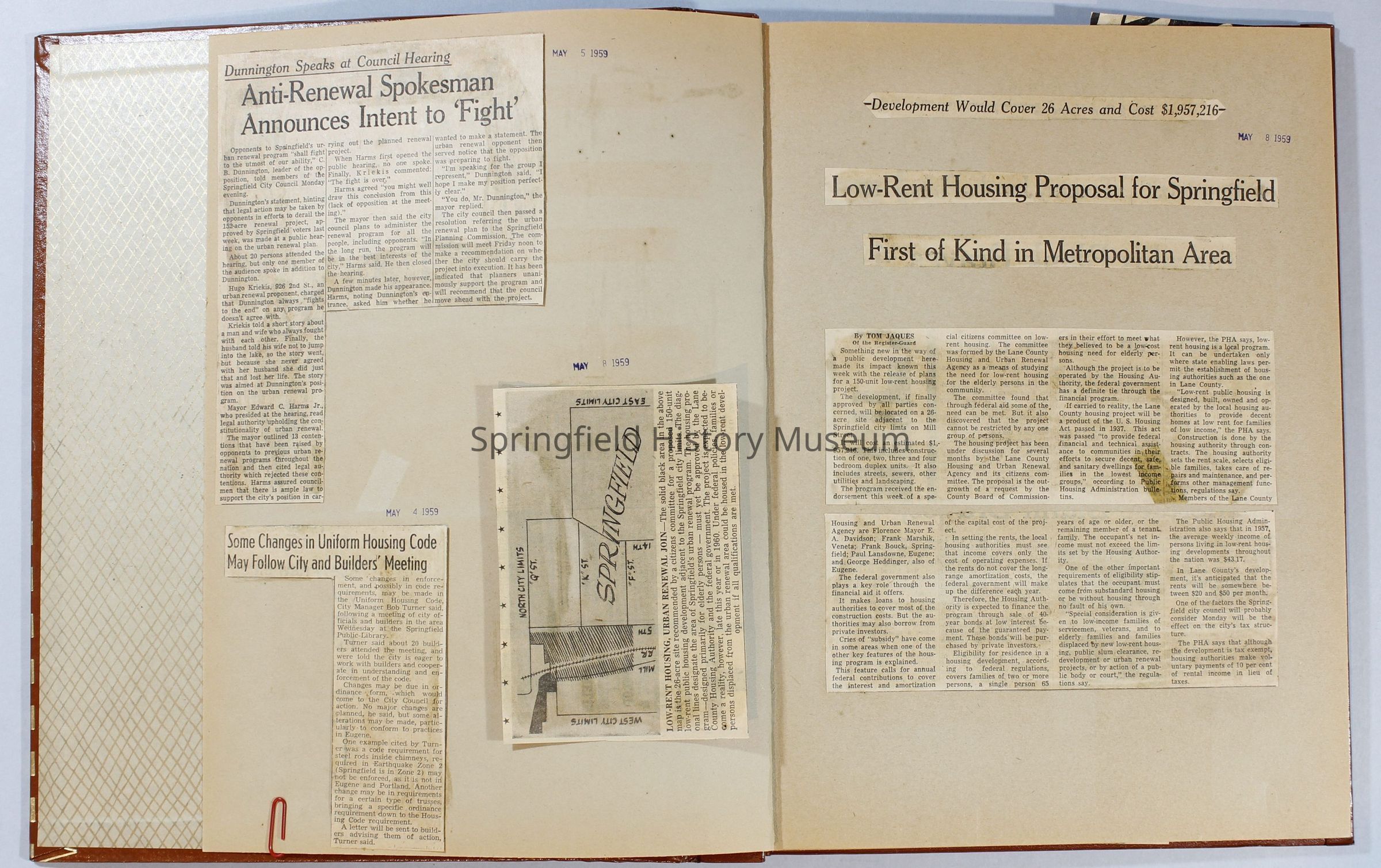 Scrapbook, City of Springfield, April 1959 through February 1960. Includes newspaper clippings with datesCollection