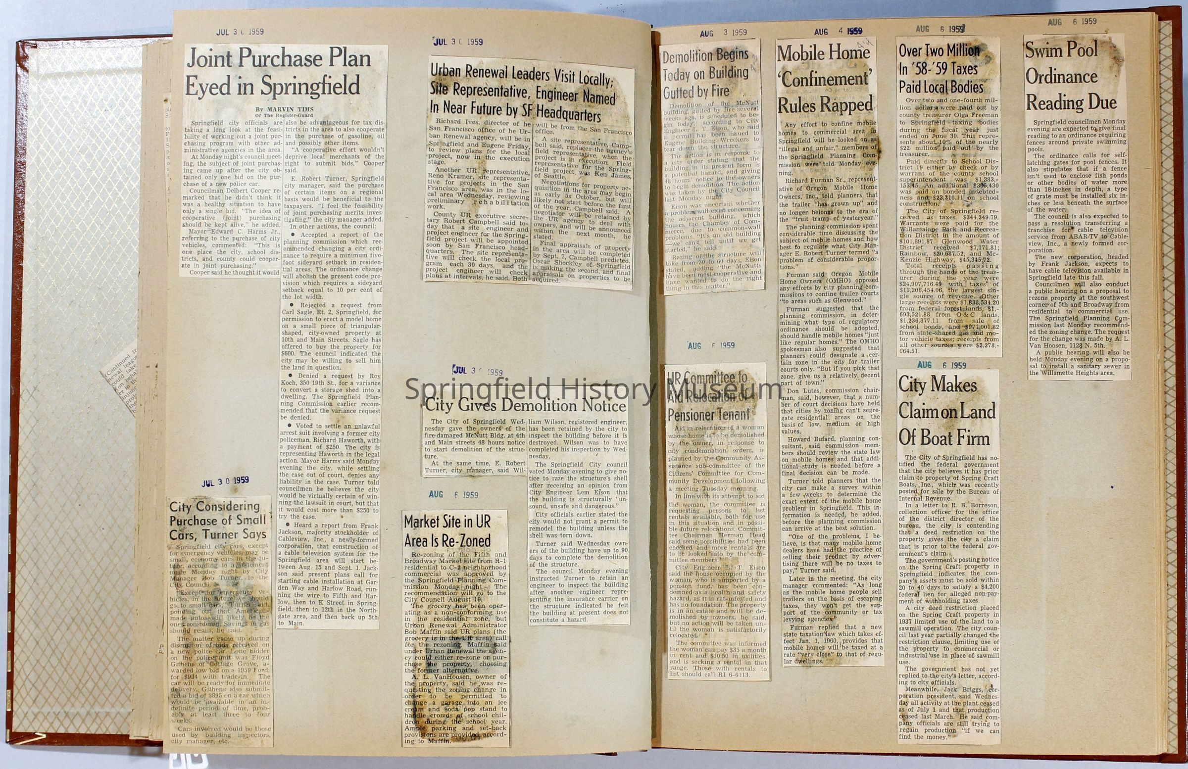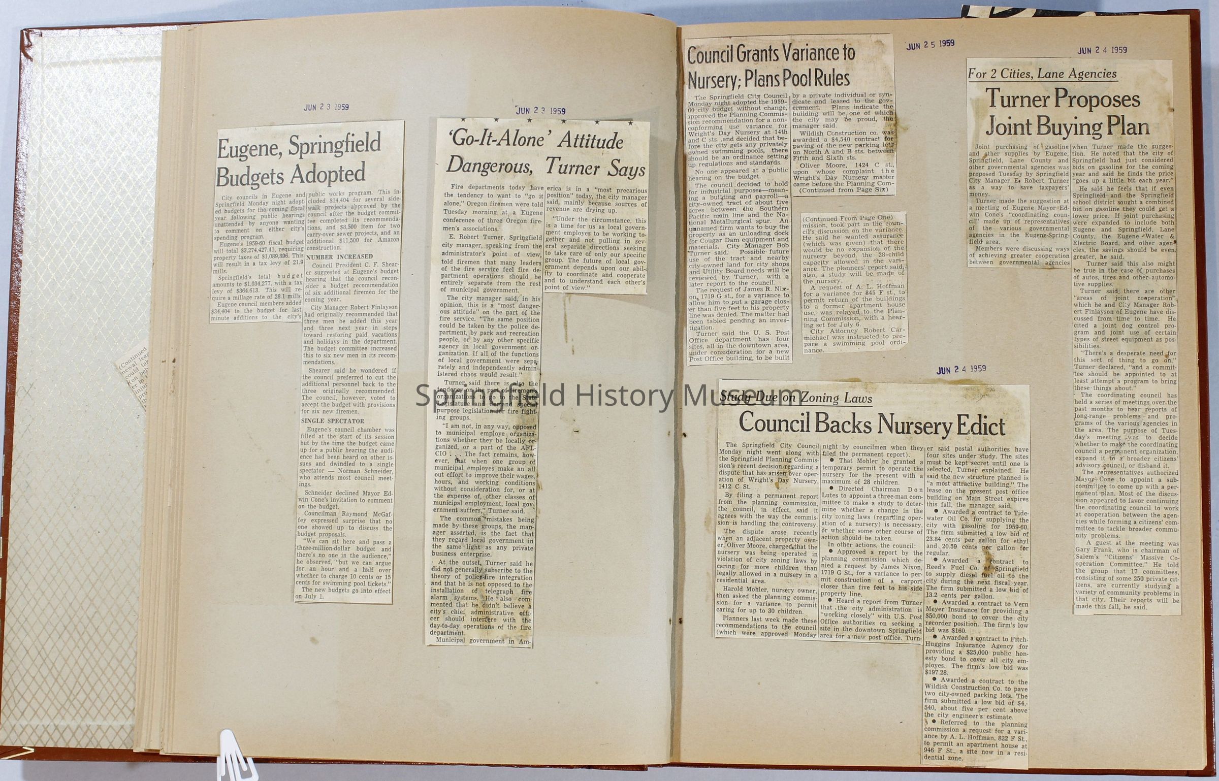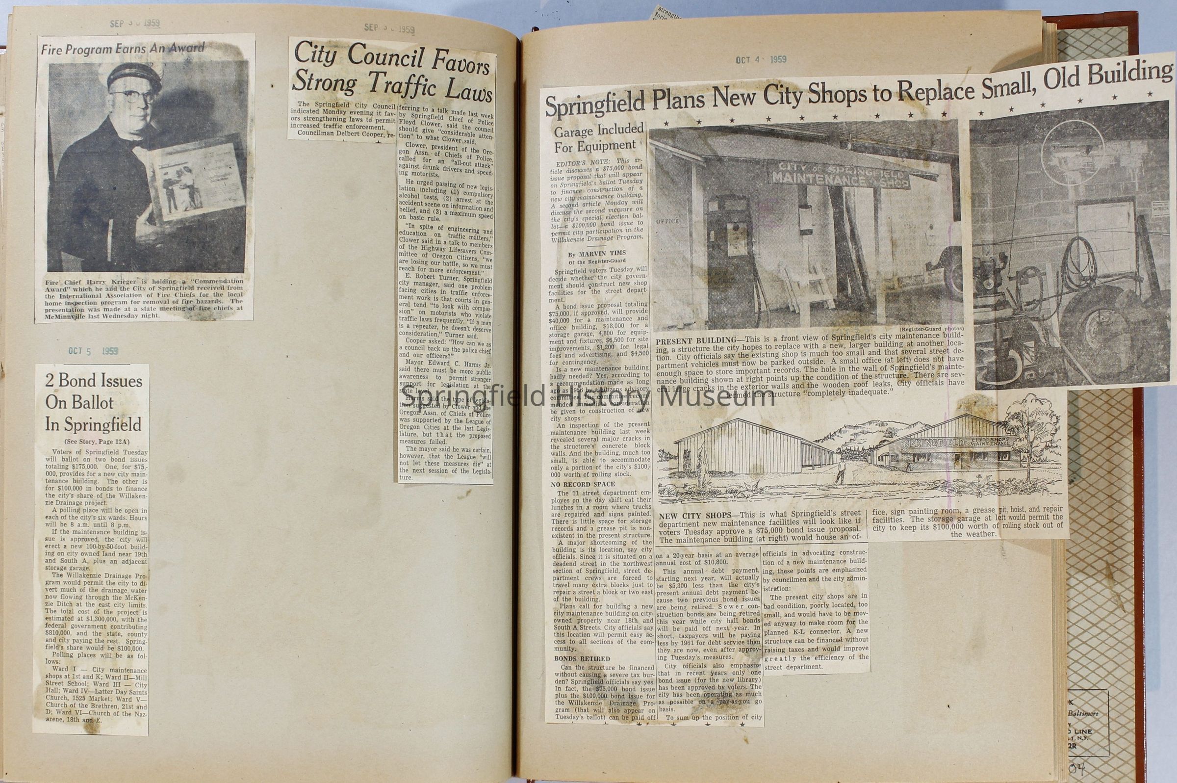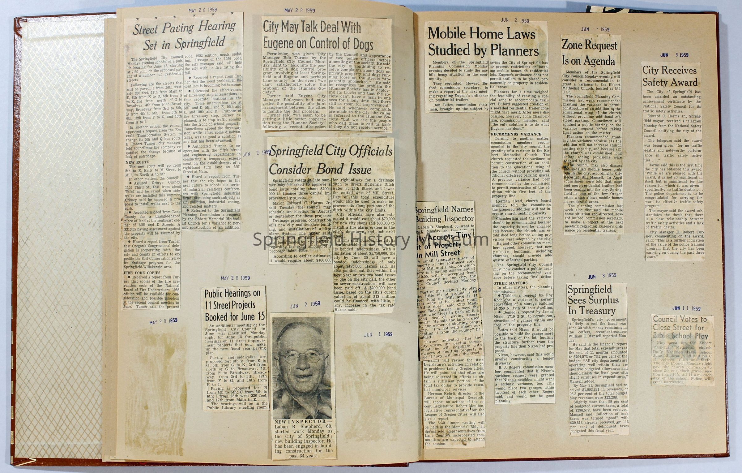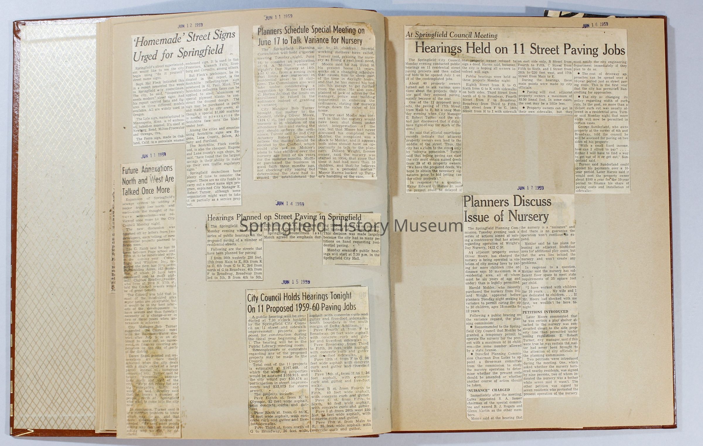 Scrapbook, City of Springfield, April 1959 through February 1960. Includes newspaper clippings with datesCollection