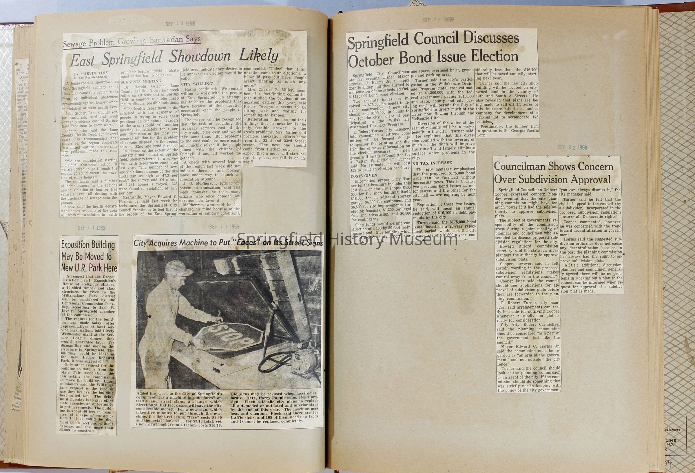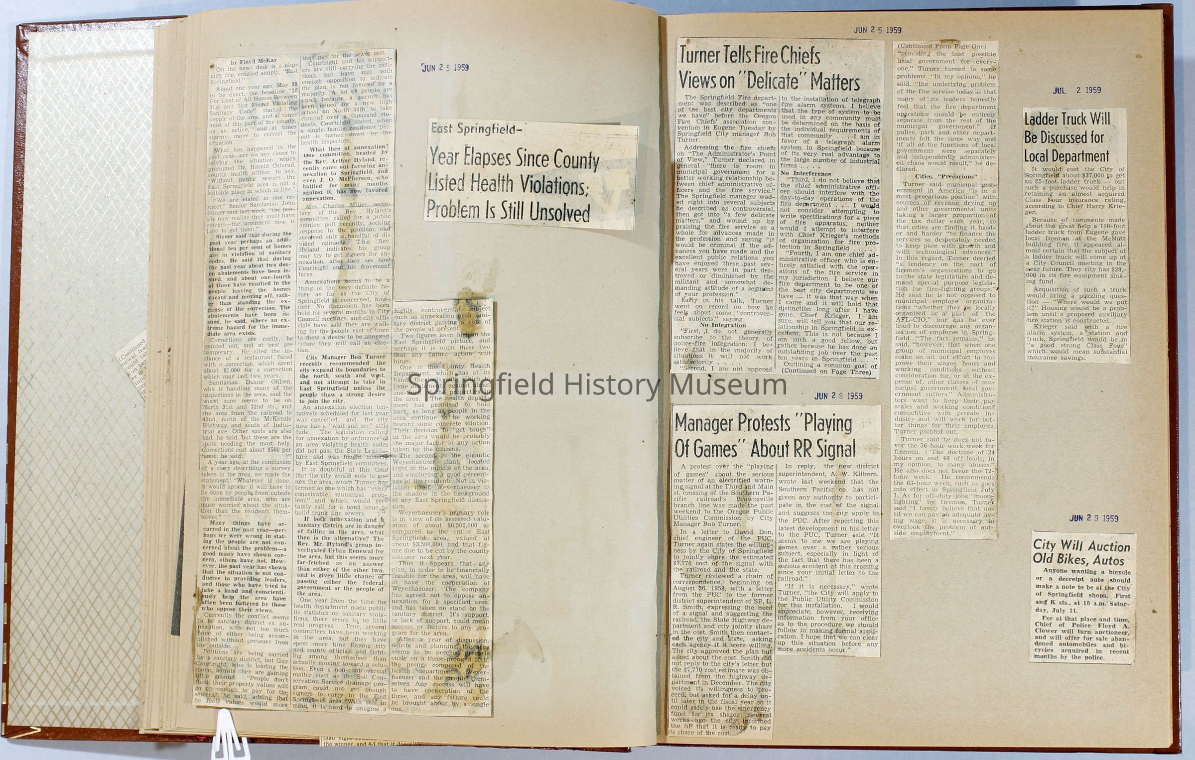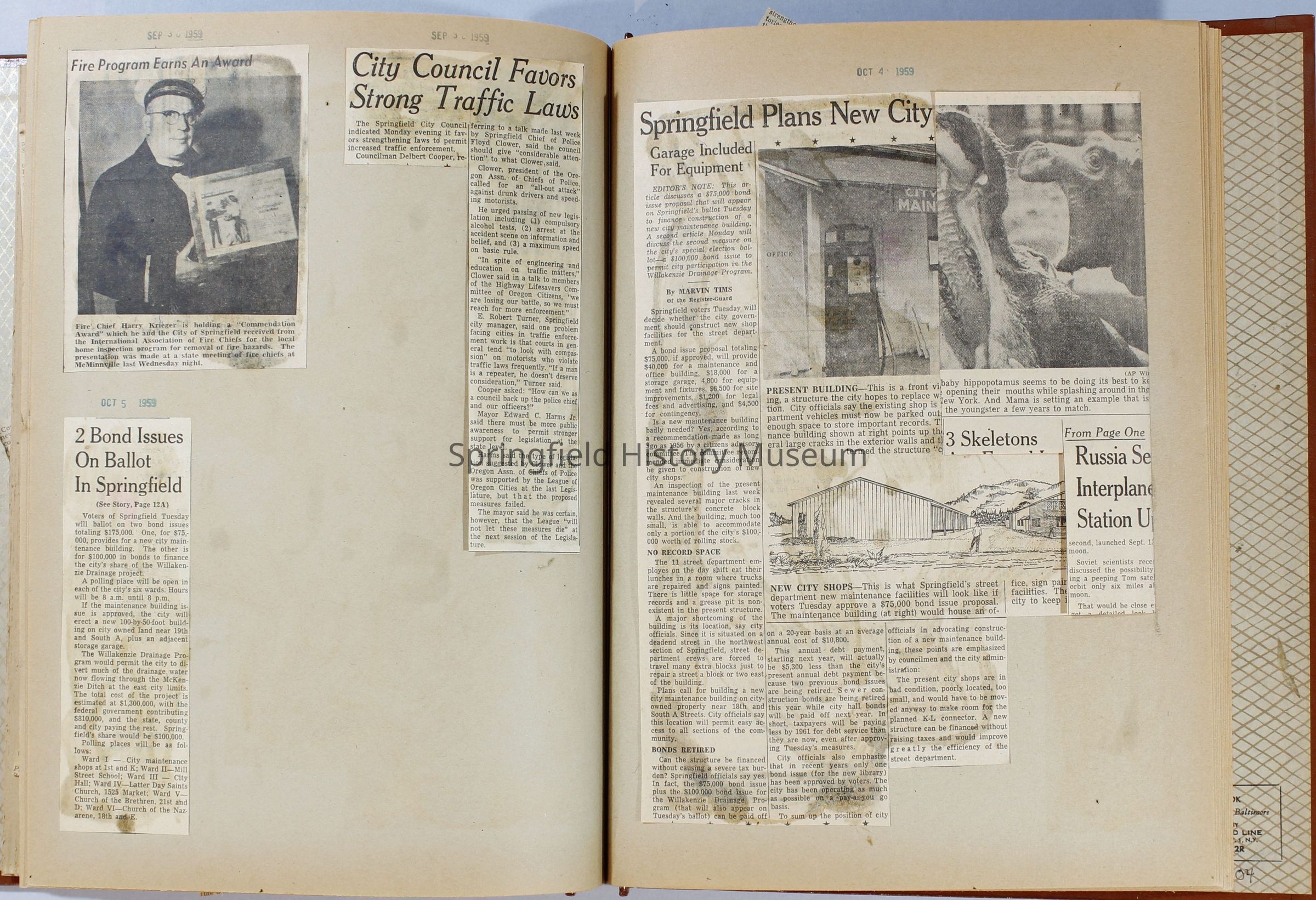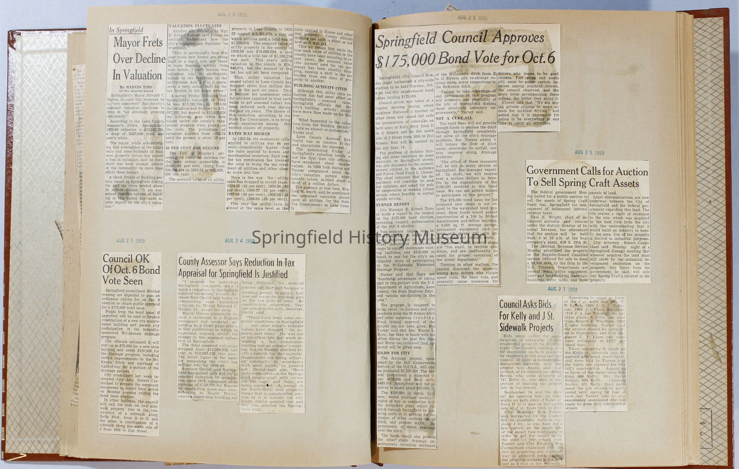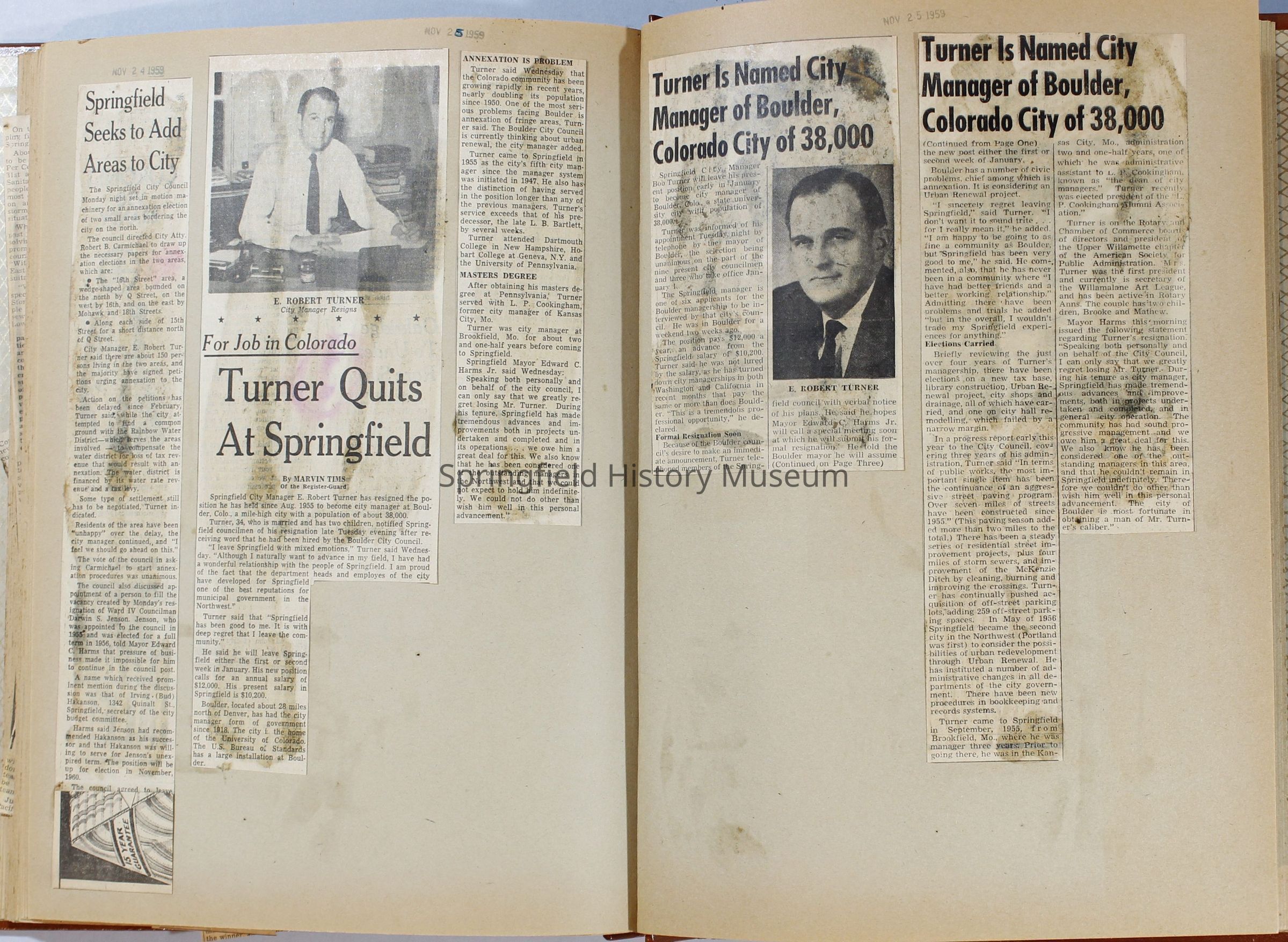 Scrapbook, City of Springfield, April 1959 through February 1960. Includes newspaper clippings with datesCollection
