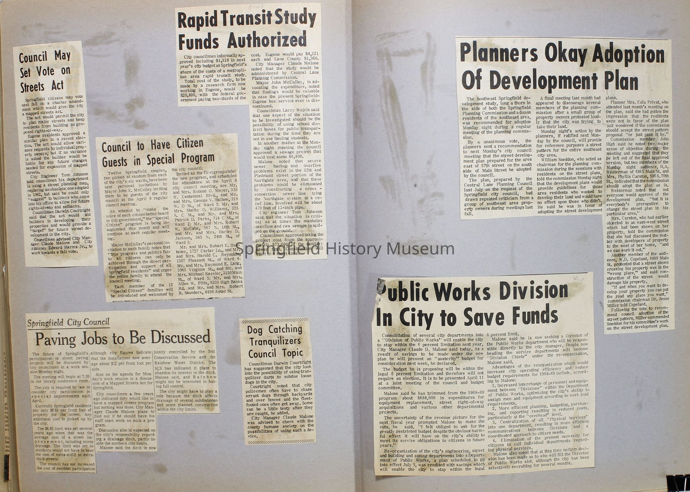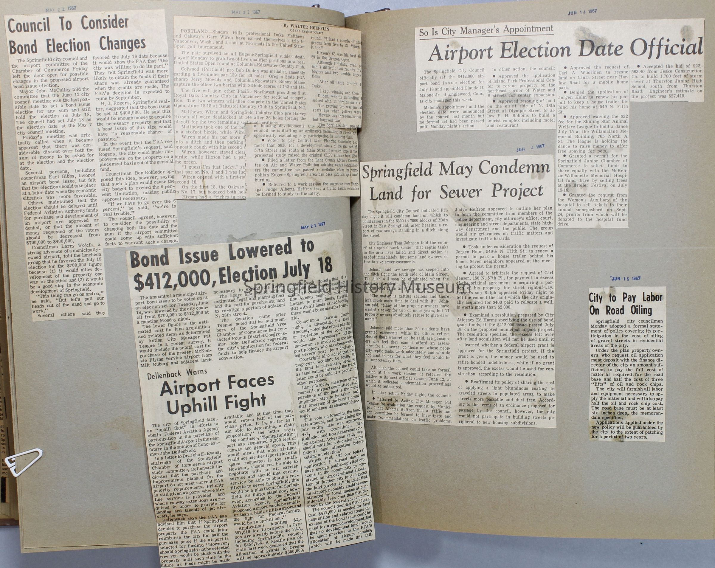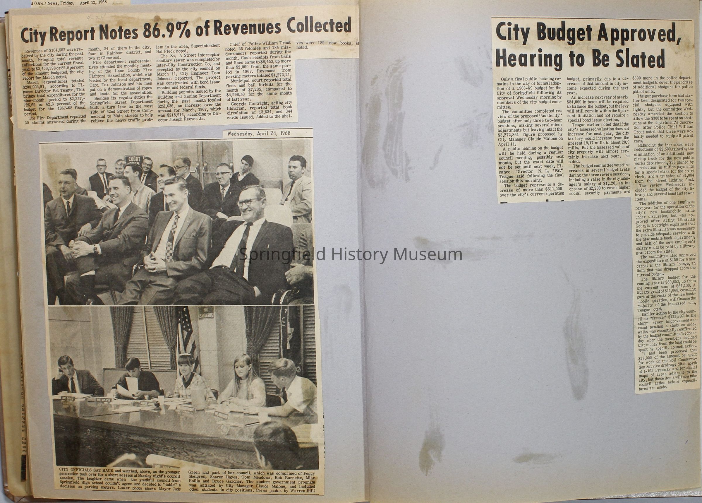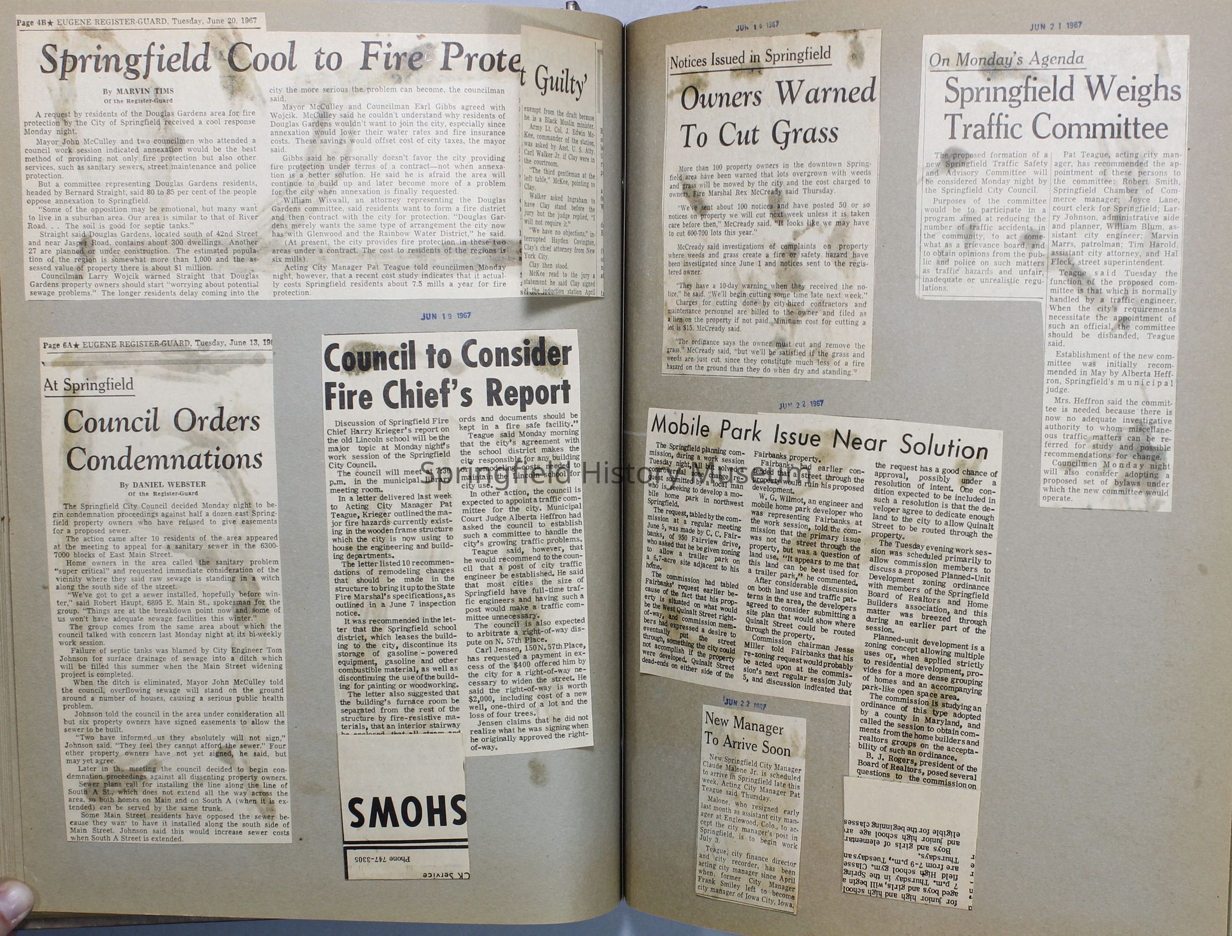Scrapbook, City of Springfield, 1967-1968Entry/Object ID