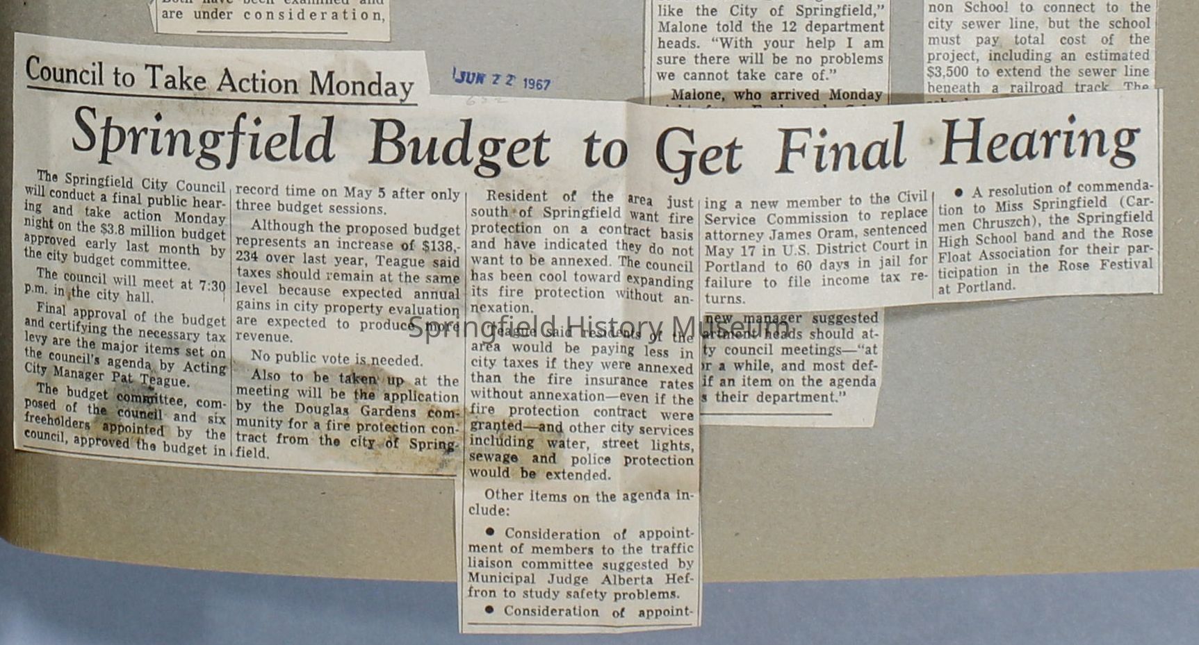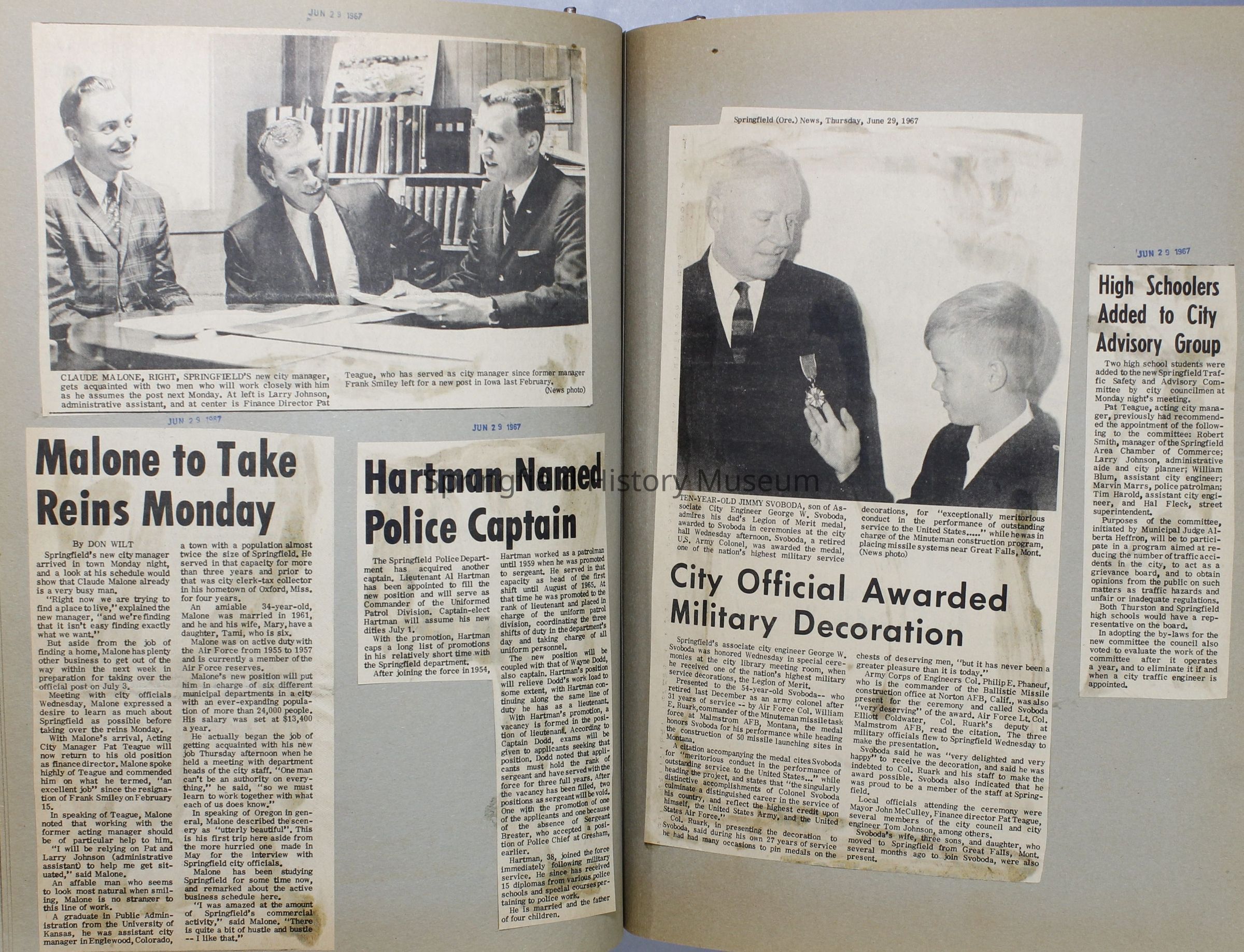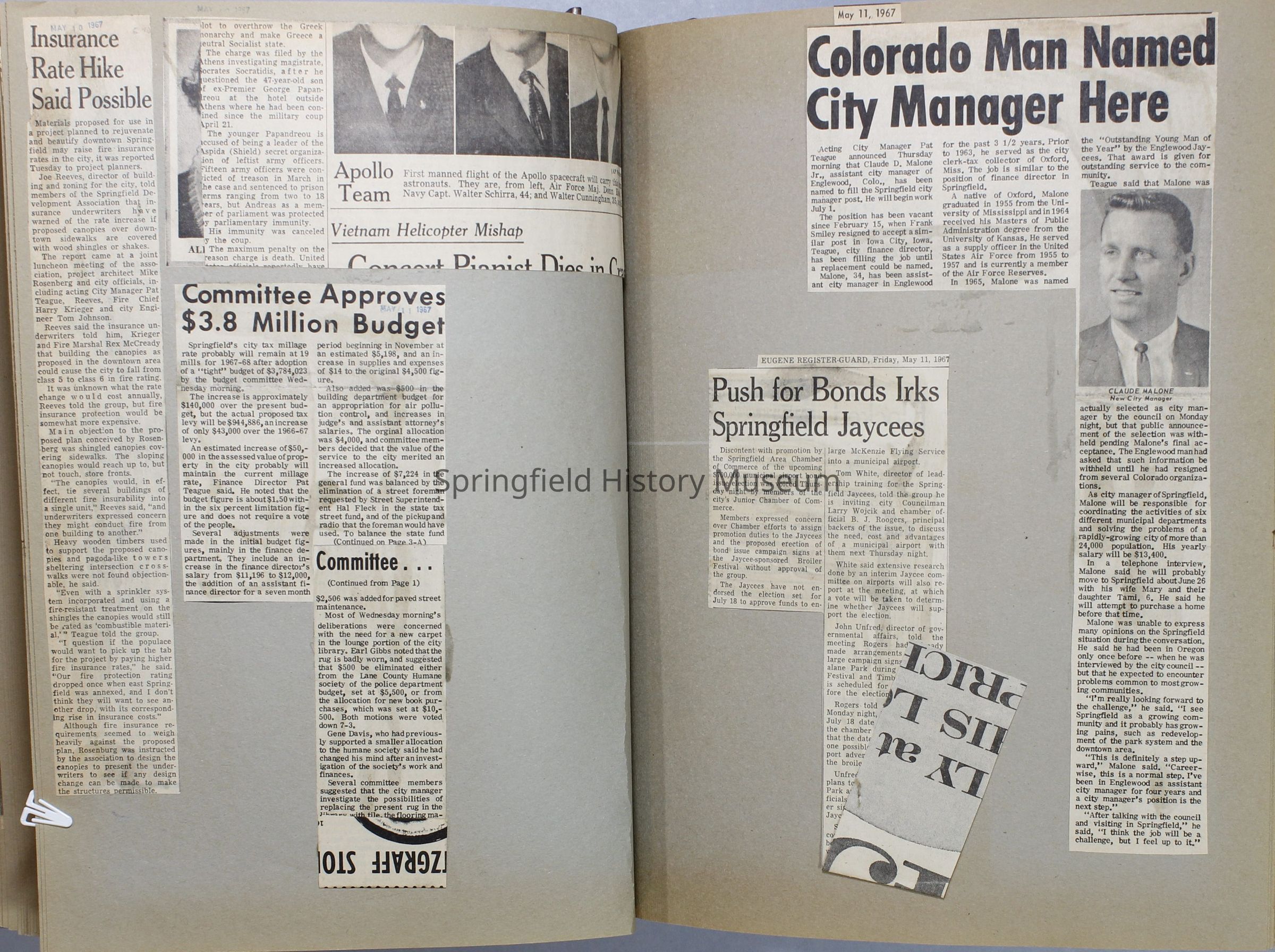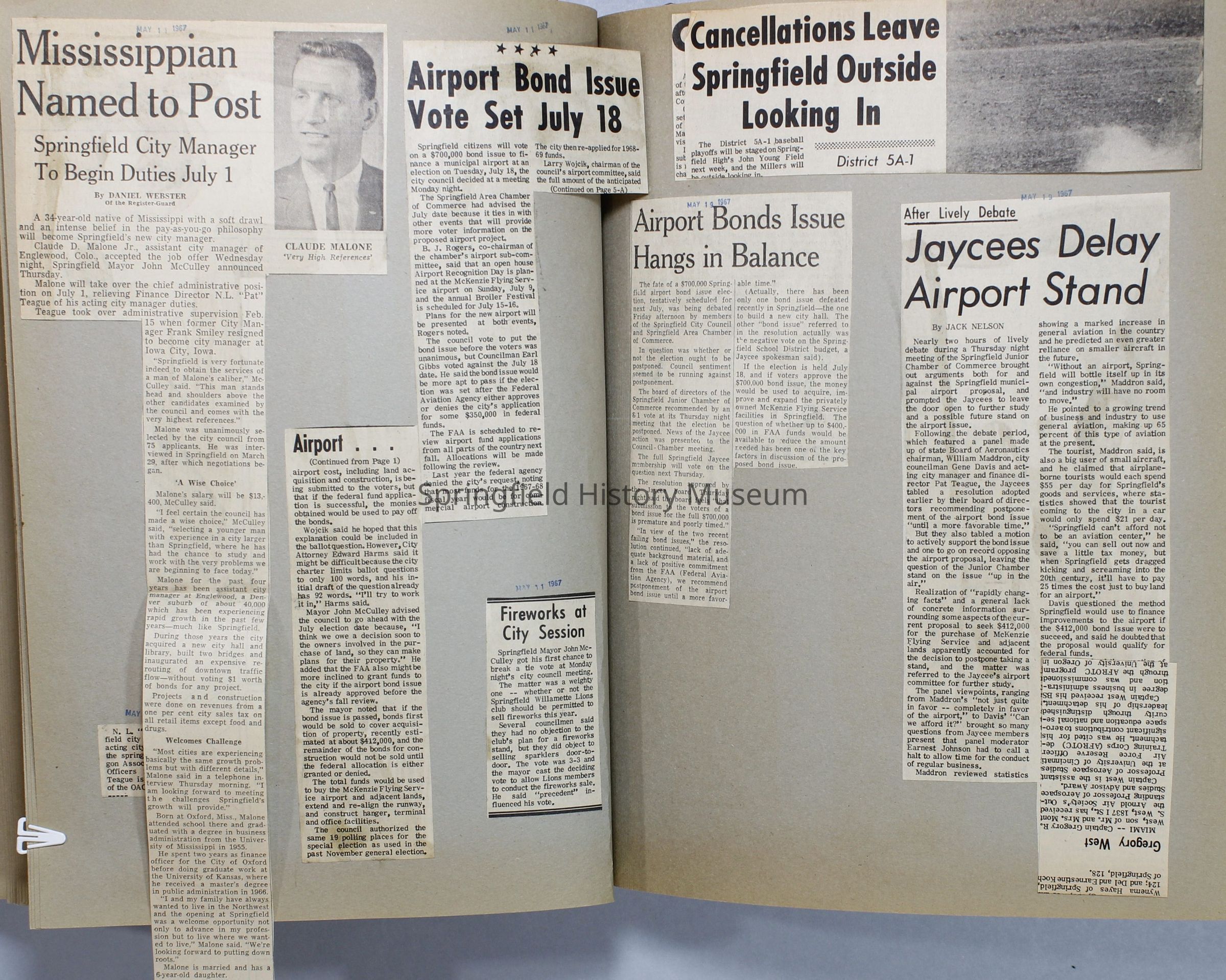 Scrapbook, City of Springfield, 1967-1968Entry/Object ID