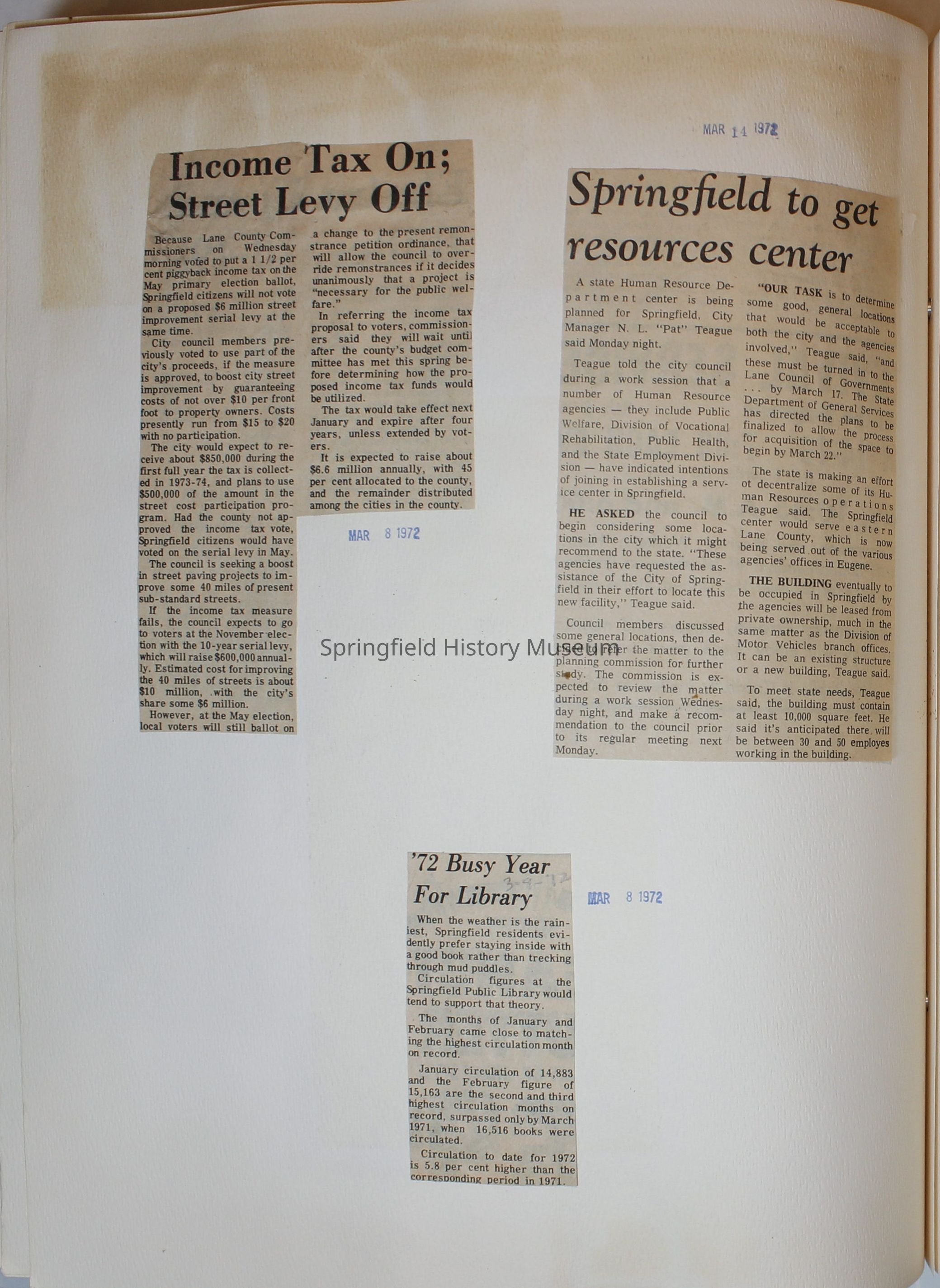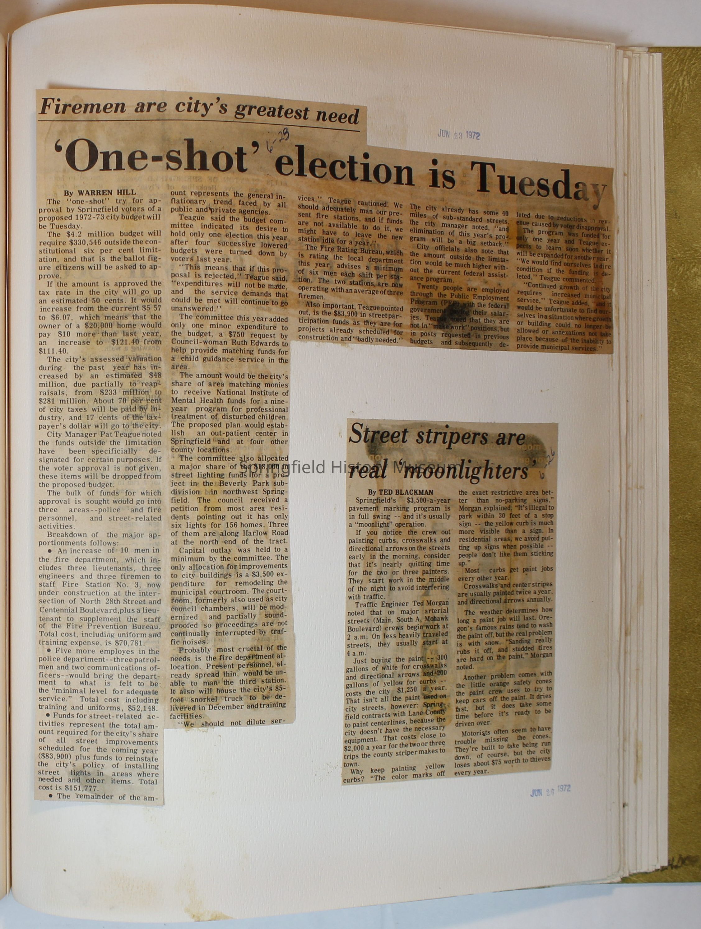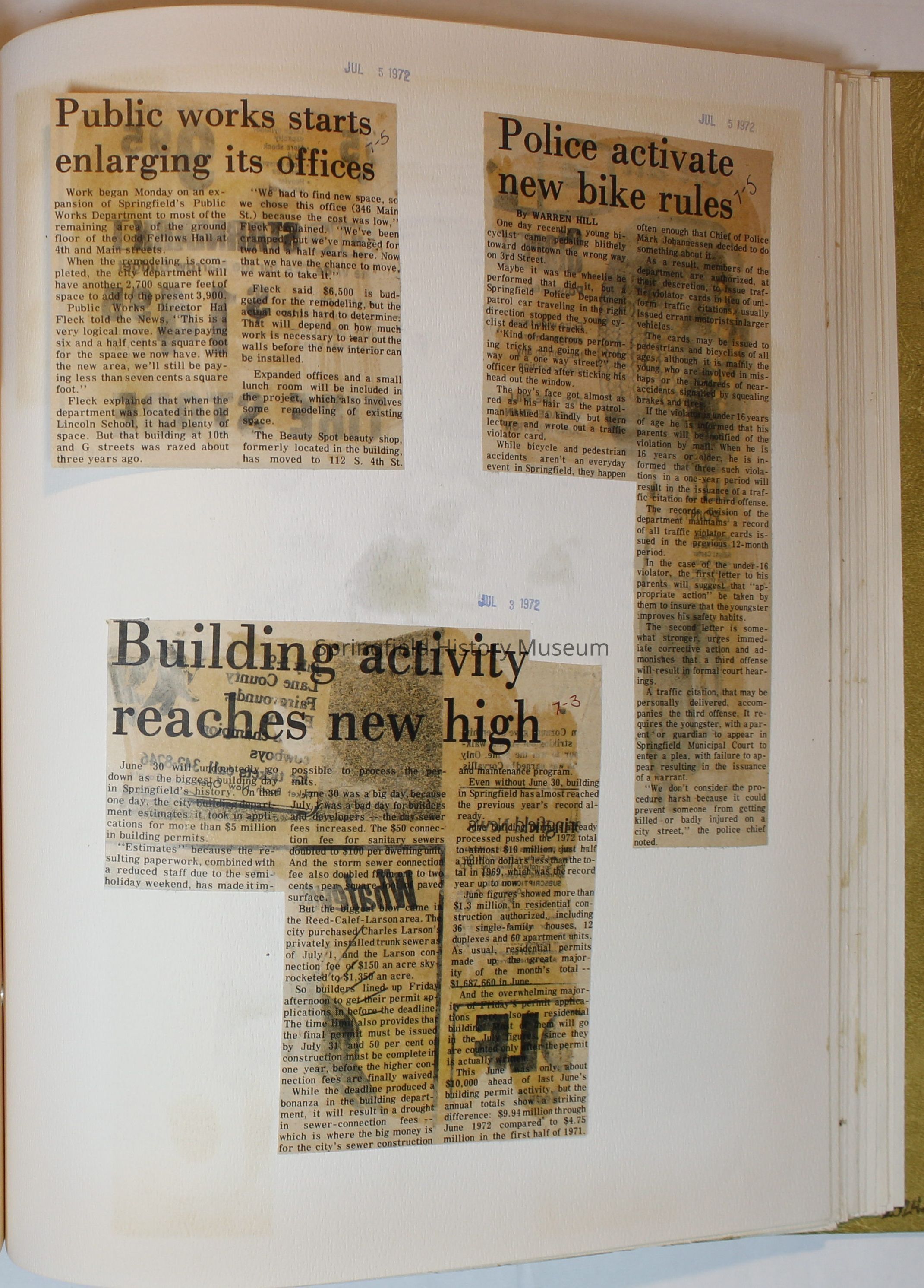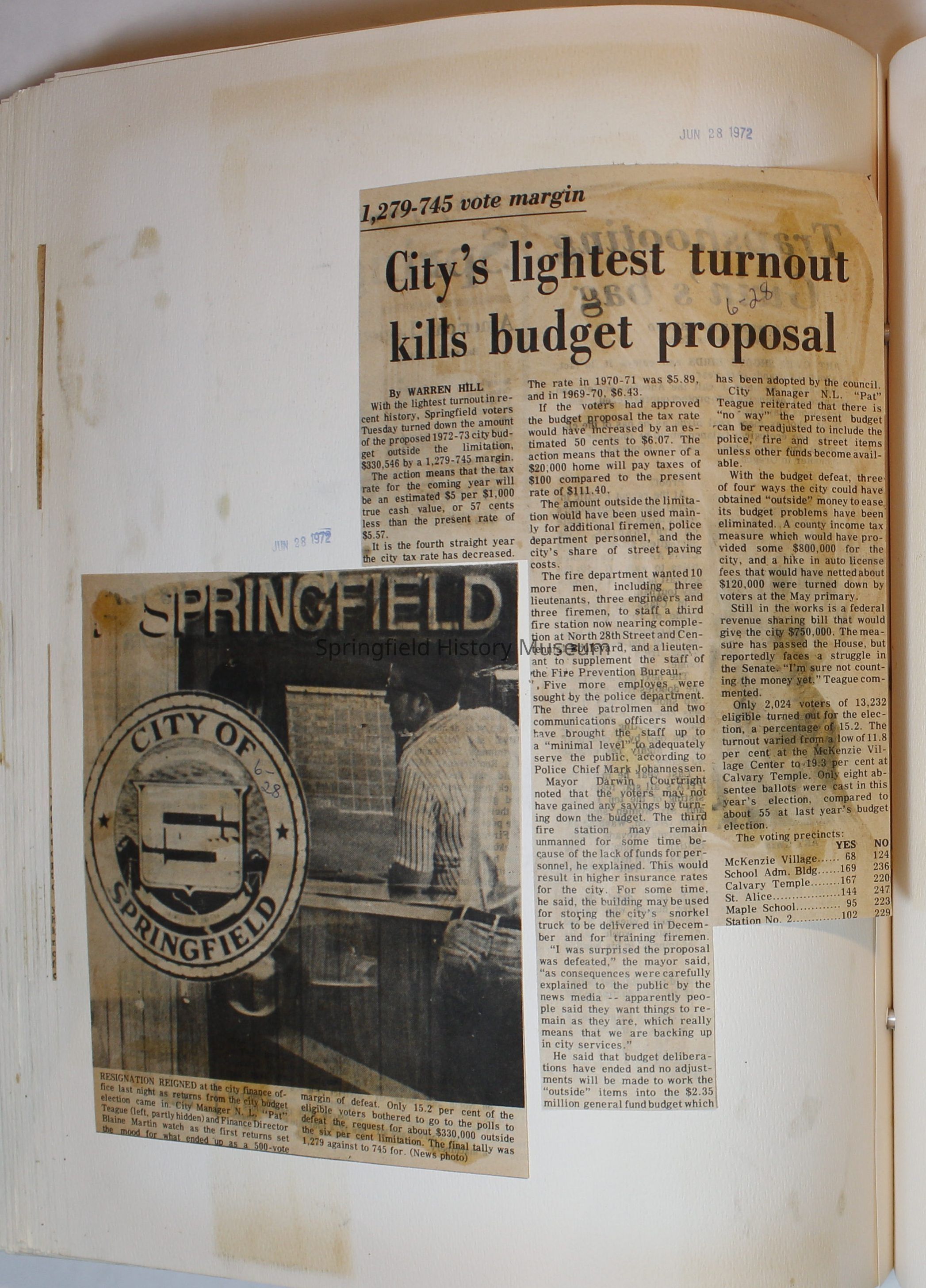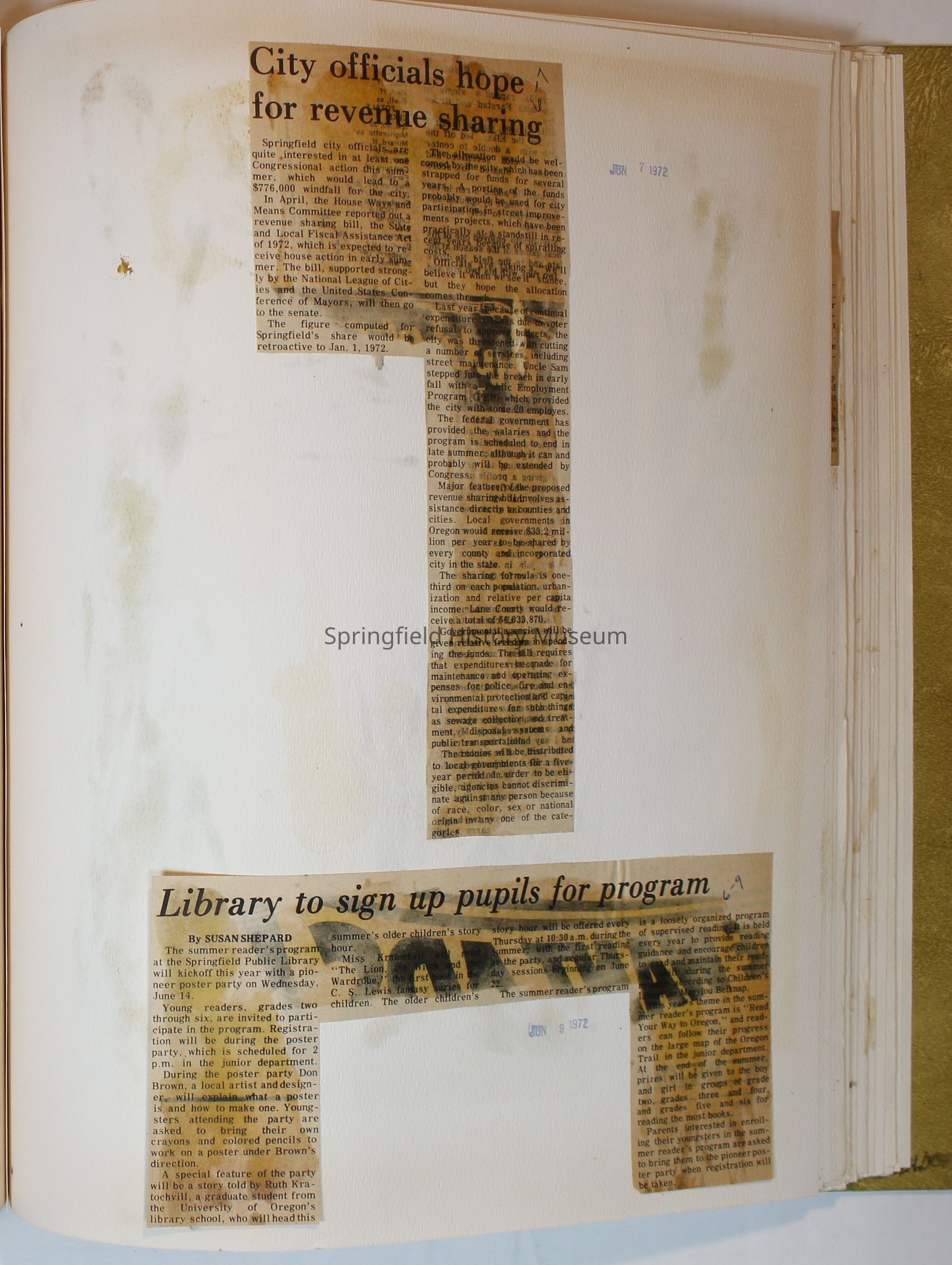 Scrapbook, City of Springfield, 1971-1972Entry/Object ID