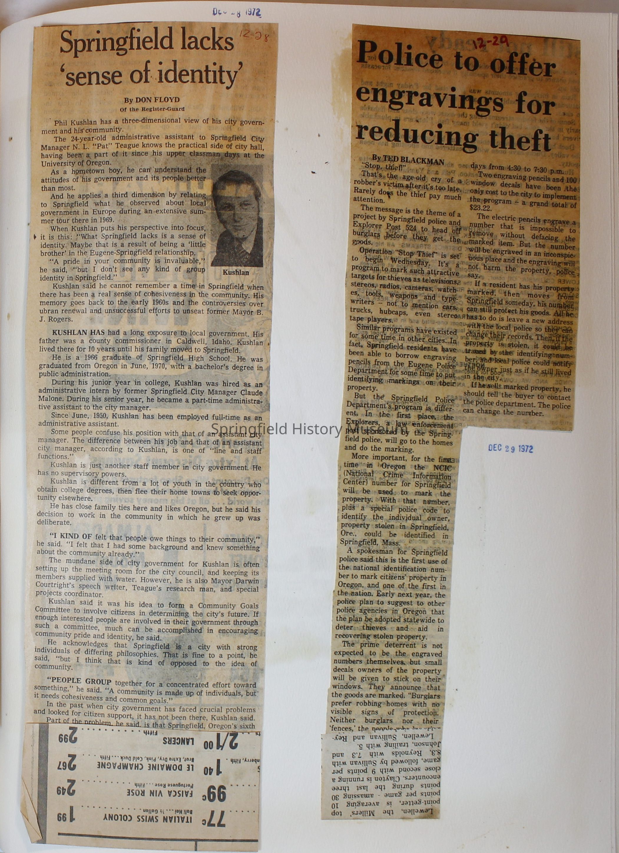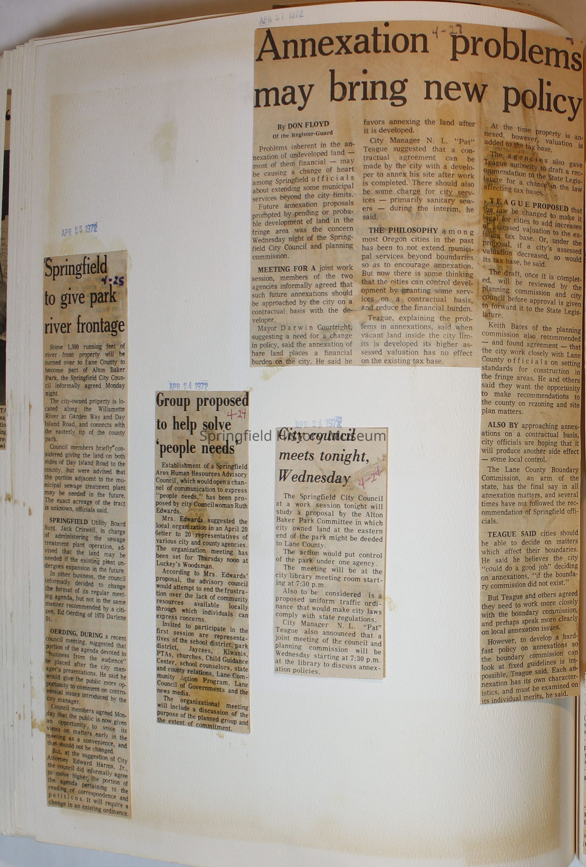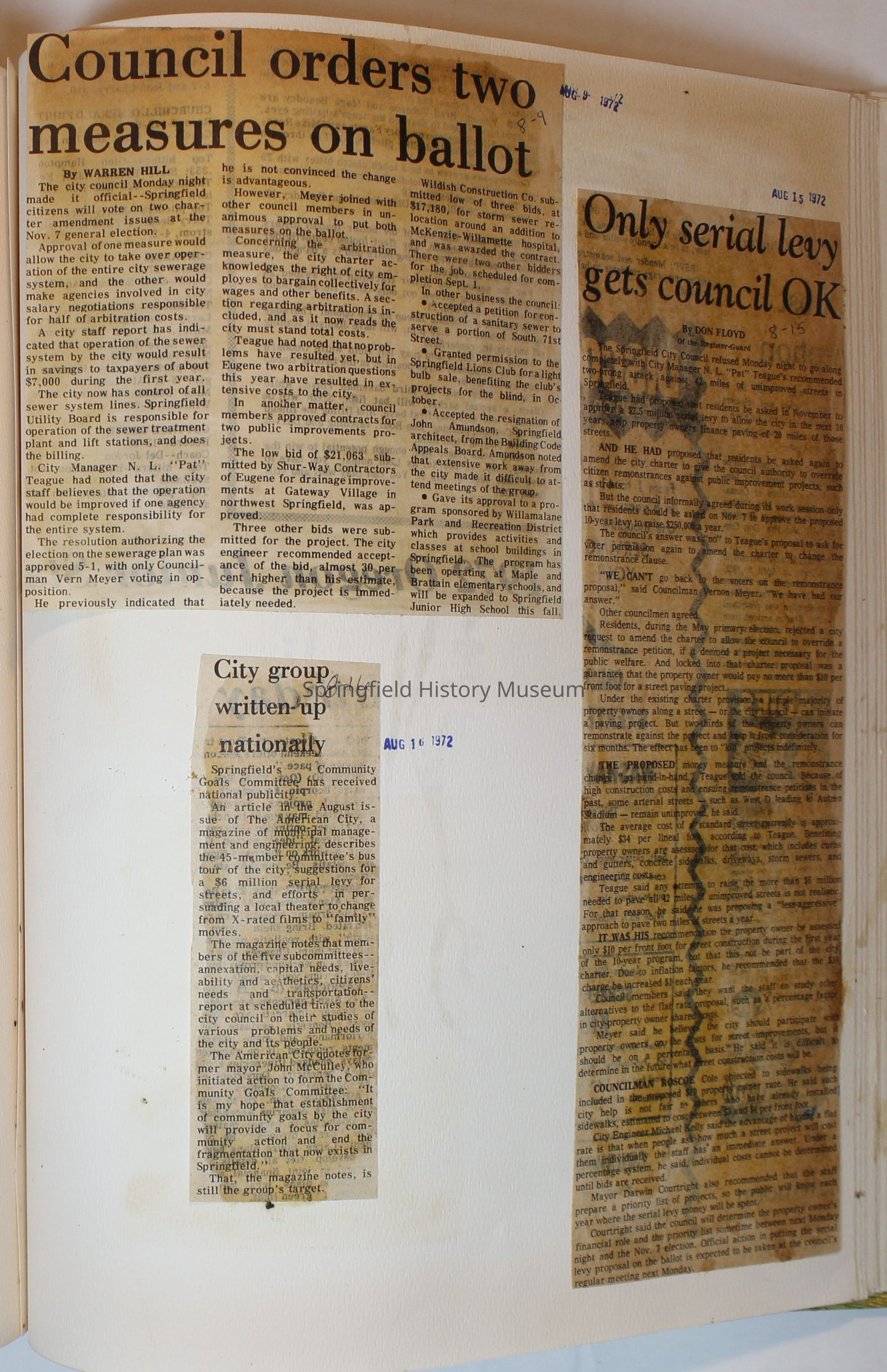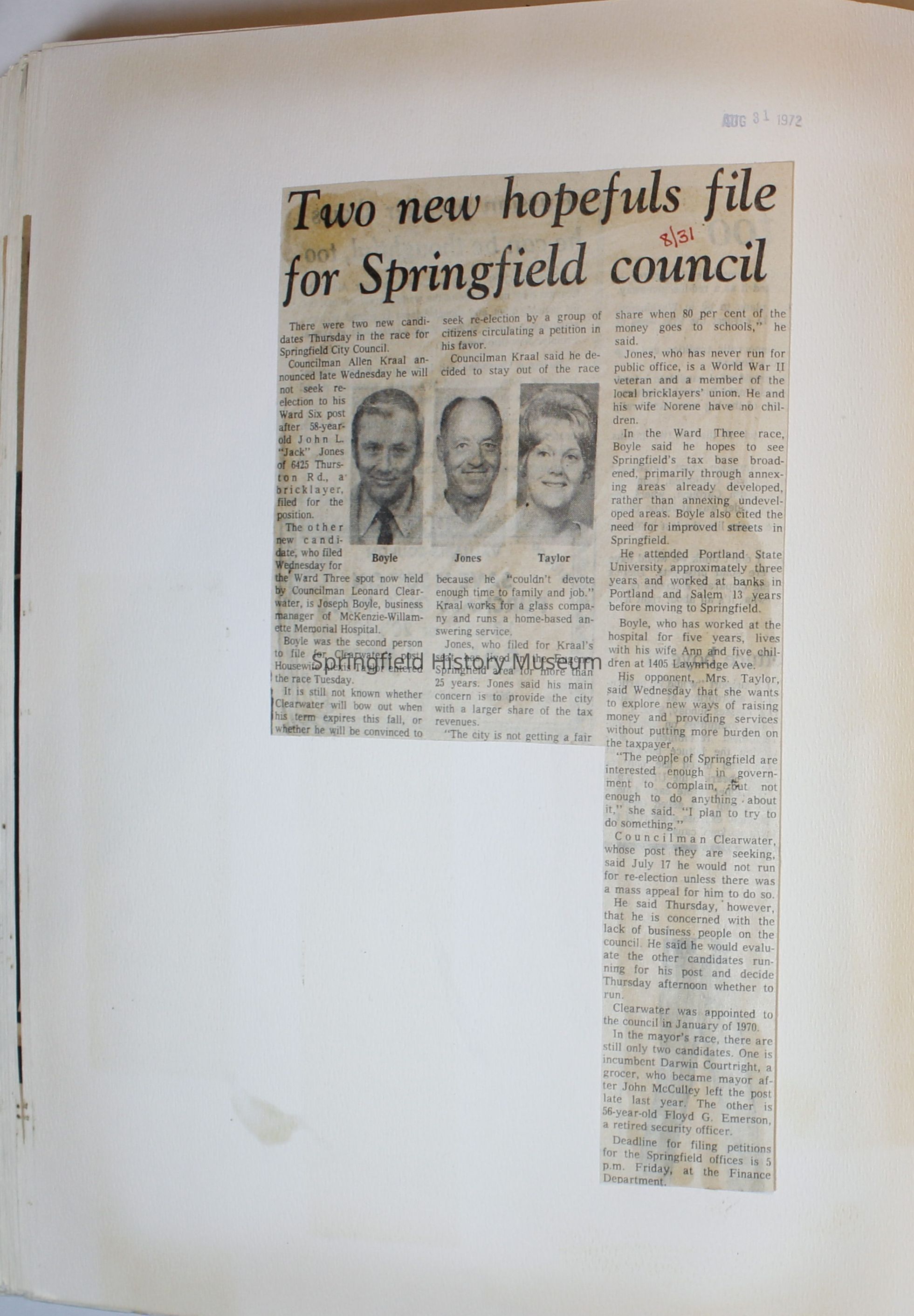 Scrapbook, City of Springfield, 1971-1972Entry/Object ID