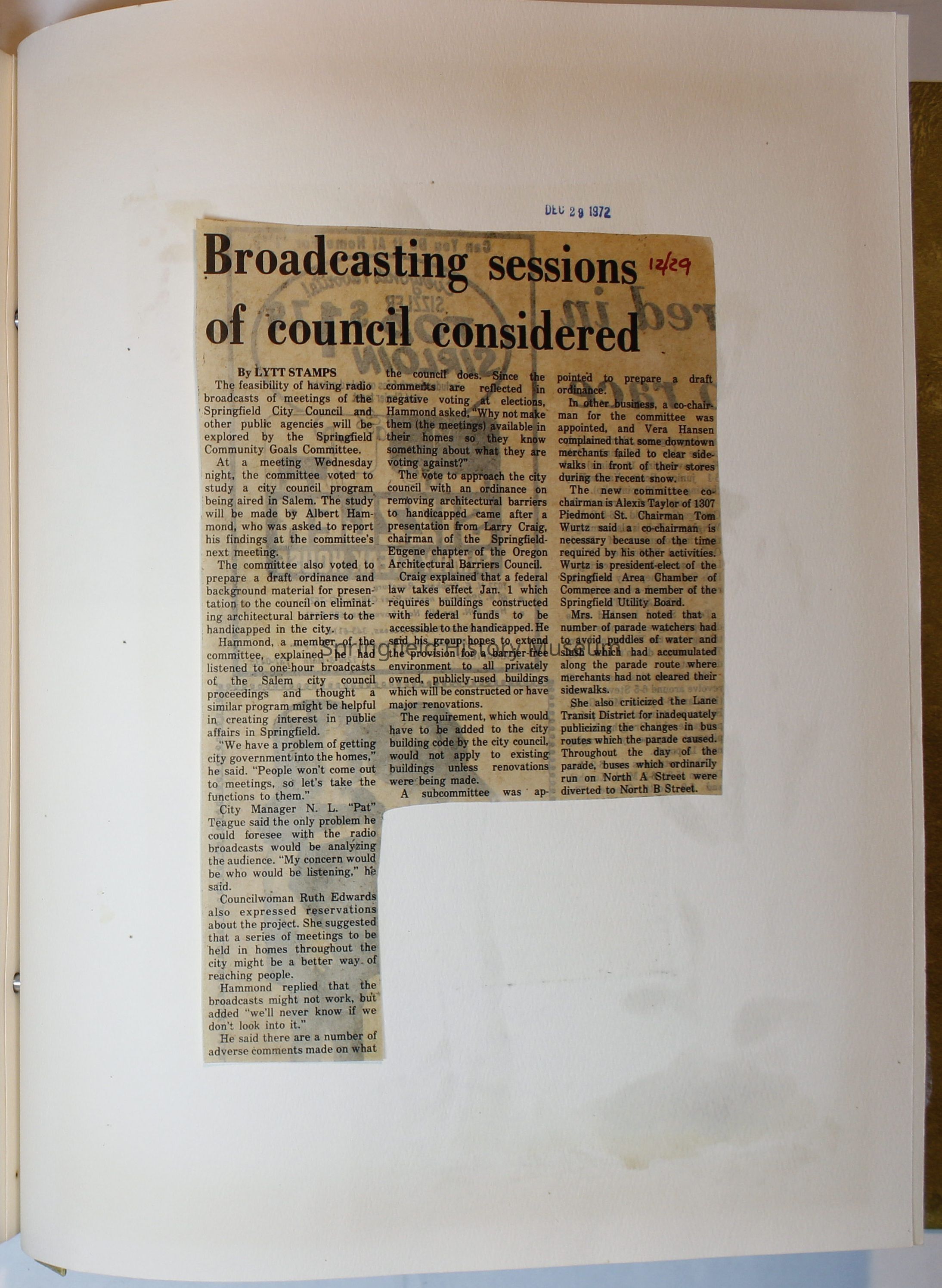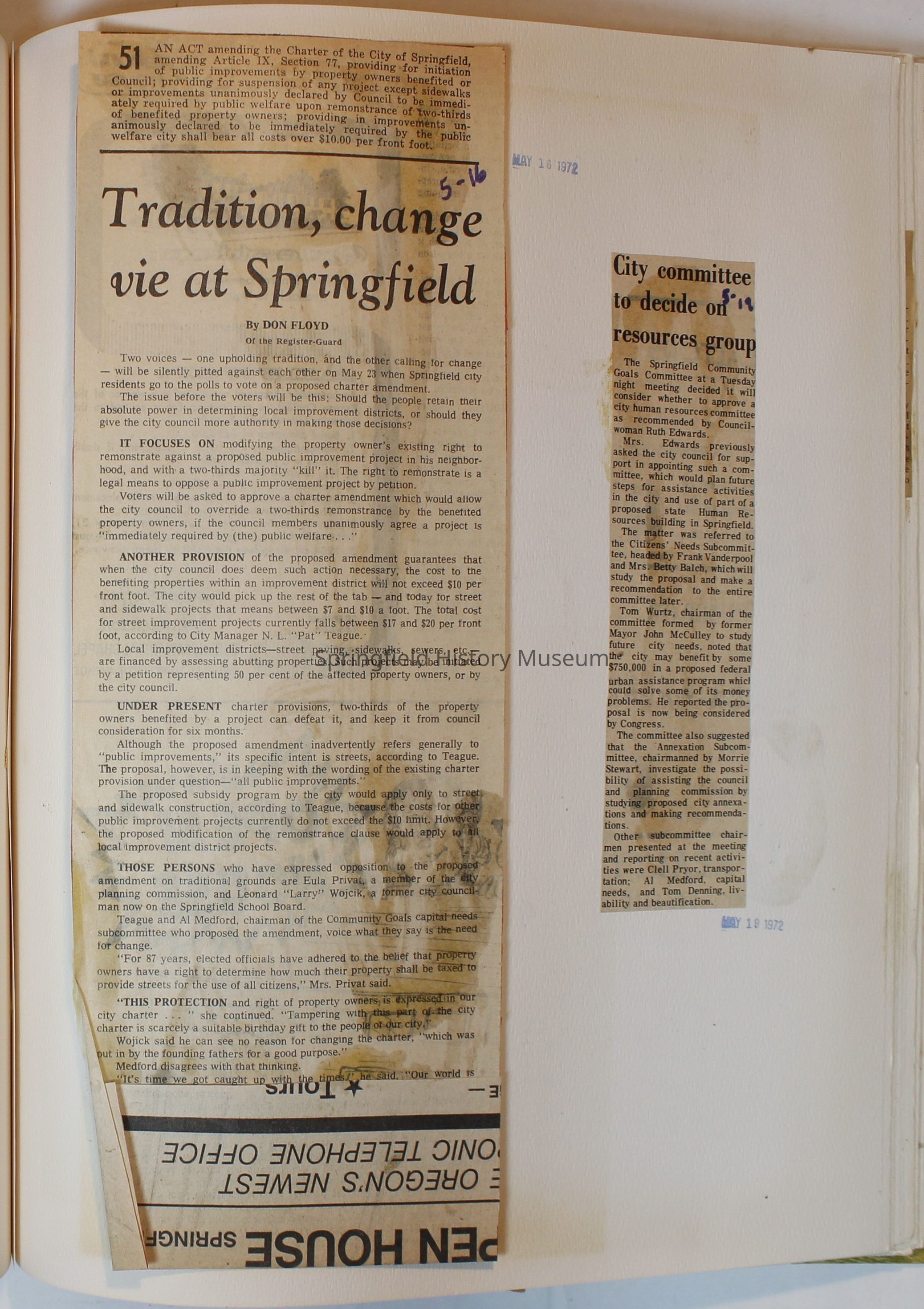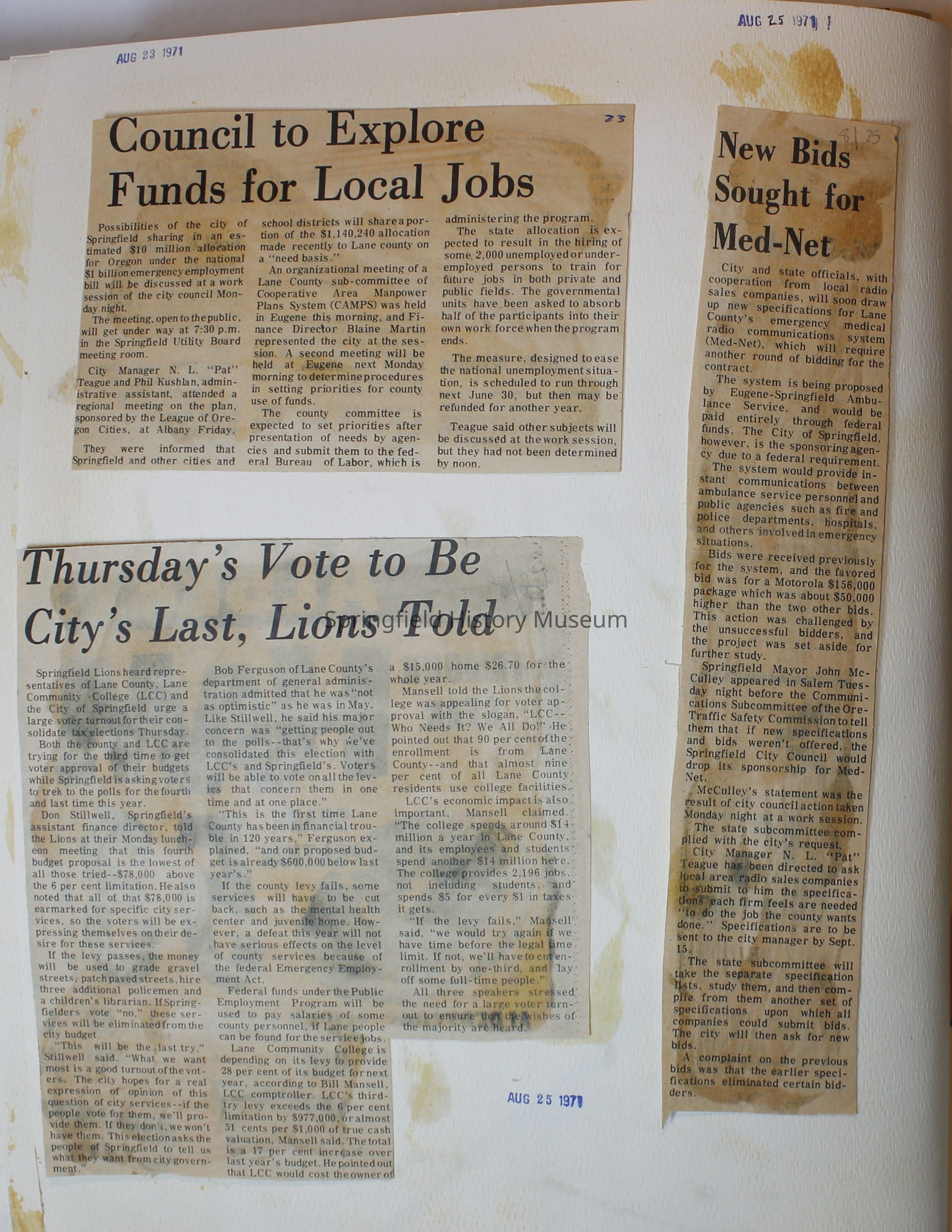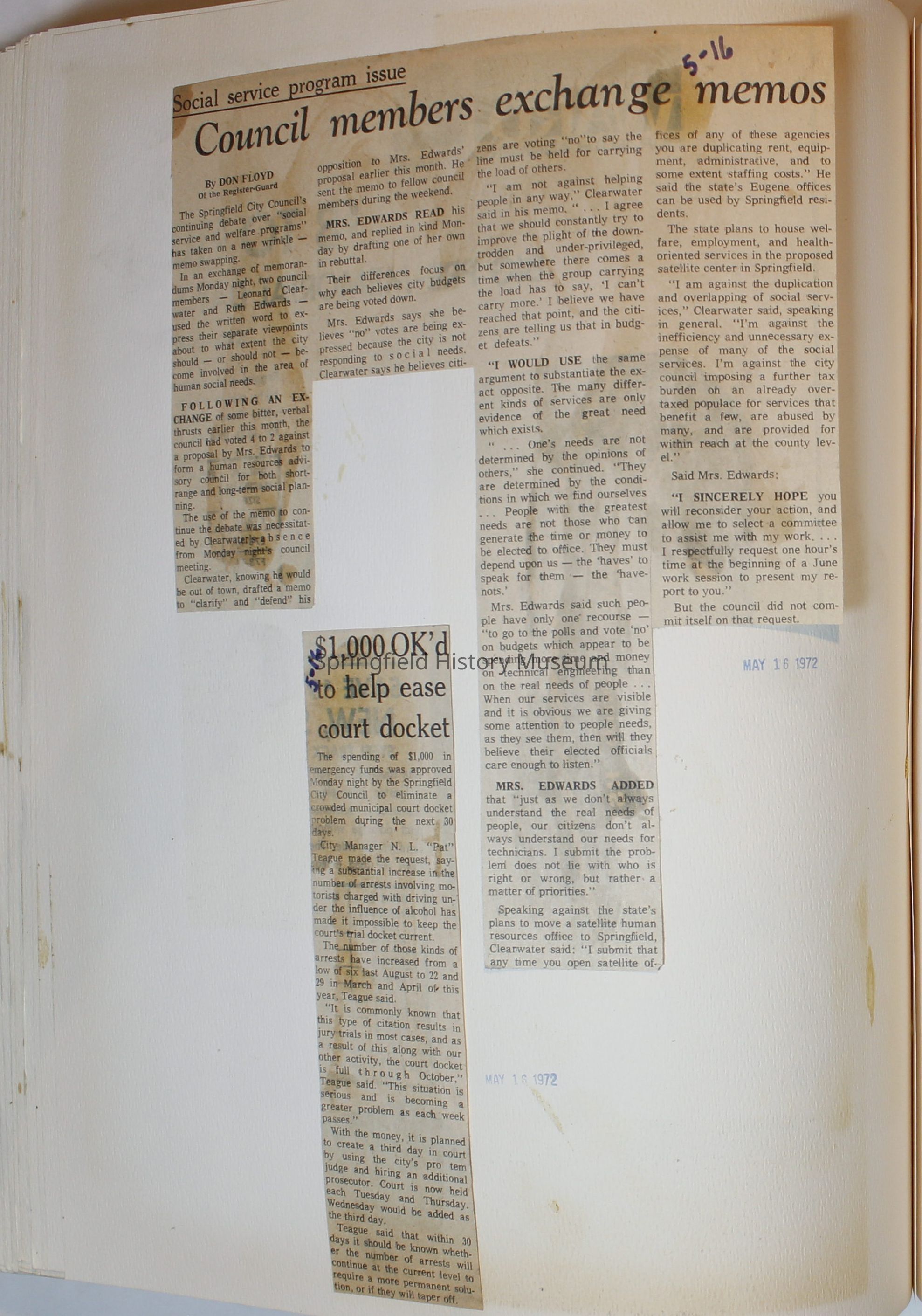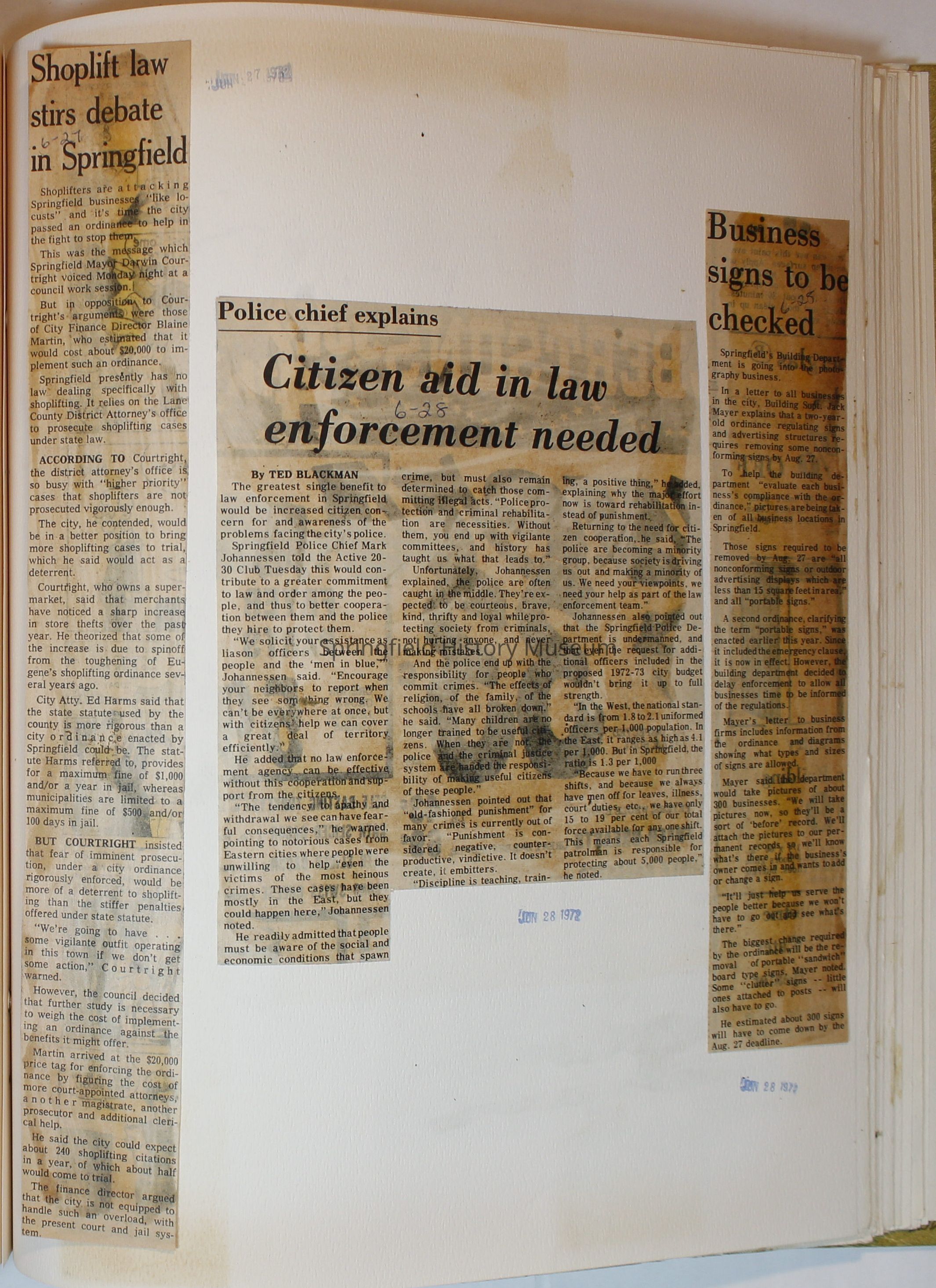 Scrapbook, City of Springfield, 1971-1972Entry/Object ID
