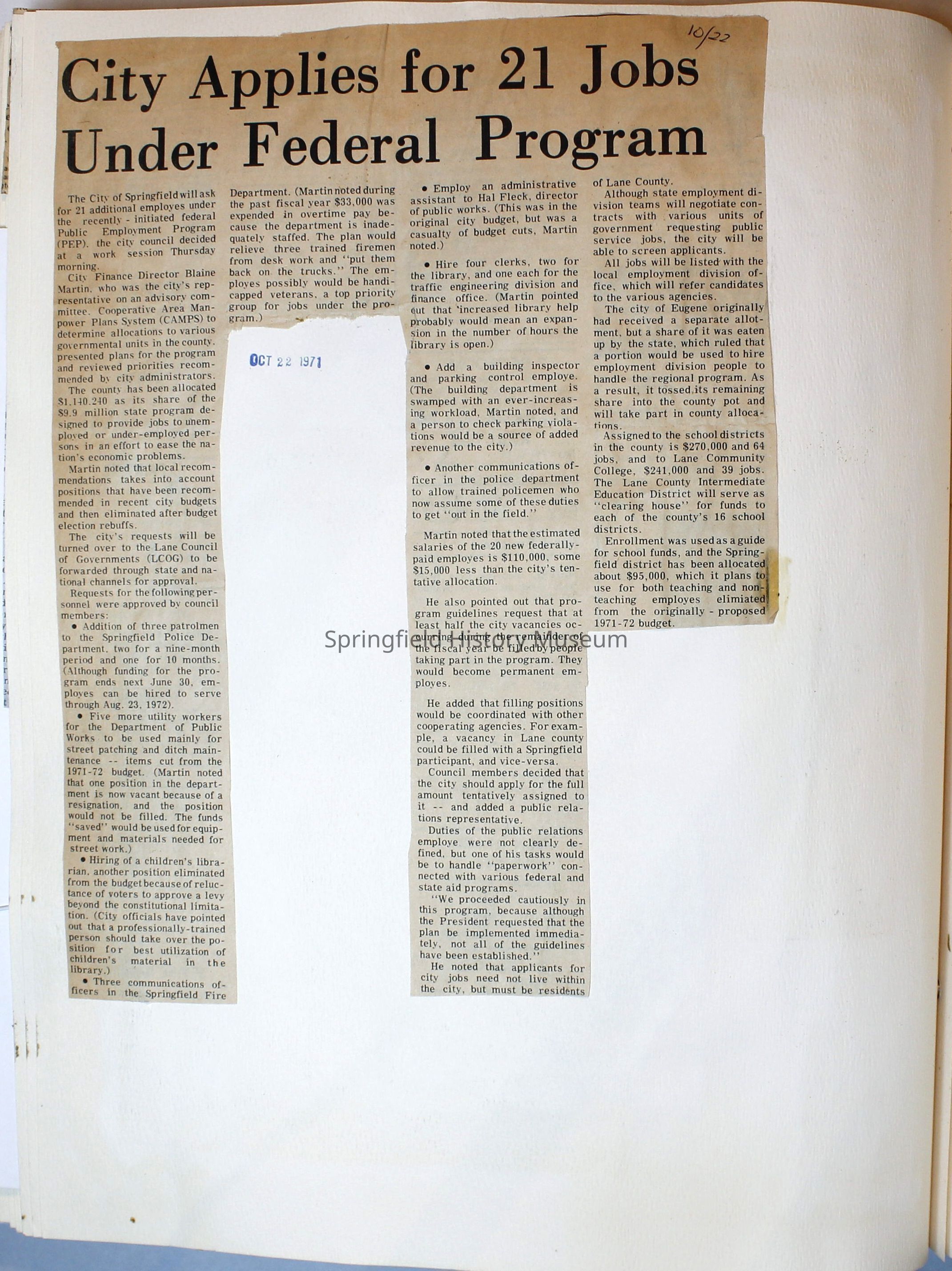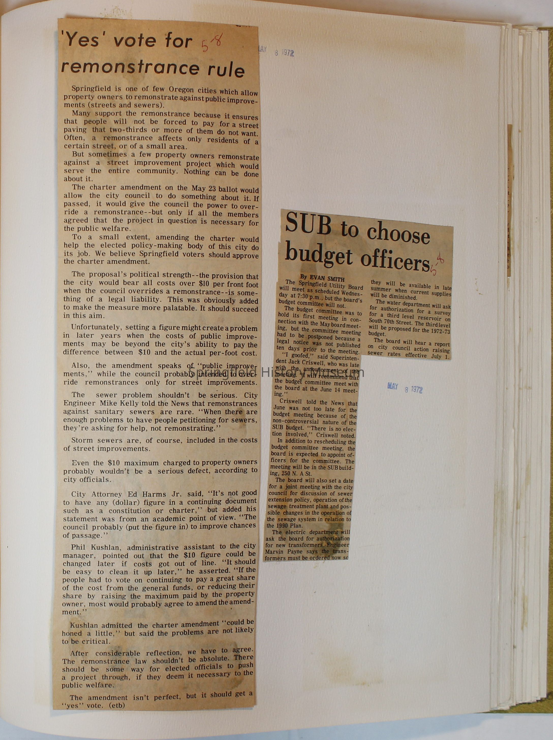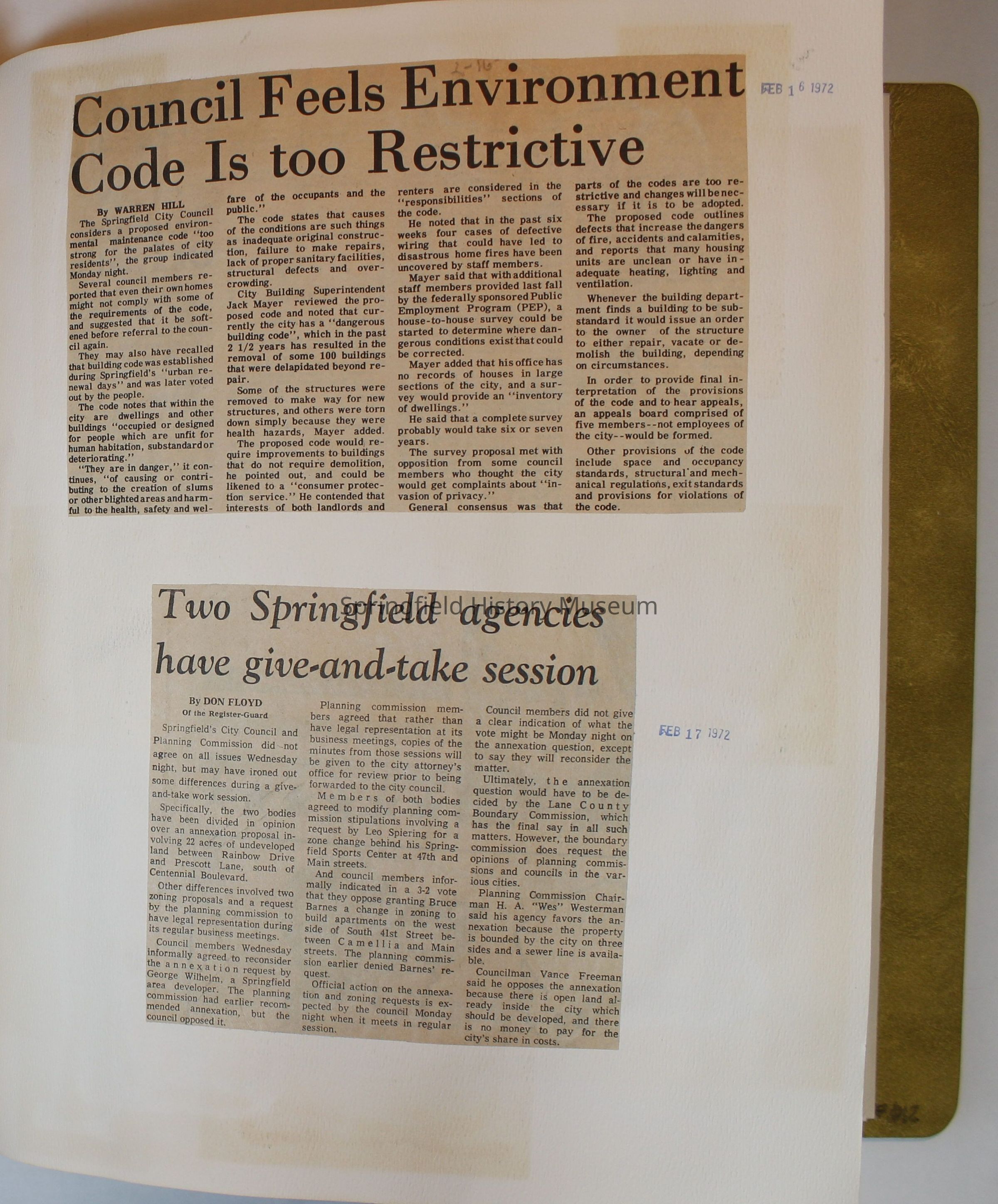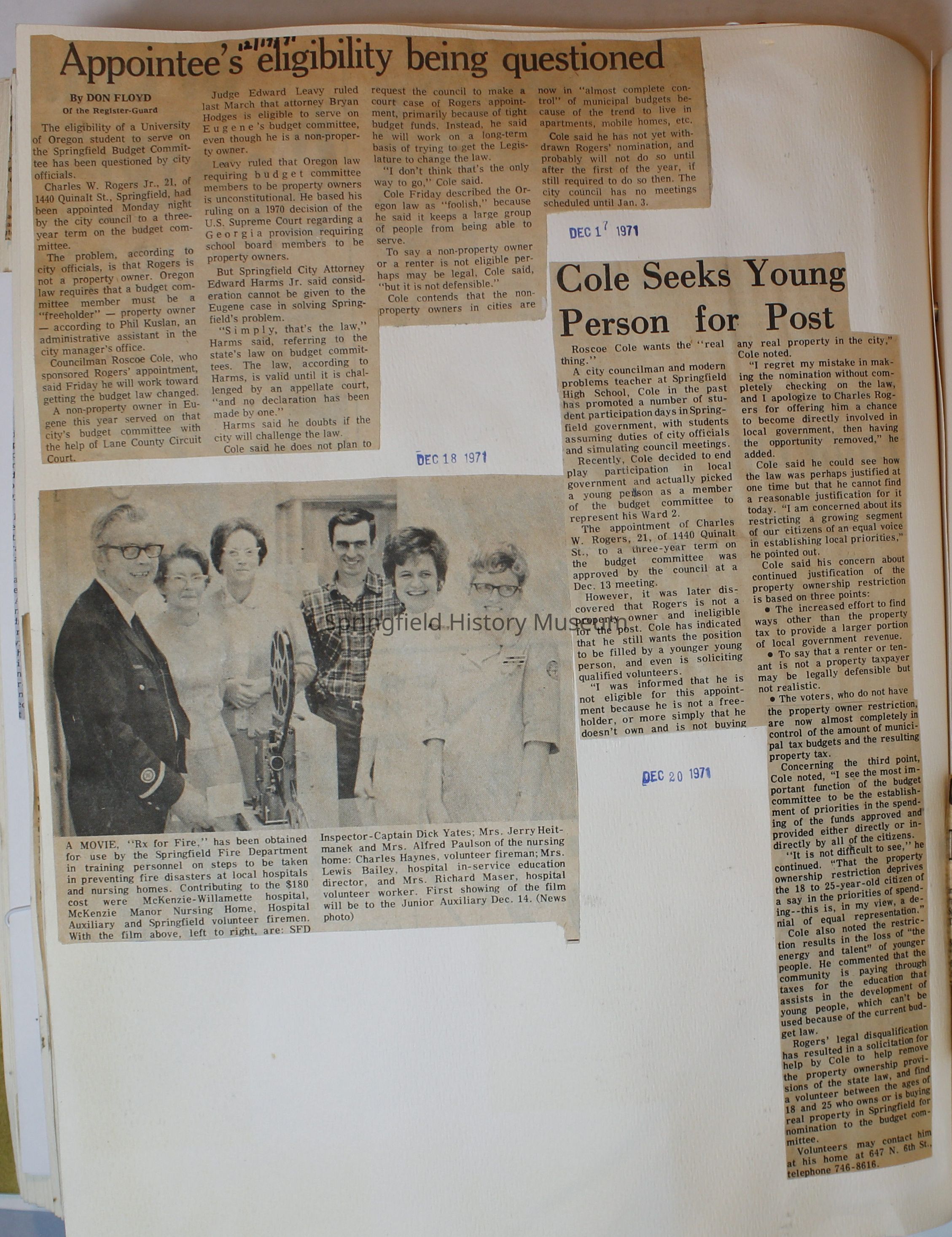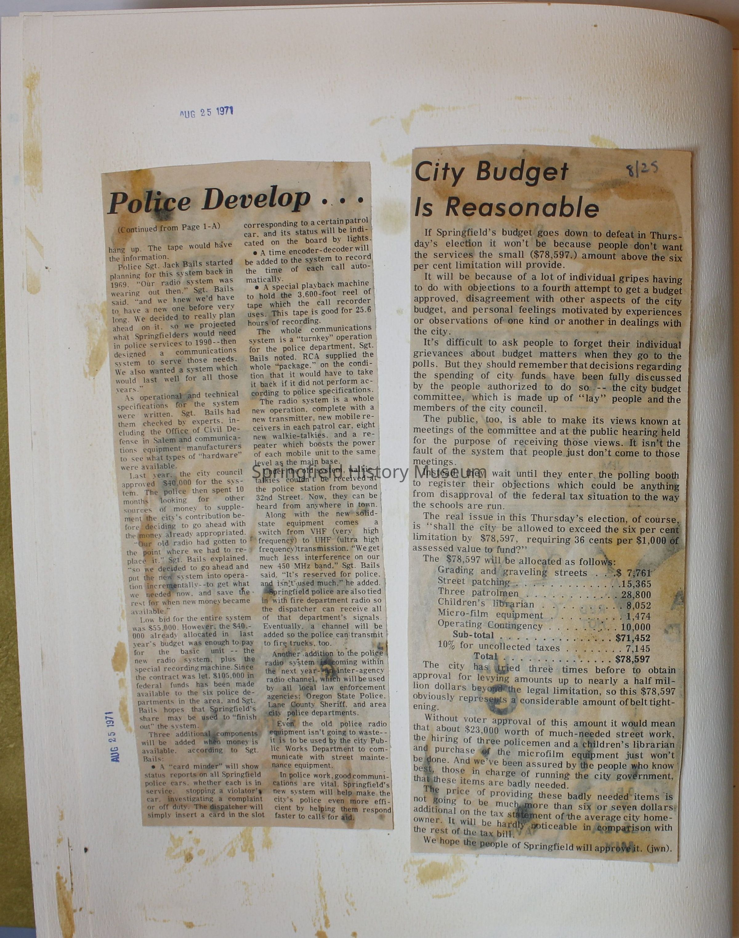 Scrapbook, City of Springfield, 1971-1972Entry/Object ID