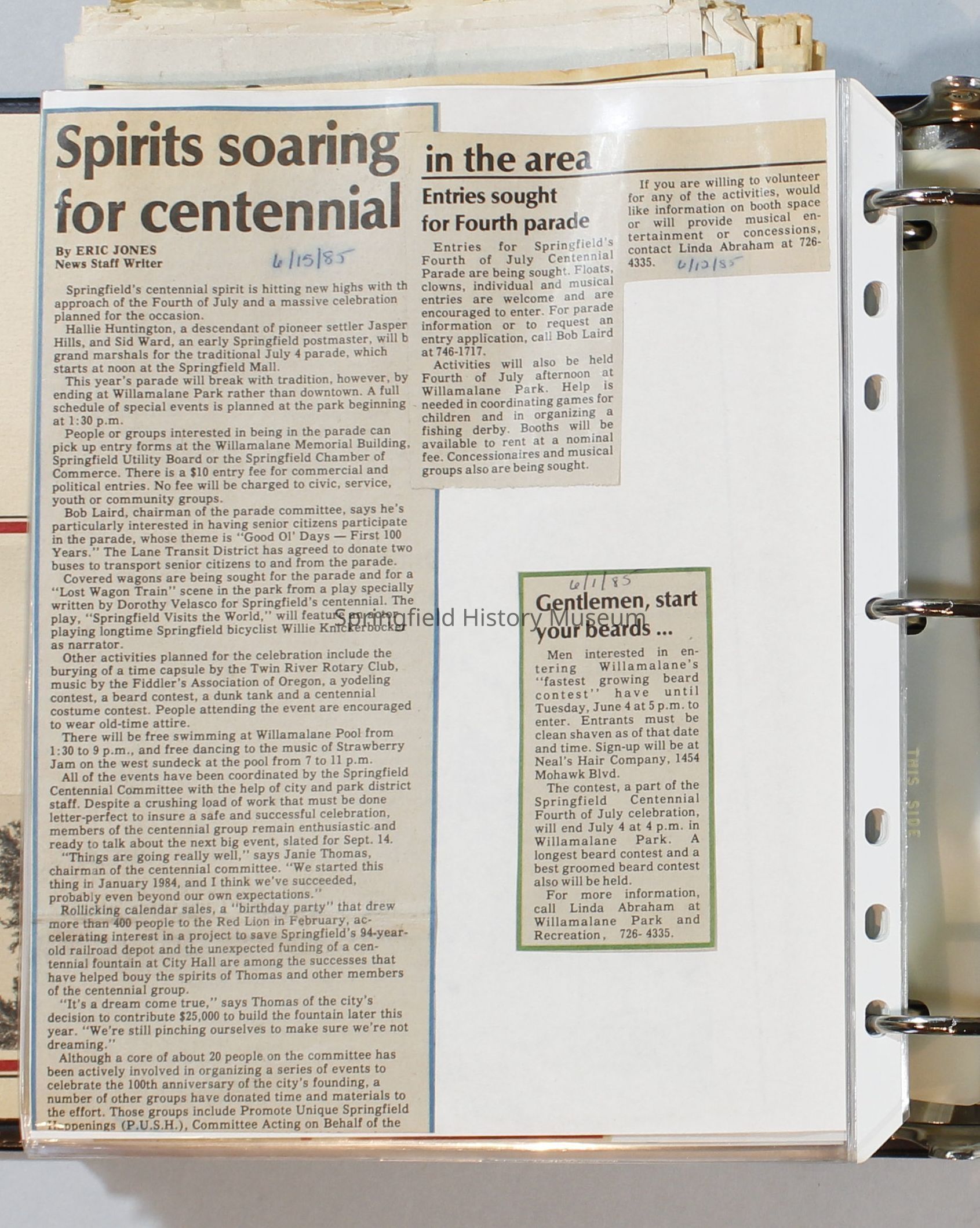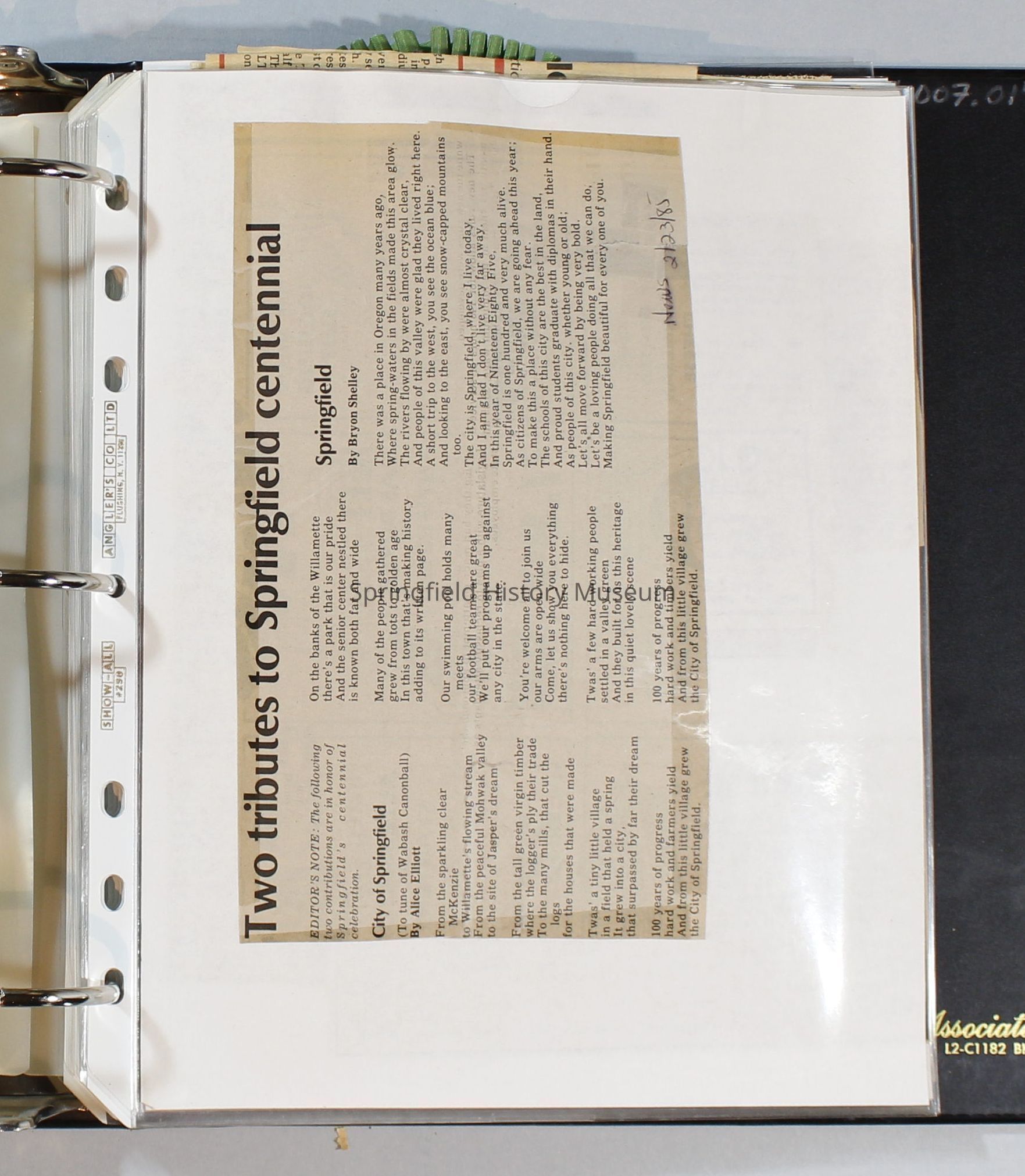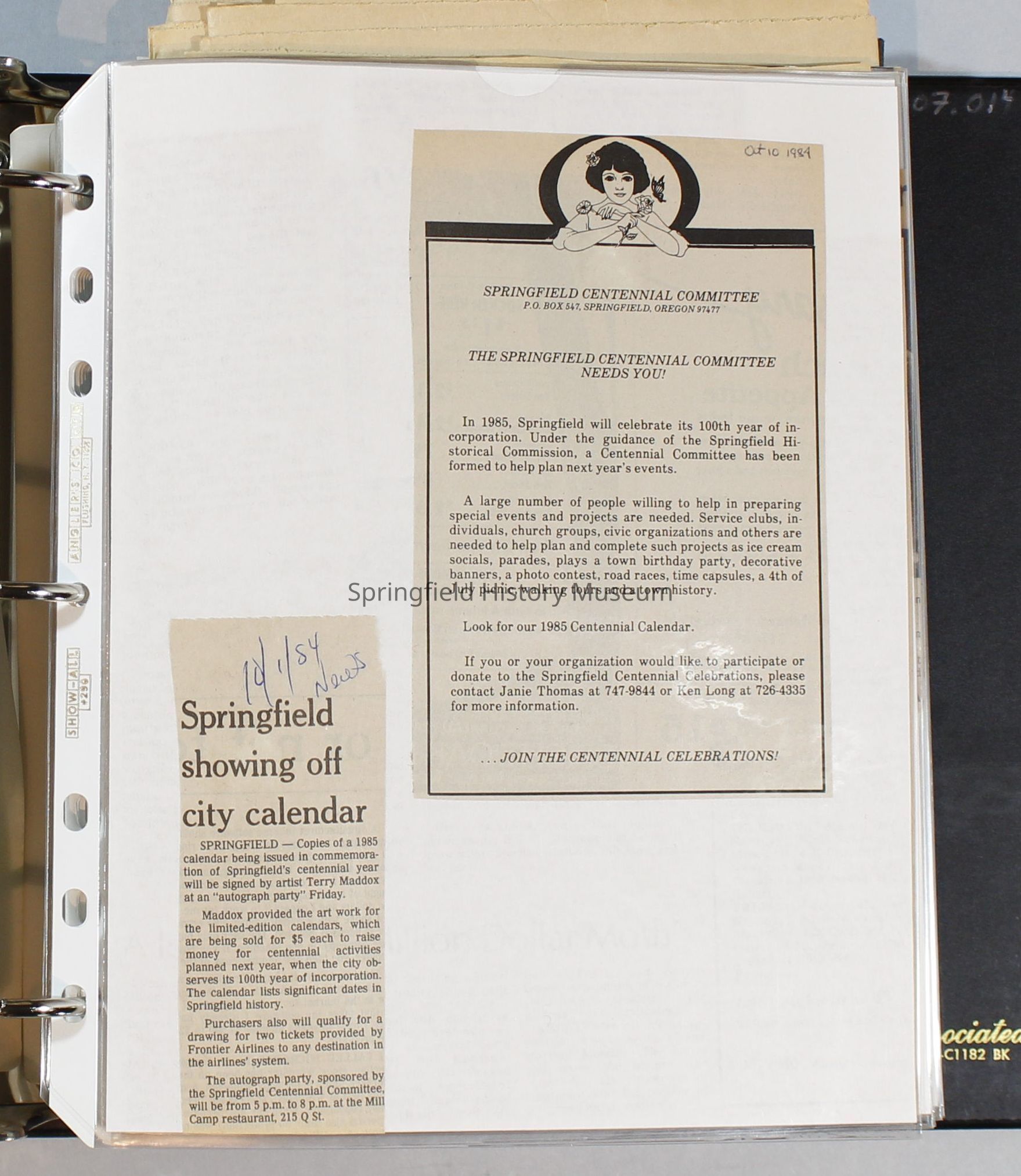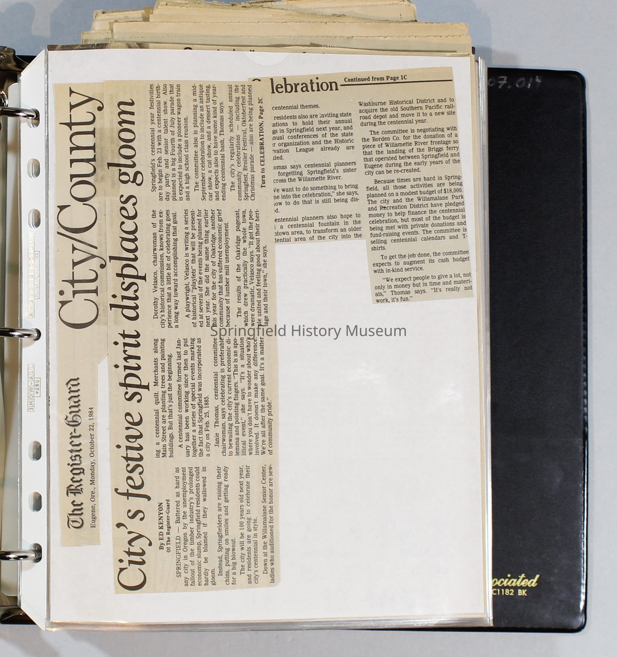 Scrapbook, City of Springfield, 1984-1985Entry/Object ID