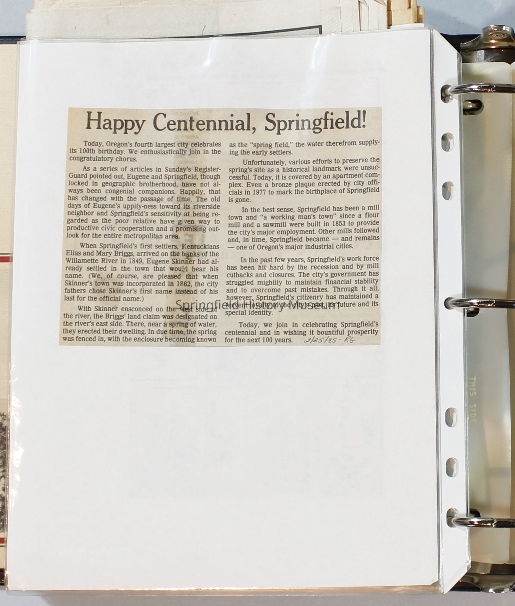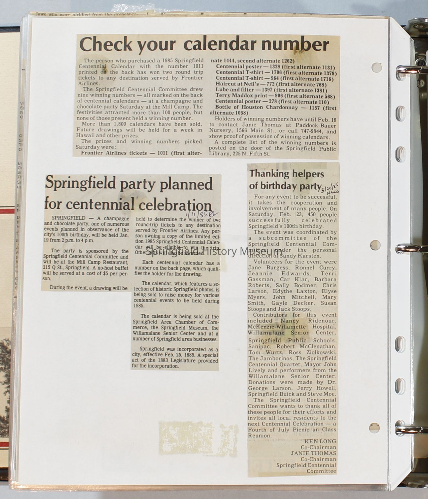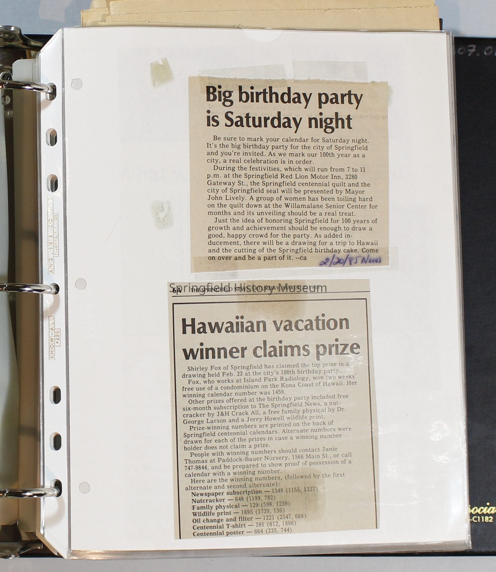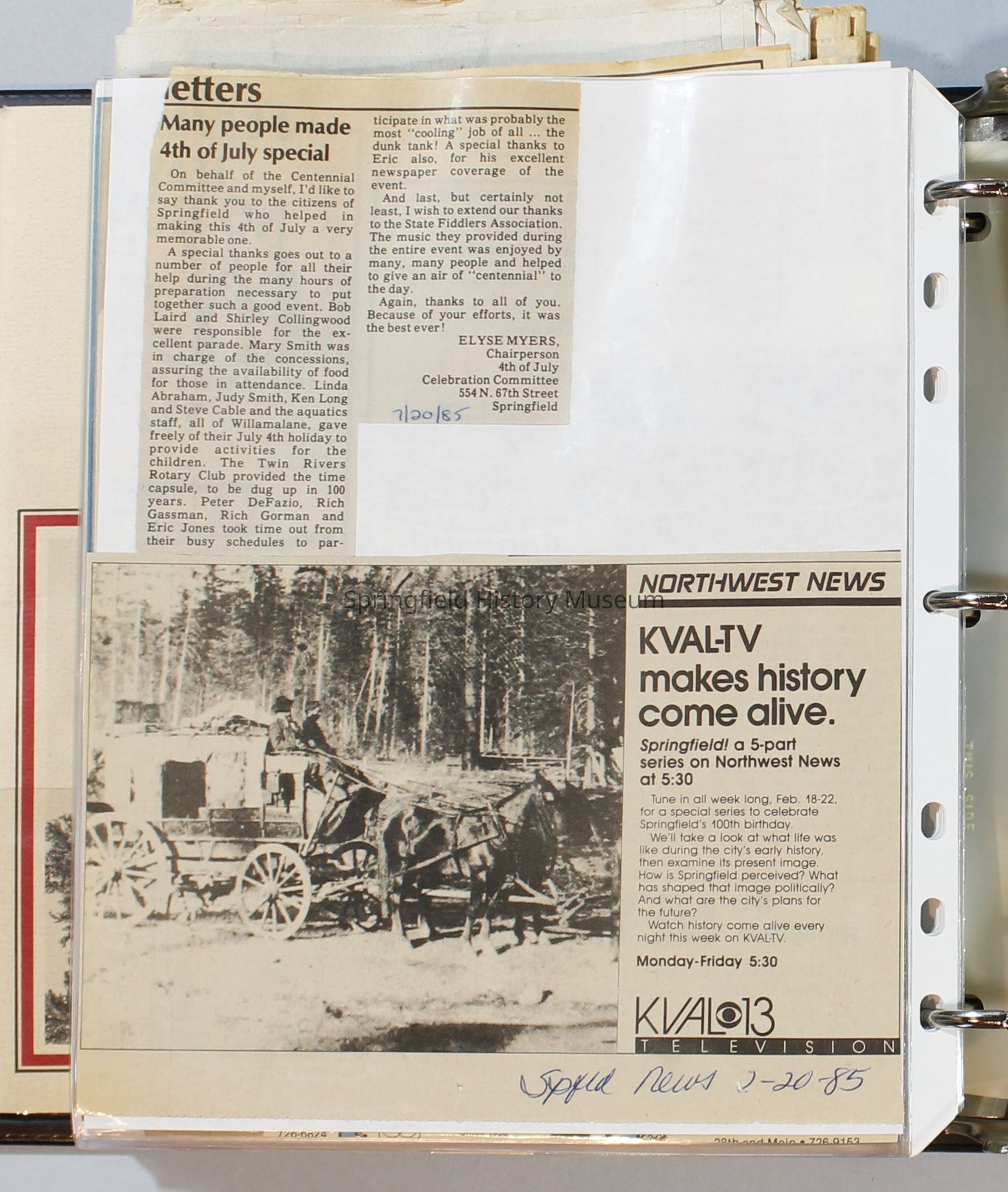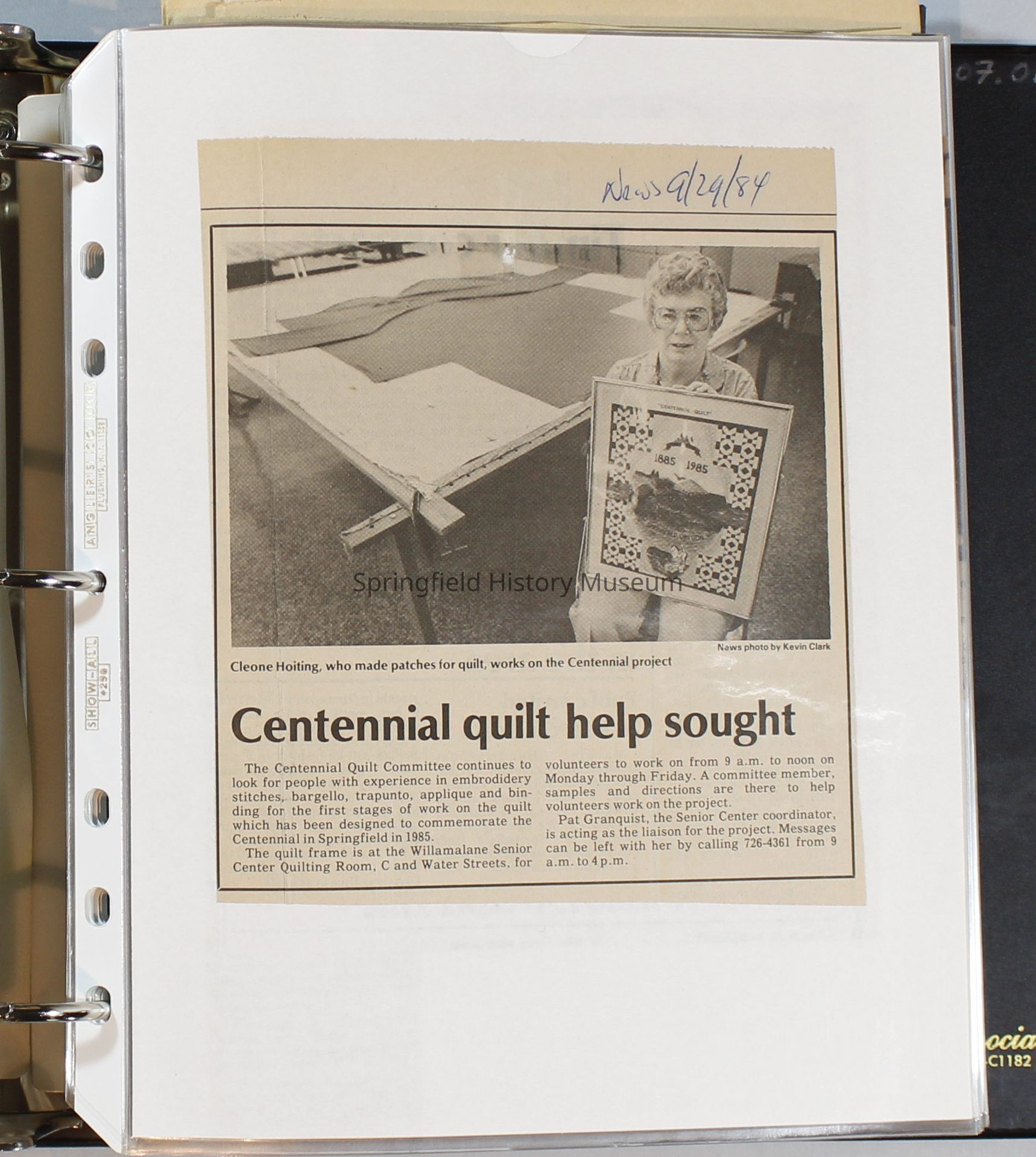 Scrapbook, City of Springfield, 1984-1985Entry/Object ID