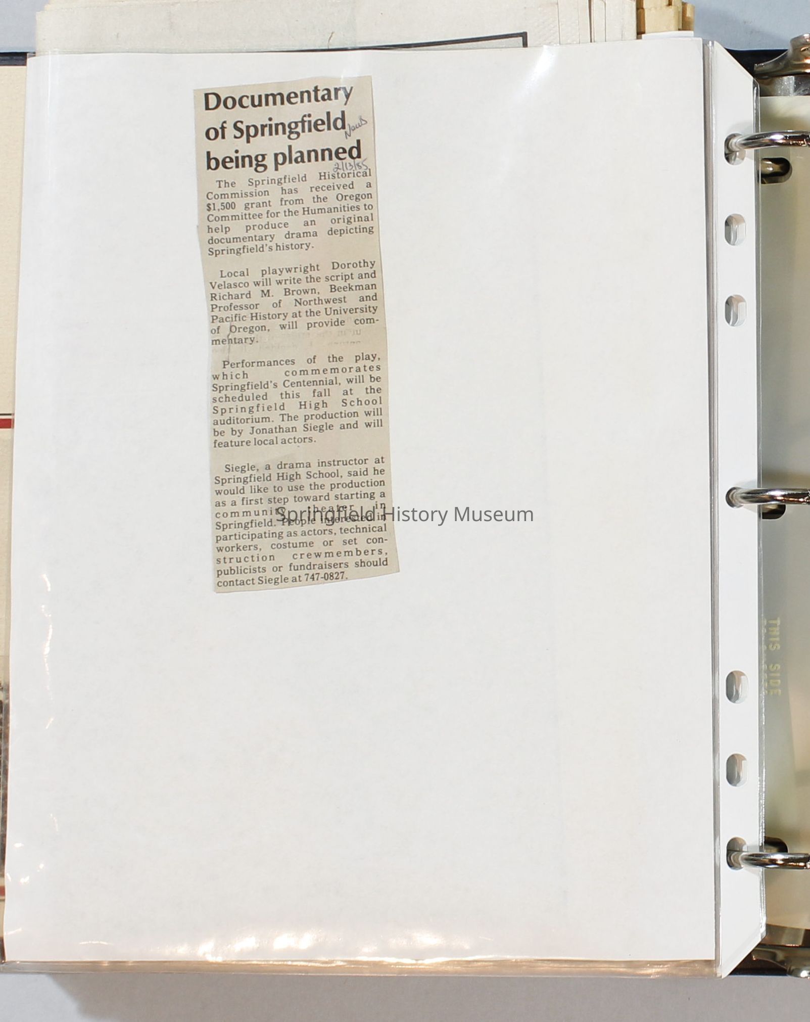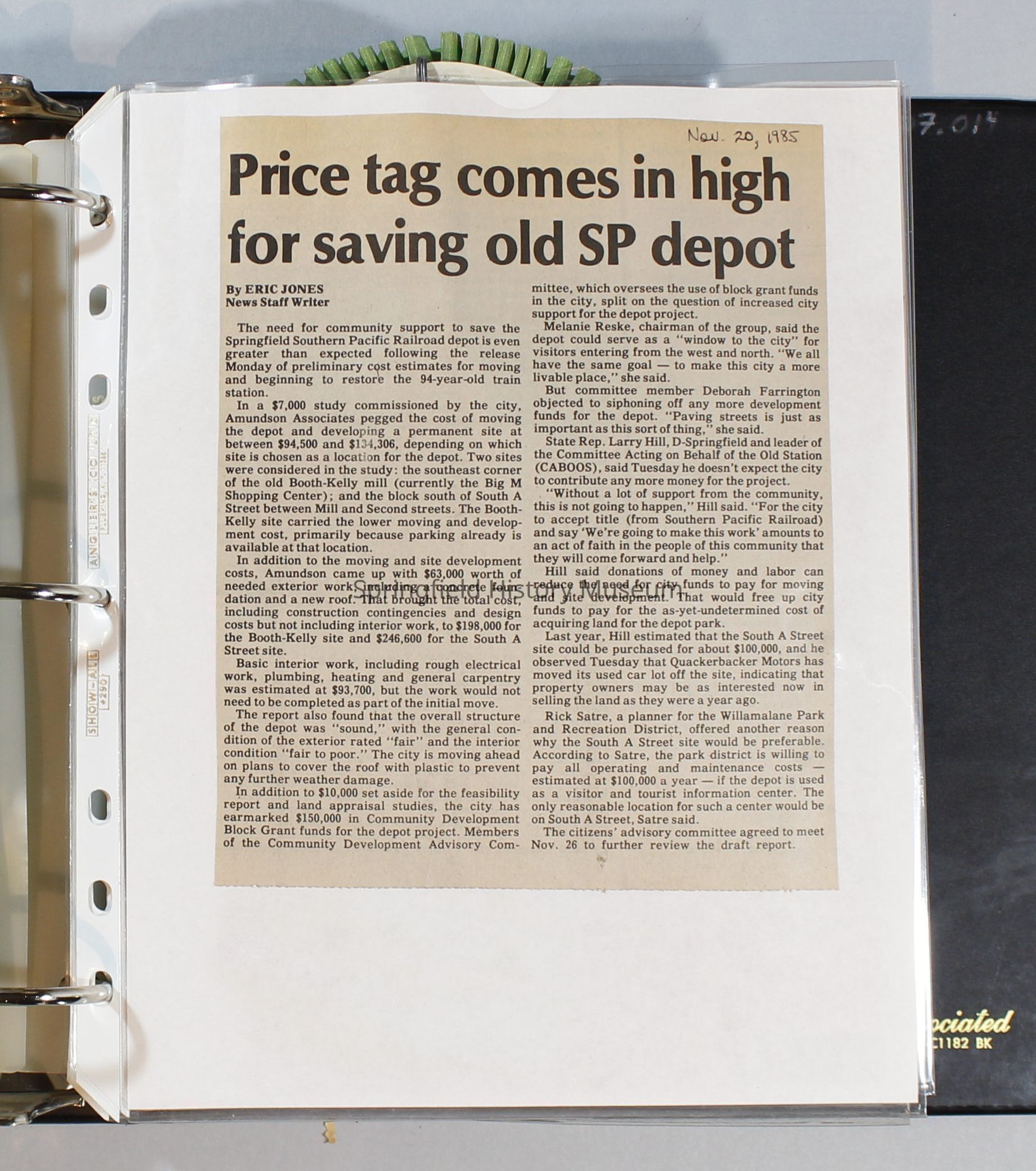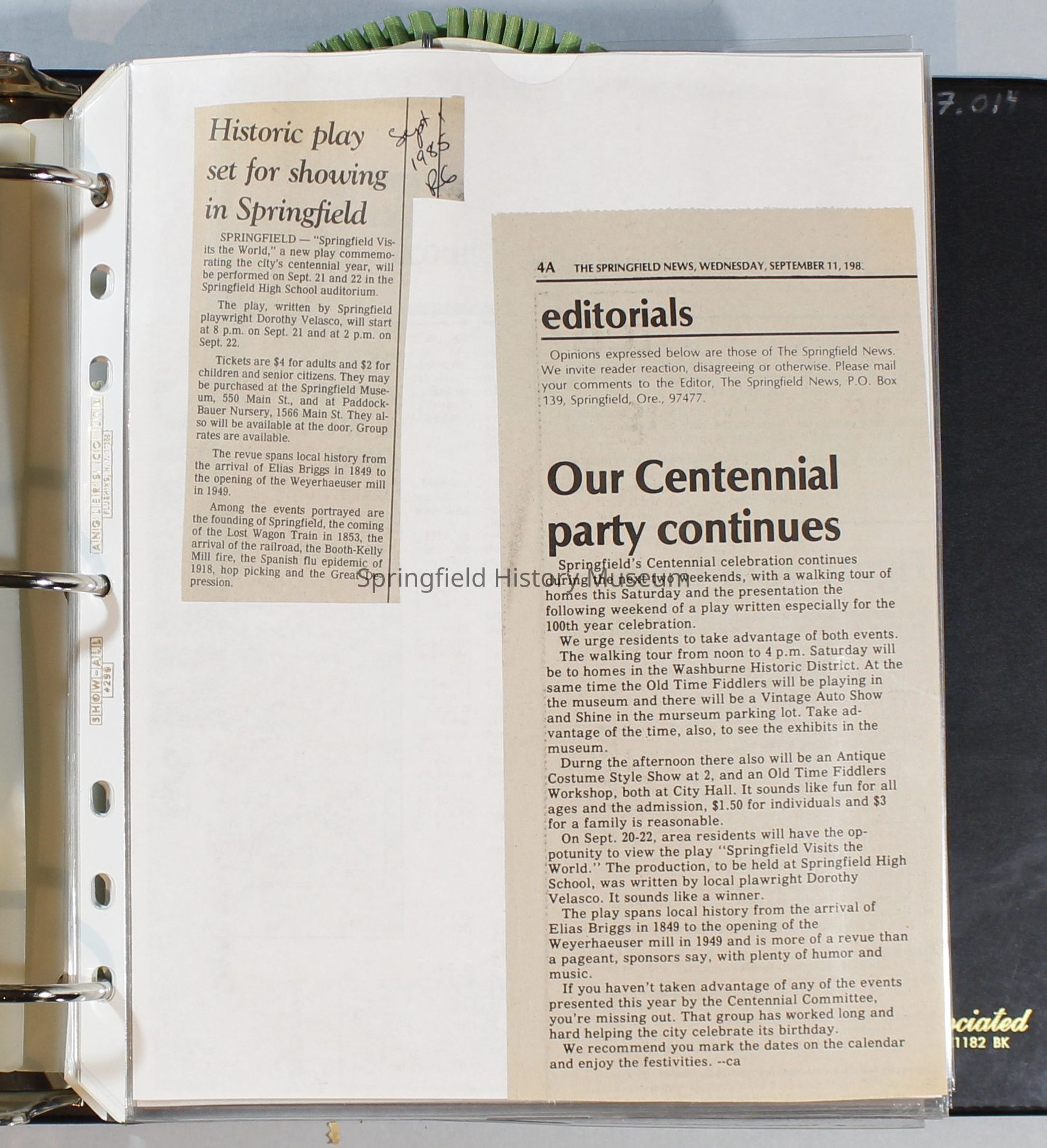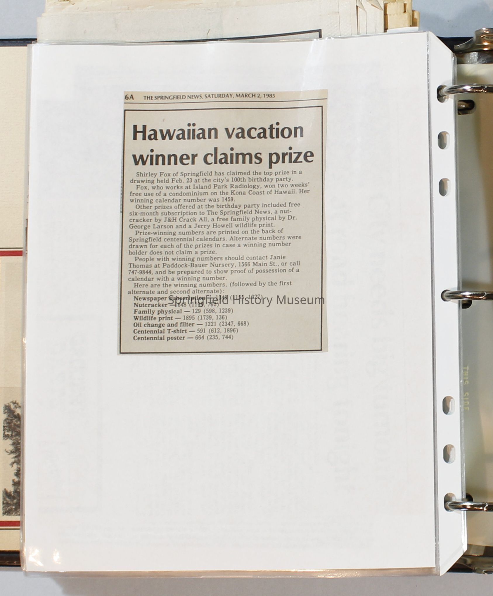 Scrapbook, City of Springfield, 1984-1985Entry/Object ID