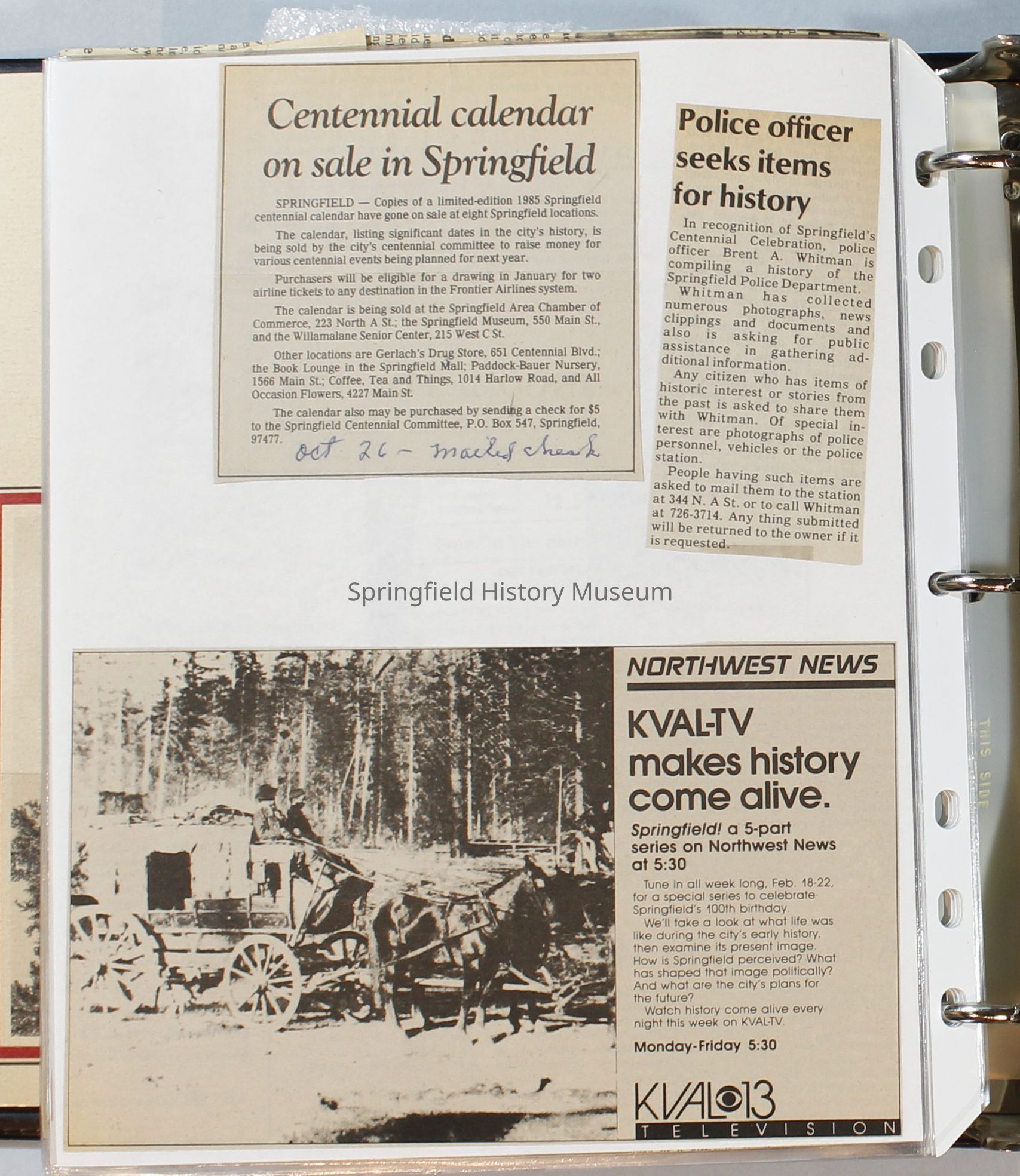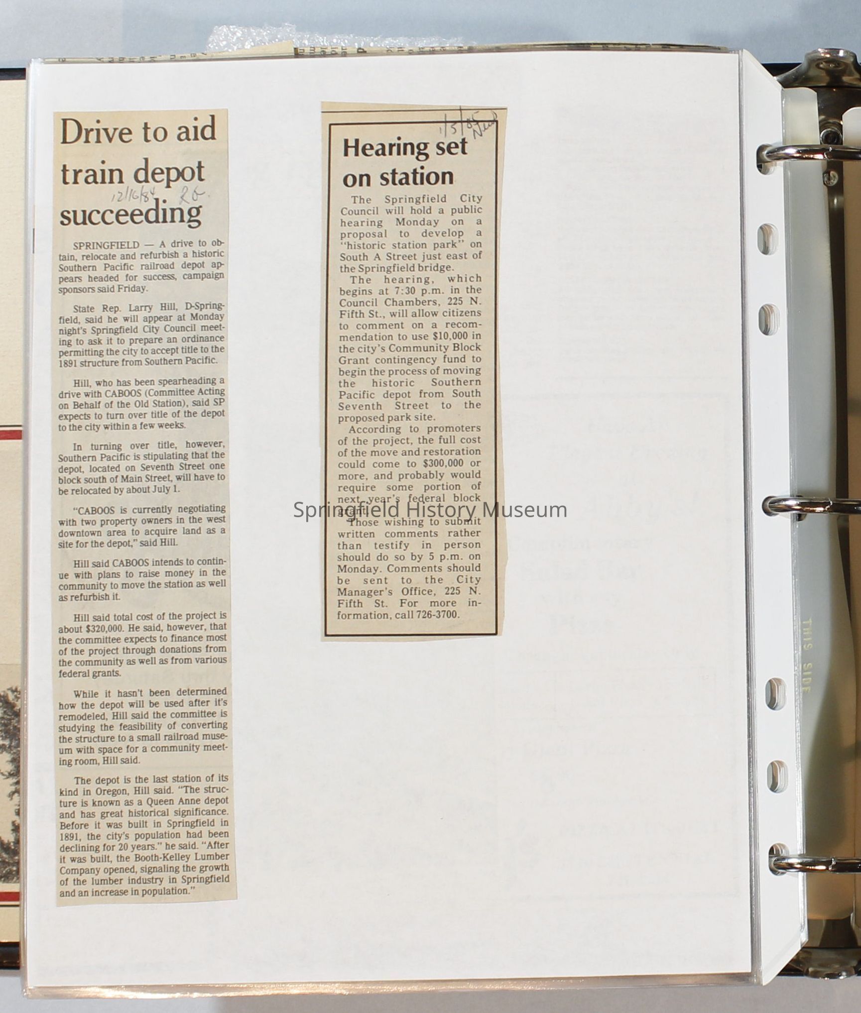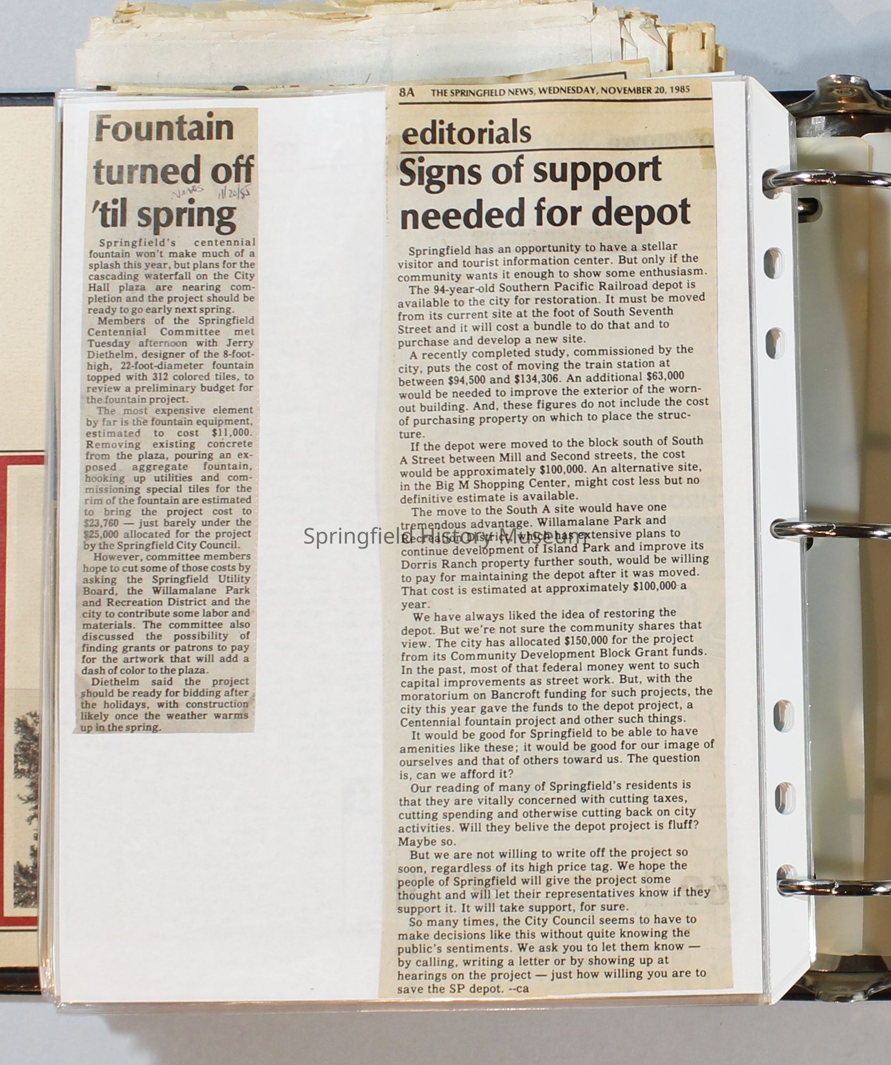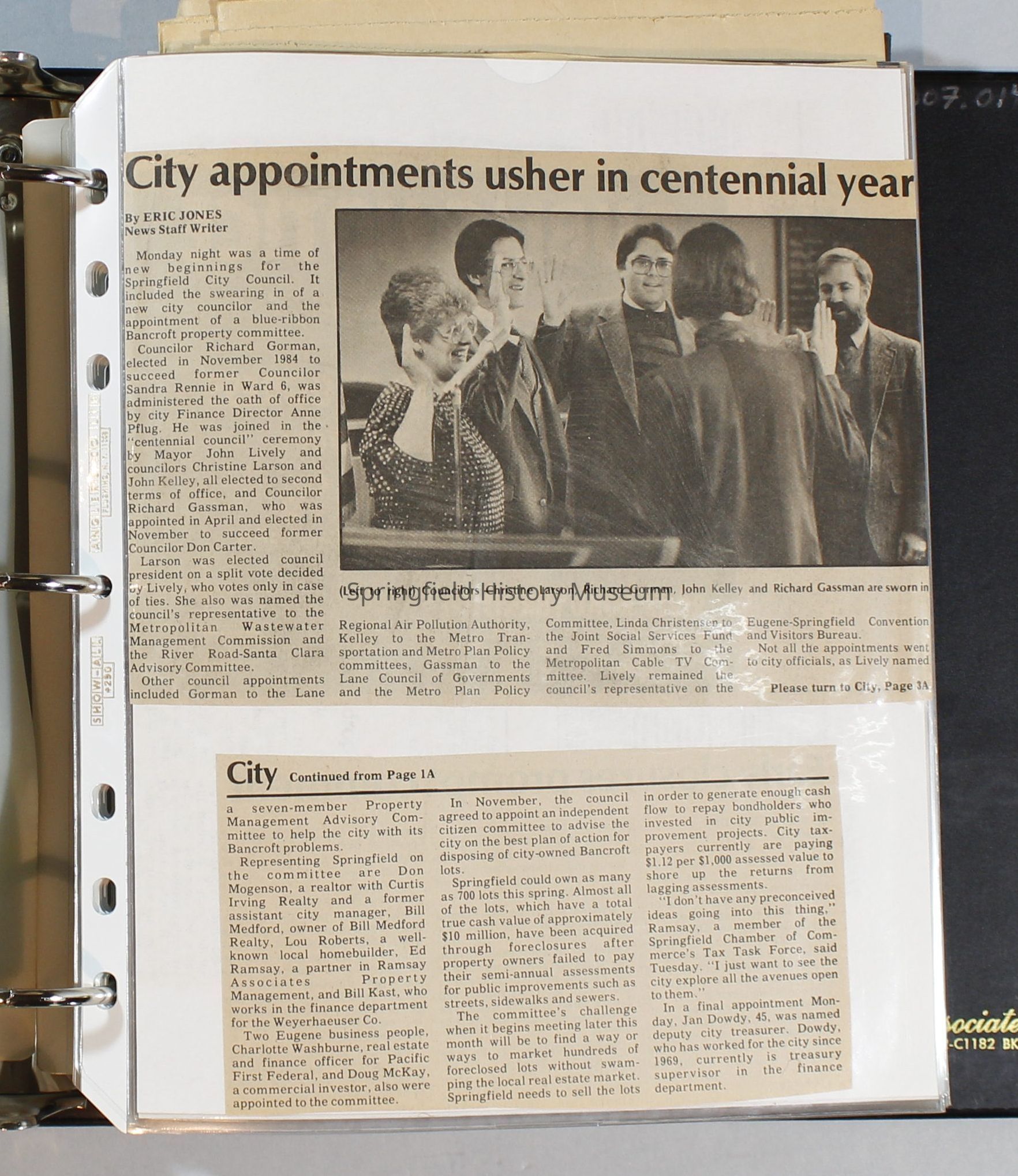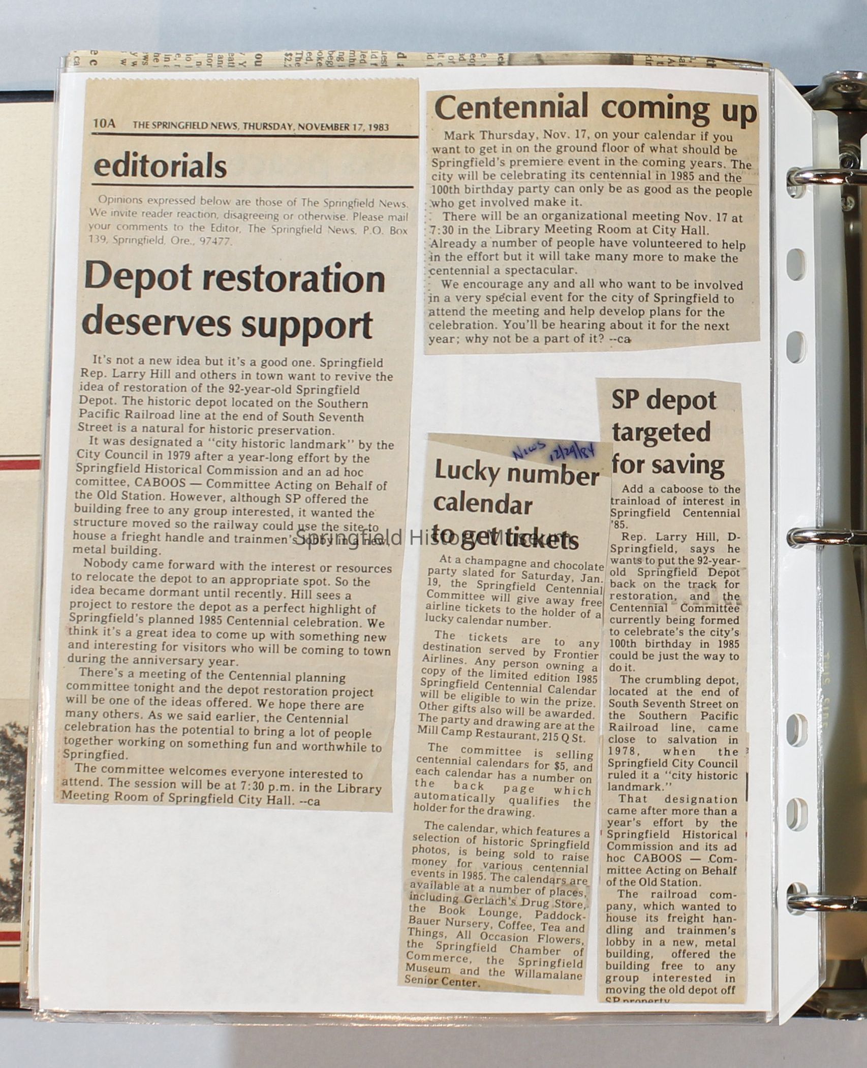 Scrapbook, City of Springfield, October 1984 through February 1985