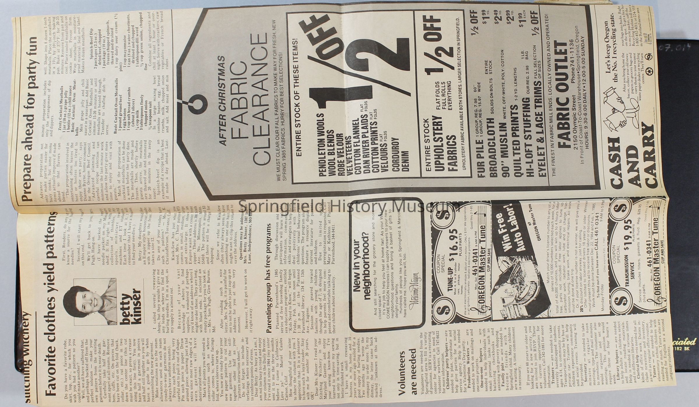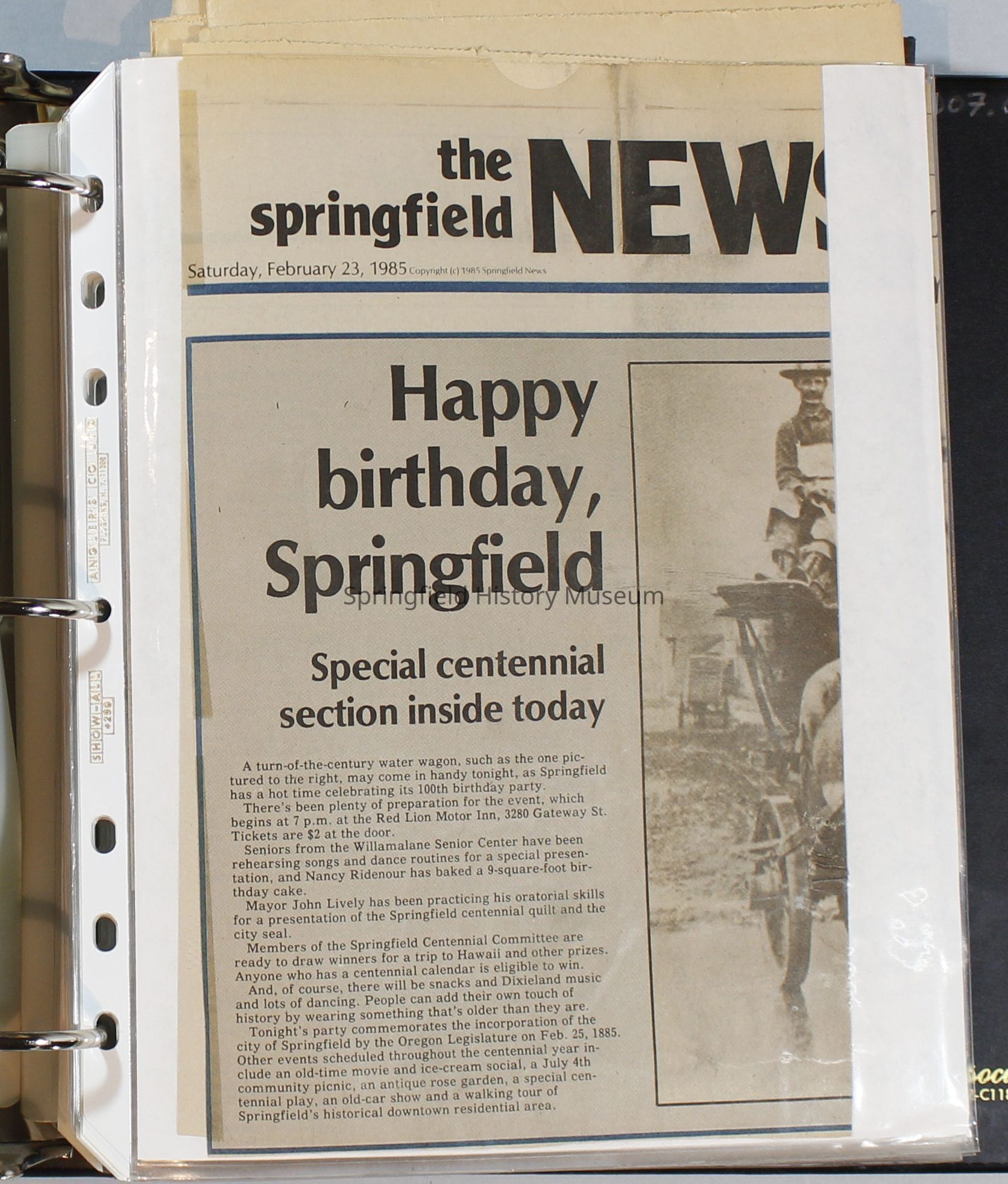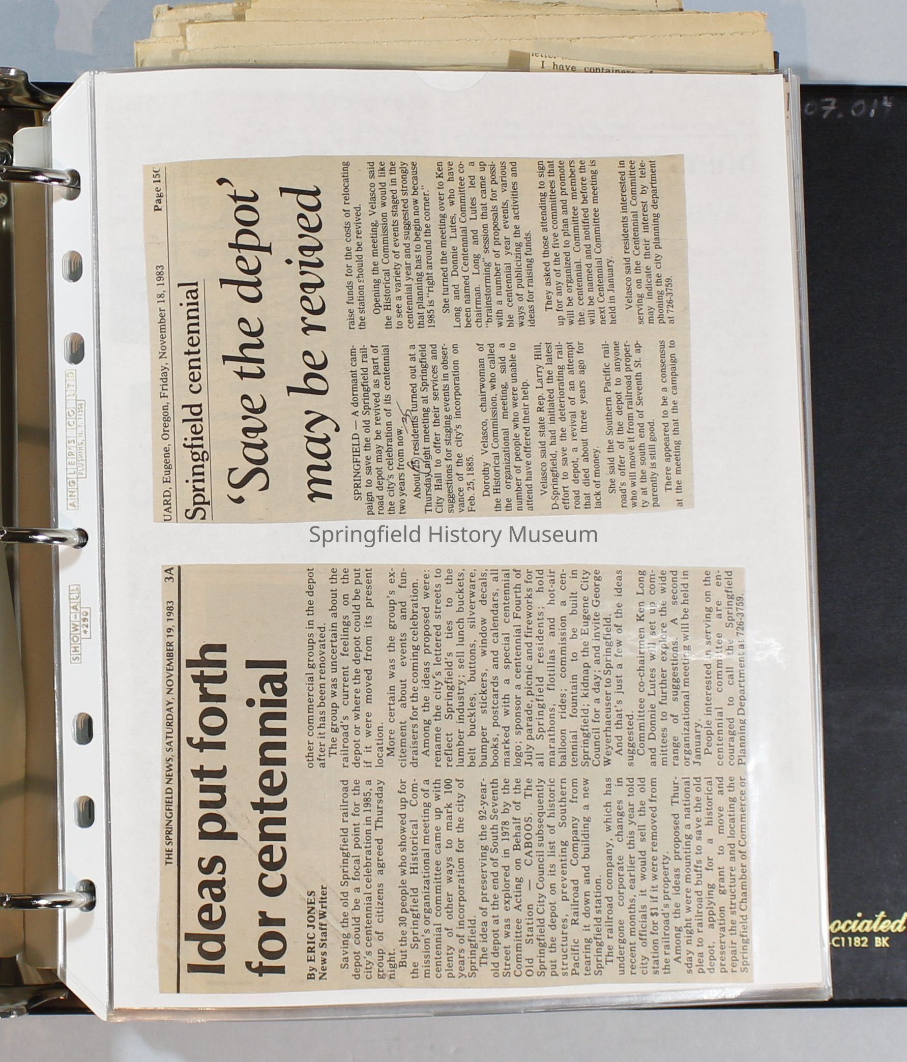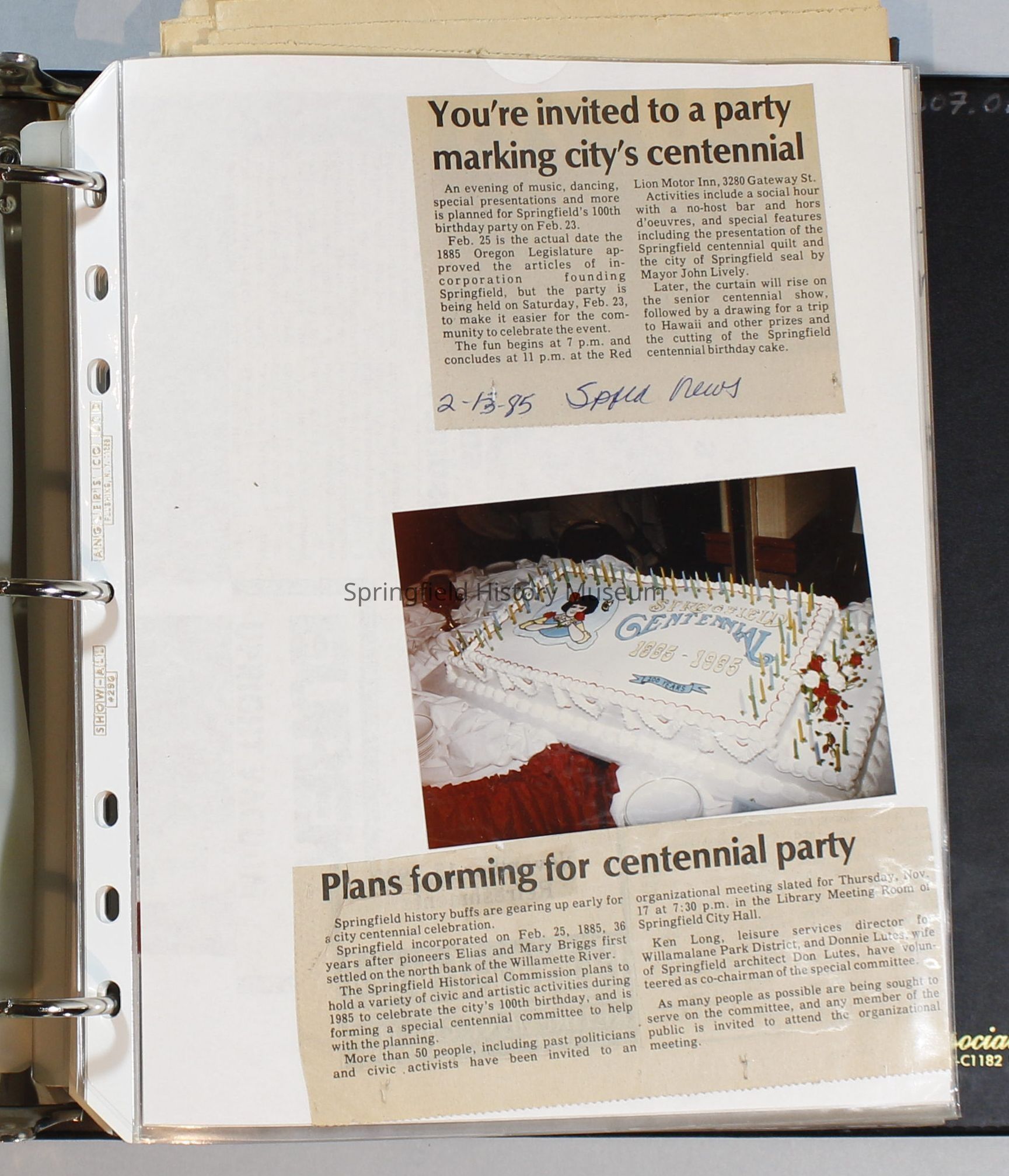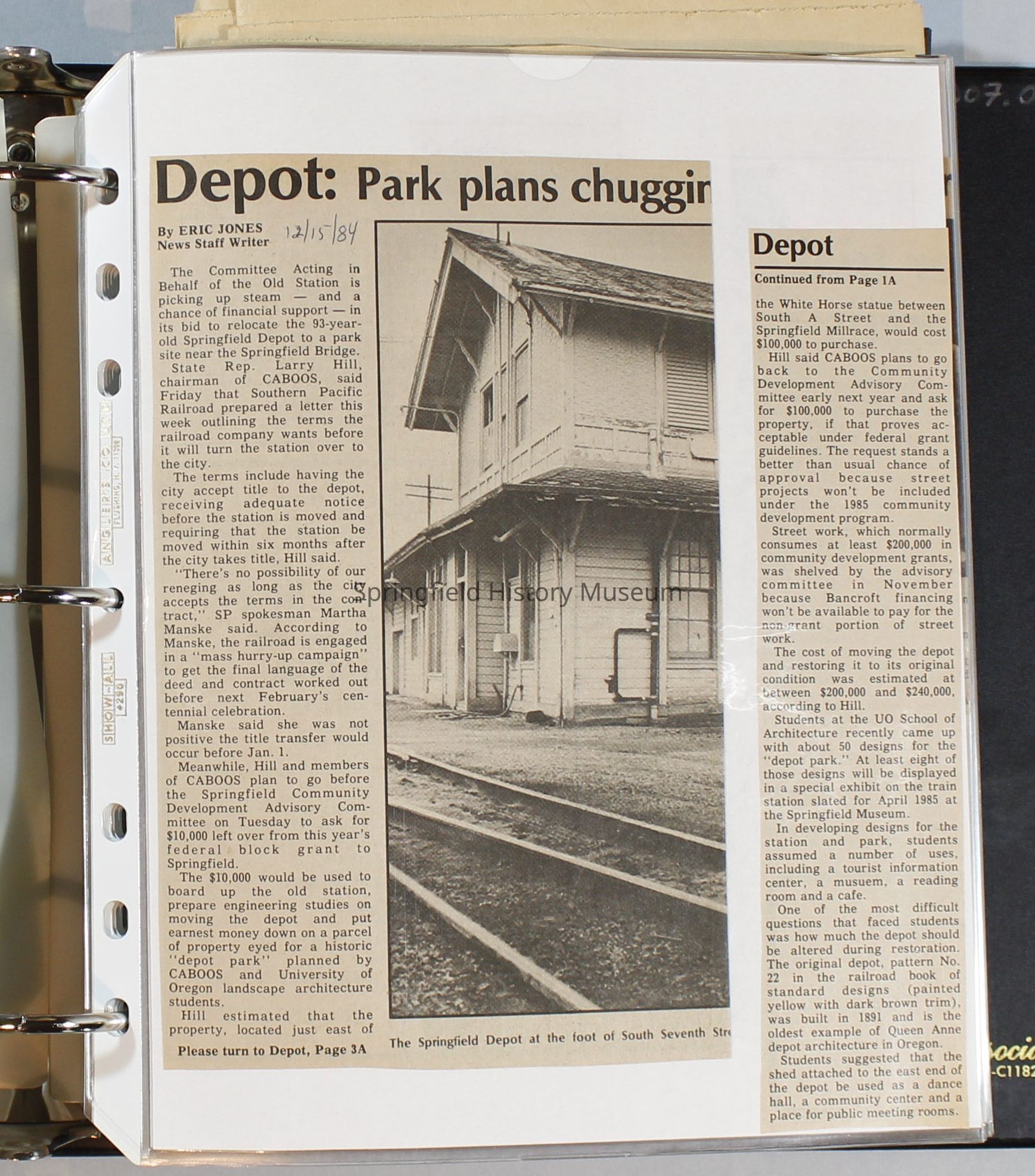 Scrapbook, City of Springfield, October 1984 through February 1985