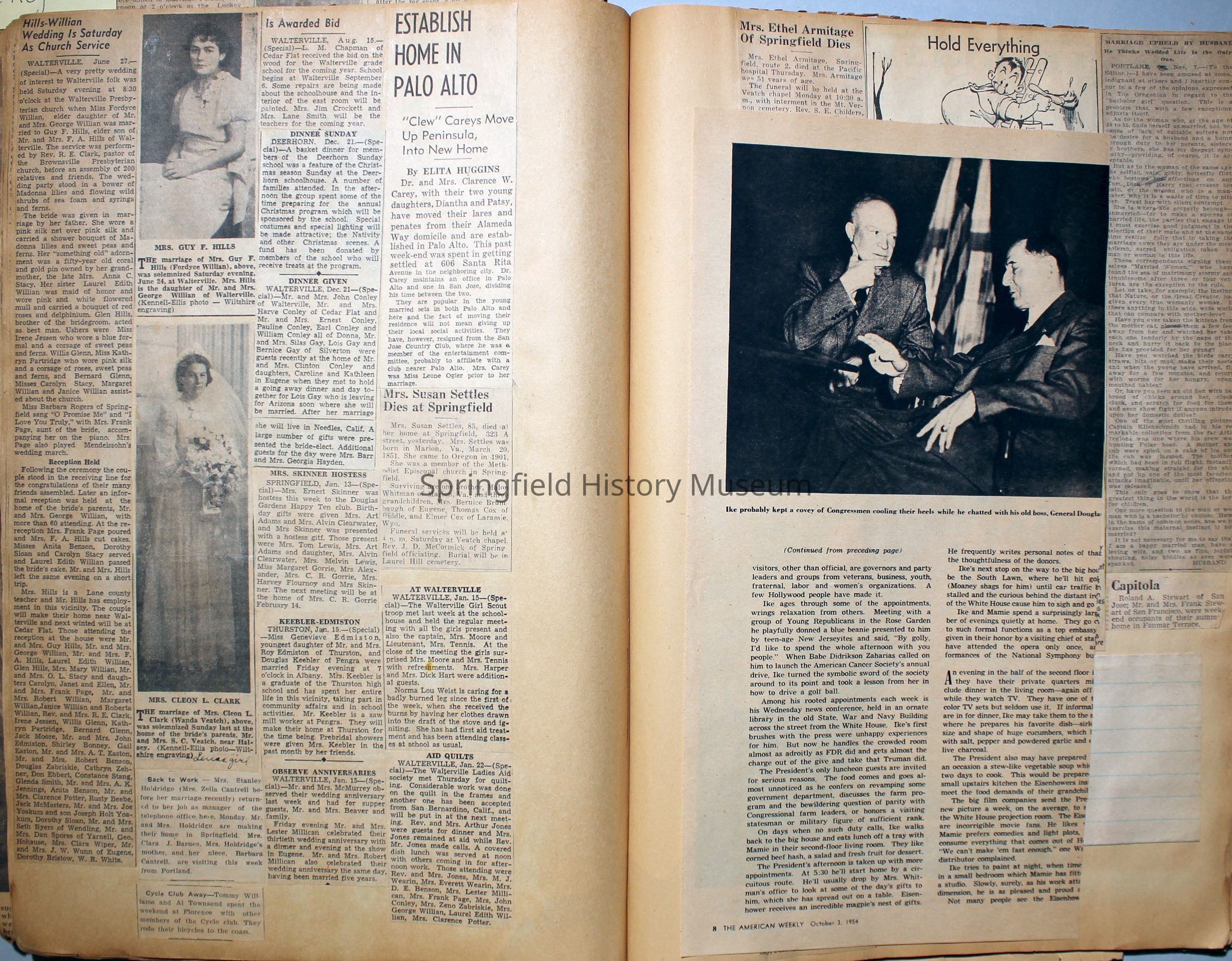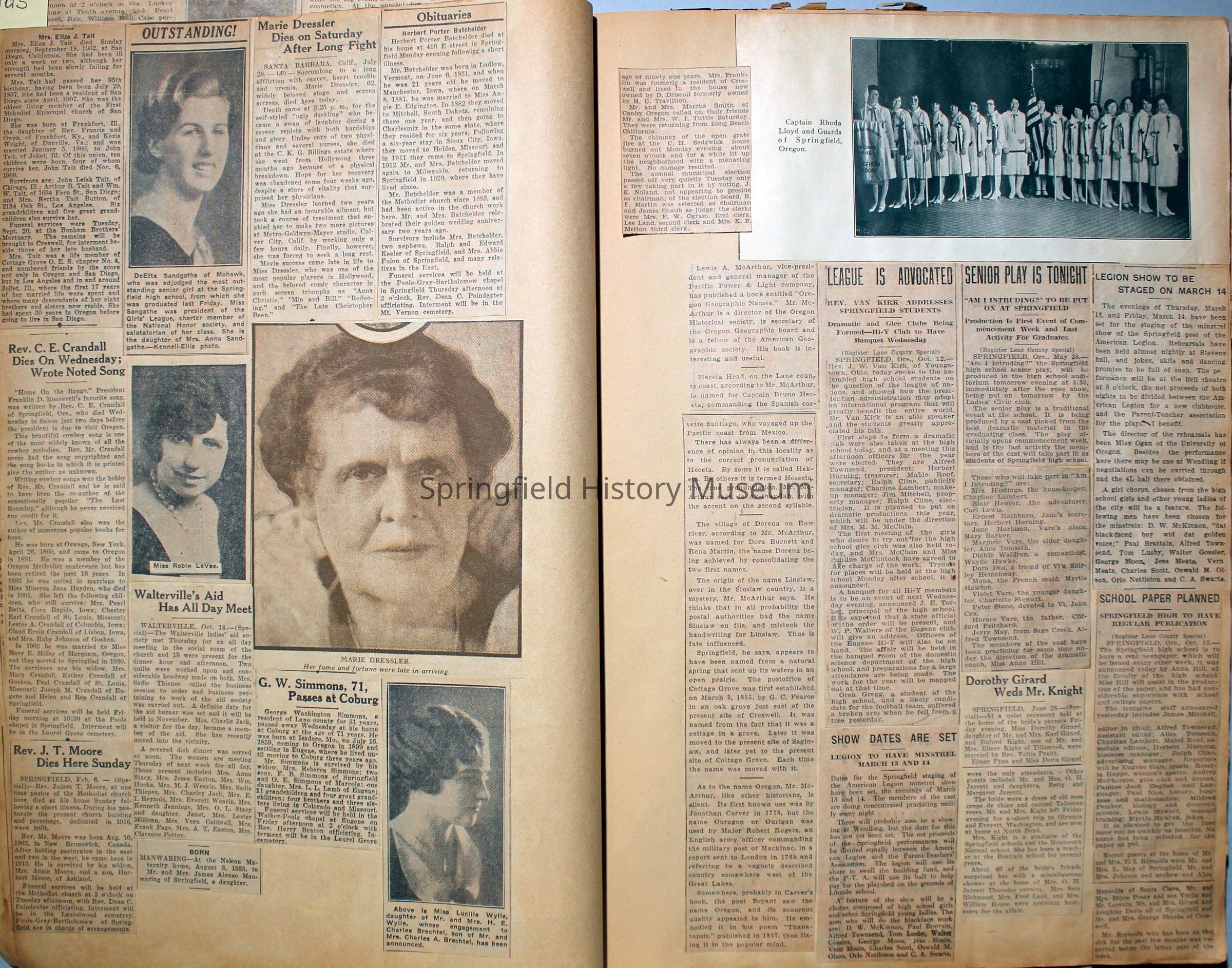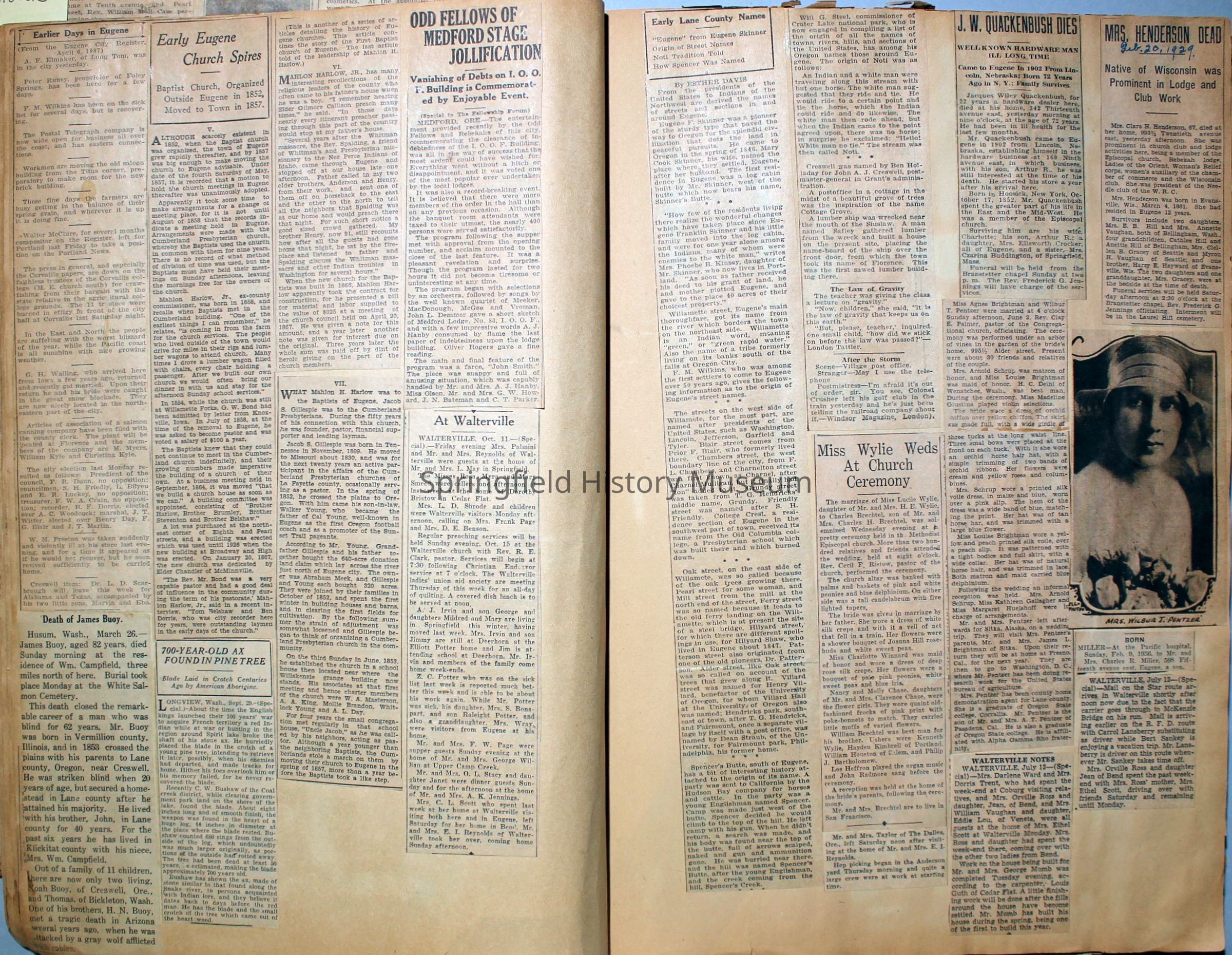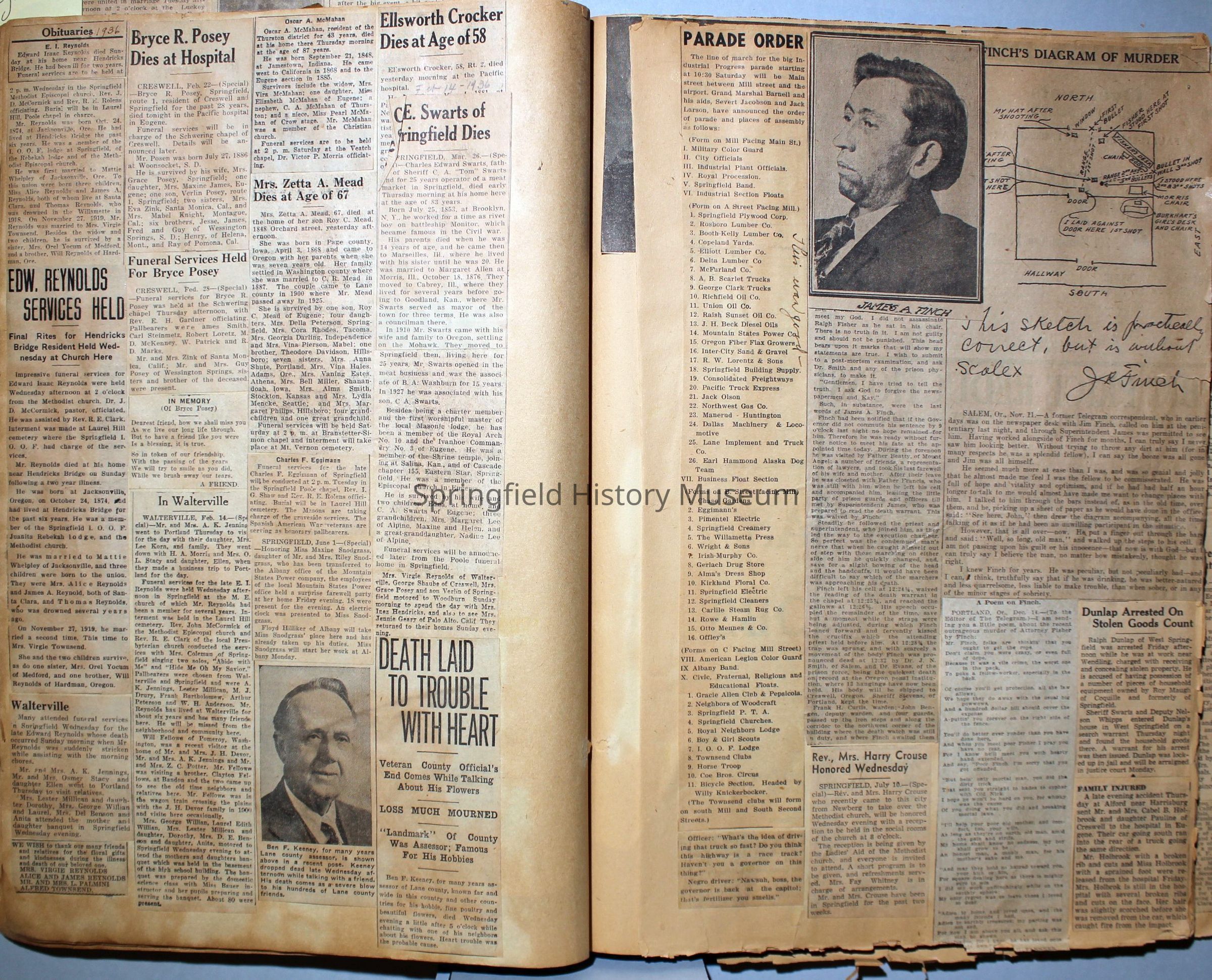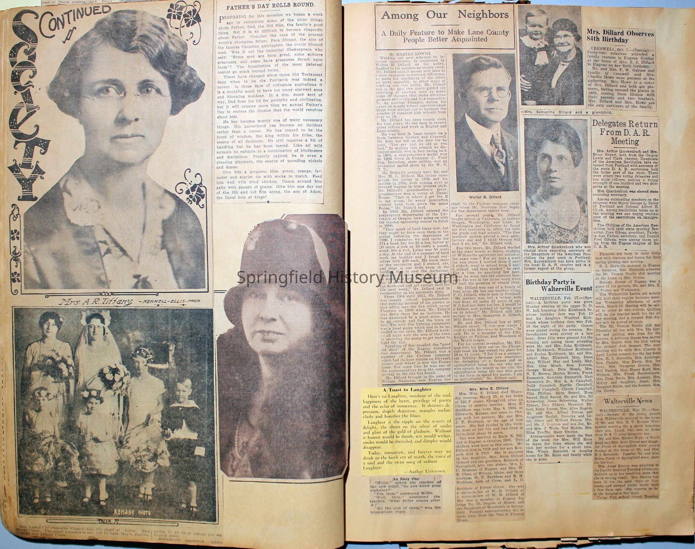 Cover reads: "Scrapbook for Pictures." Paperback scrapbook; newspaper clippings about local news, families and friends, advertisements, as well as letters and drawings from children and other relatives; dates from 1920 through 1940.Collection