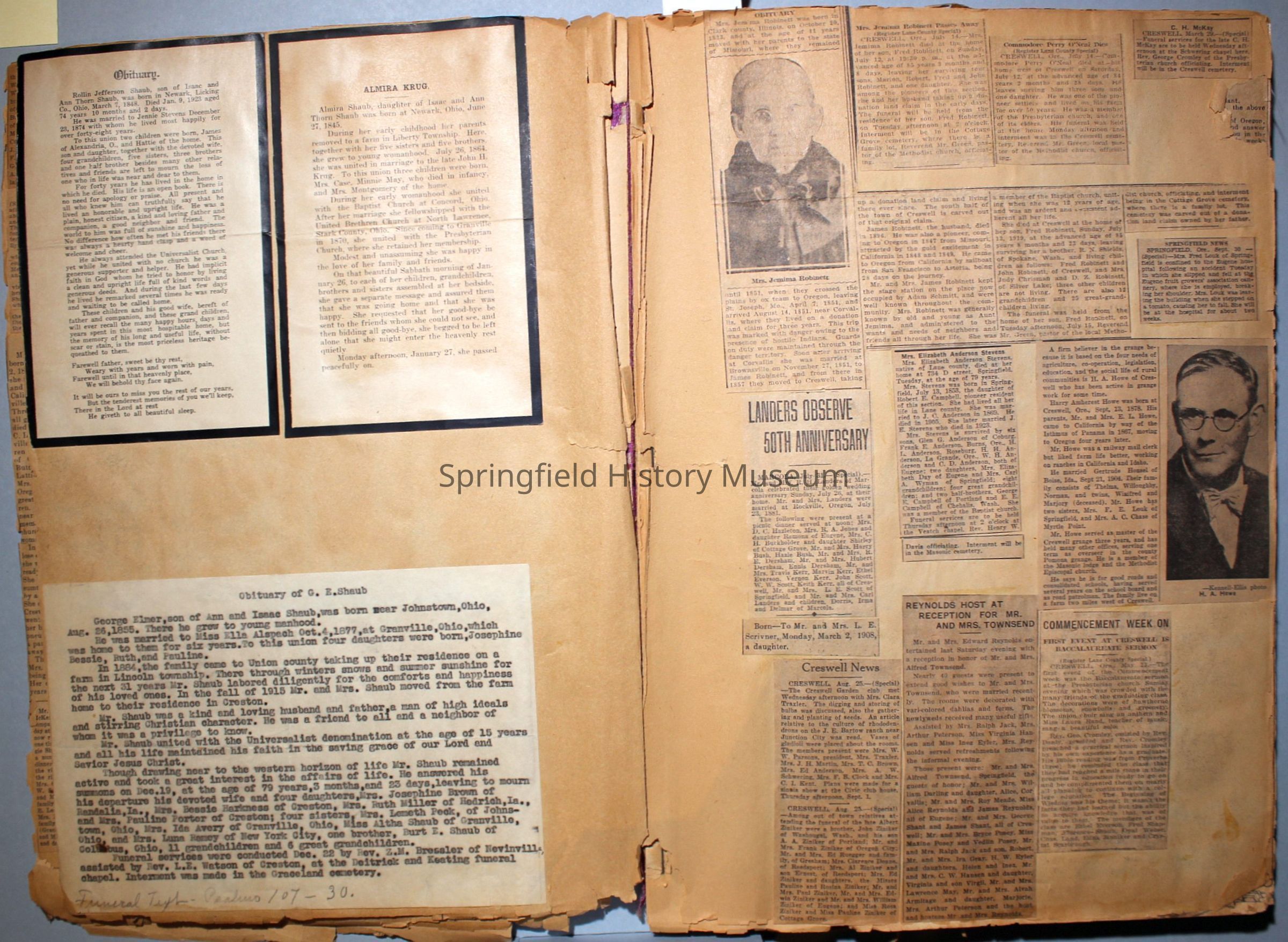 Scrapbook created by Virginia (Virgie) Almira Shaub Townsend Reynolds (1881-1965).