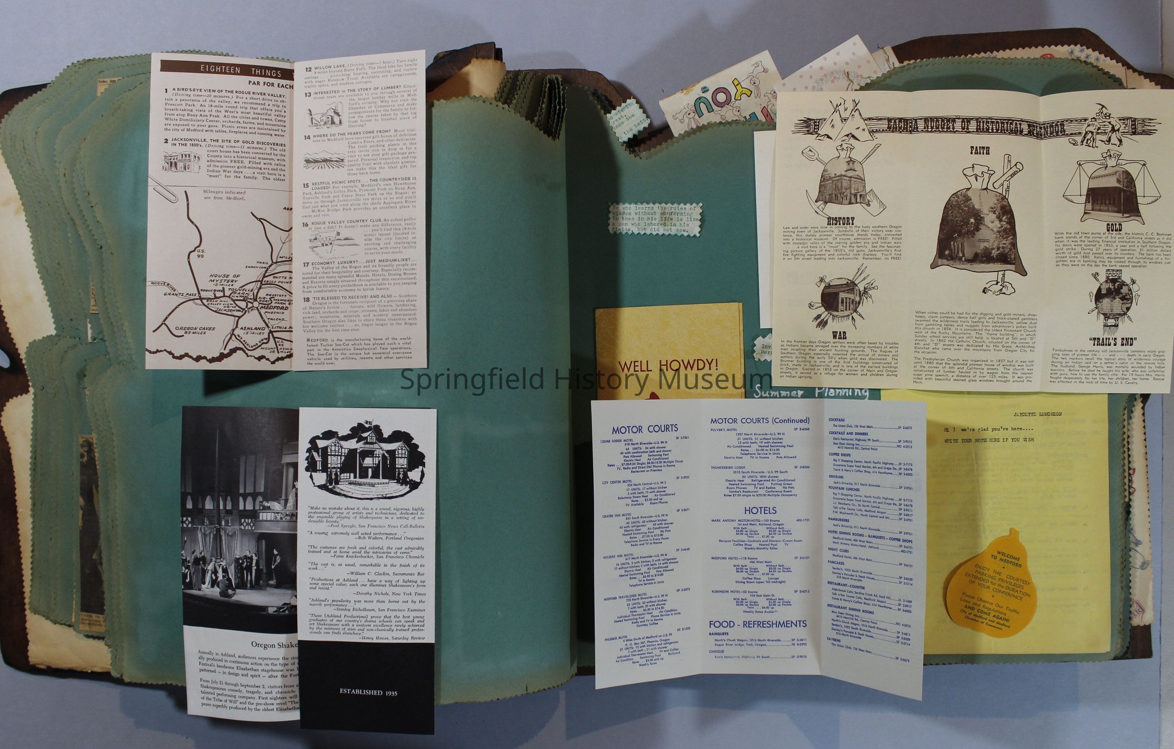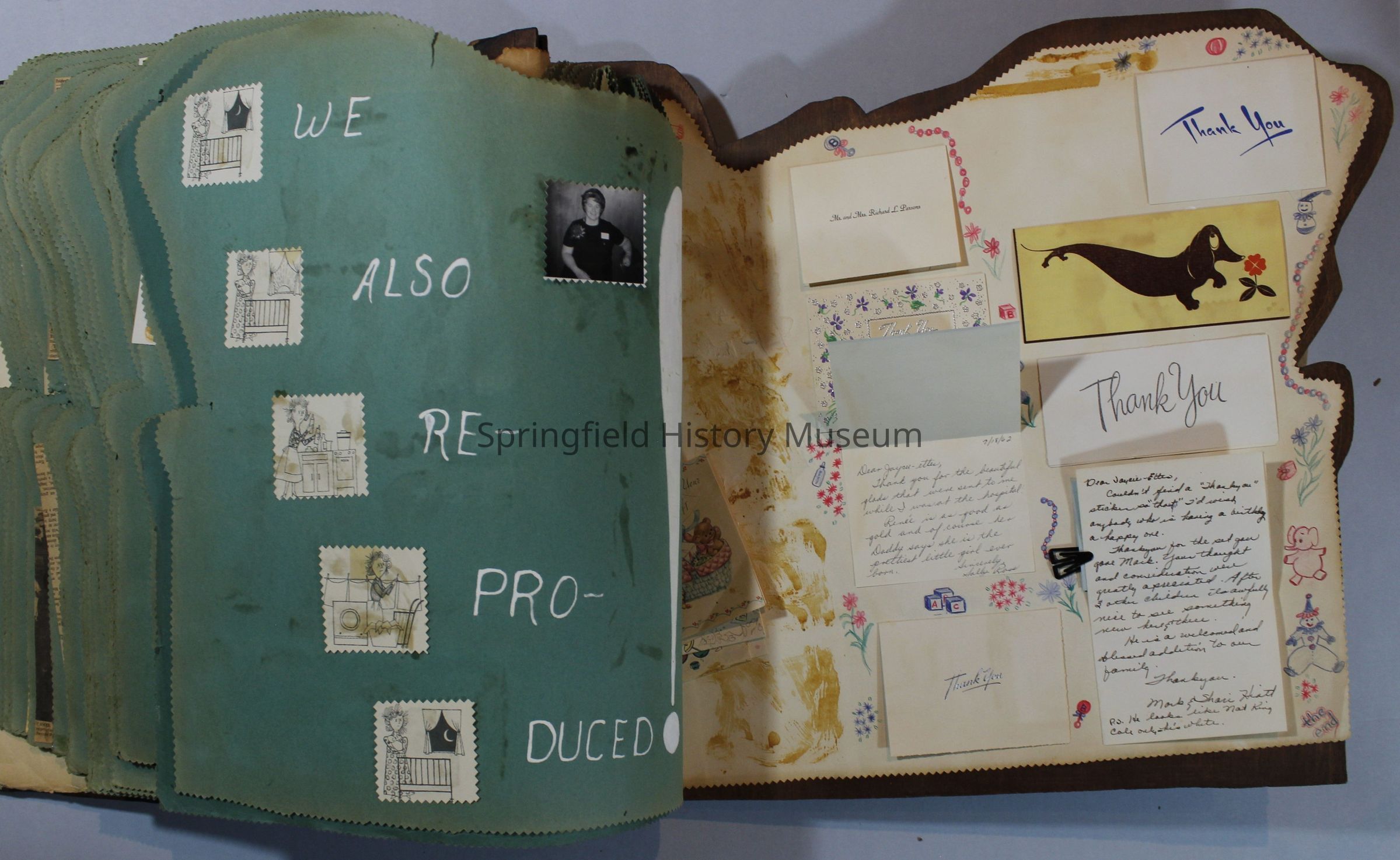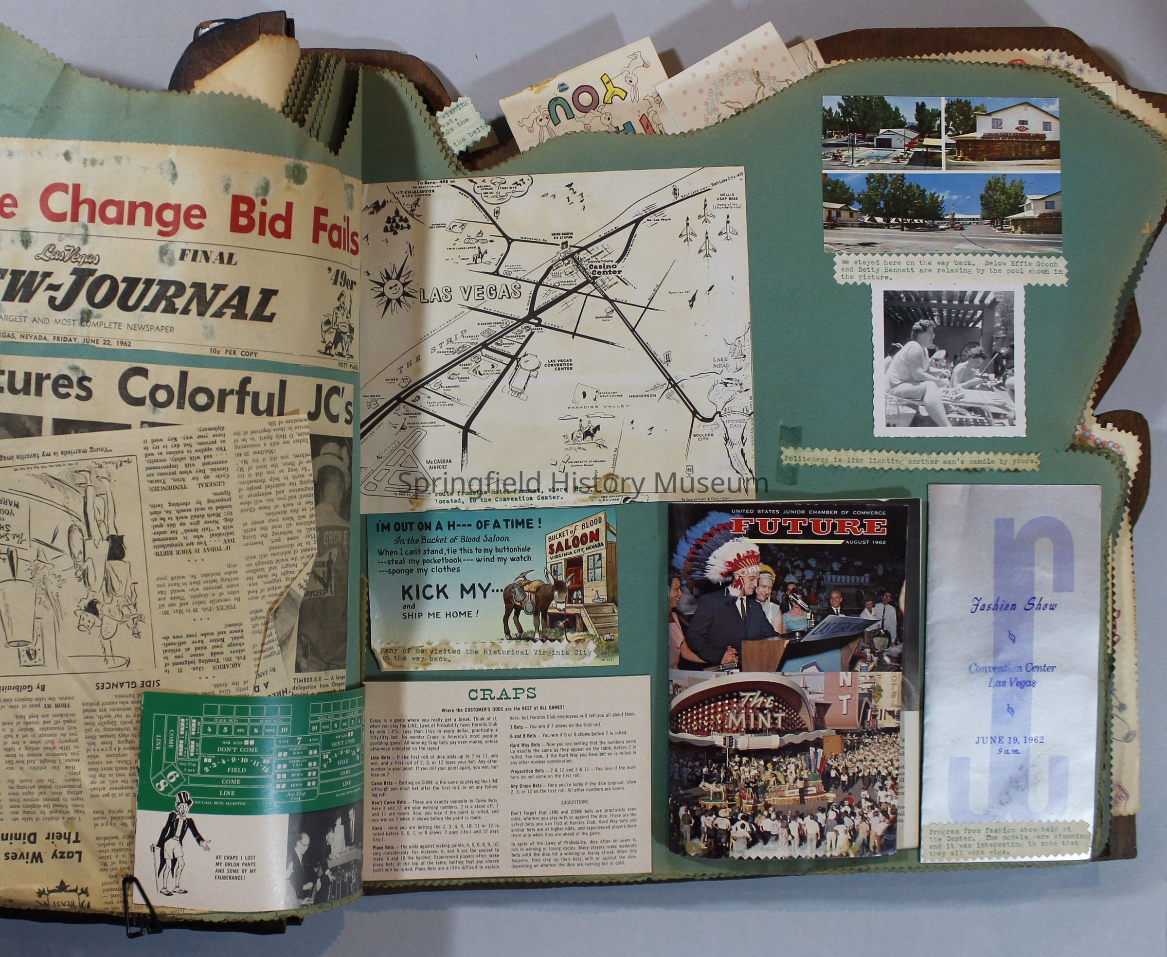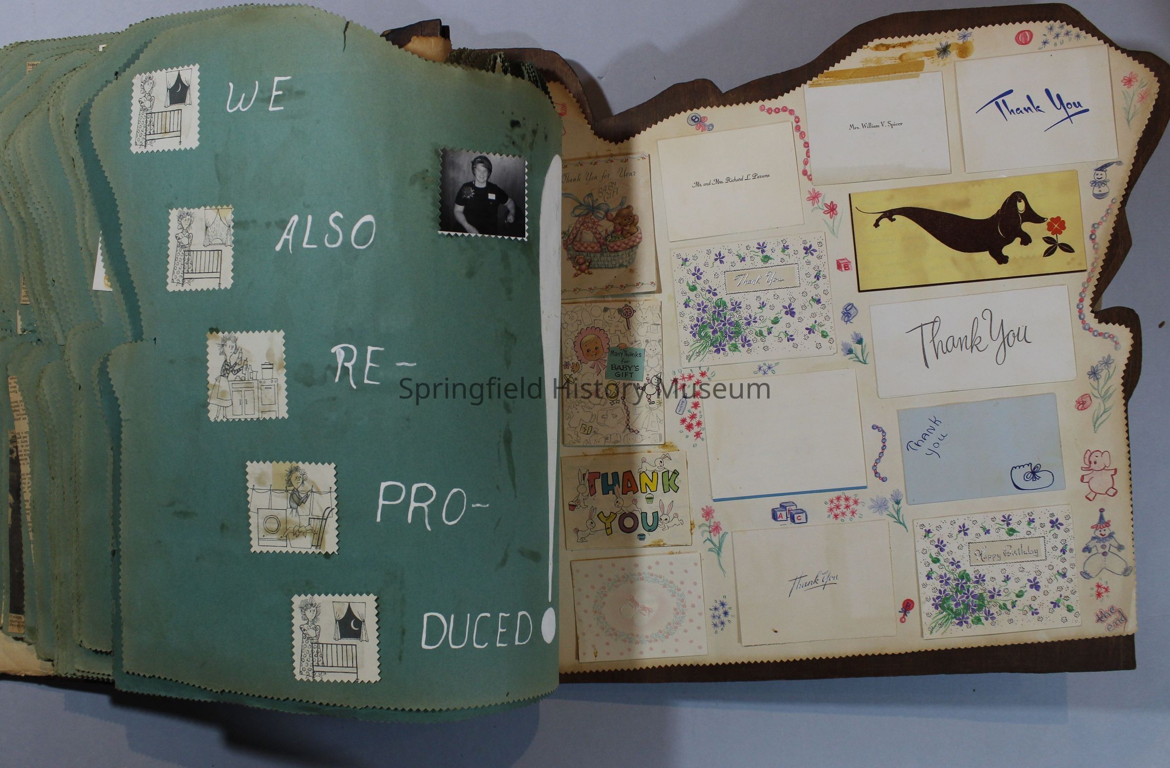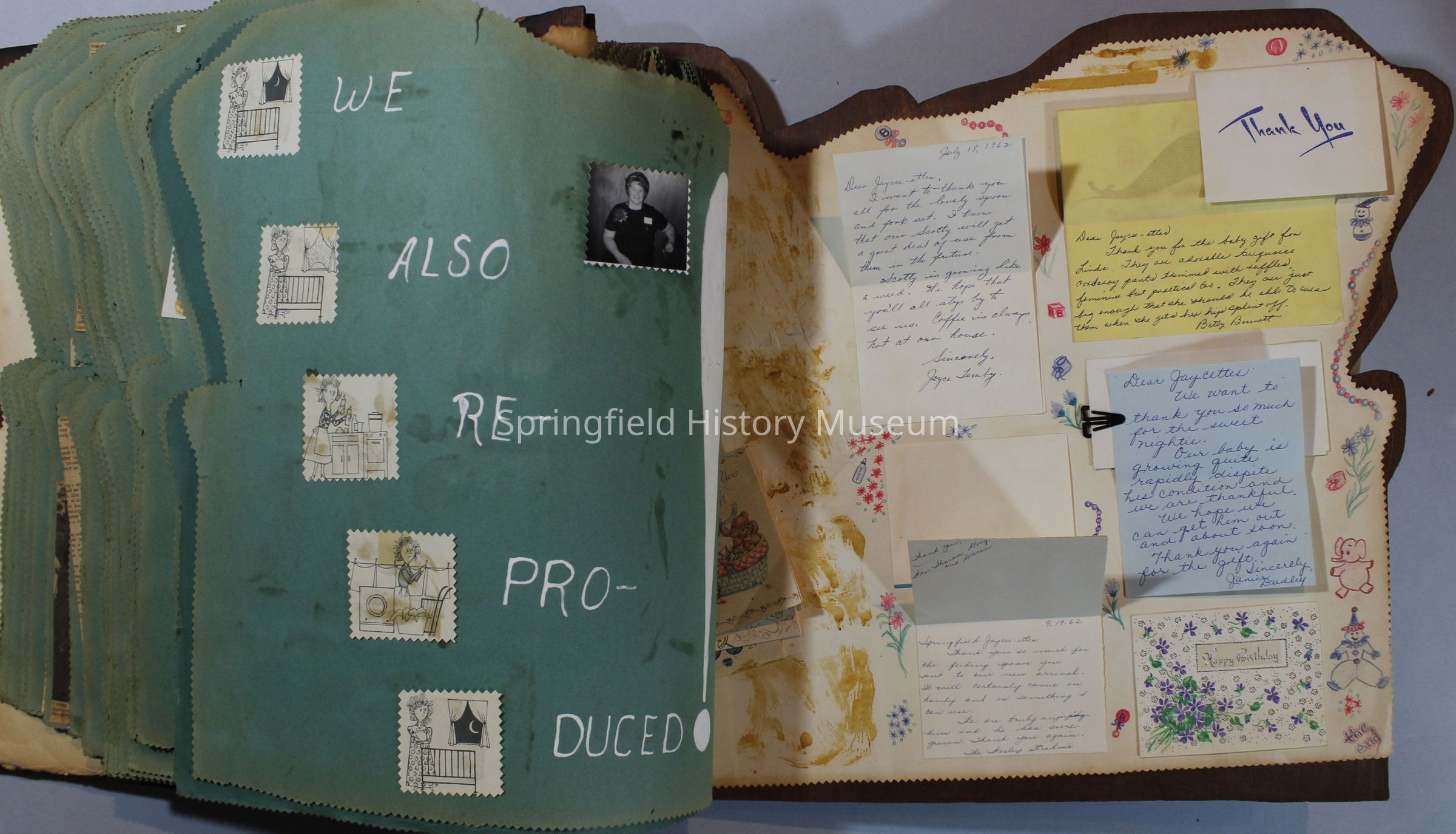 Scrapbook of Springfield, Oregon Jaycee-ettes, Joan Harman Possion, was President at the time of events.1962-1963, scrapbook cover is of wood with brass color hinges. The scrapbook contains newspaper articles, photo's, and cards.