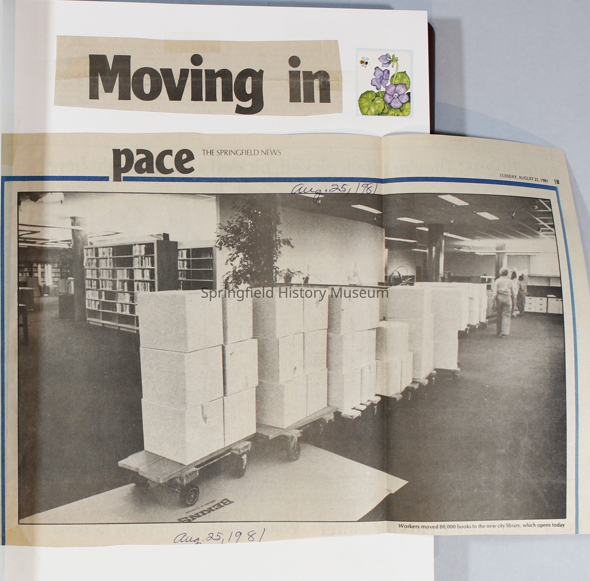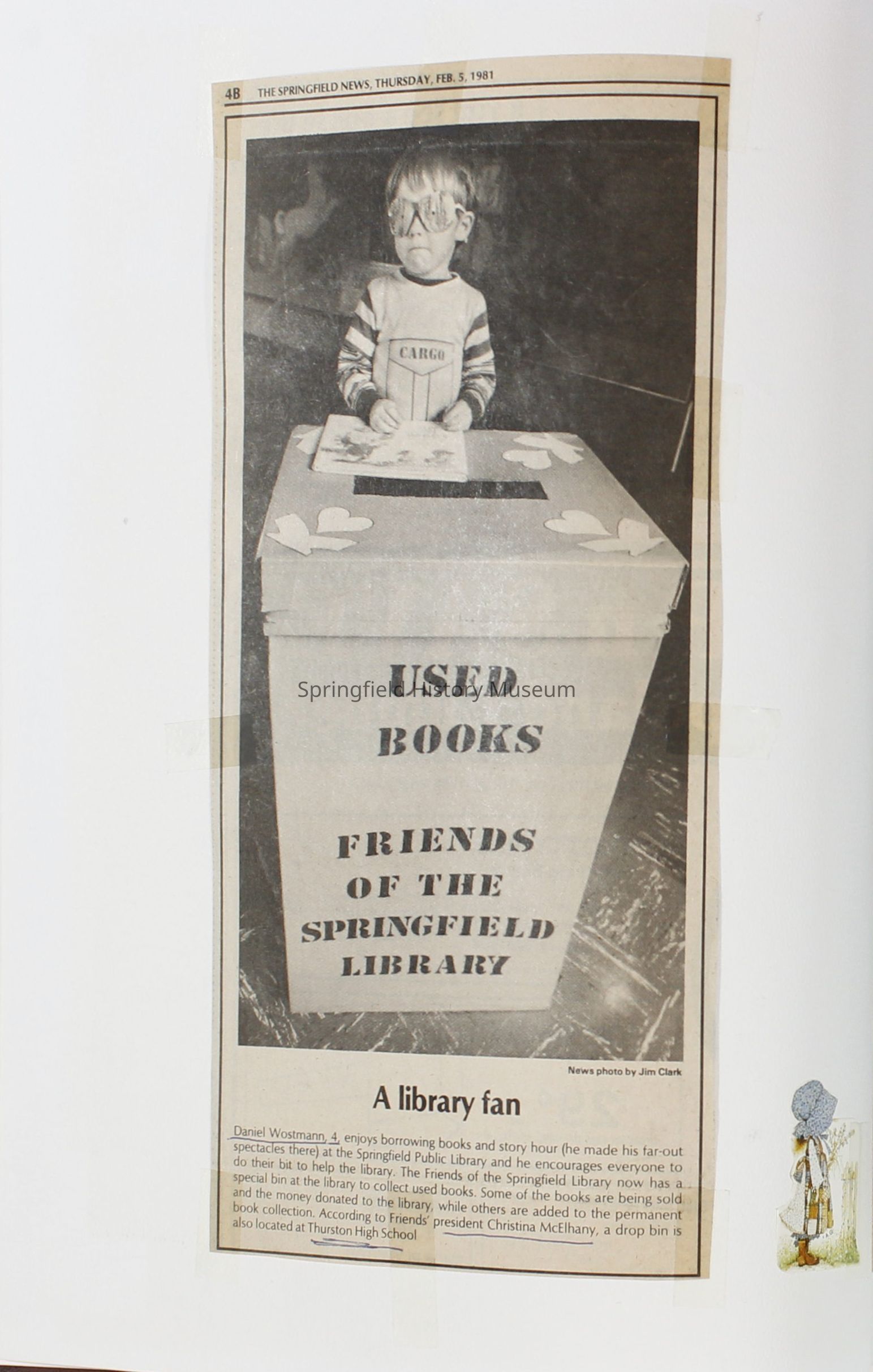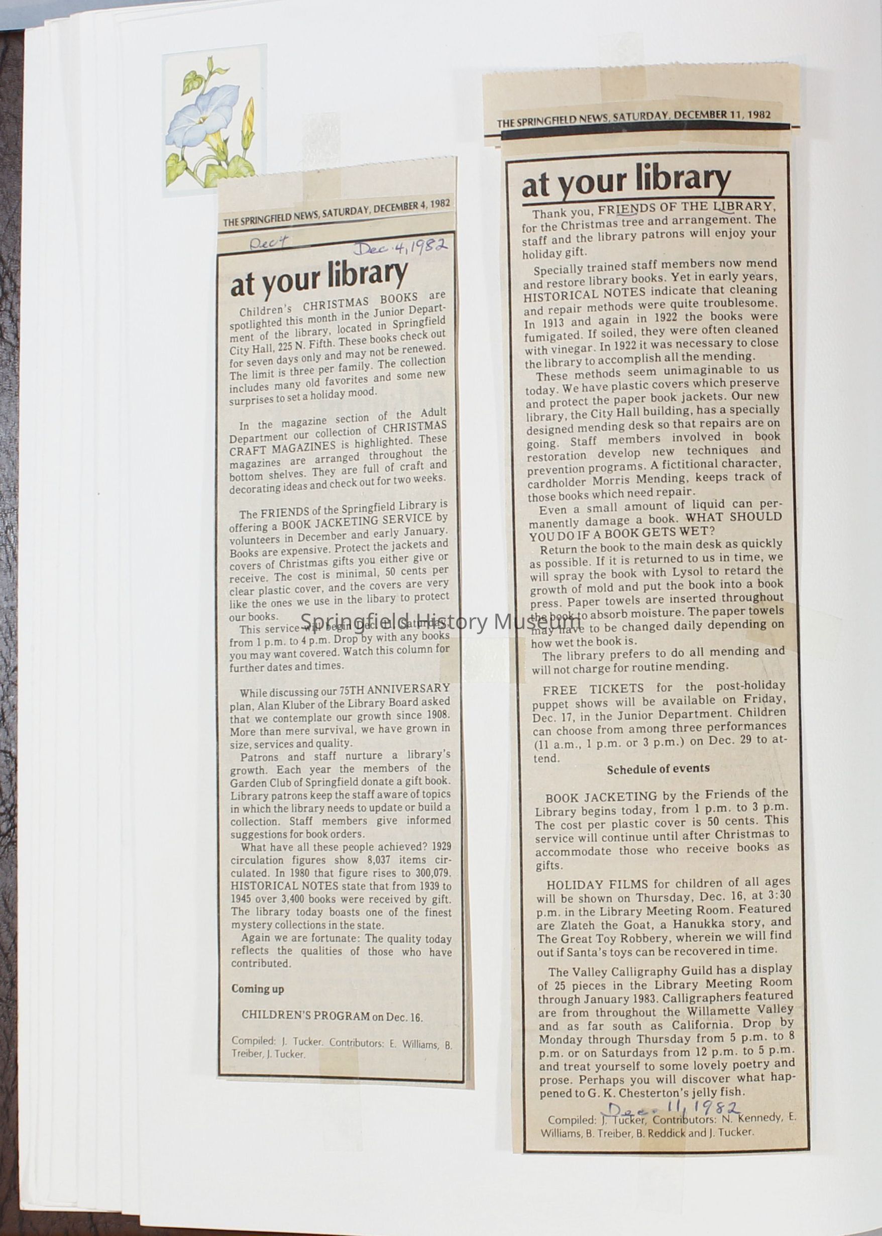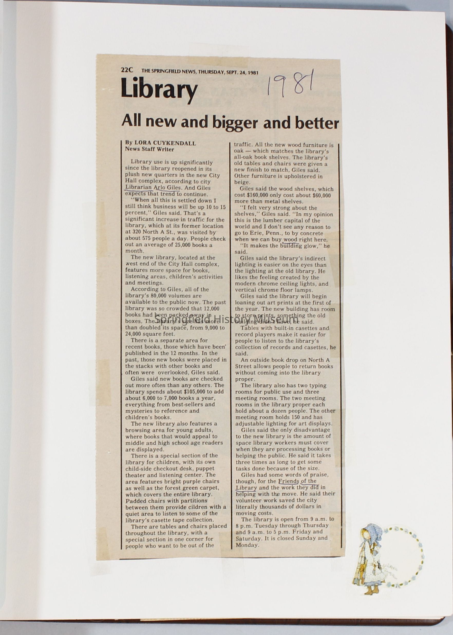 1980-1981 Friends of Springfield Public Library scrapbook album. Donated along with 4 folders of Friends of the Springfield Public Library archives. Folders are titled "Friends 1981", Friends 1982", "Friends 1983", and "Friends 1984-85".Collection