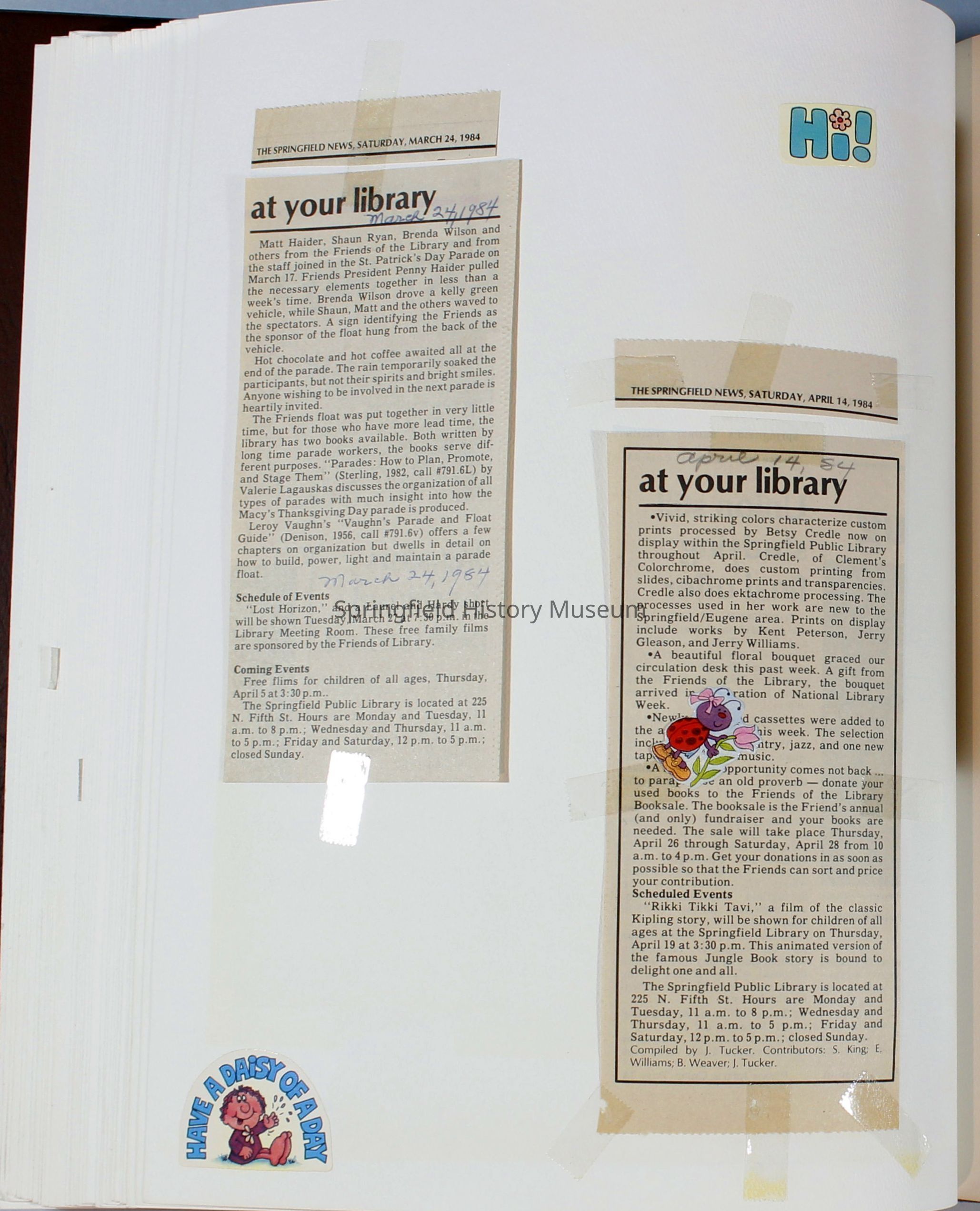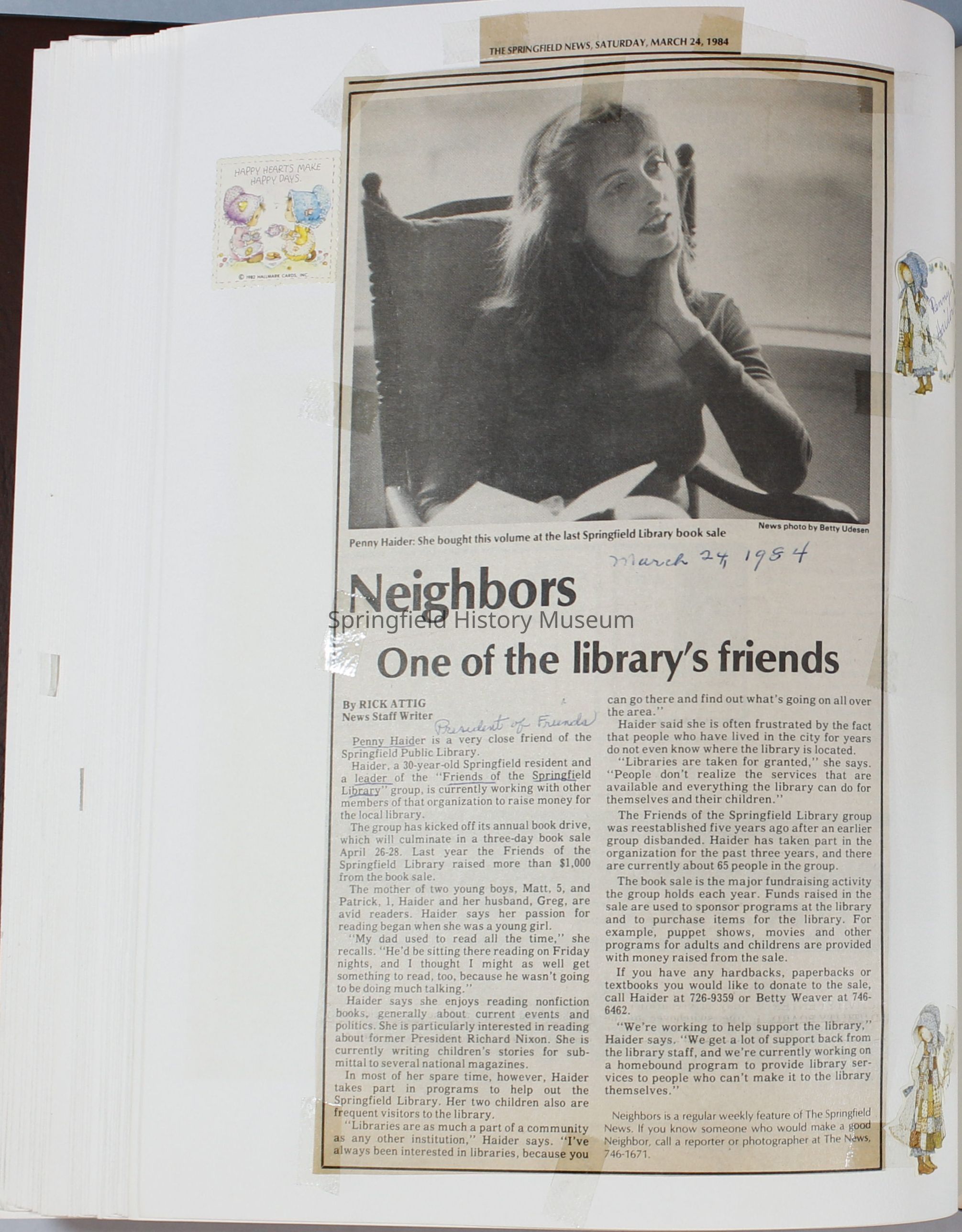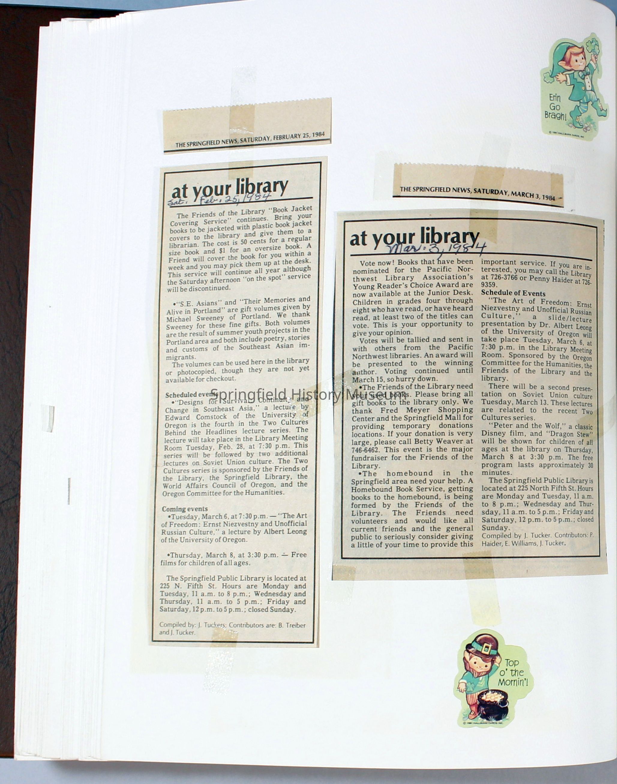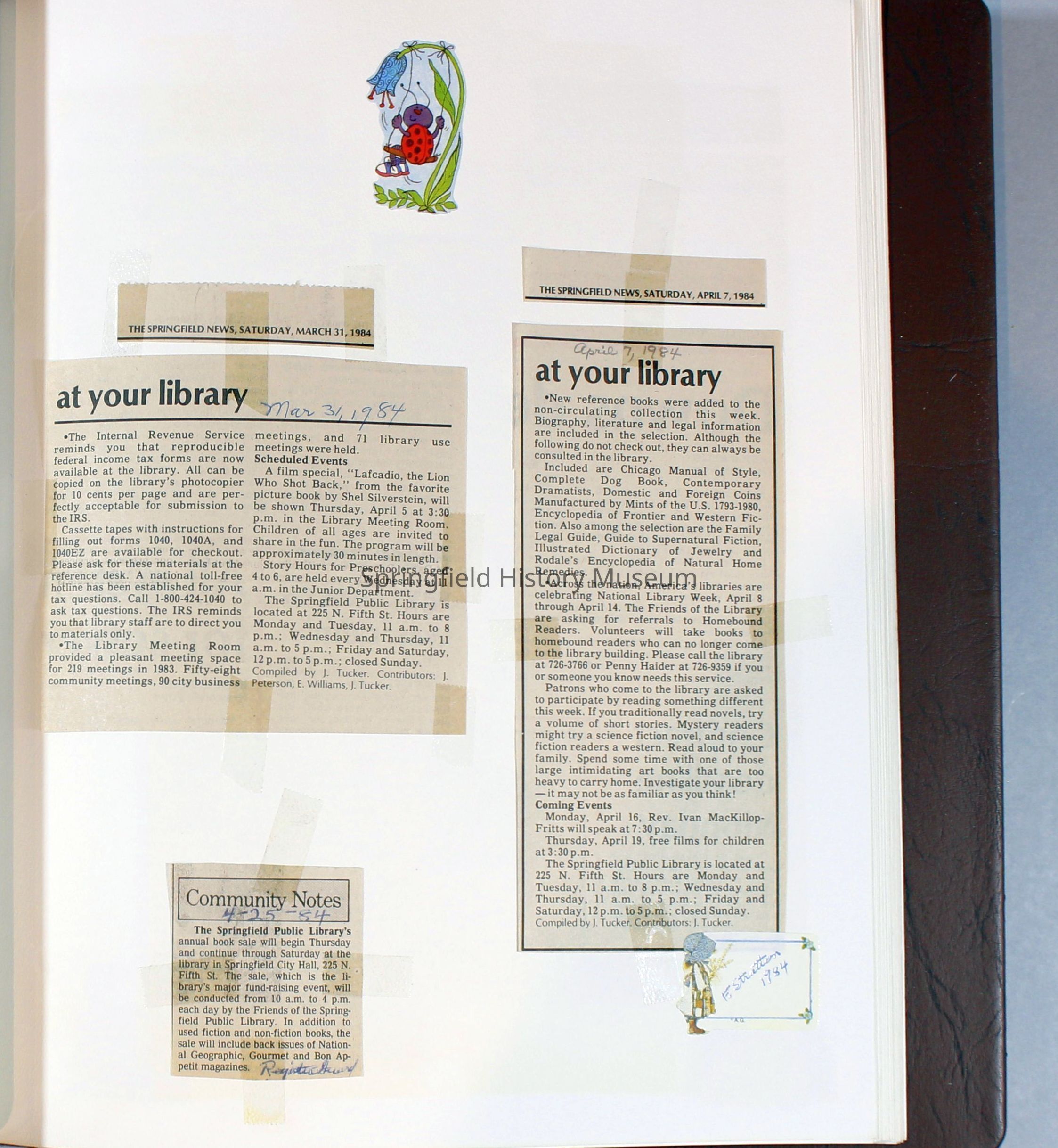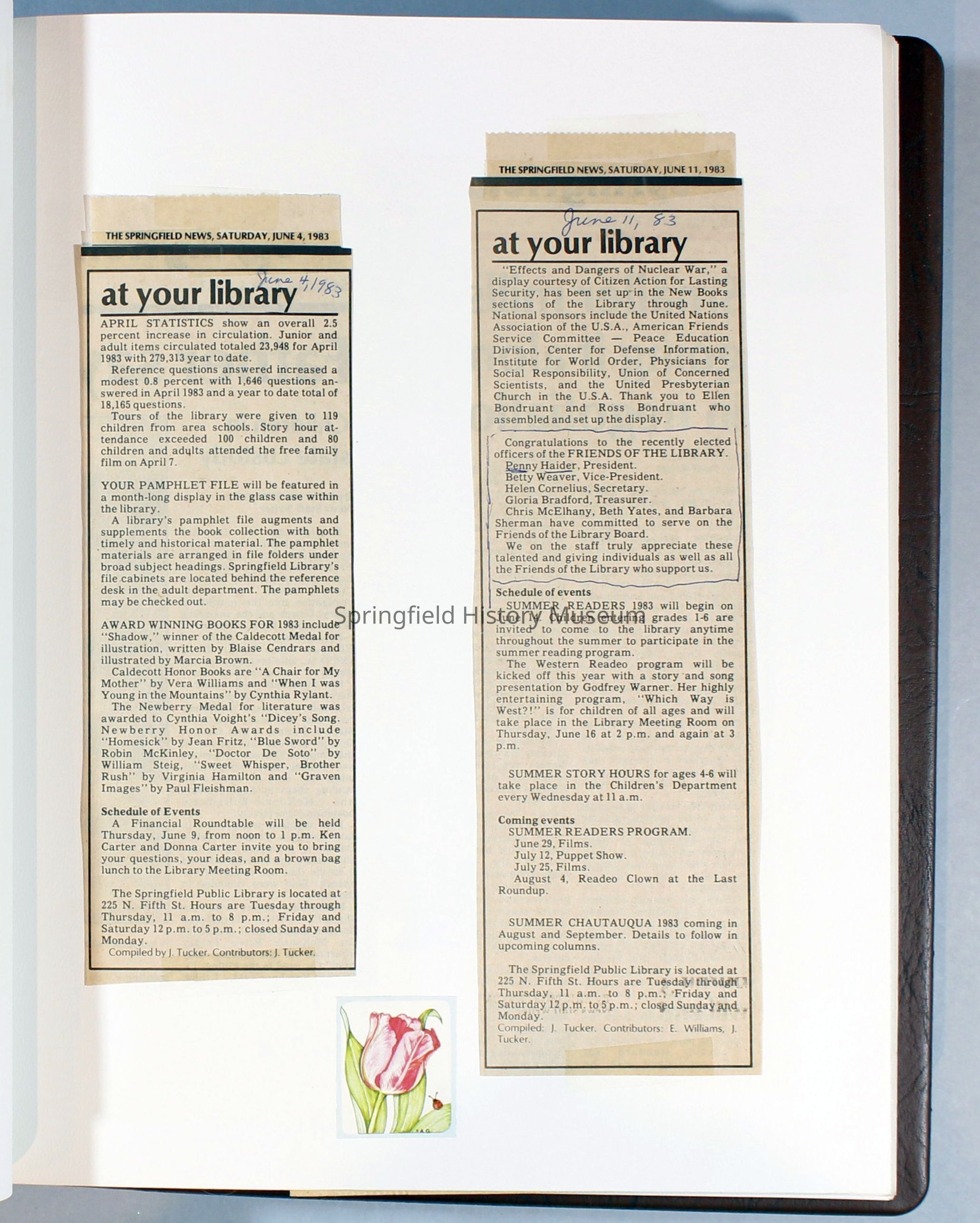Scrapbook Friends of the Springfield Public Library archives, 1981-1985Entry/Object ID