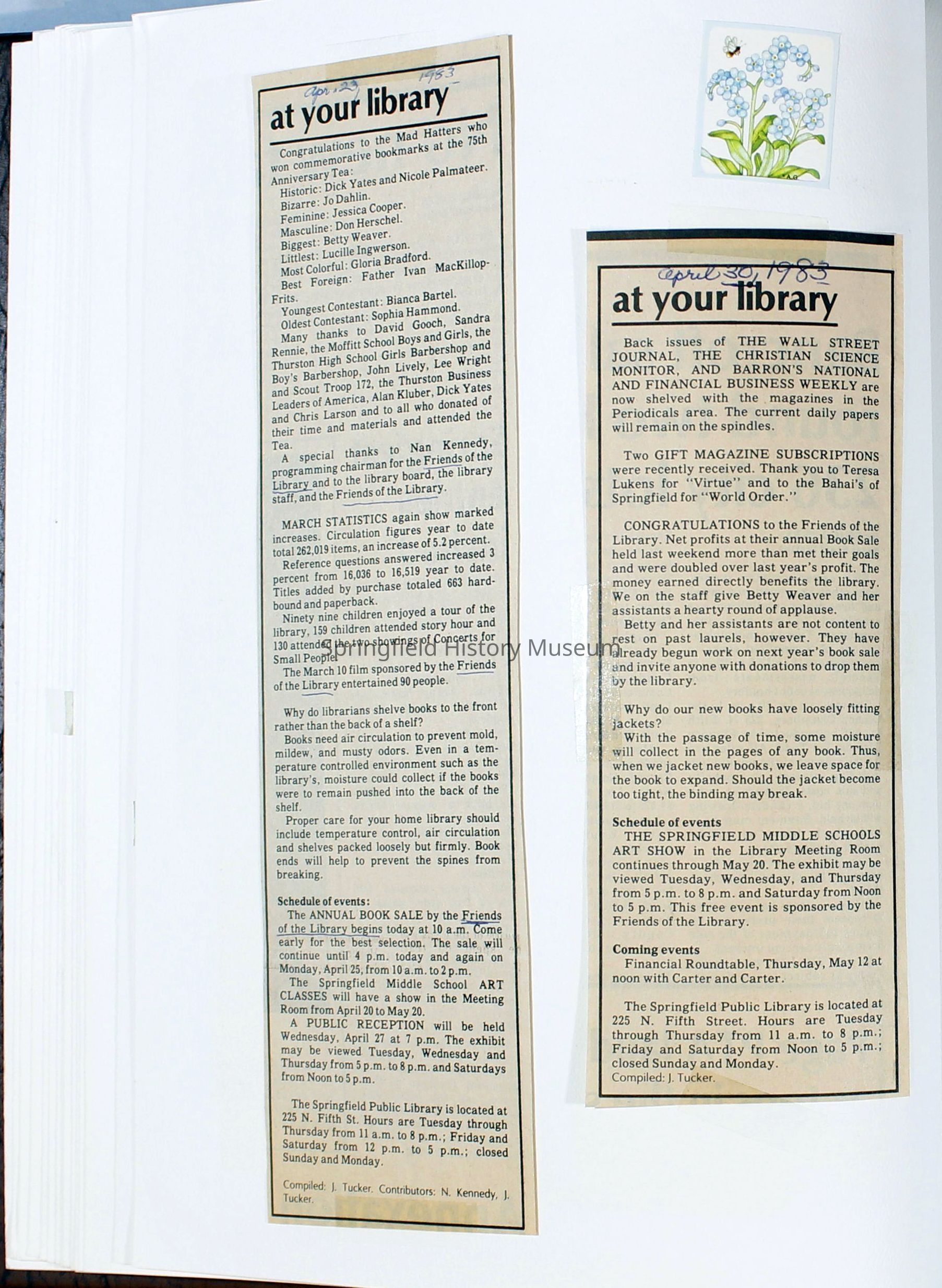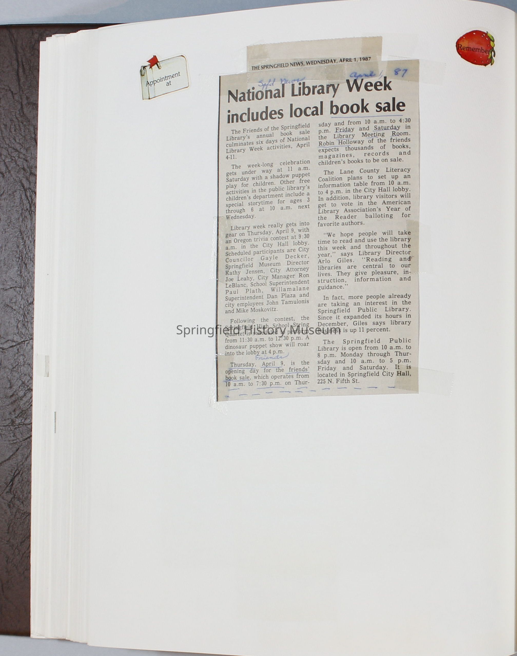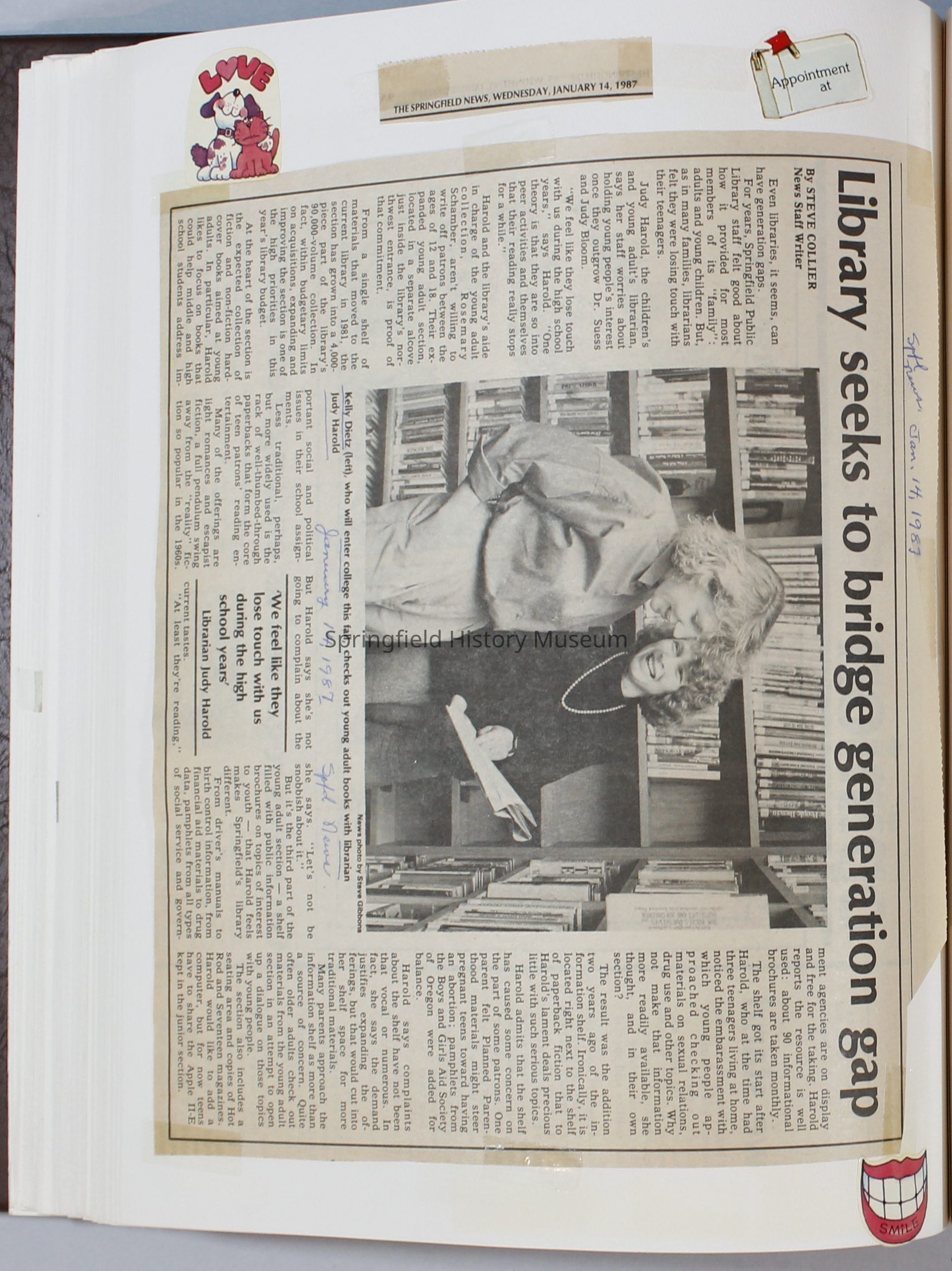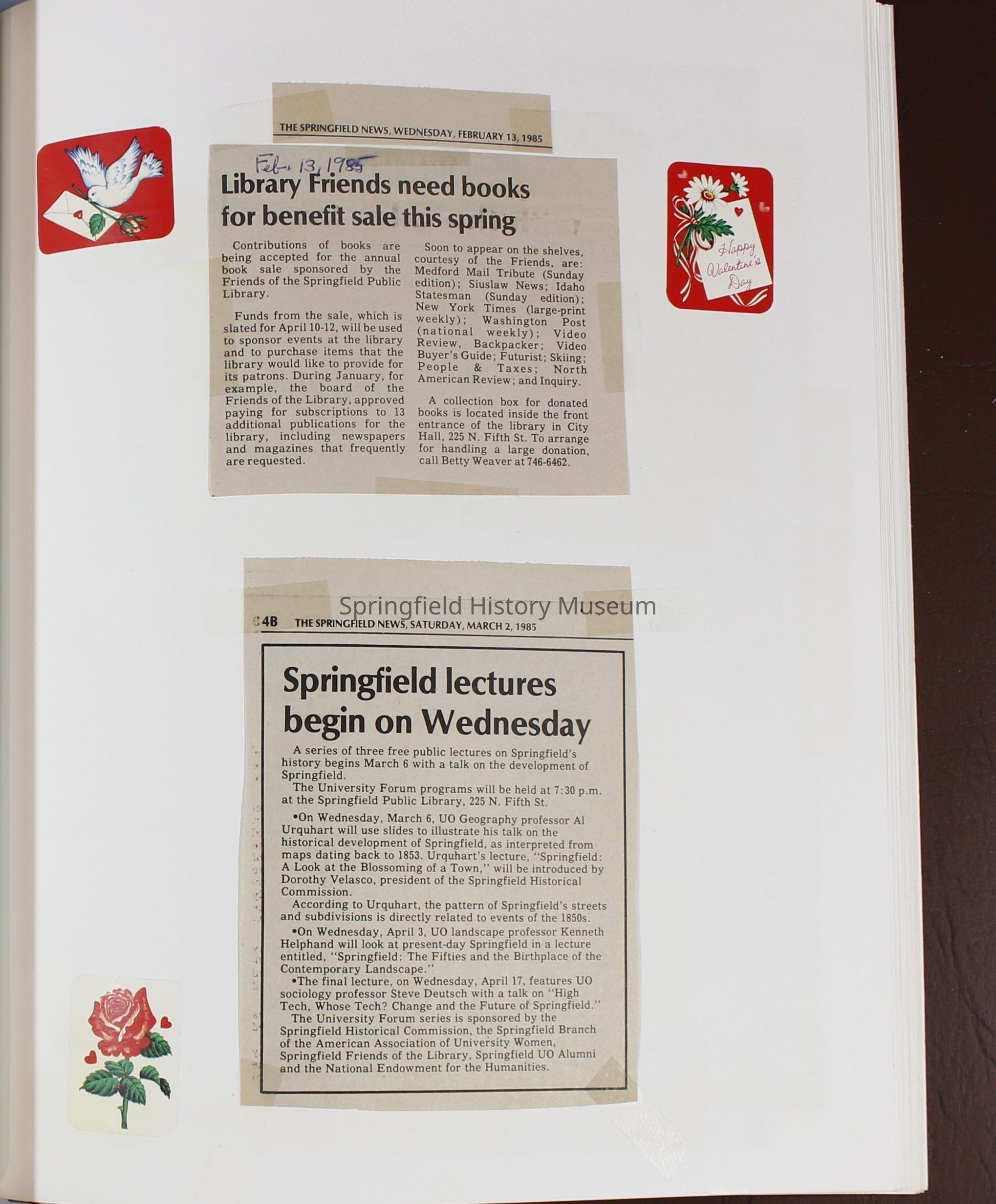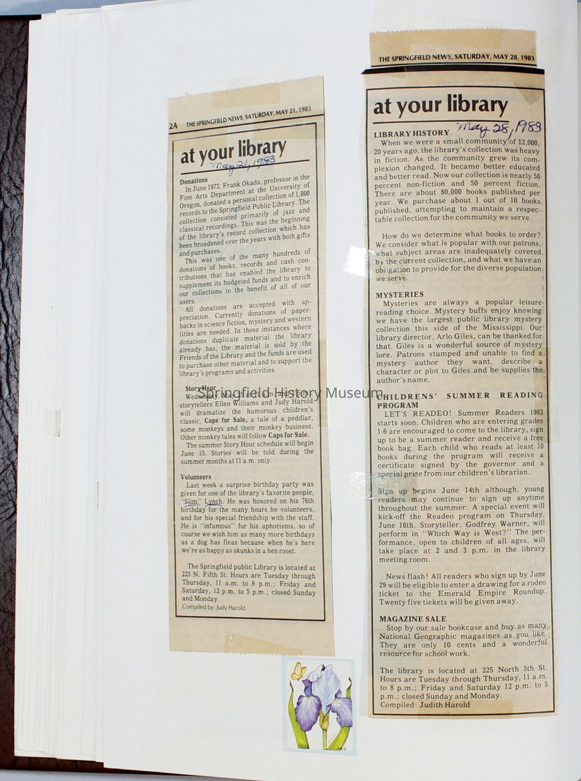 Scrapbook Friends of the Springfield Public Library archives, 1981-1985Entry/Object ID