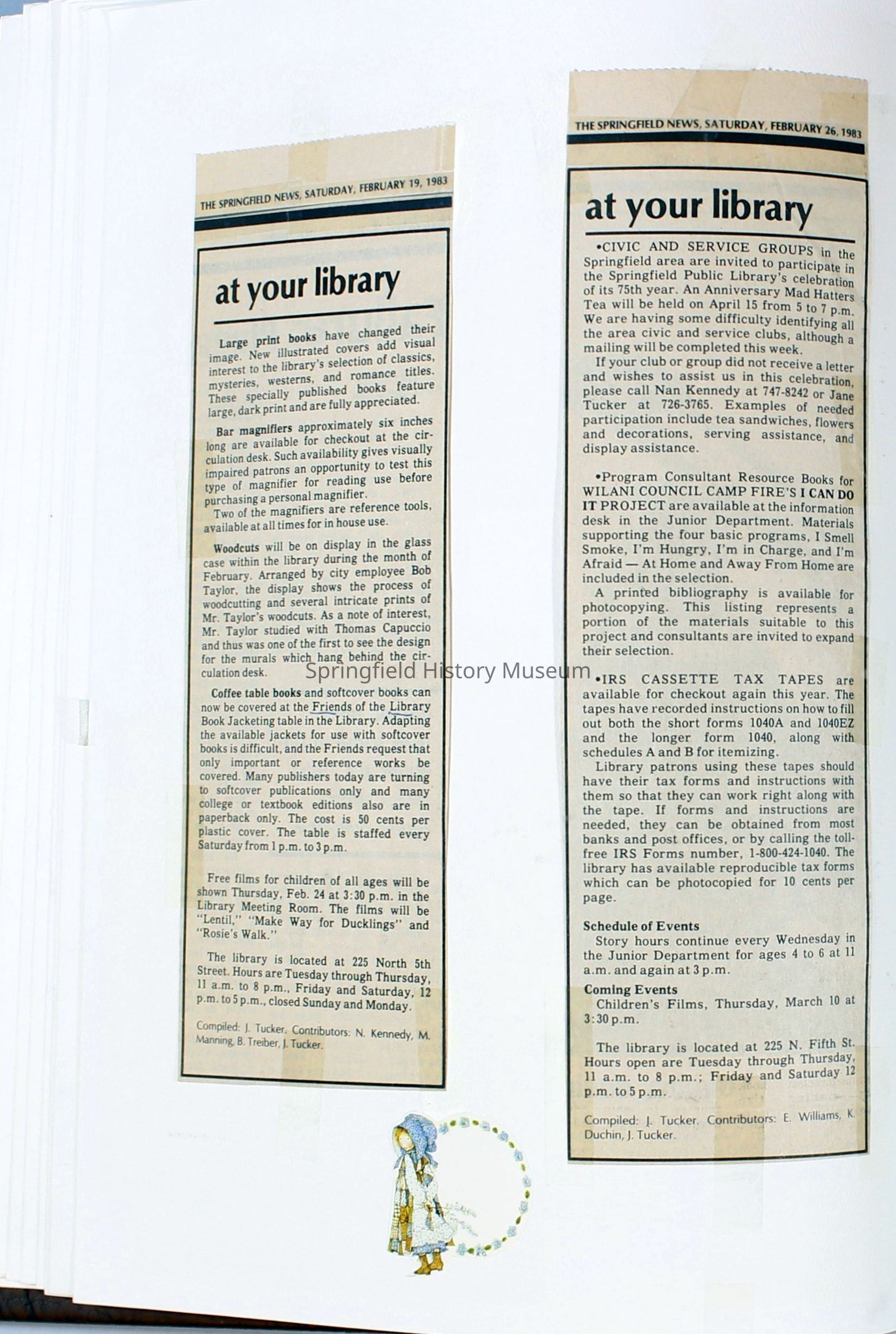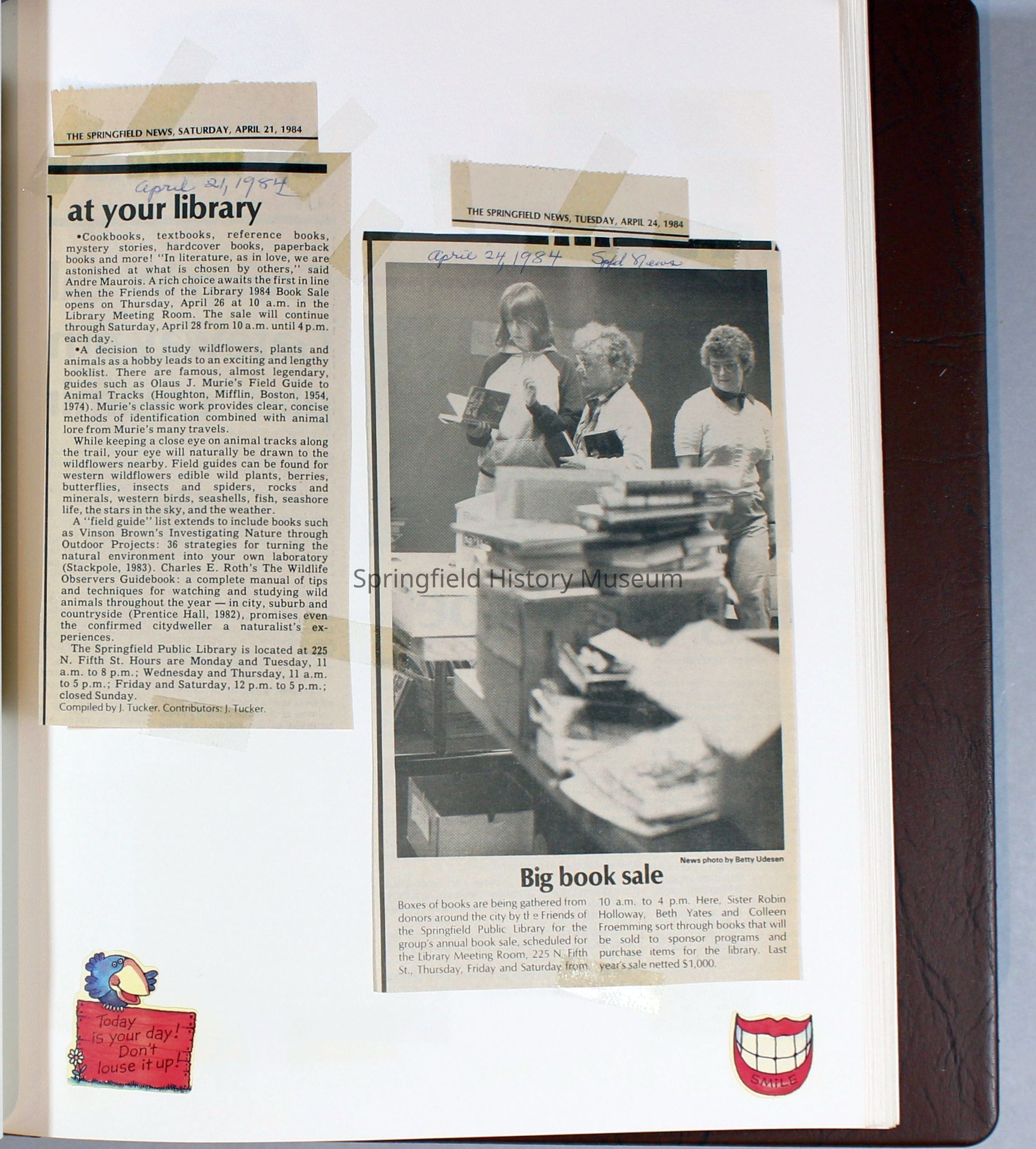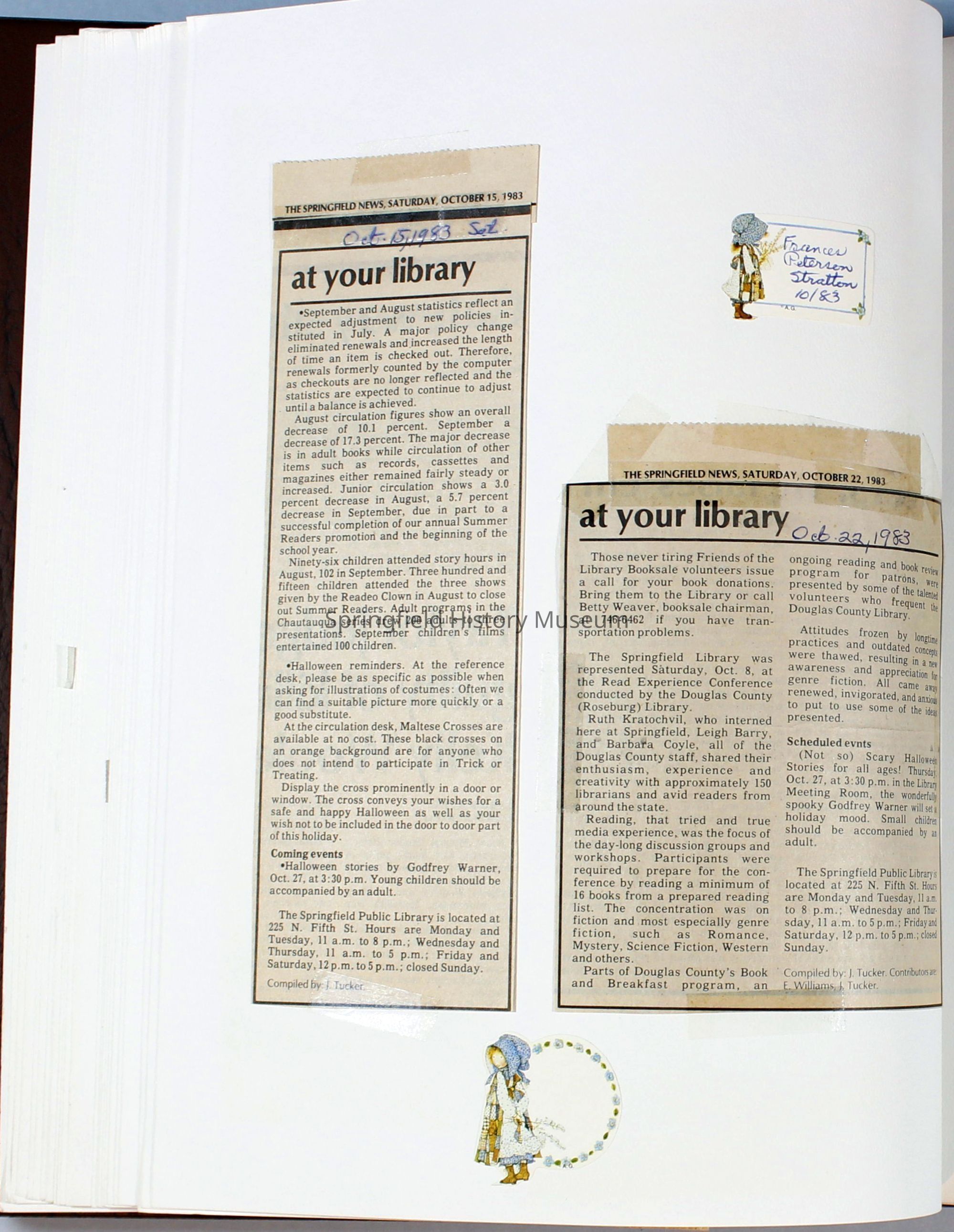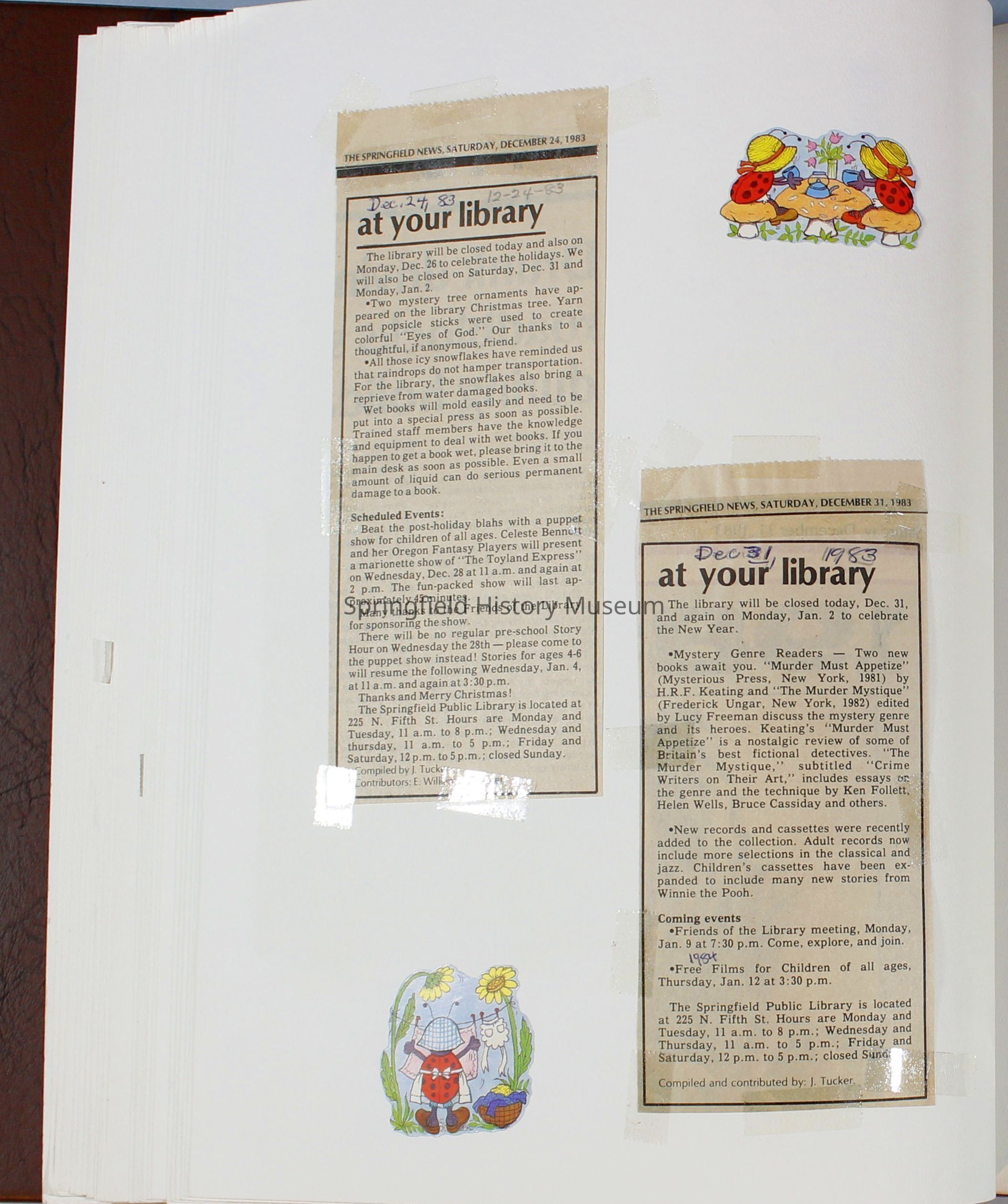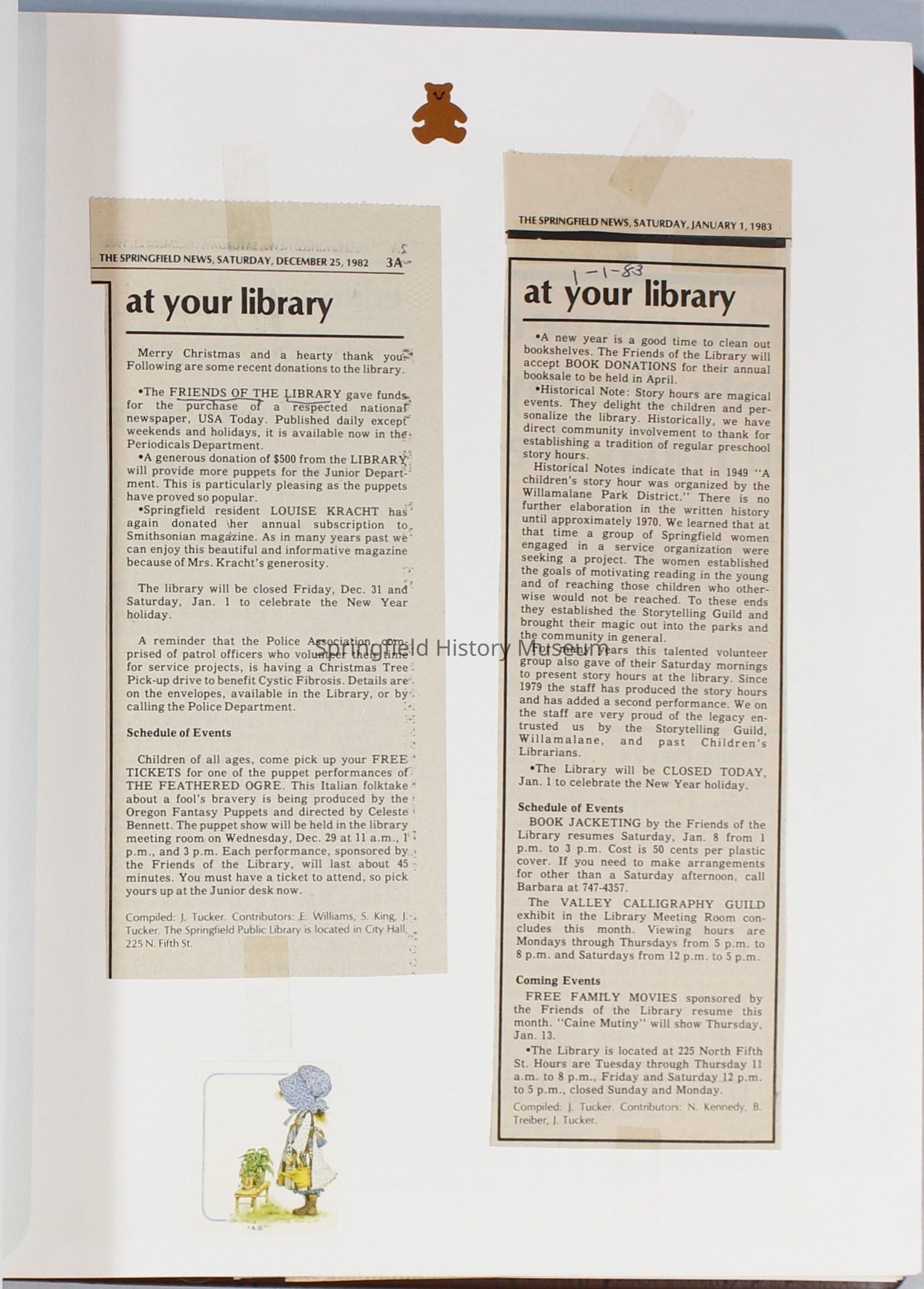 Scrapbook Friends of the Springfield Public Library archives, 1981-1985Entry/Object ID