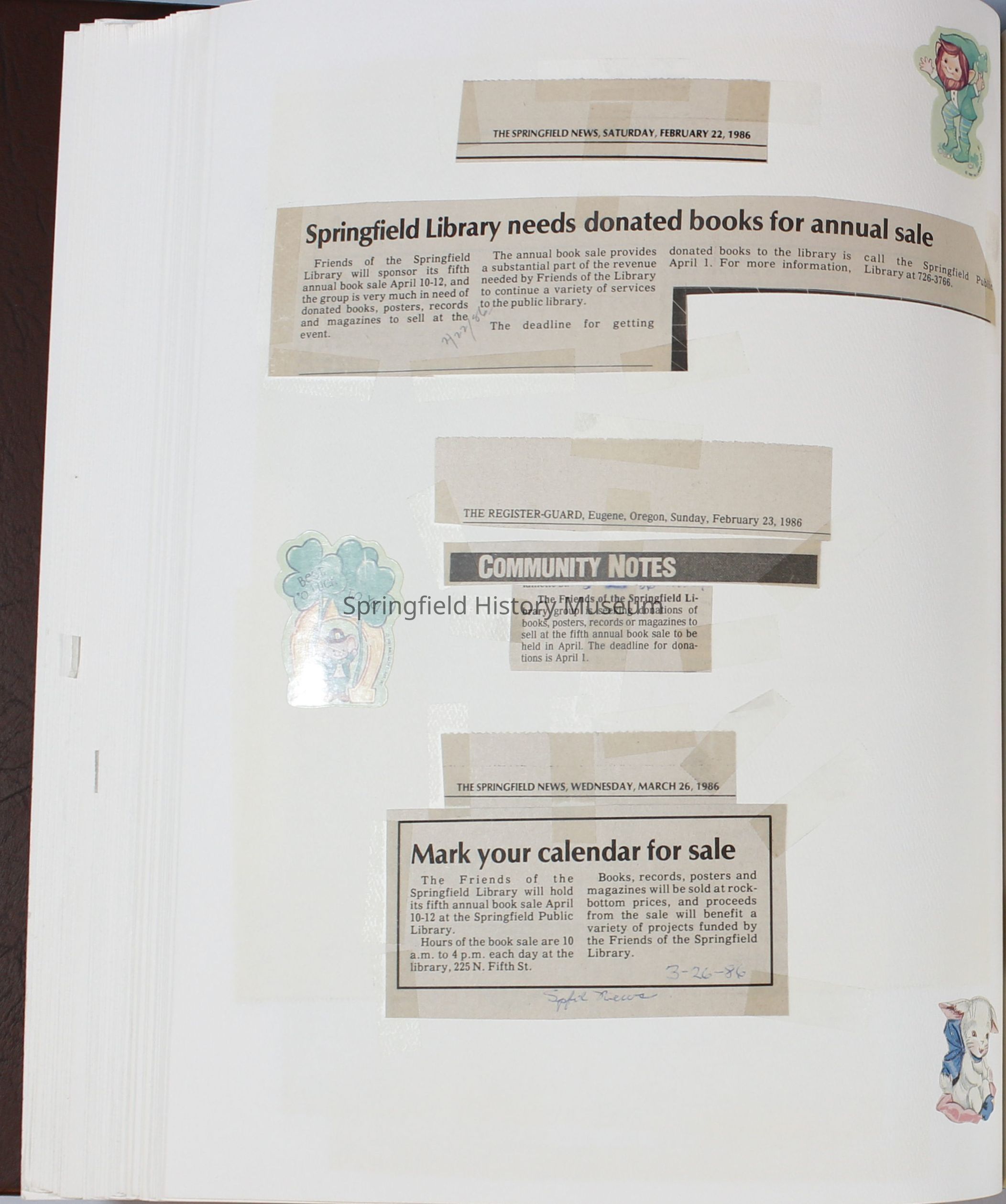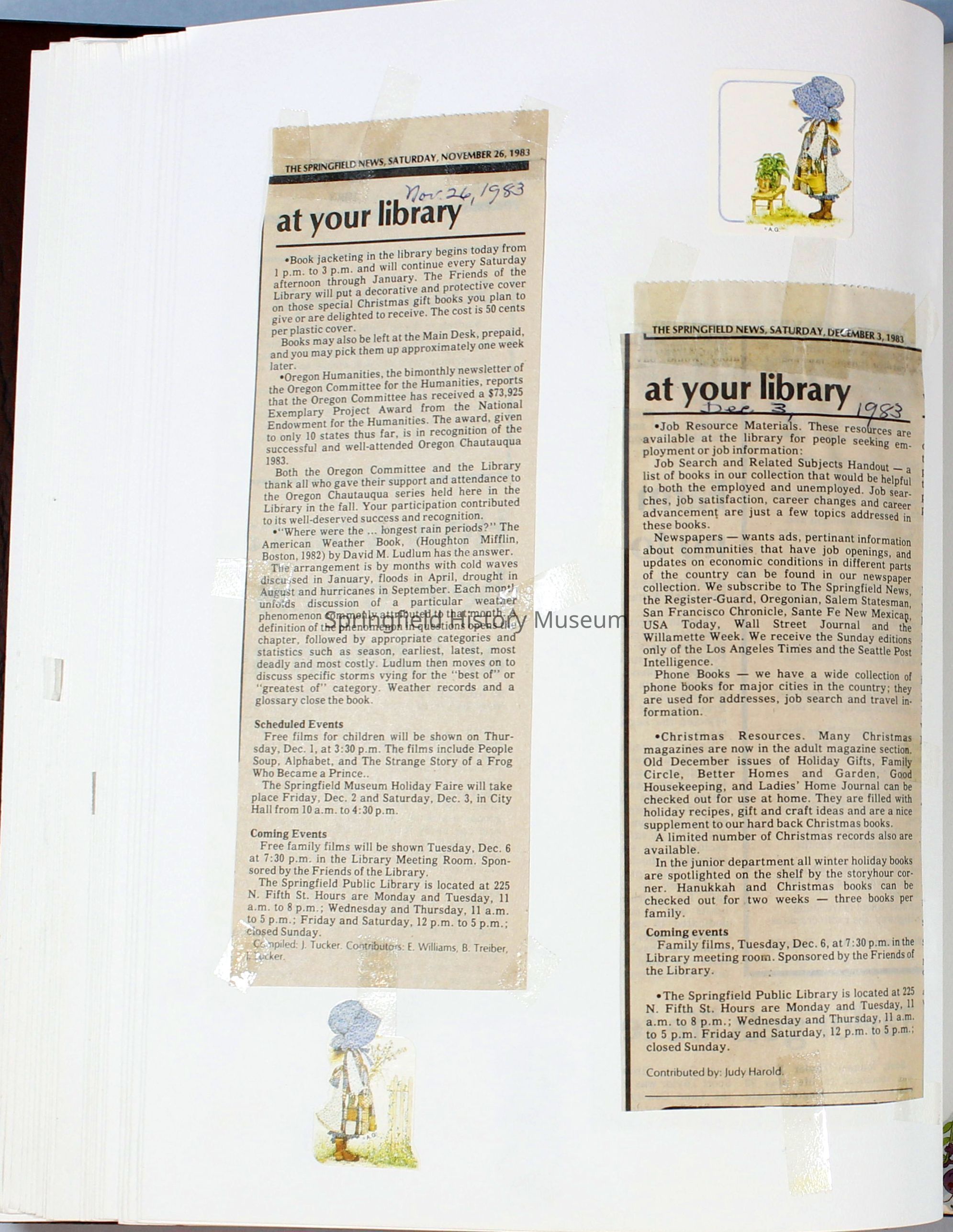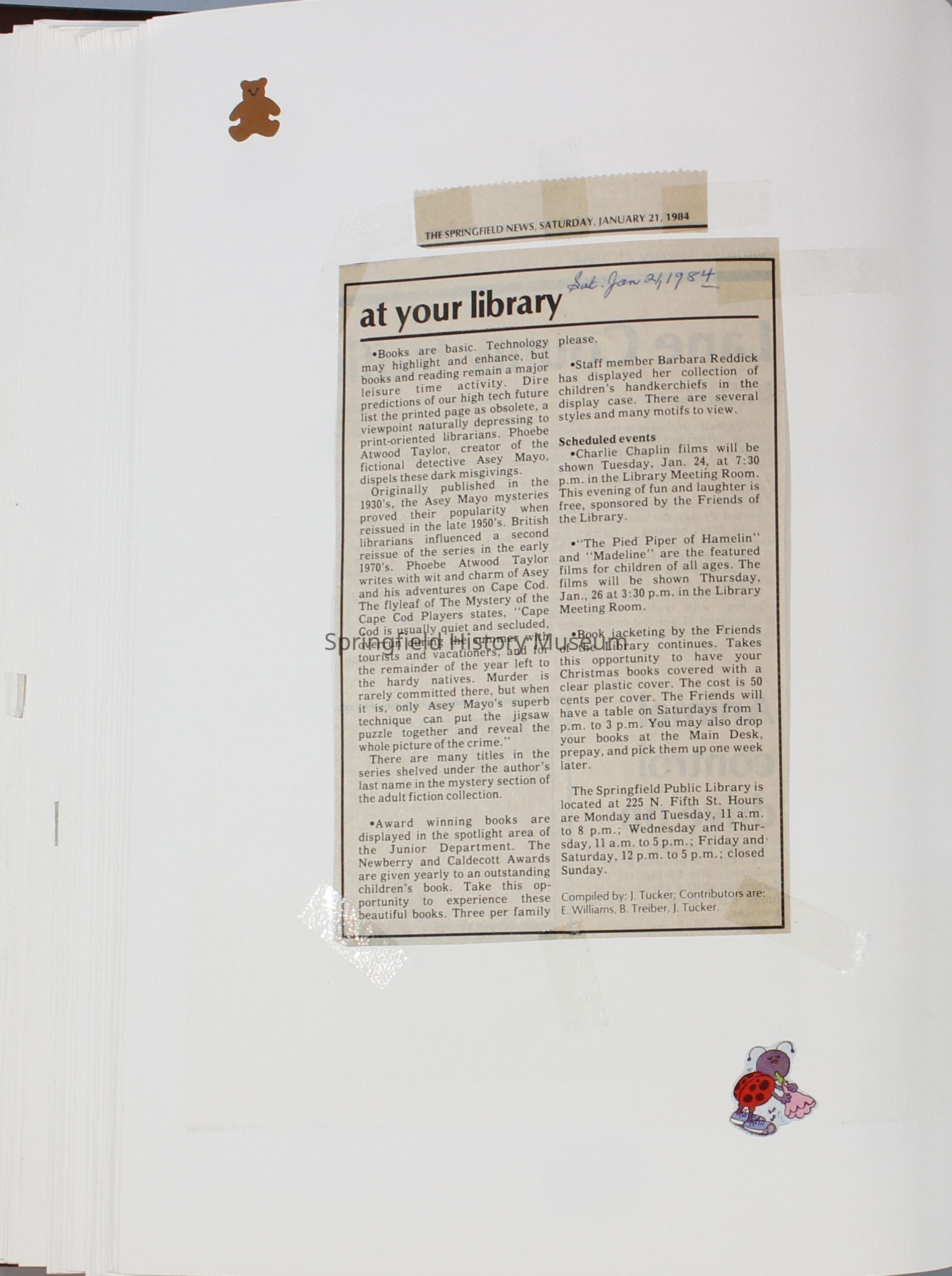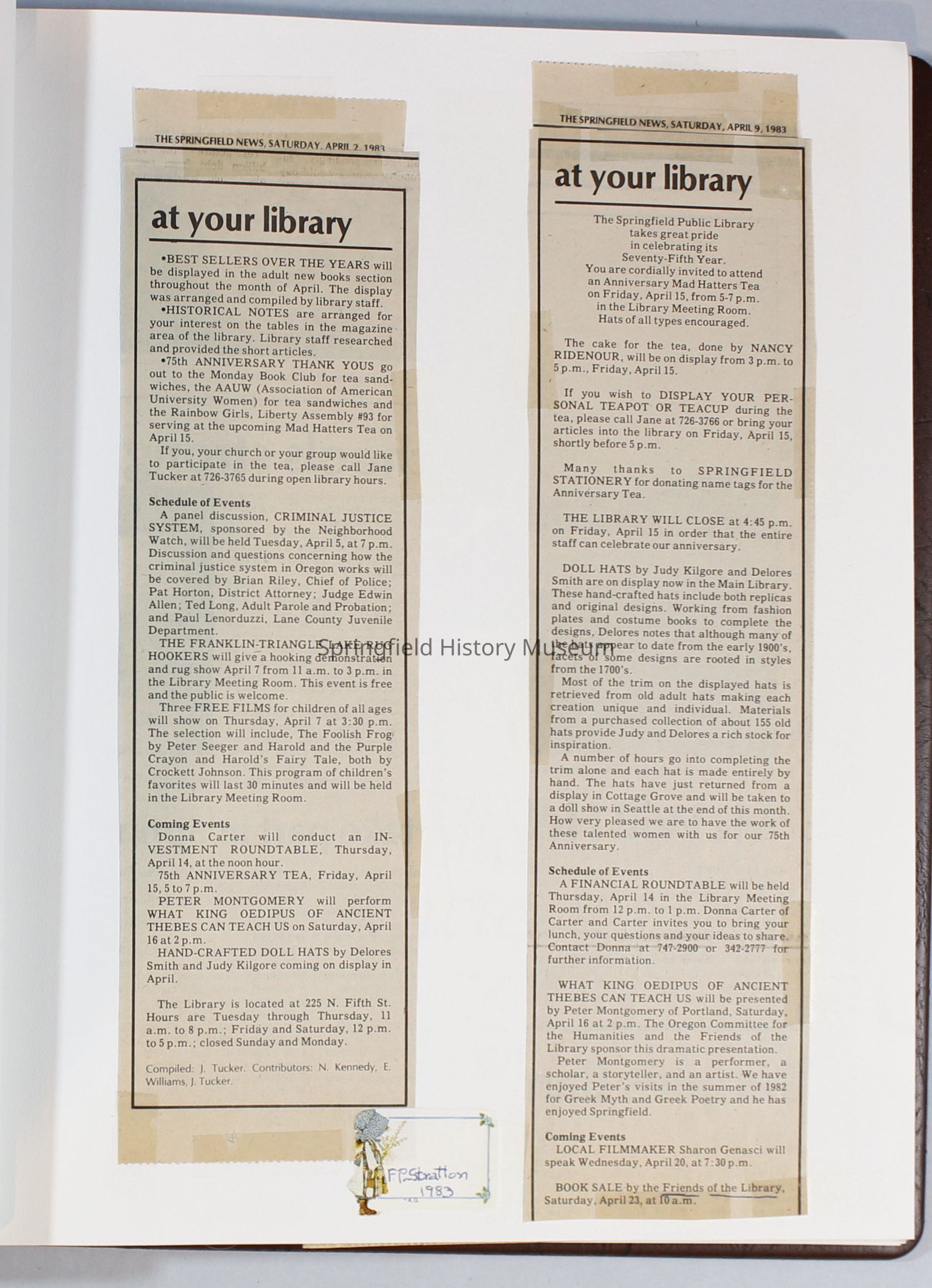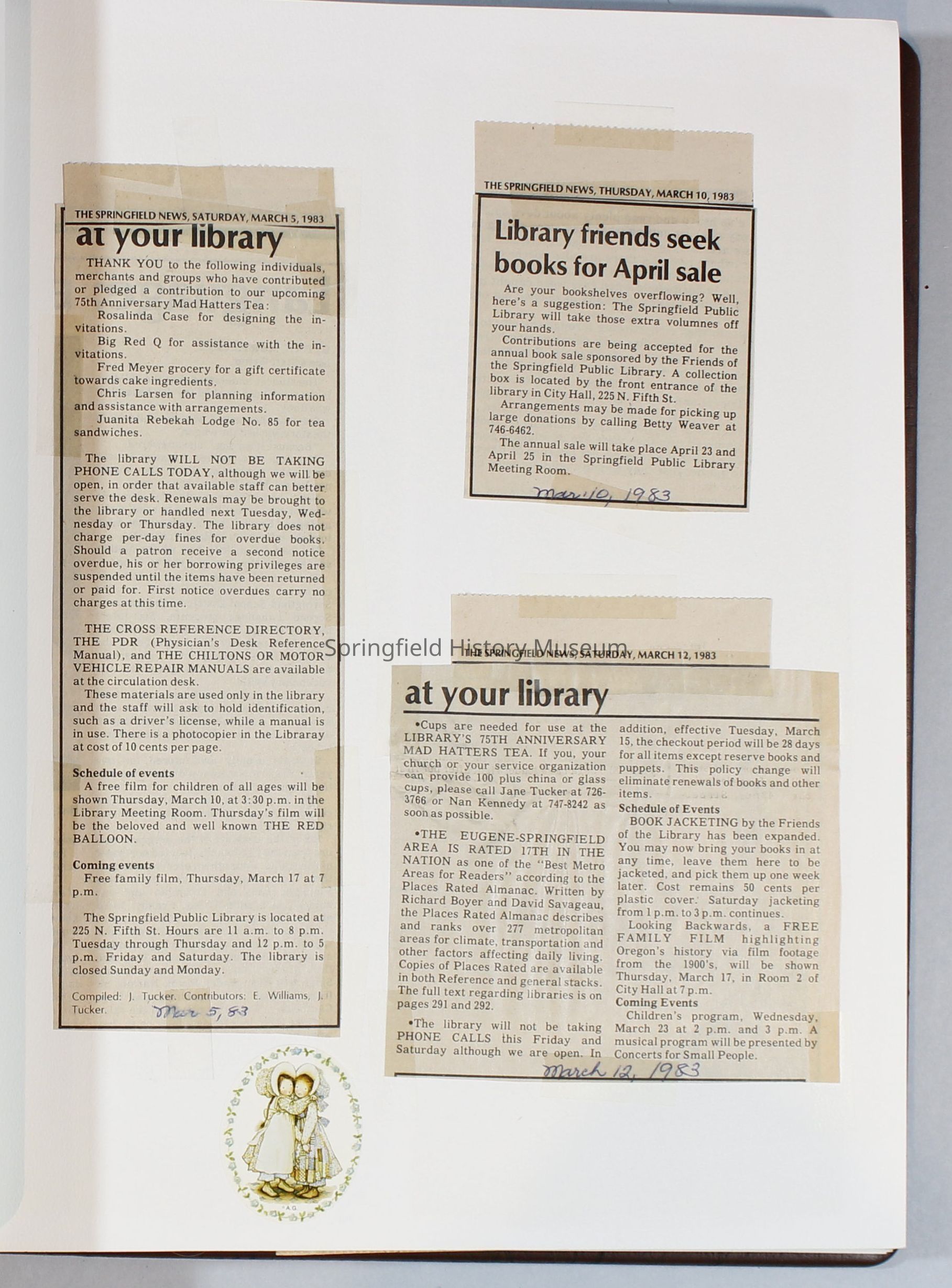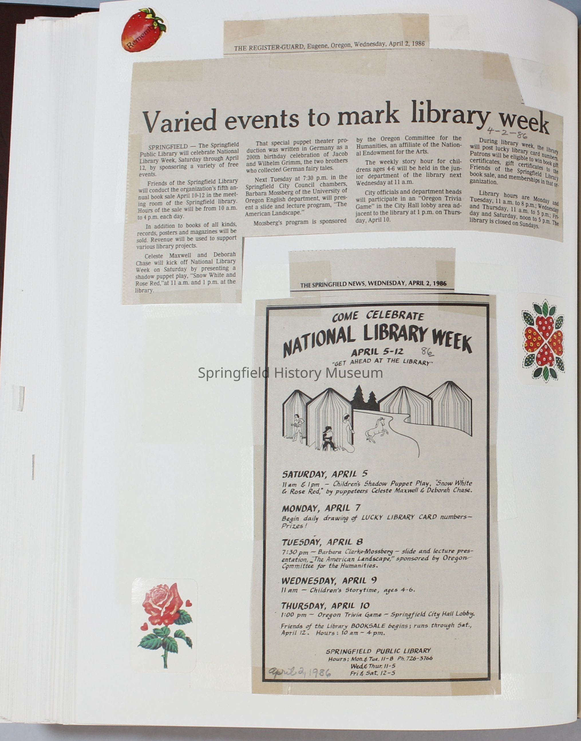 Scrapbook Friends of the Springfield Public Library archives, 1981-1985Entry/Object ID