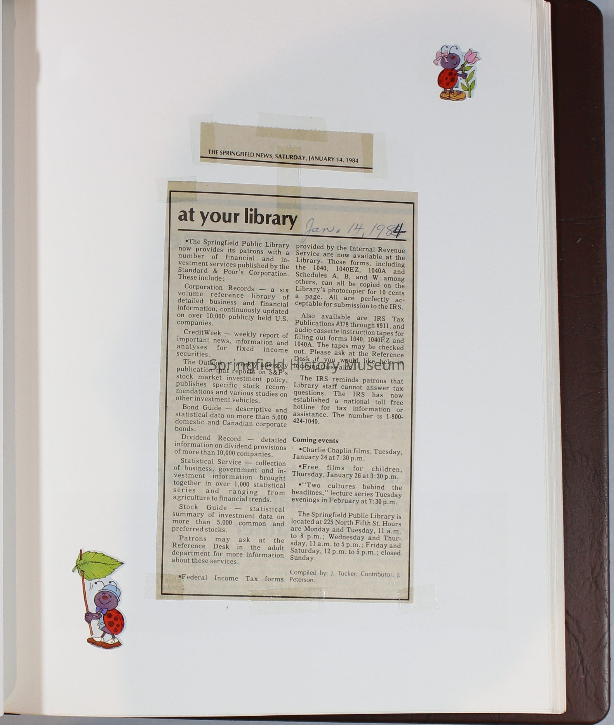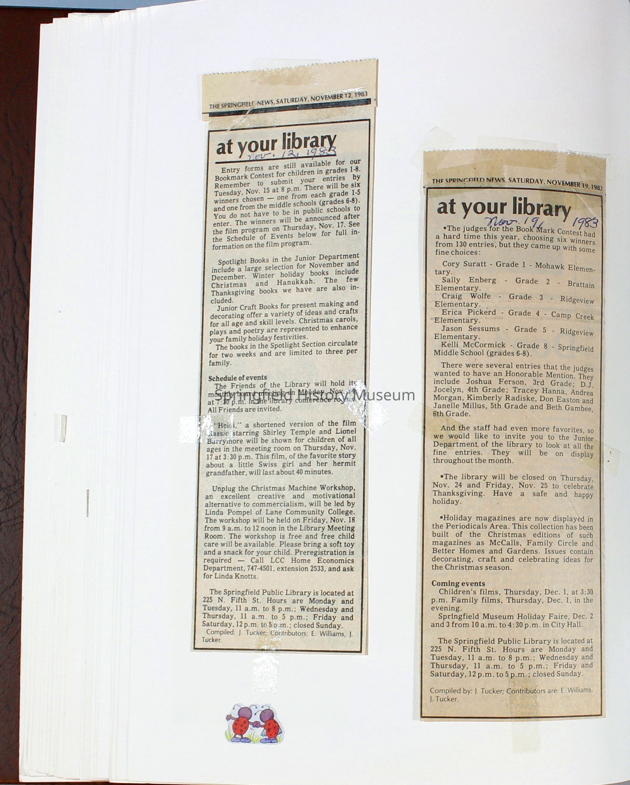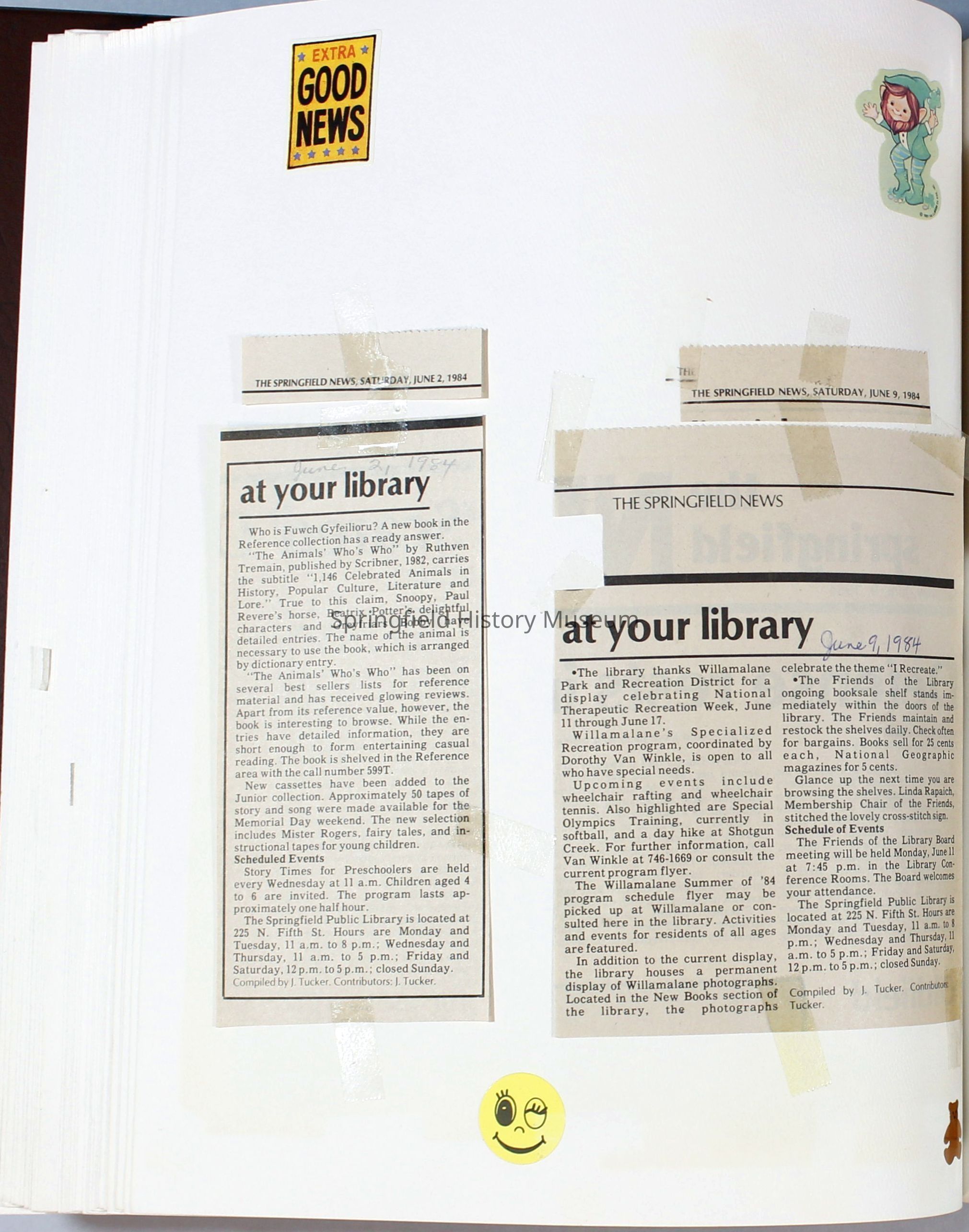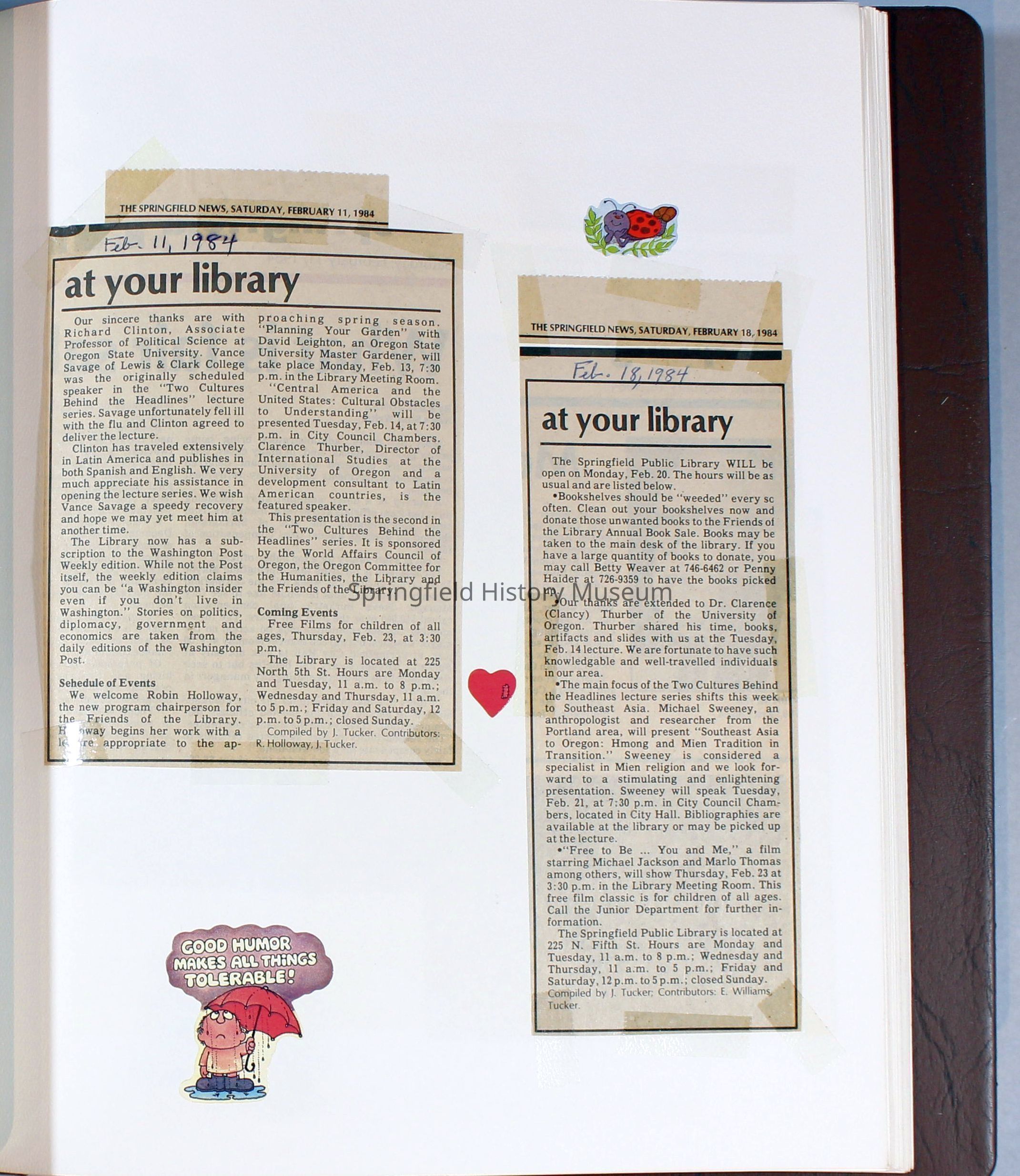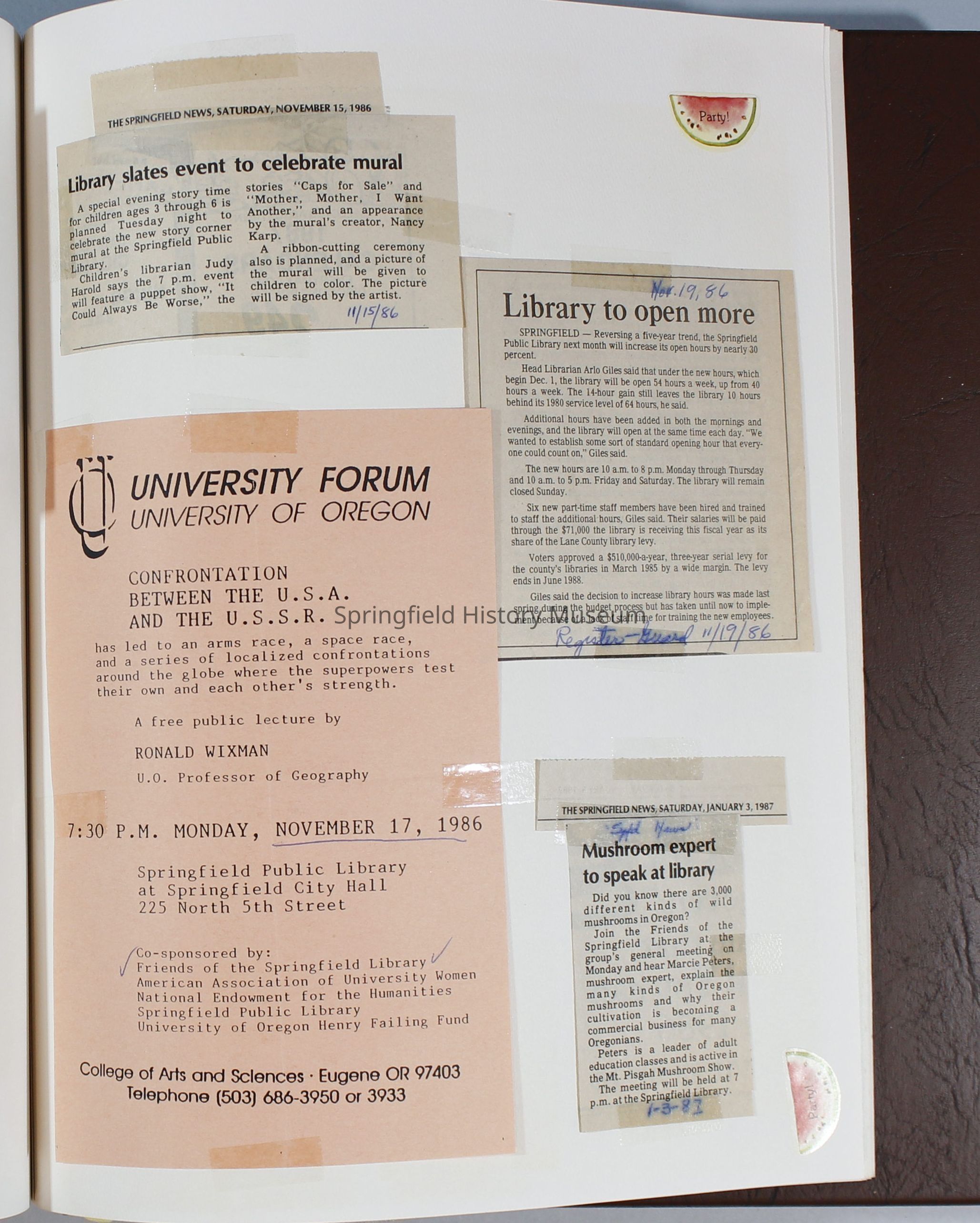 Scrapbook Friends of the Springfield Public Library archives, 1981-1985Entry/Object ID