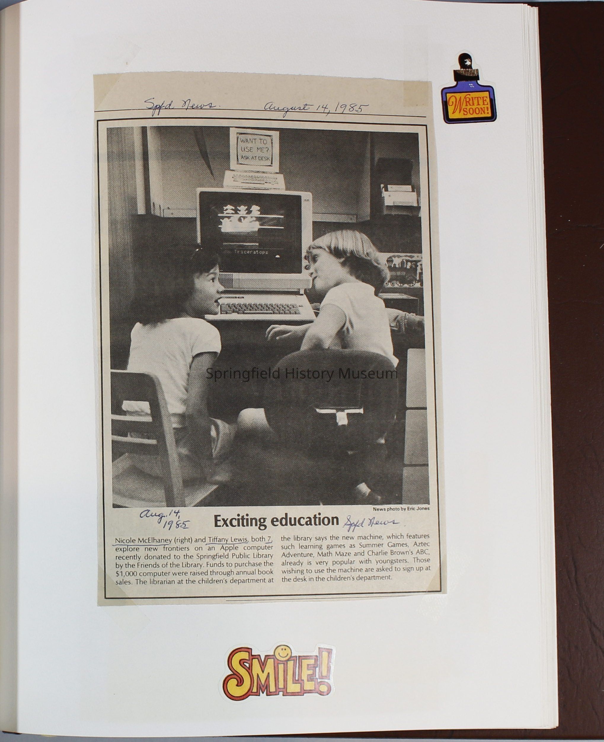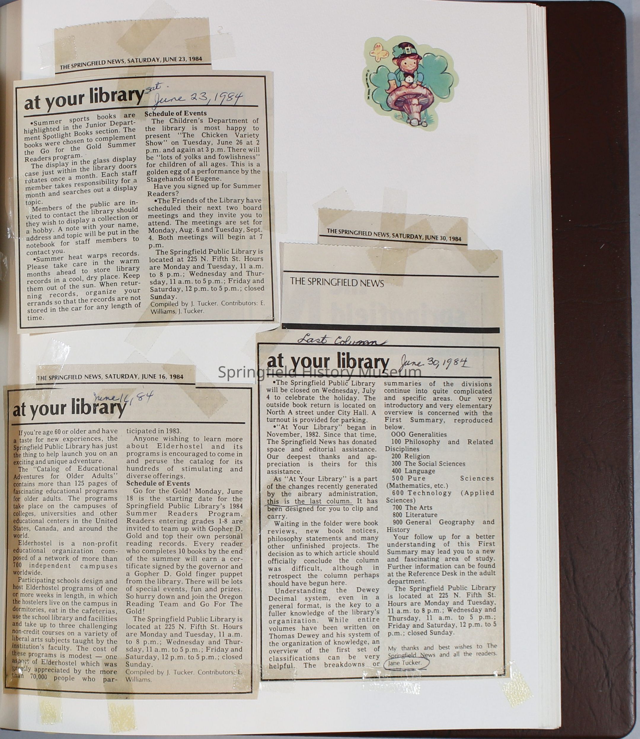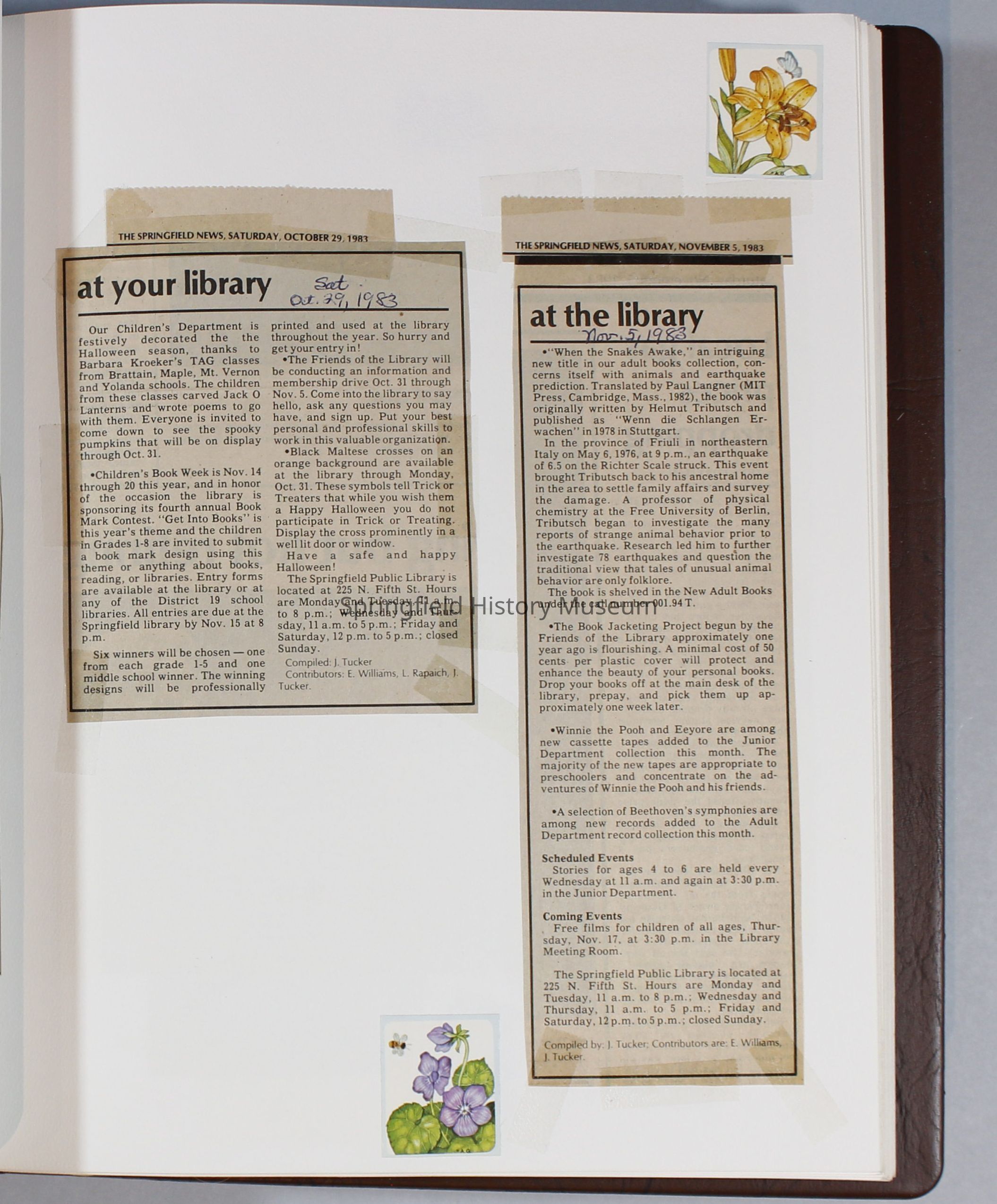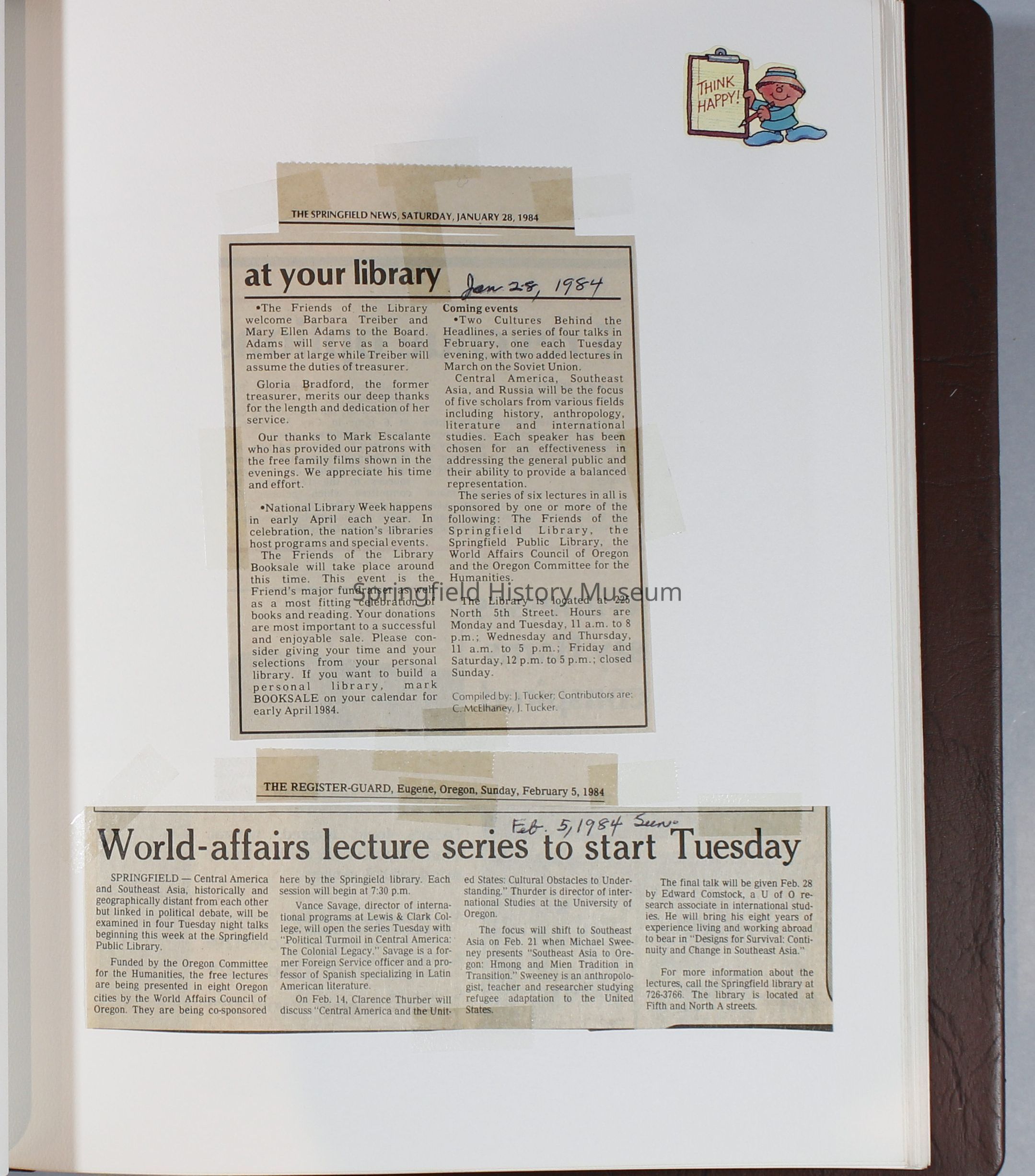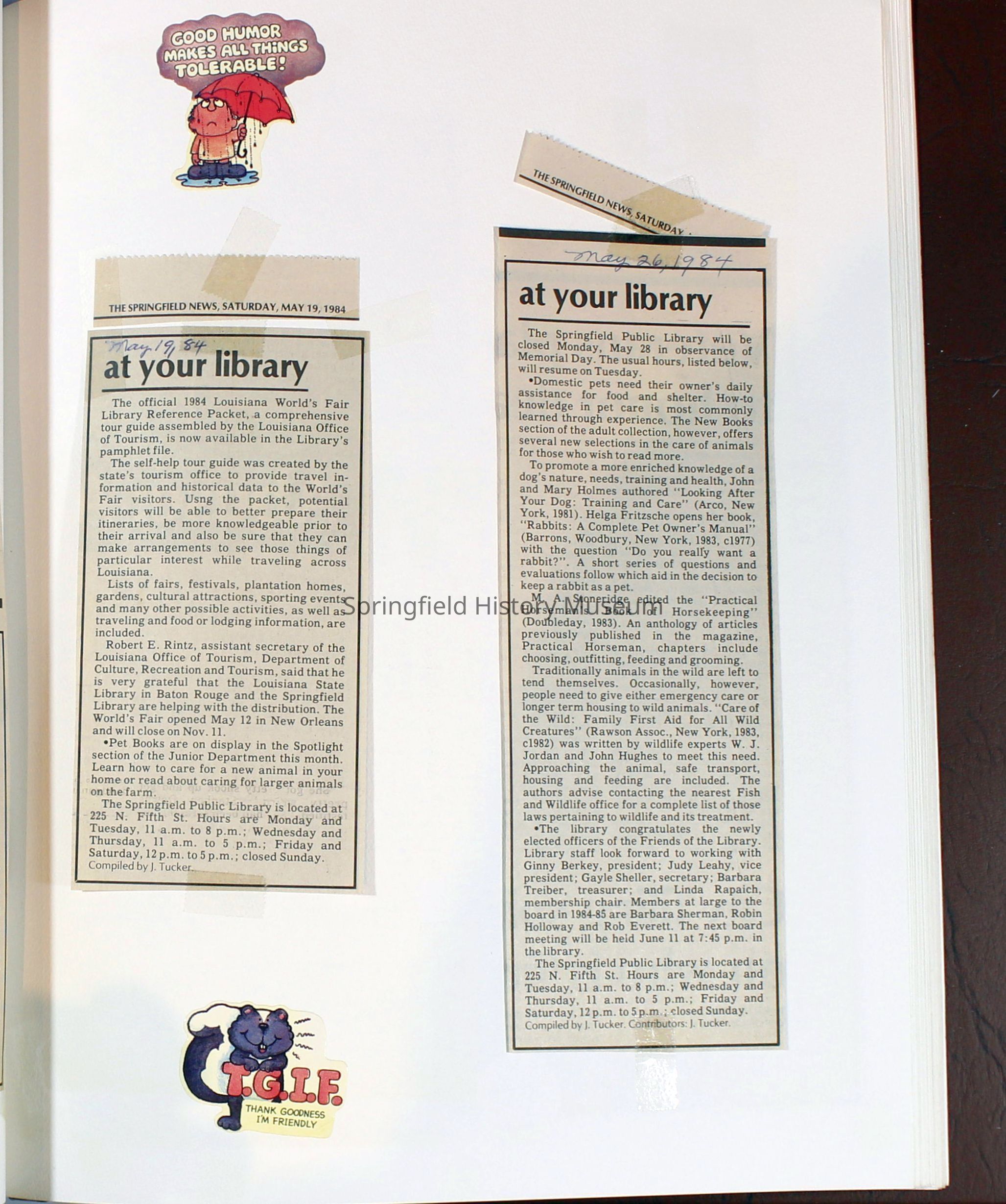 Scrapbook Friends of the Springfield Public Library archives, 1981-1985Entry/Object ID