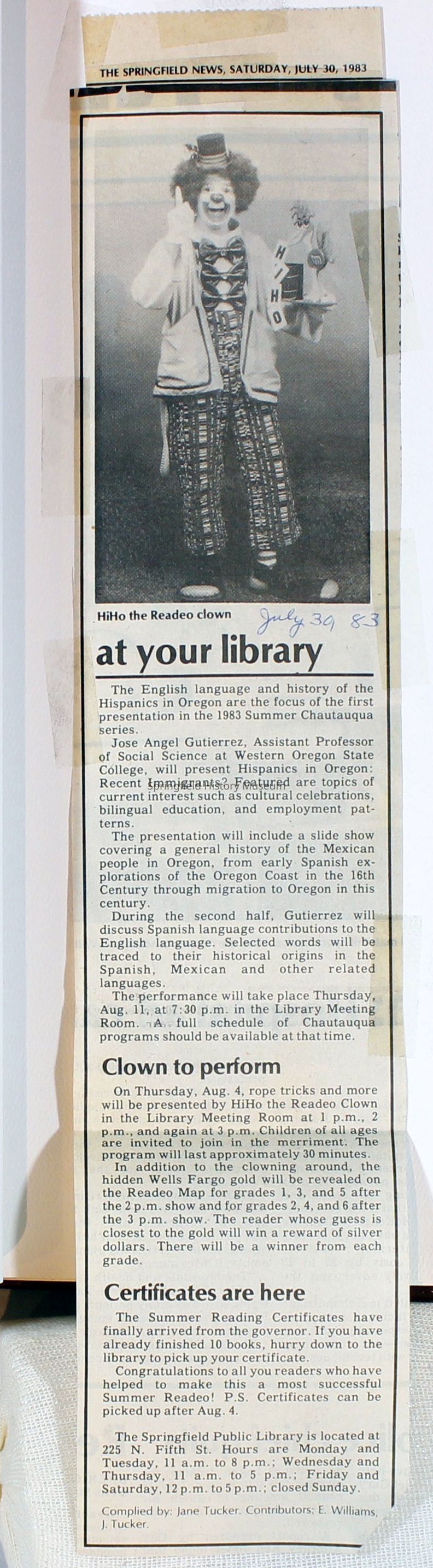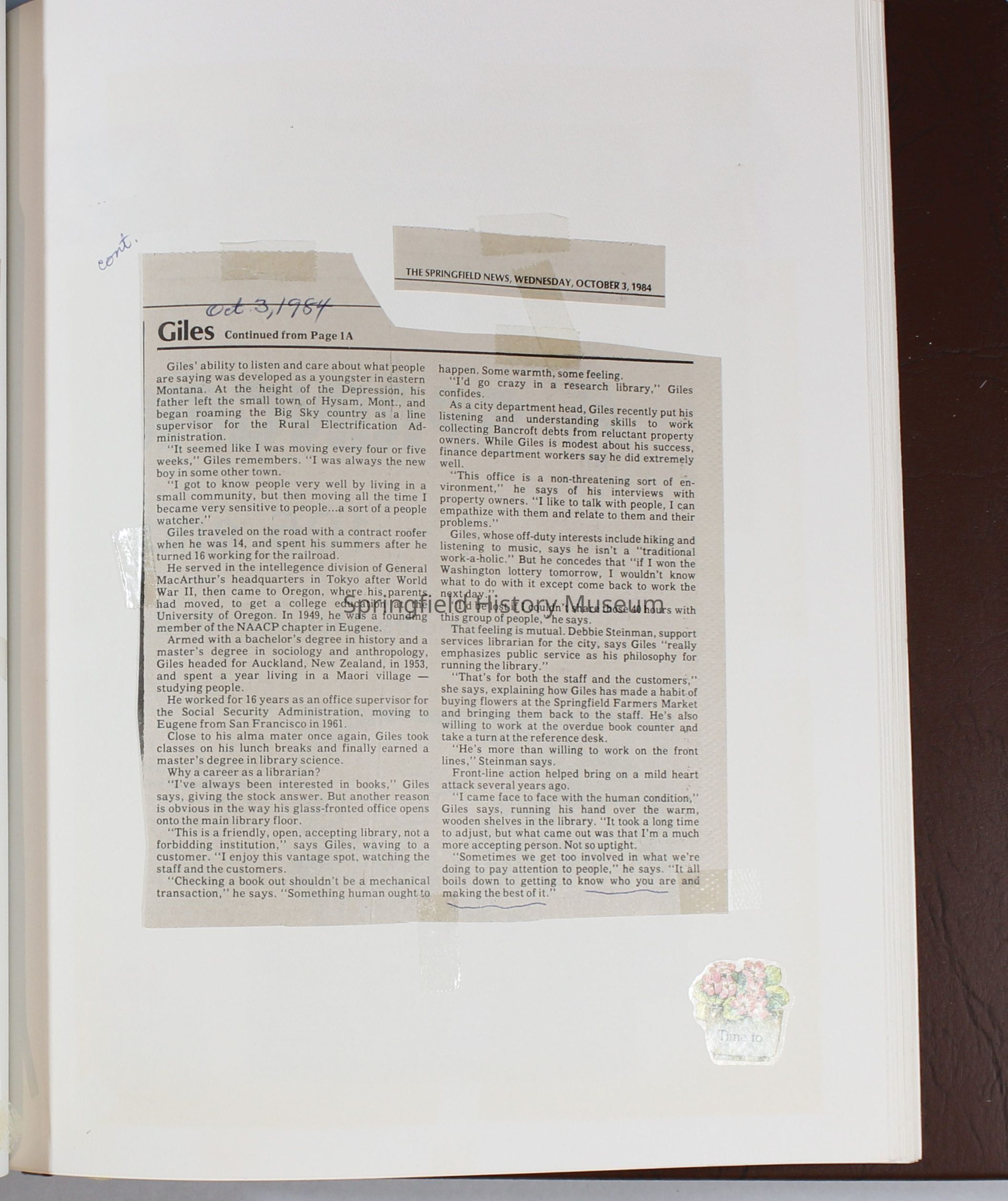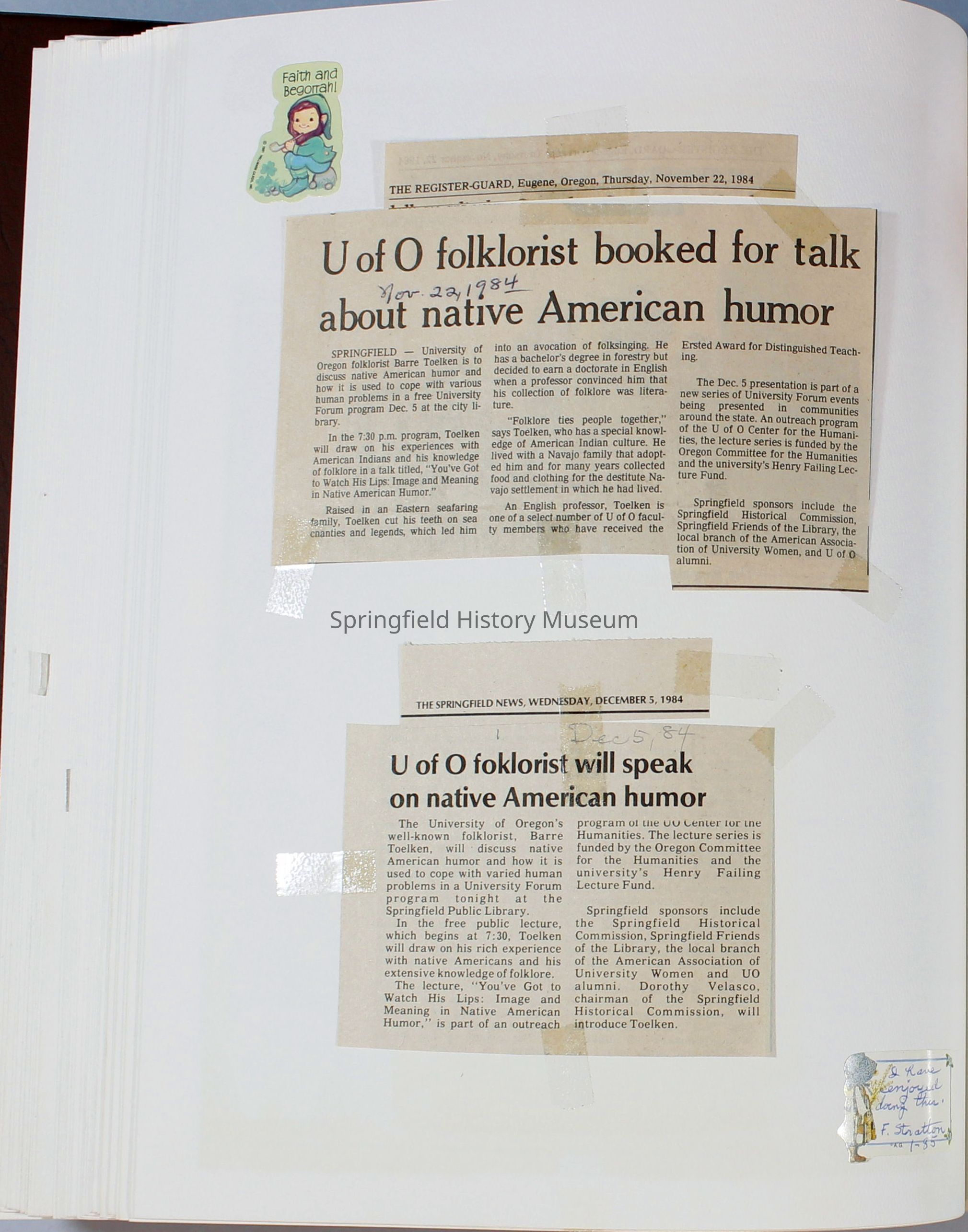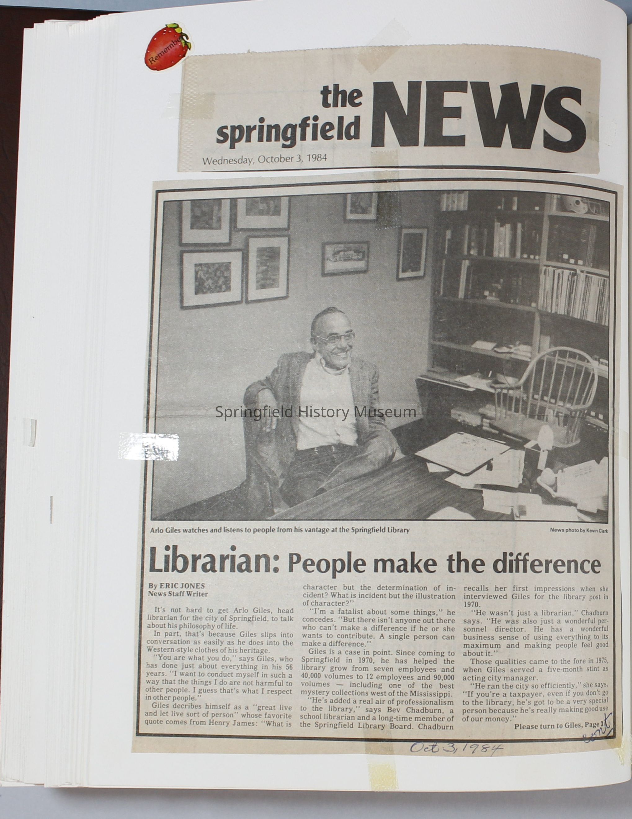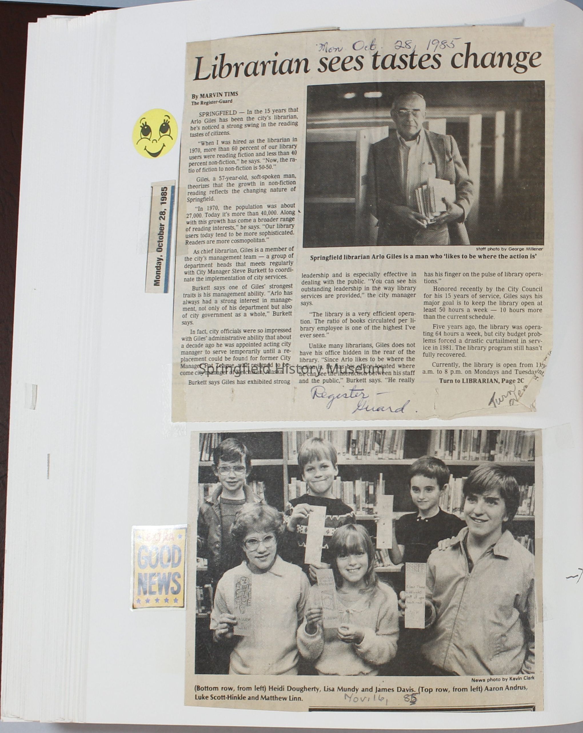 Scrapbook Friends of the Springfield Public Library archives, 1981-1985Entry/Object ID