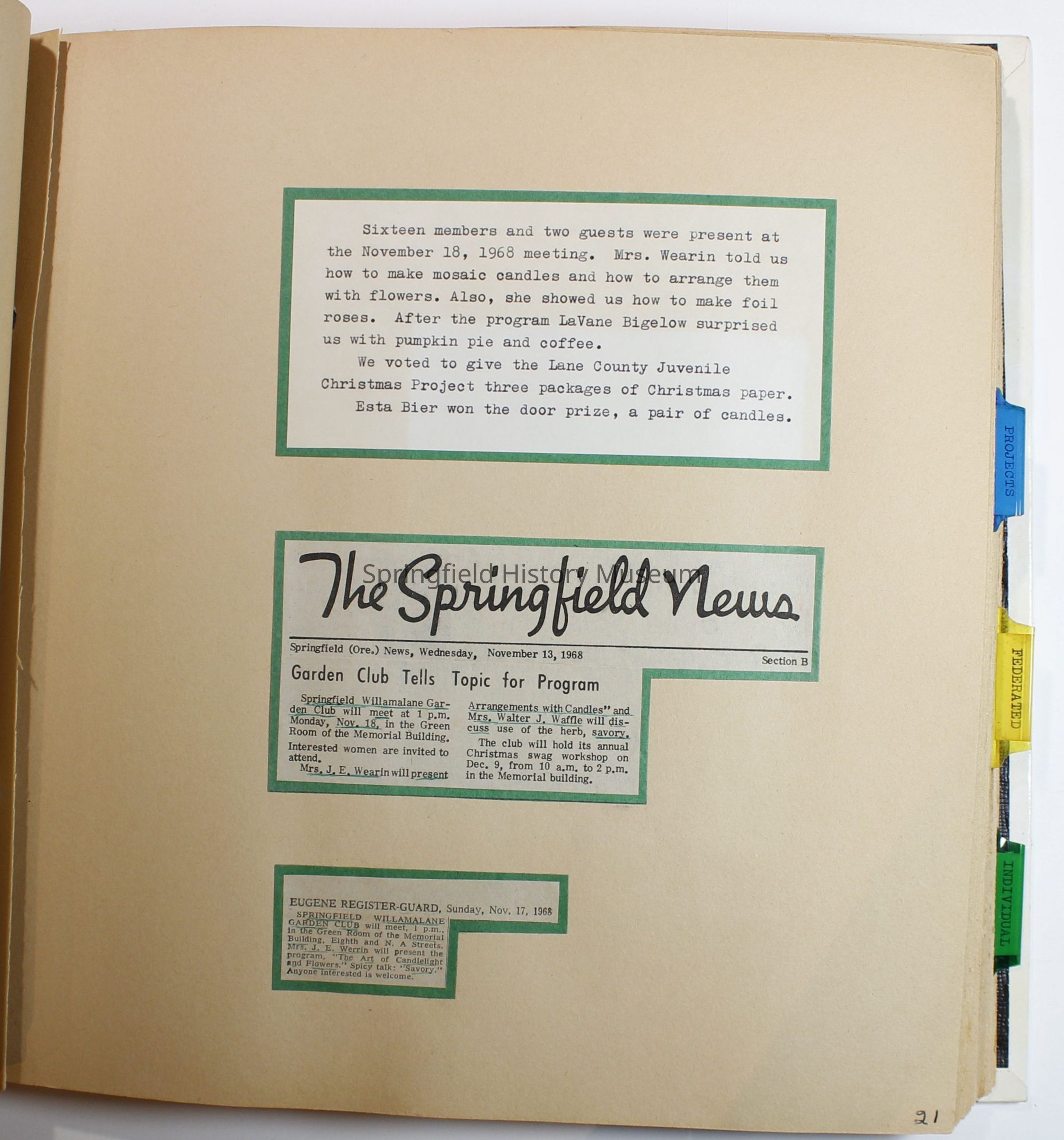 Scrapbook from the Springfield Garden Club, 1968-1969Entry/Object ID