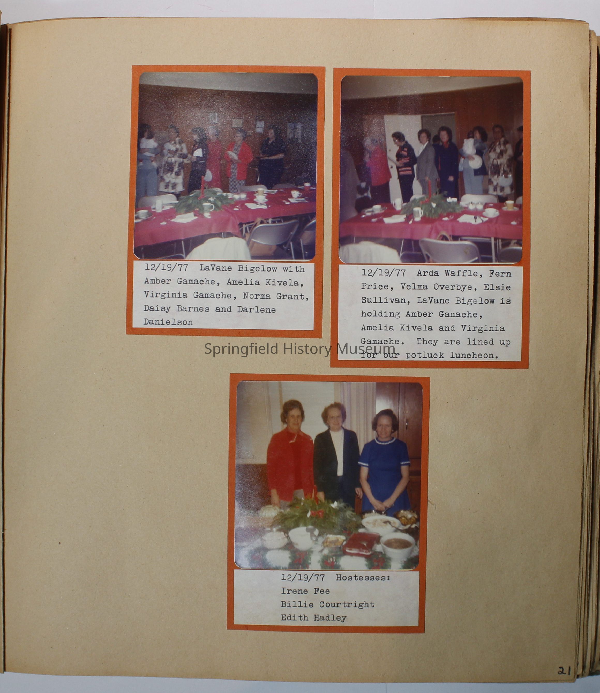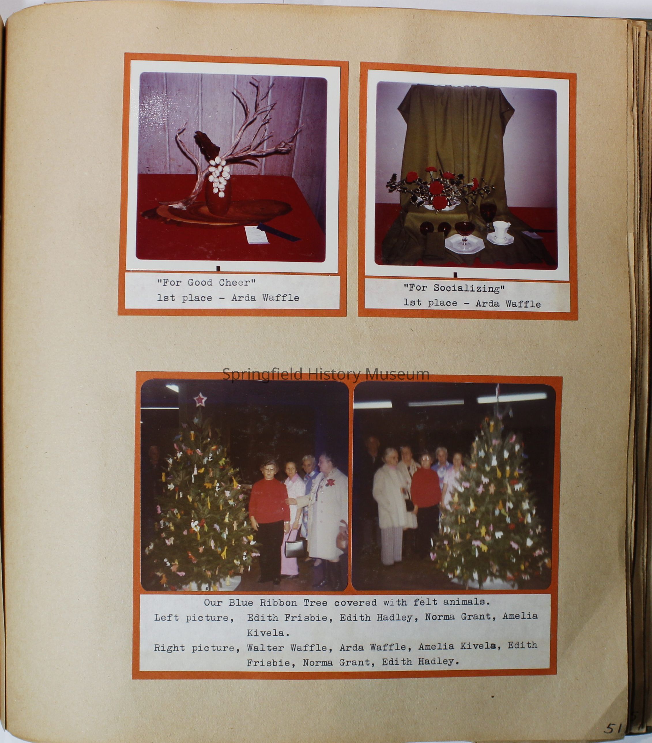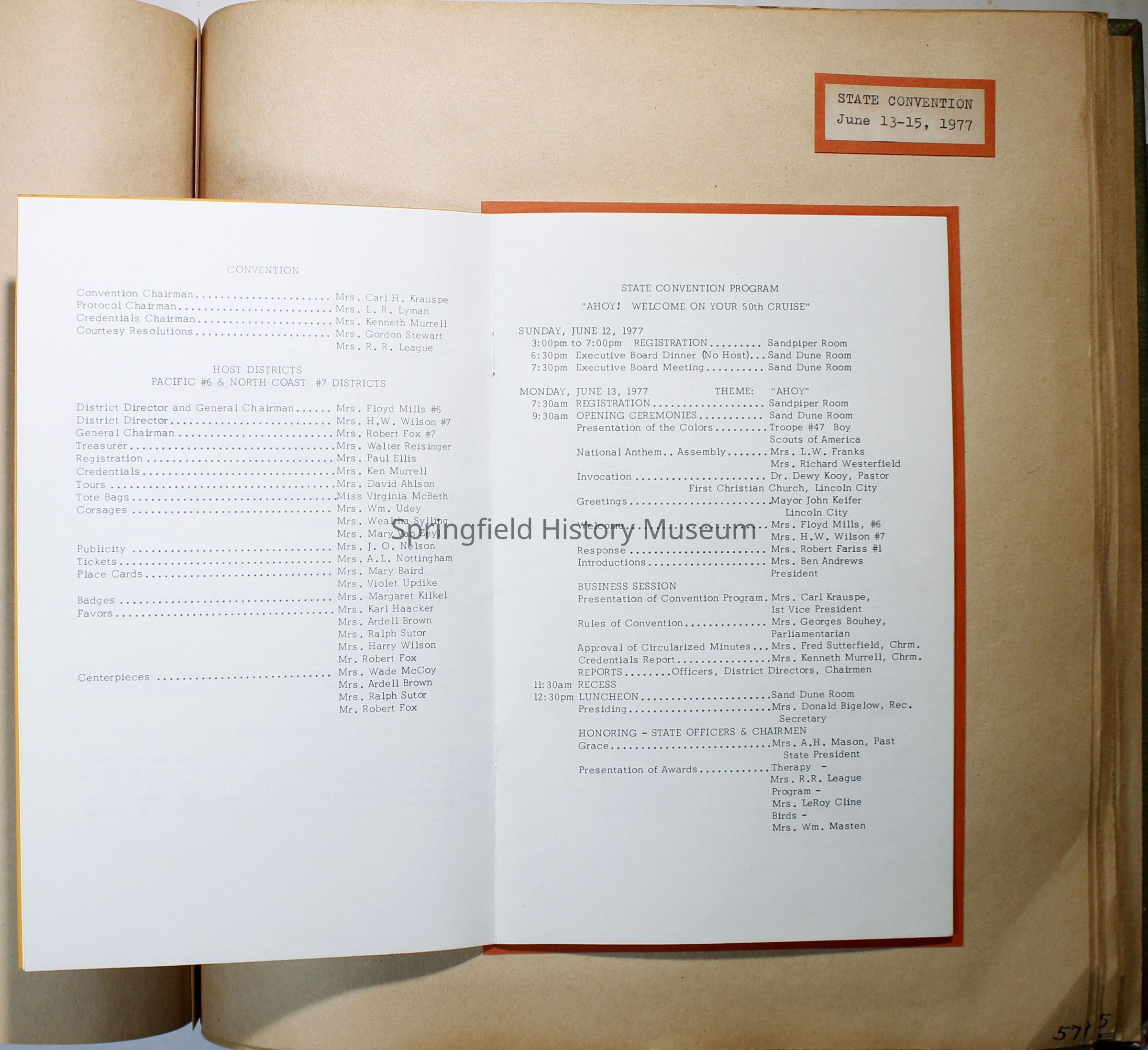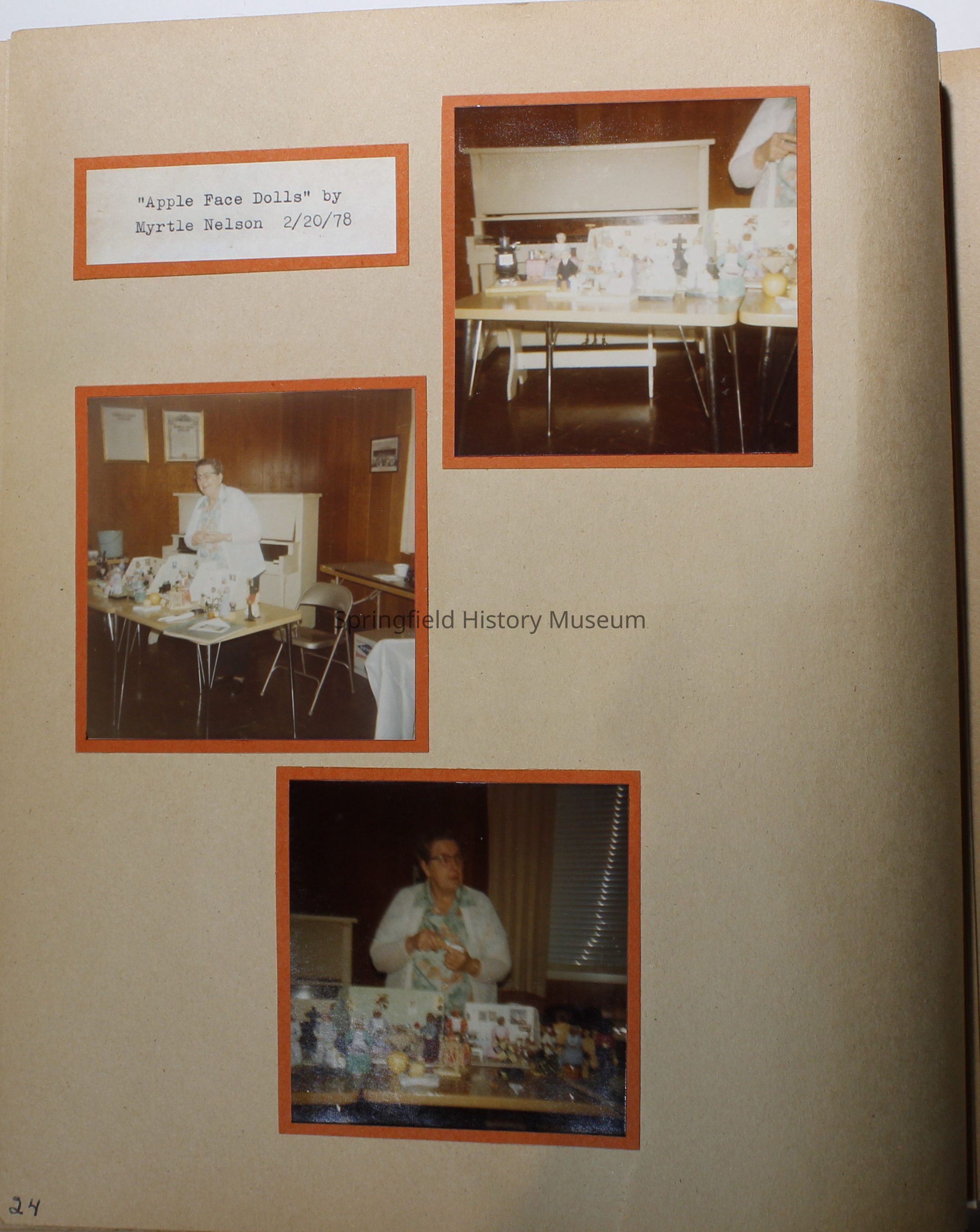 Garden Club scrapbook 1977-1978. Quite a few color photos of members. Basket of fruit painted on olive green front cover; 82 pages