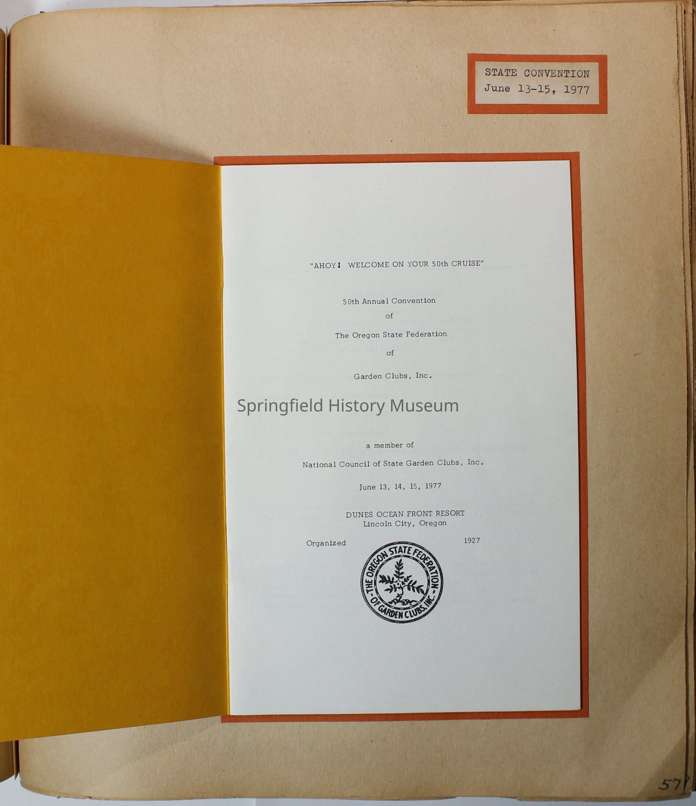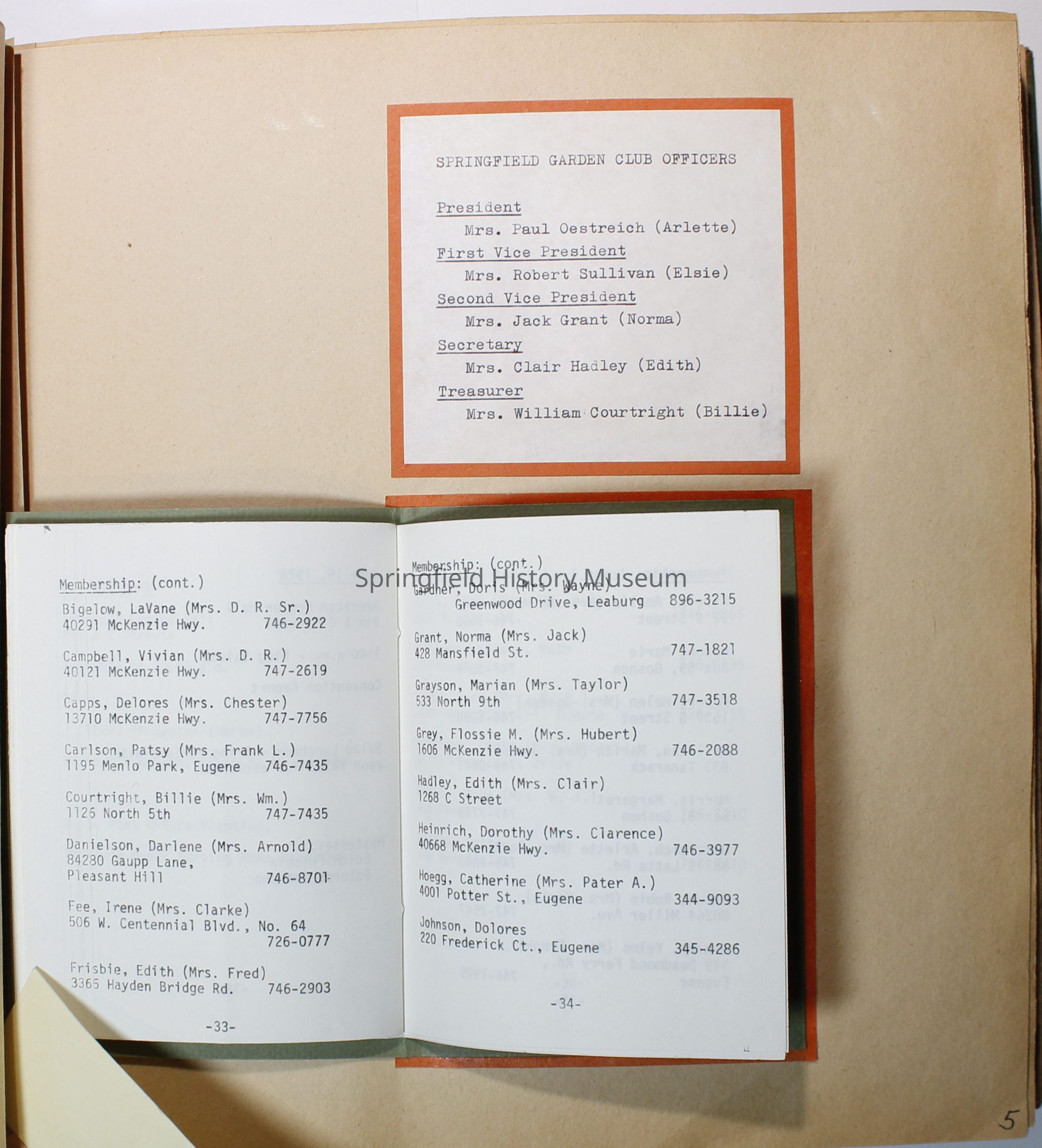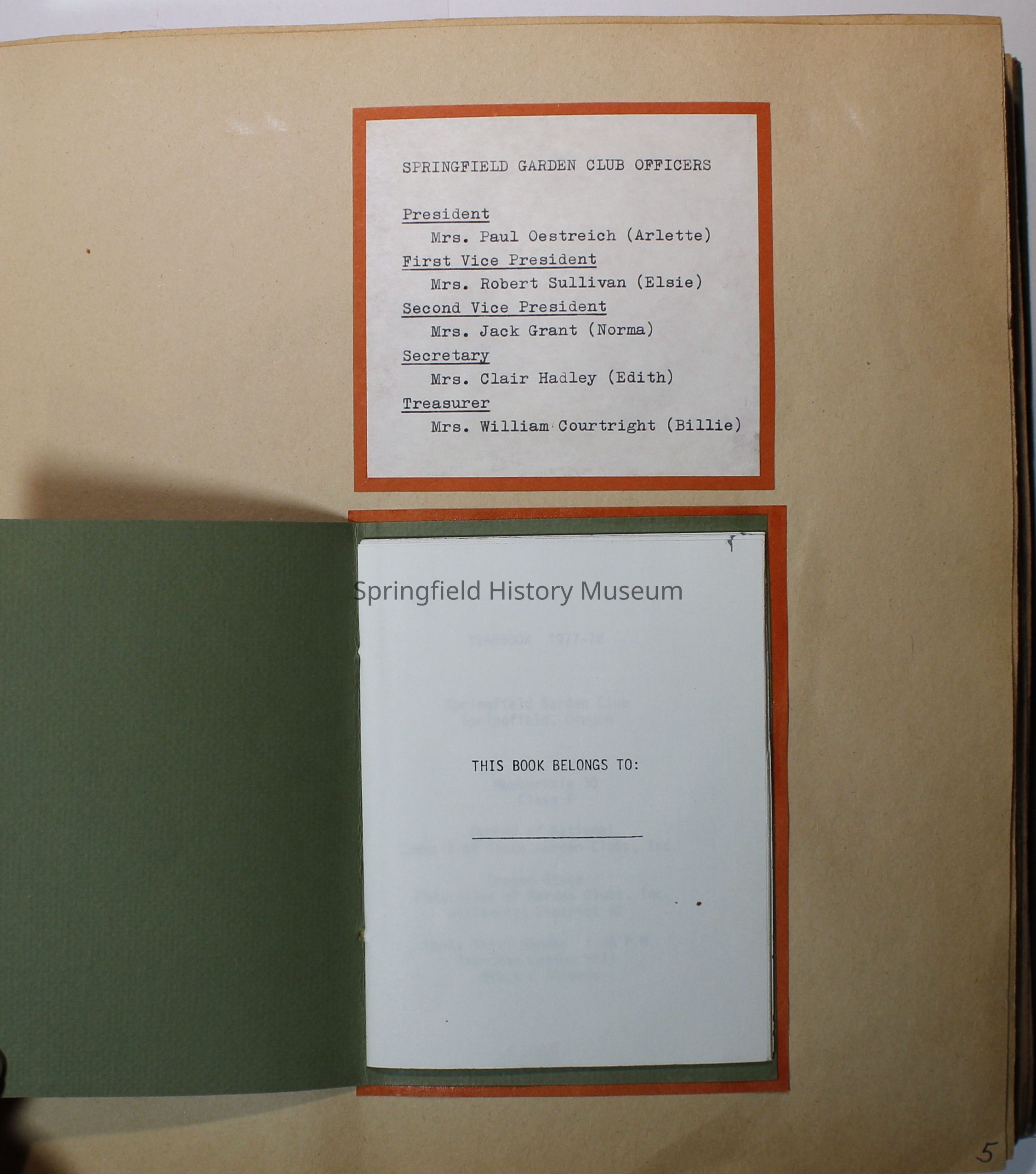 Cover is olive green with basket of fruits and flowers on it, in black states: "Springfield Garden Club Springfield, Ore 1977-1978"