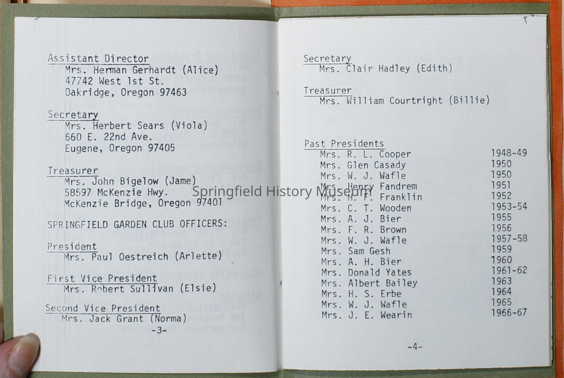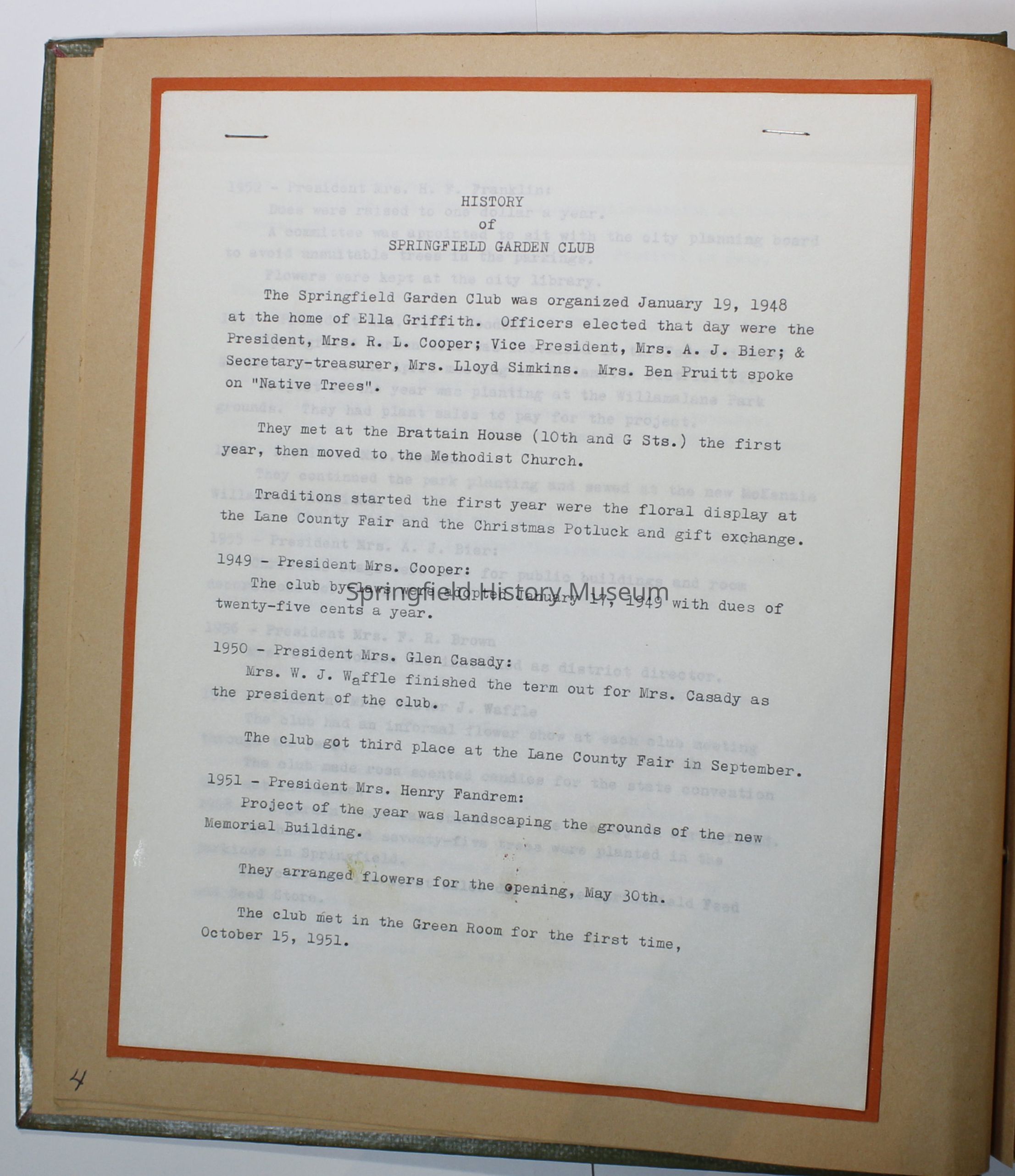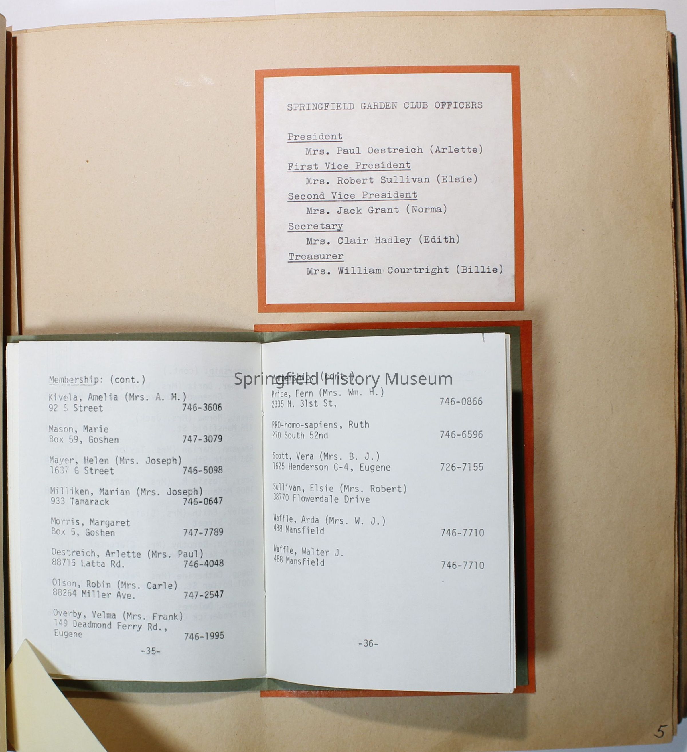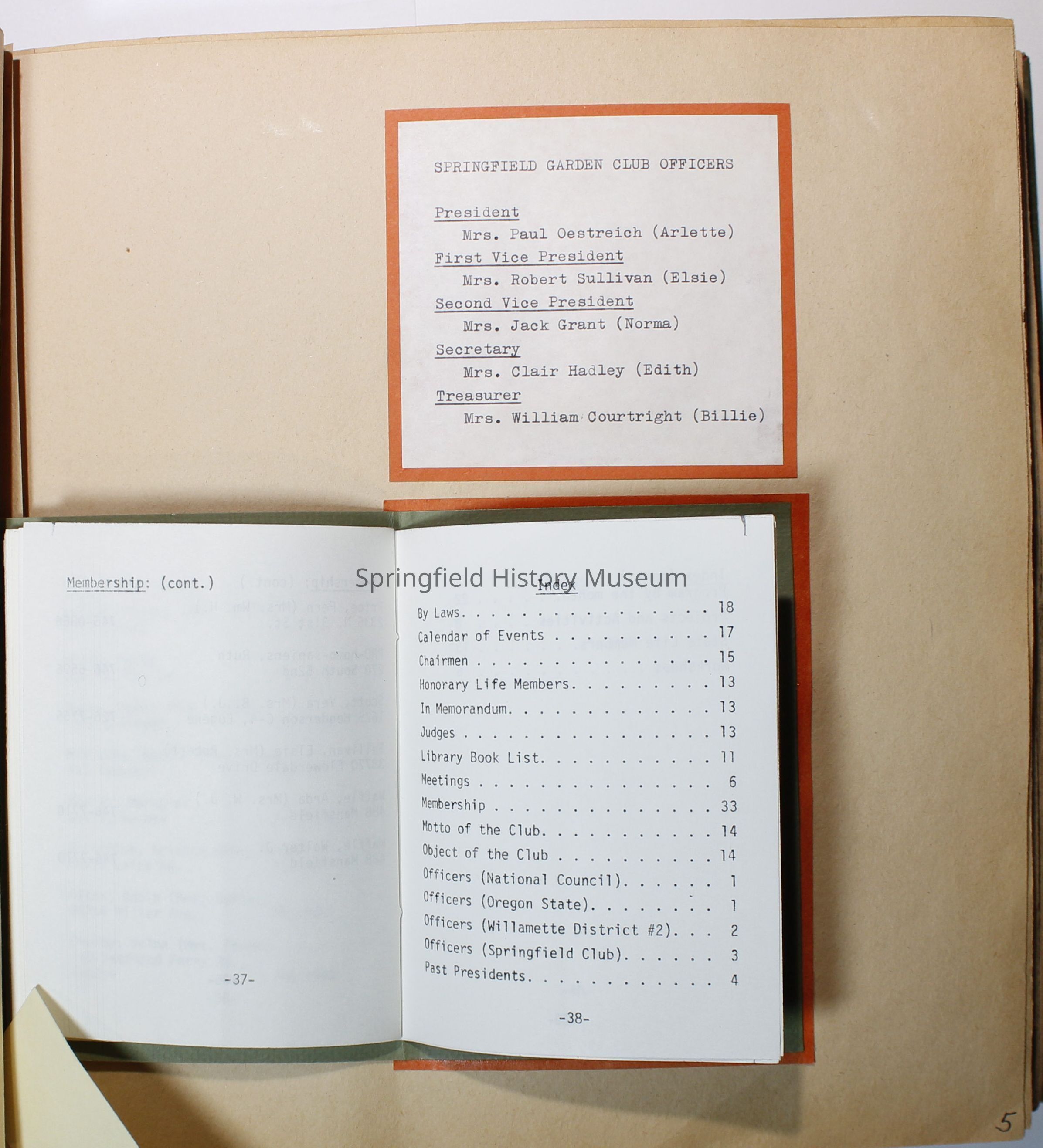Cover is olive green with basket of fruits and flowers on it, in black states: "Springfield Garden Club Springfield, Ore 1977-1978"