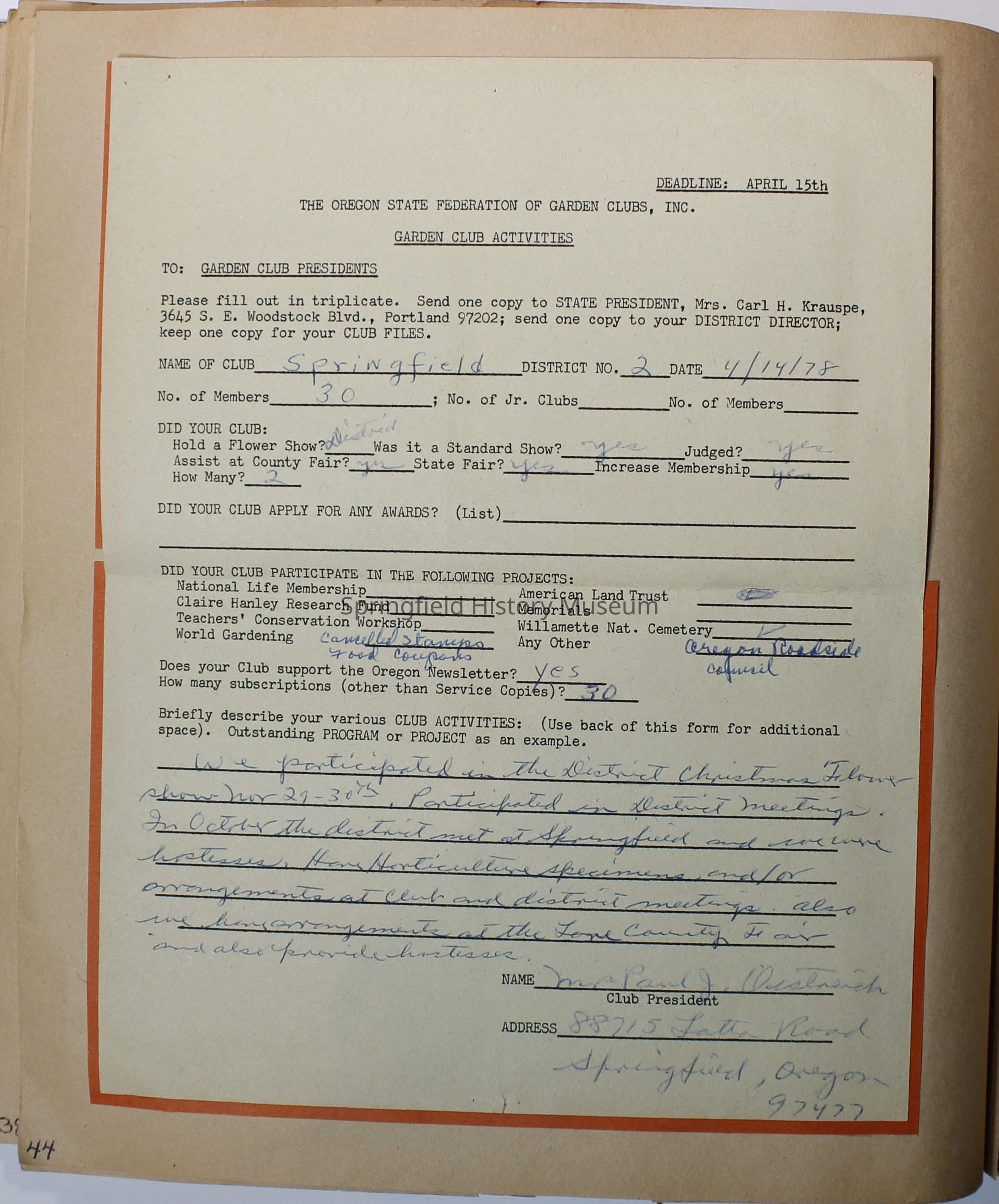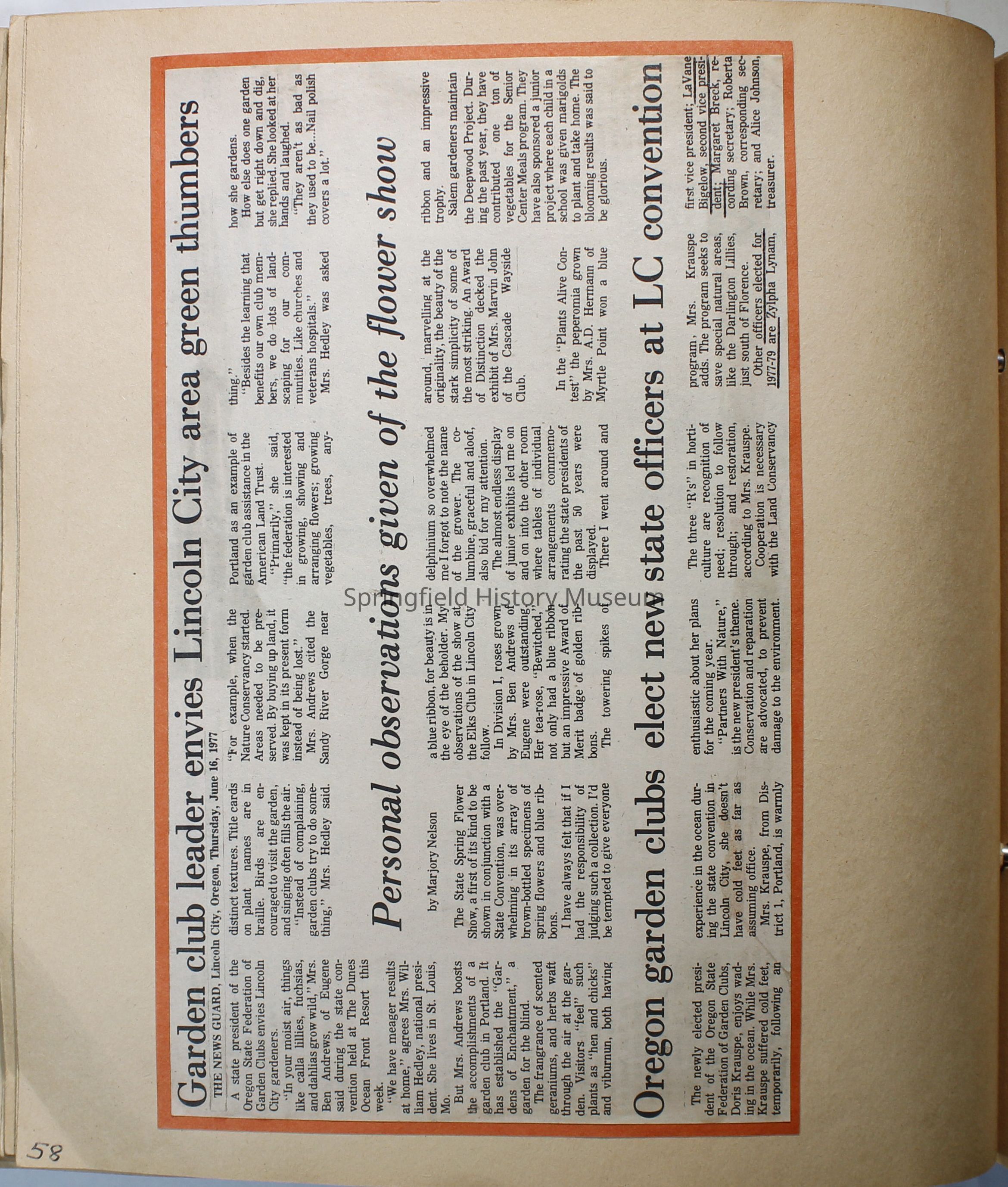 Scrapbook from the Springfield Garden Club, 1977-1978