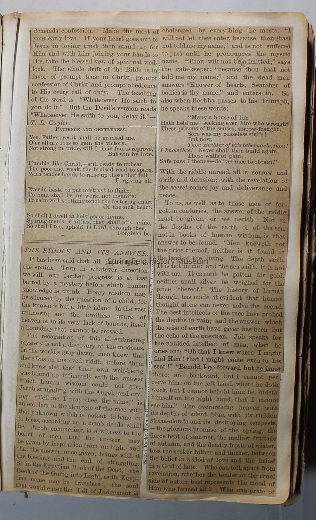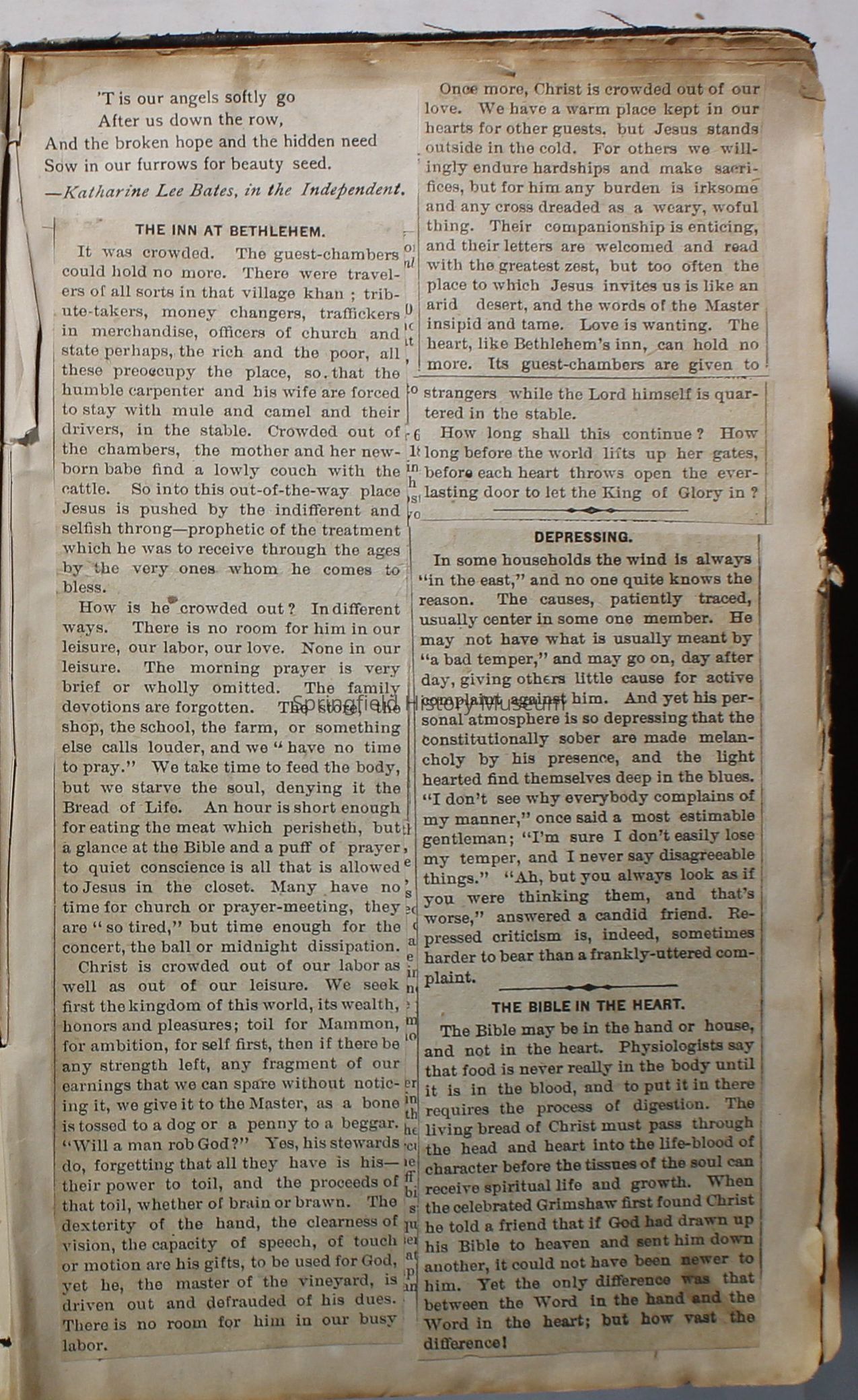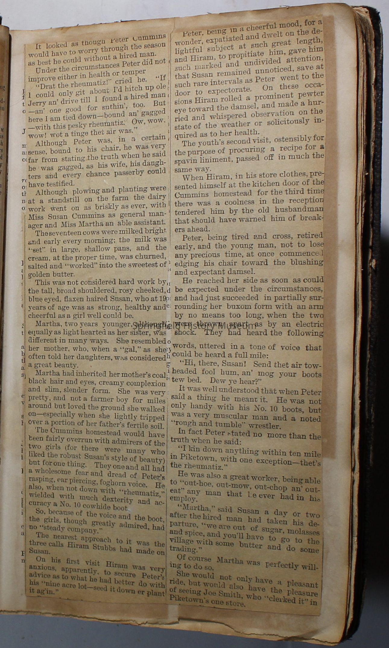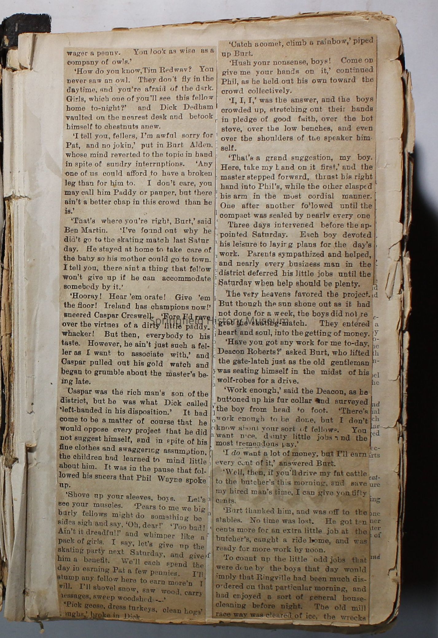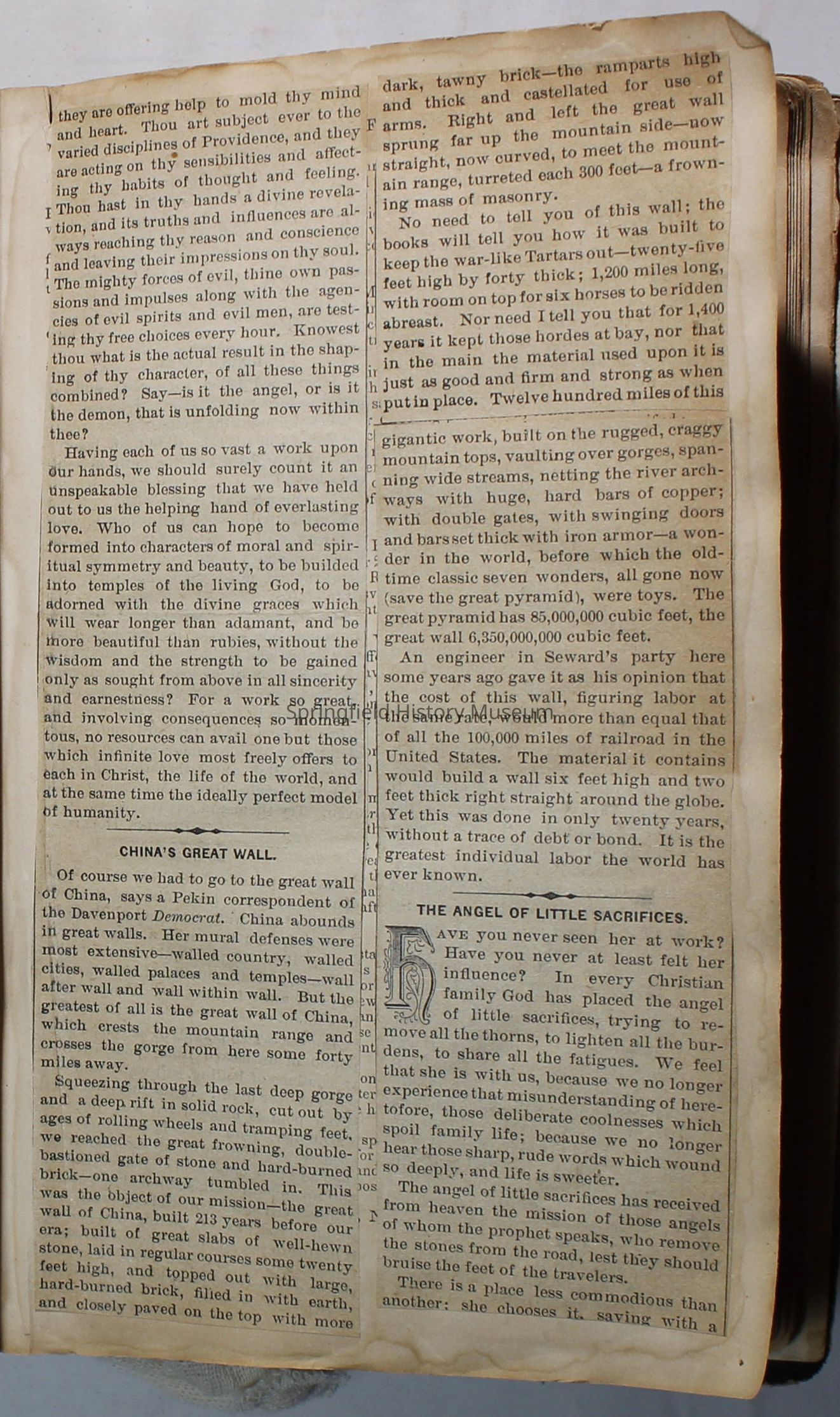 Scrapbook handmade by Agnes Stewart Warner for her son, Clyde. Original hardbound book with newspaper clippings. Book starts with clippings from the Pacific Christian Advocate dated December 4, 1884 on traveling across the Oregon trail. Included are poems, songs, religious articles, and other stories.