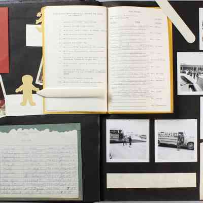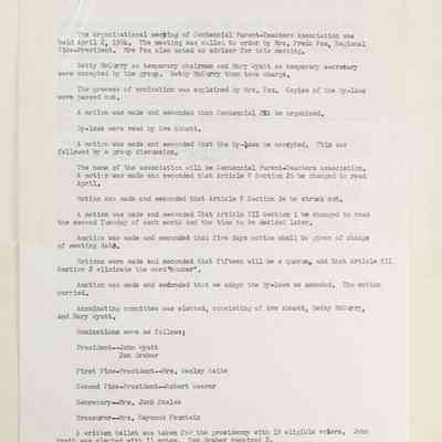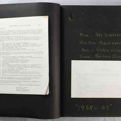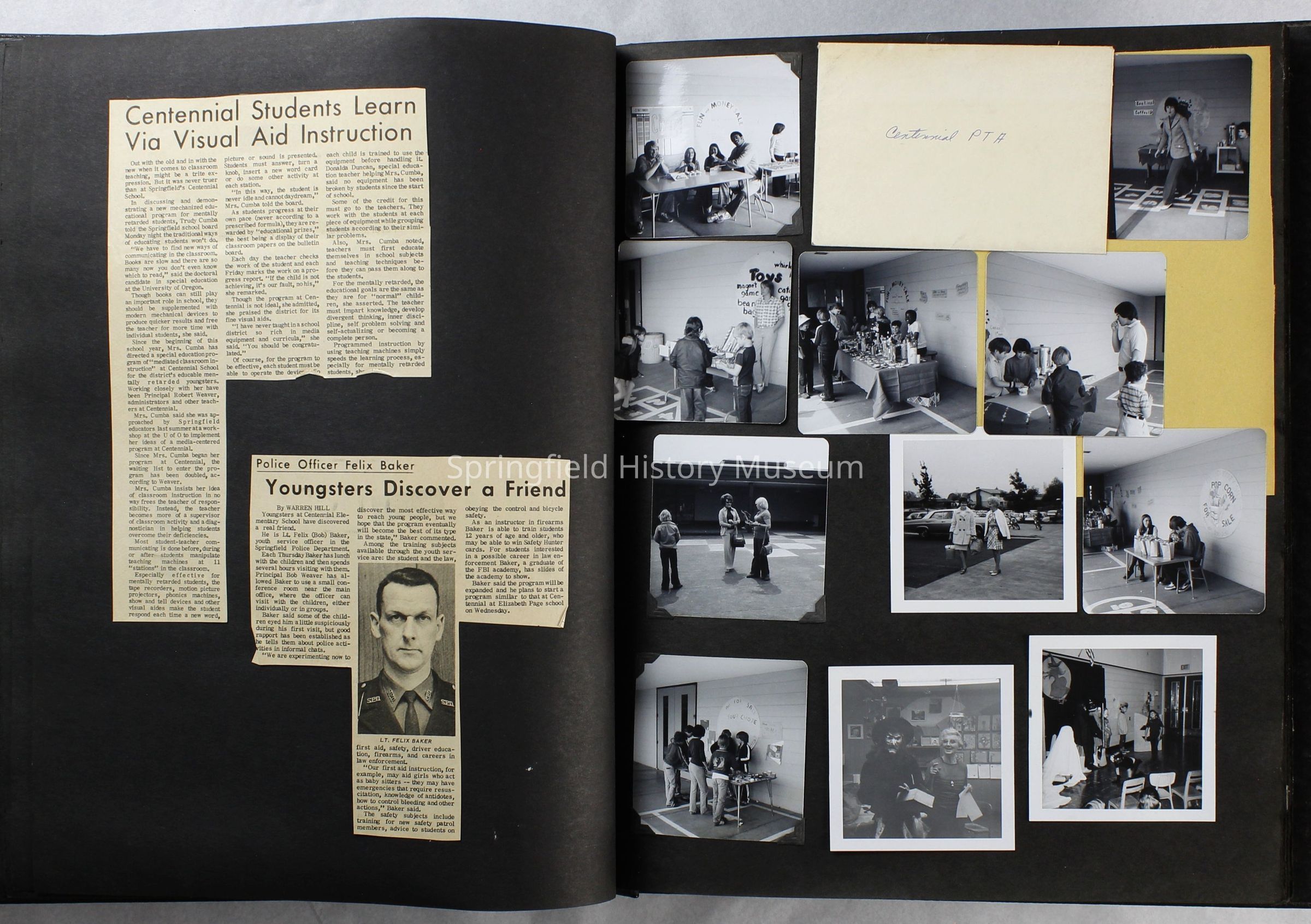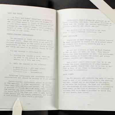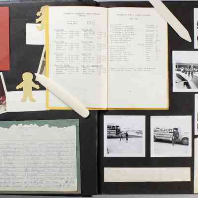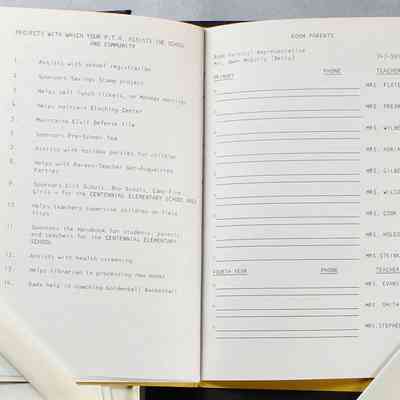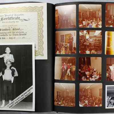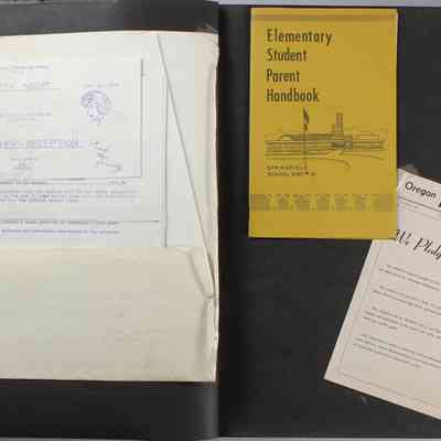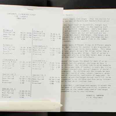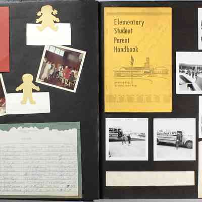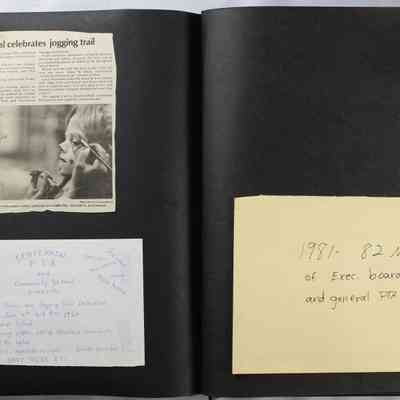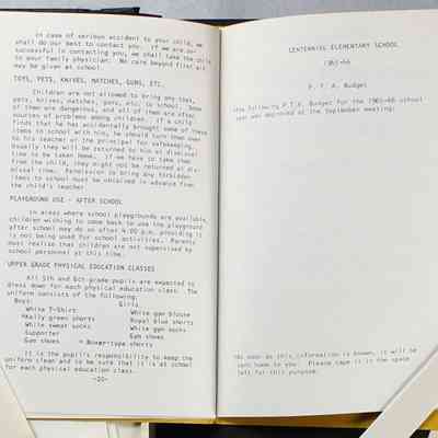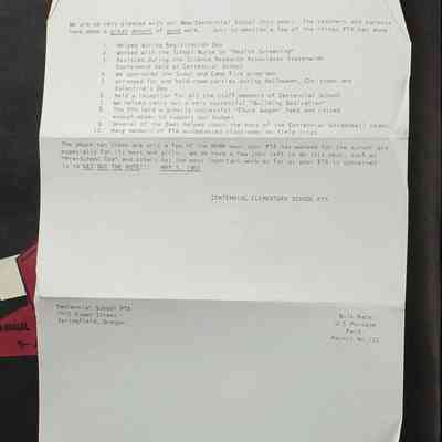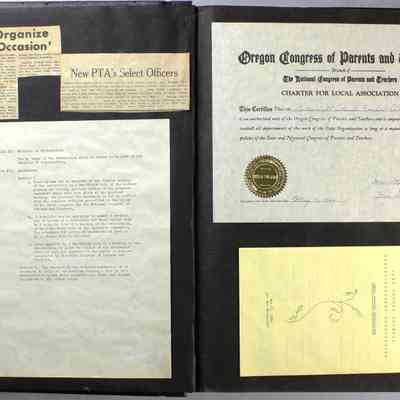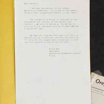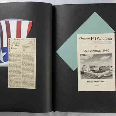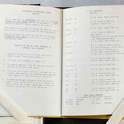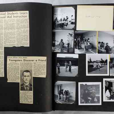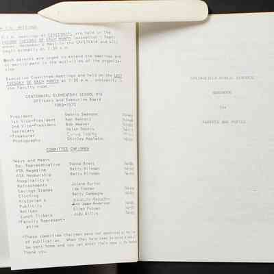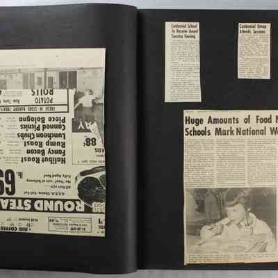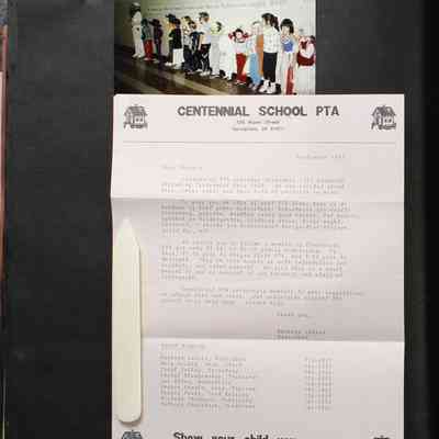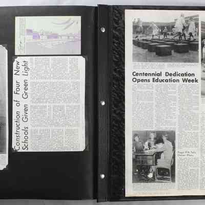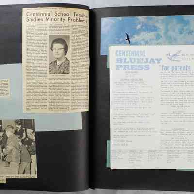 Scrapbook covering the history of the Centennial Elementary School Parent Teacher Association (PTA), circa 1964-1985. Holds photographs, letters, meeting minutes, handbooks, programming, clippings. Black cover and 80 pages.Collection