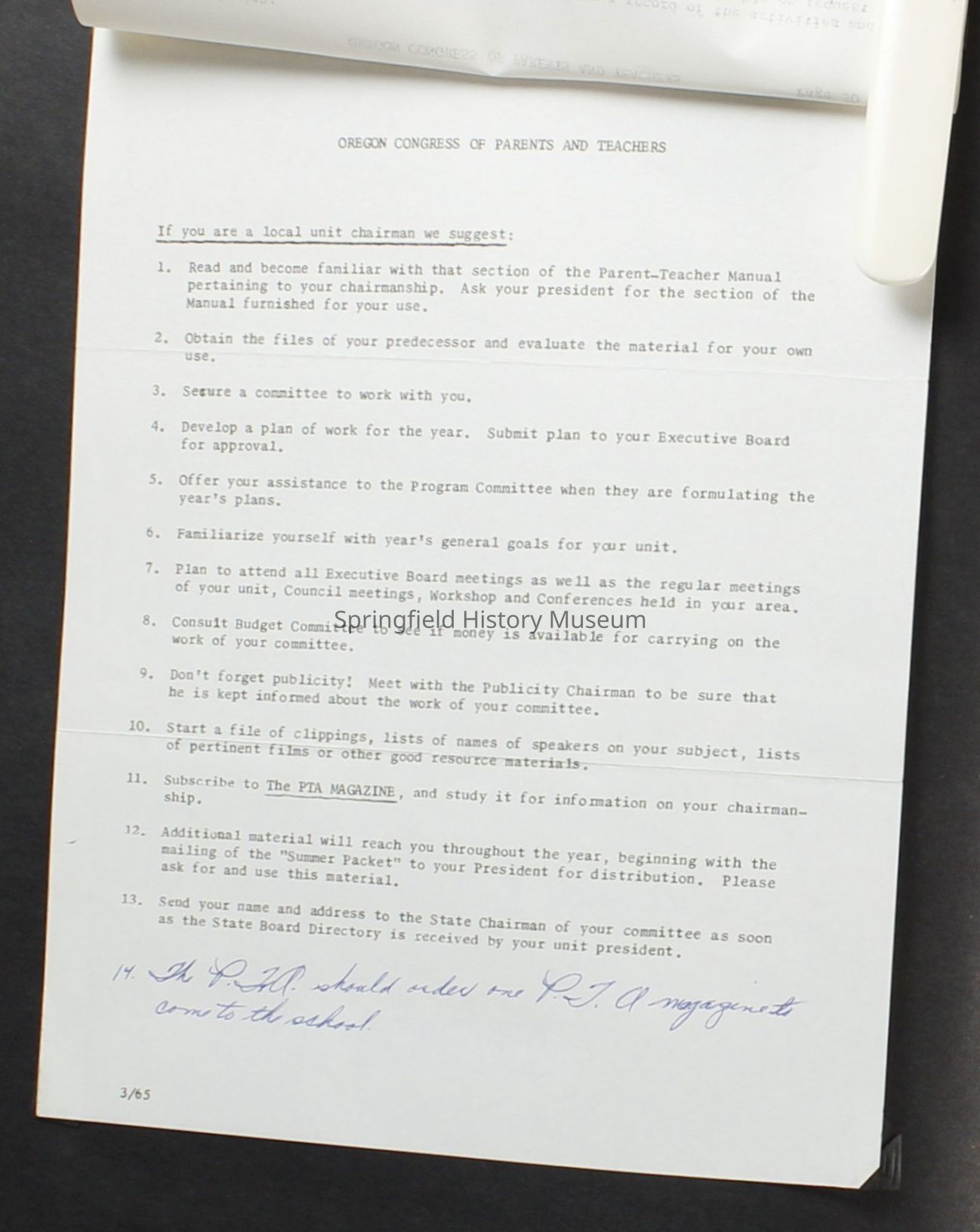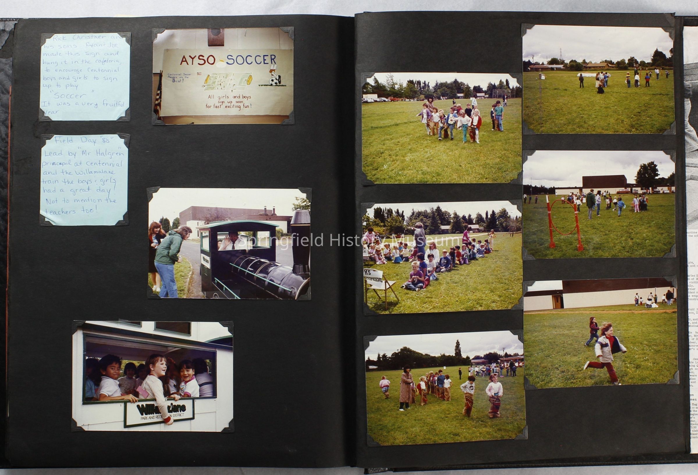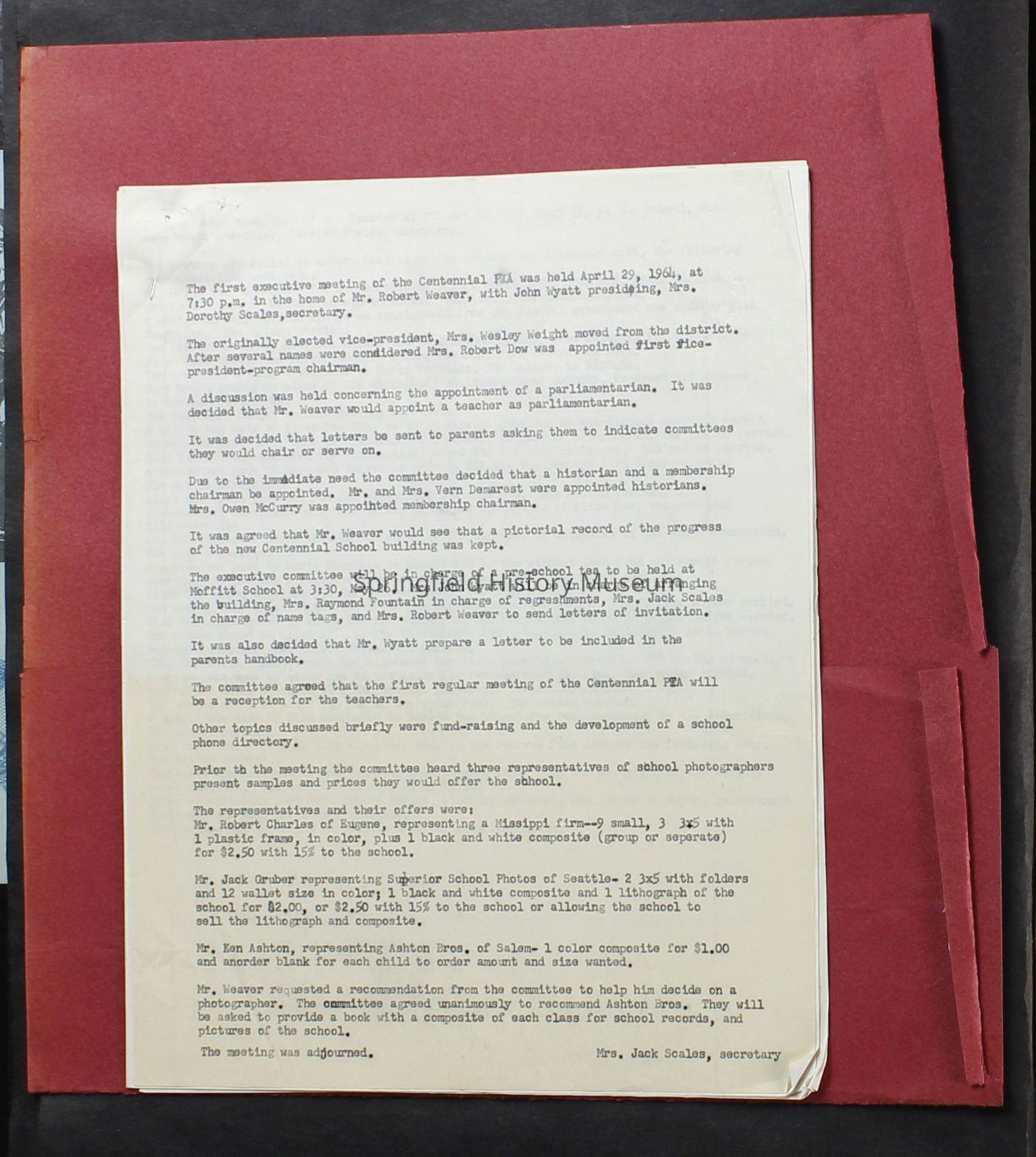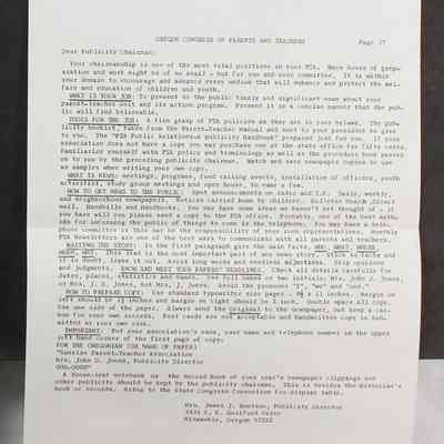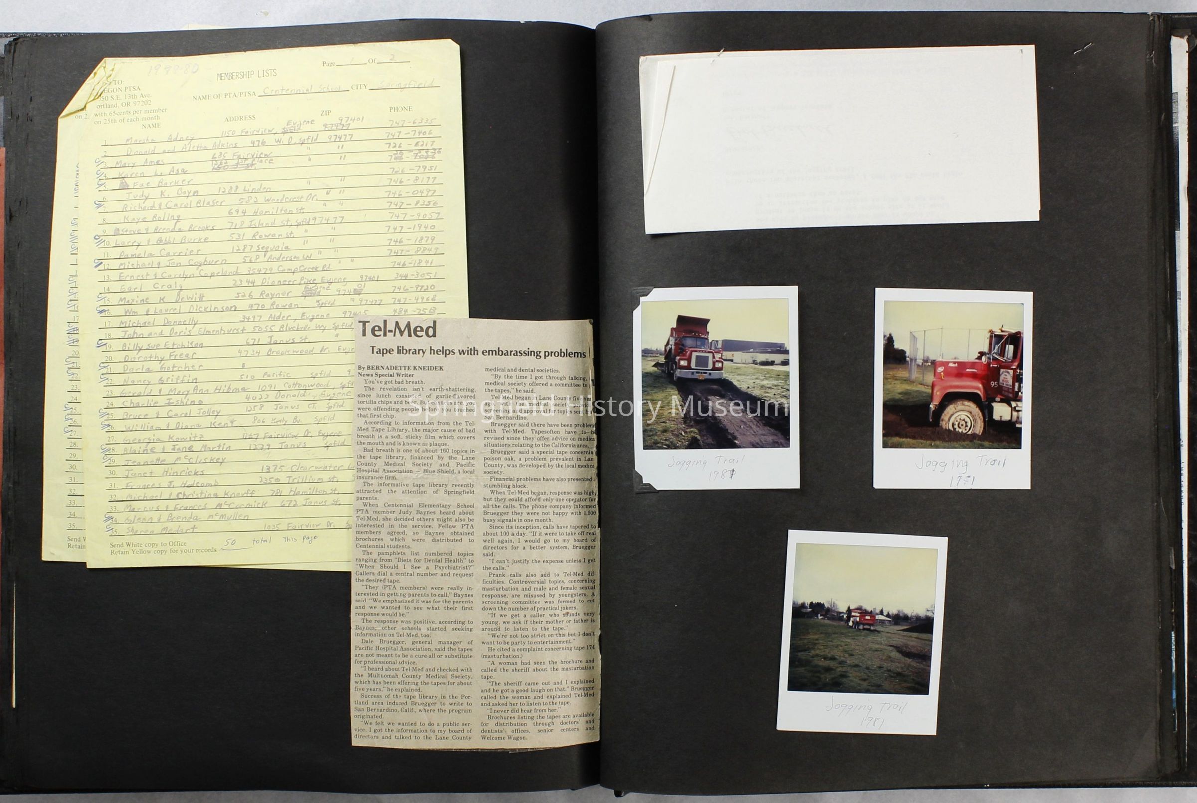 Scrapbook covering the history of the Centennial Elementary School Parent Teacher Association (PTA), circa 1964-1985. Holds photographs, letters, meeting minutes, handbooks, programming, clippings. Black cover and 80 pages.Collection