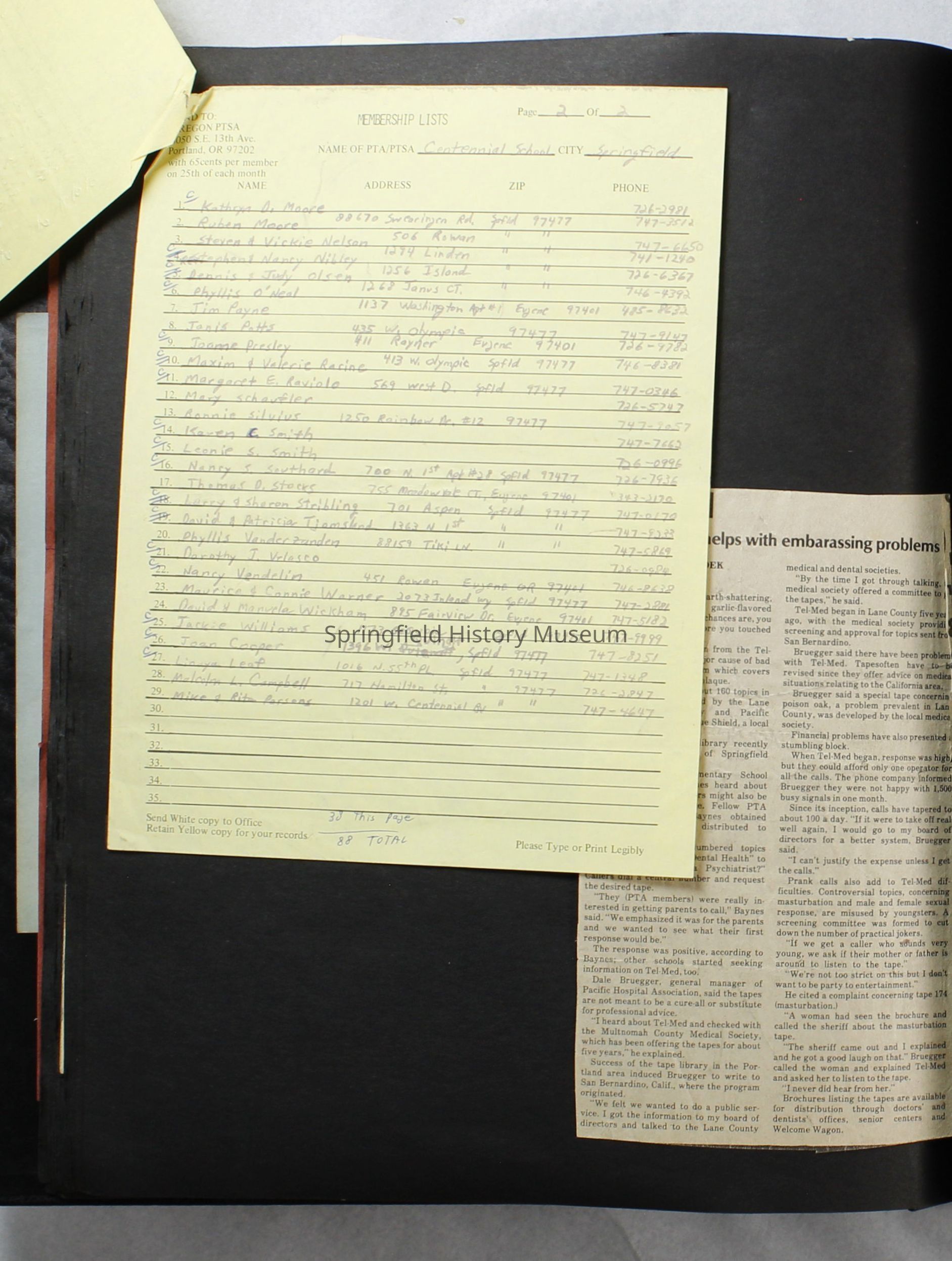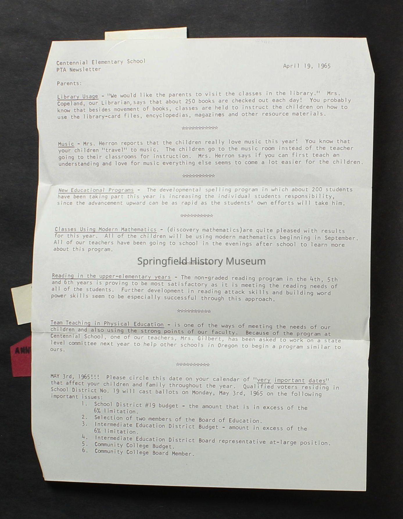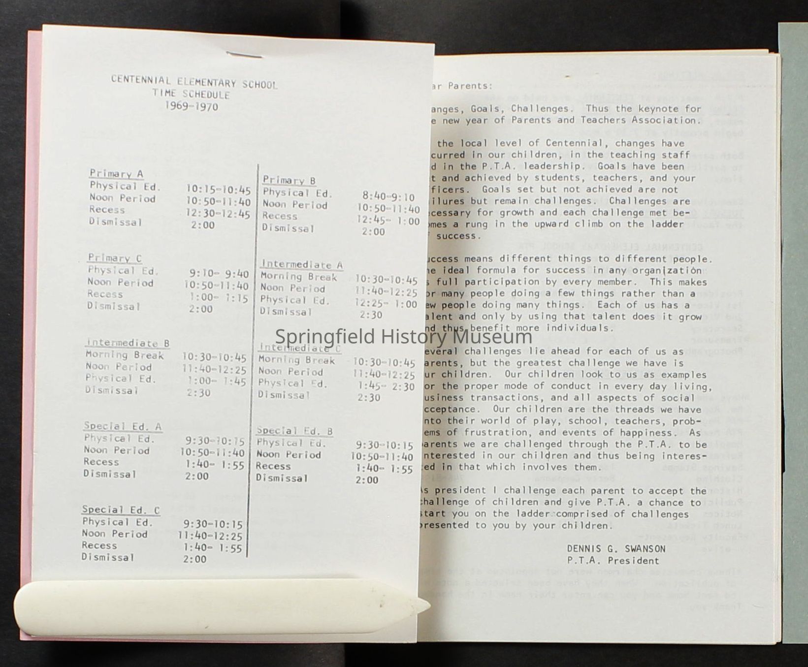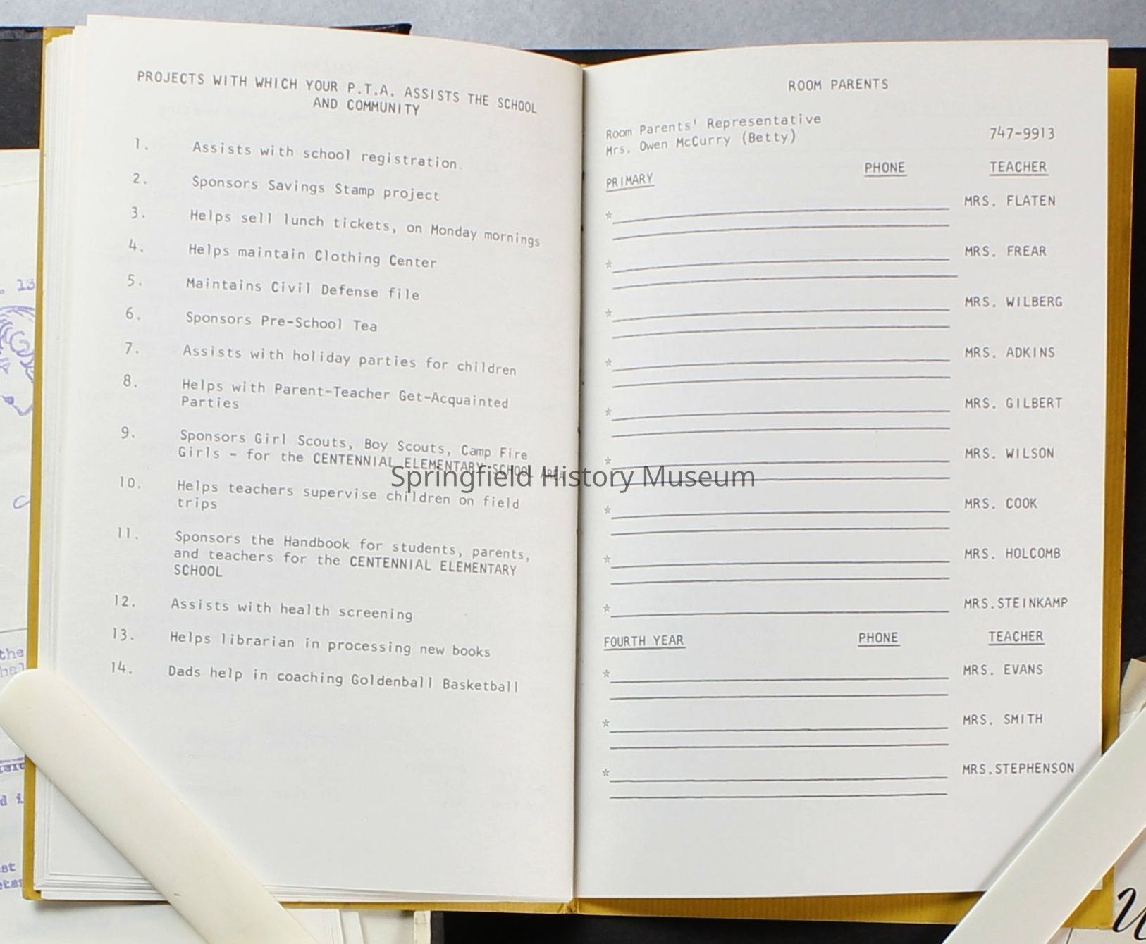 Scrapbook, Centennial Elementary School Parent Teacher Association, circa 1964-1985Entry/Object ID
