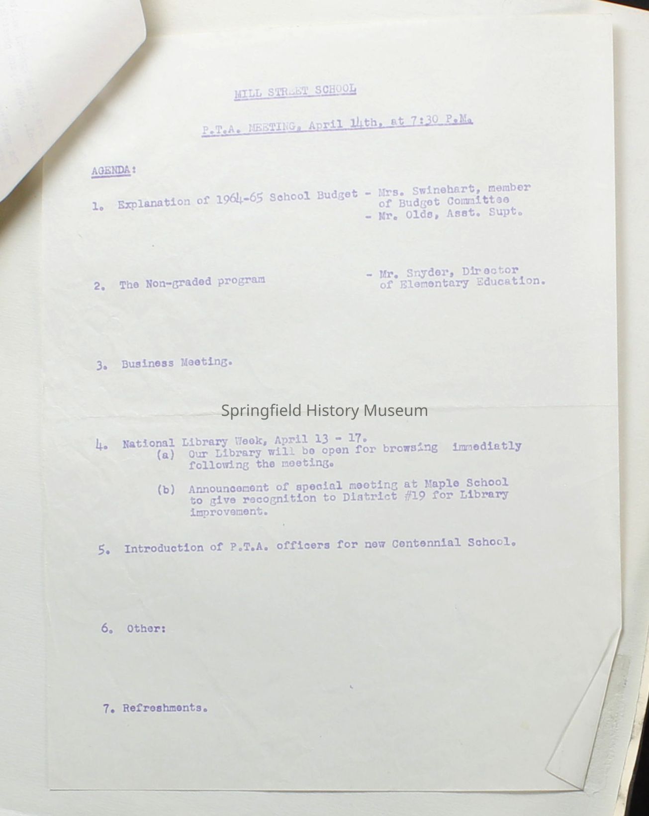 Centennial Elementary School CollectionArchive Items Details