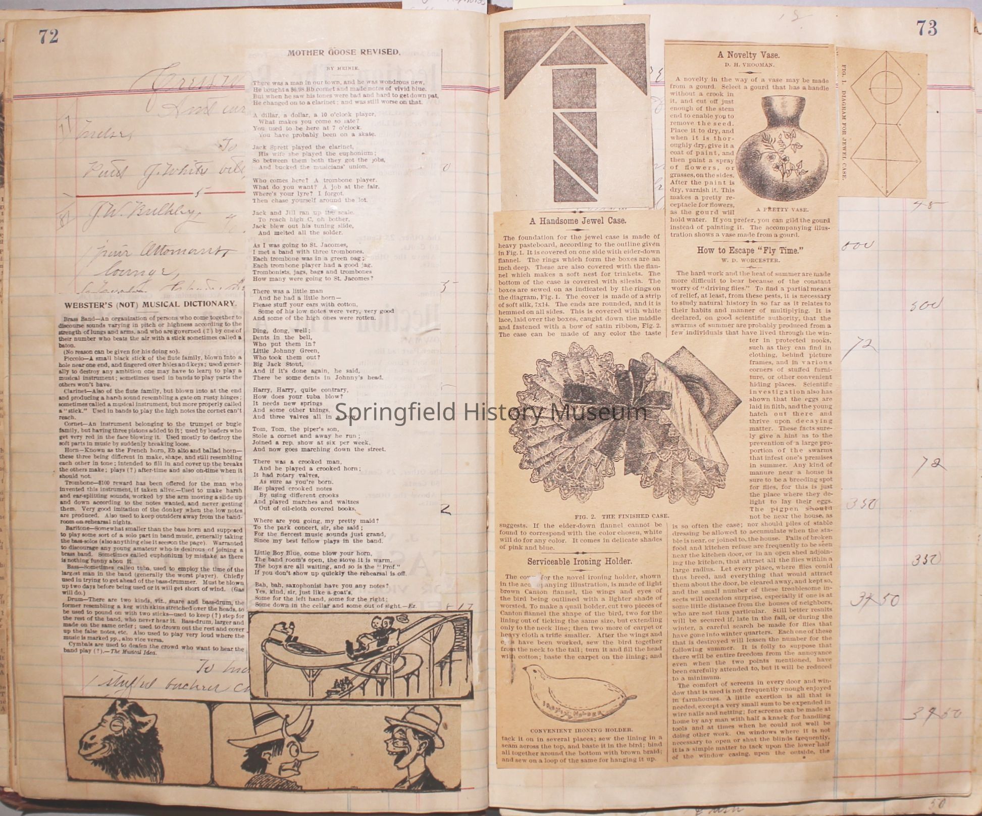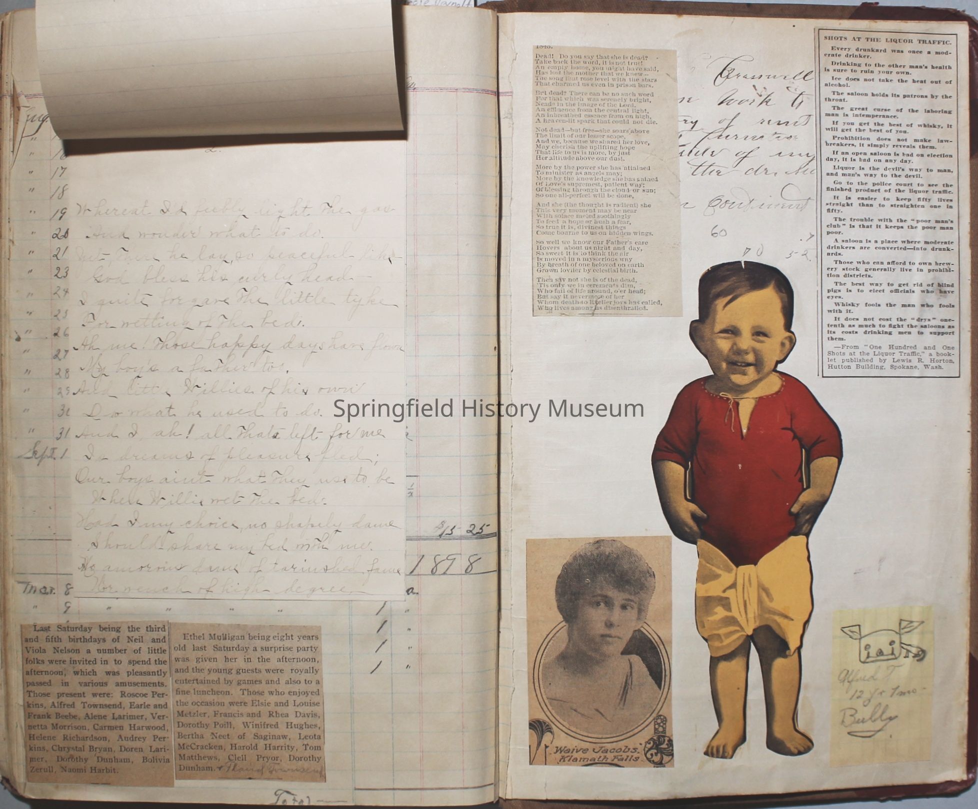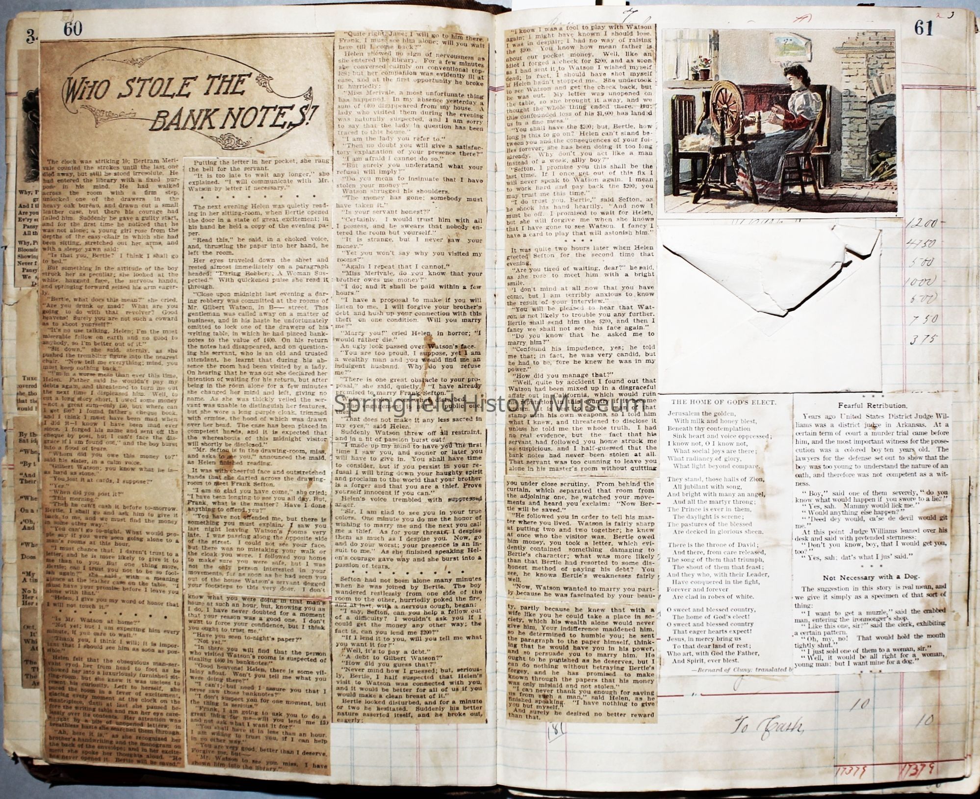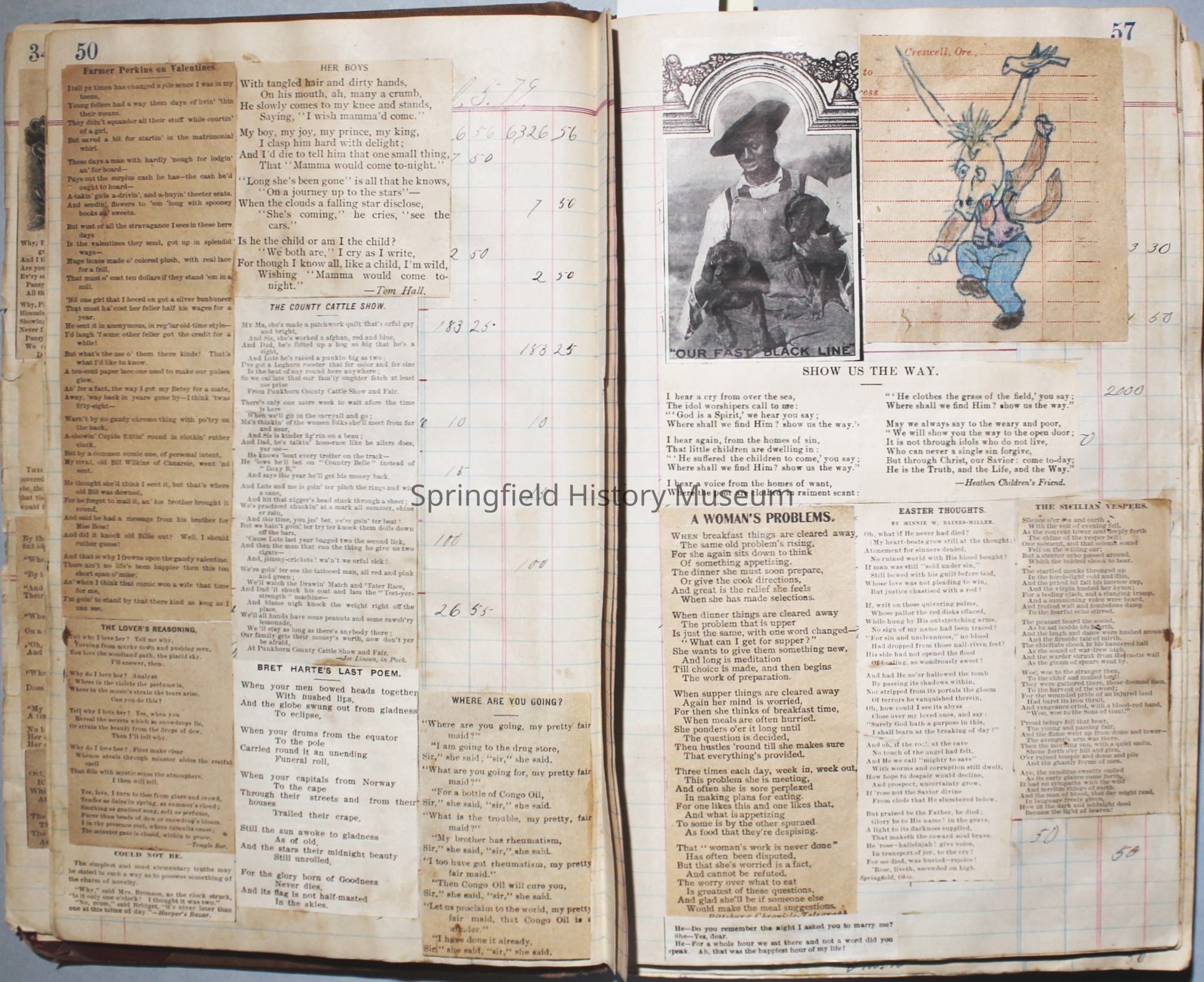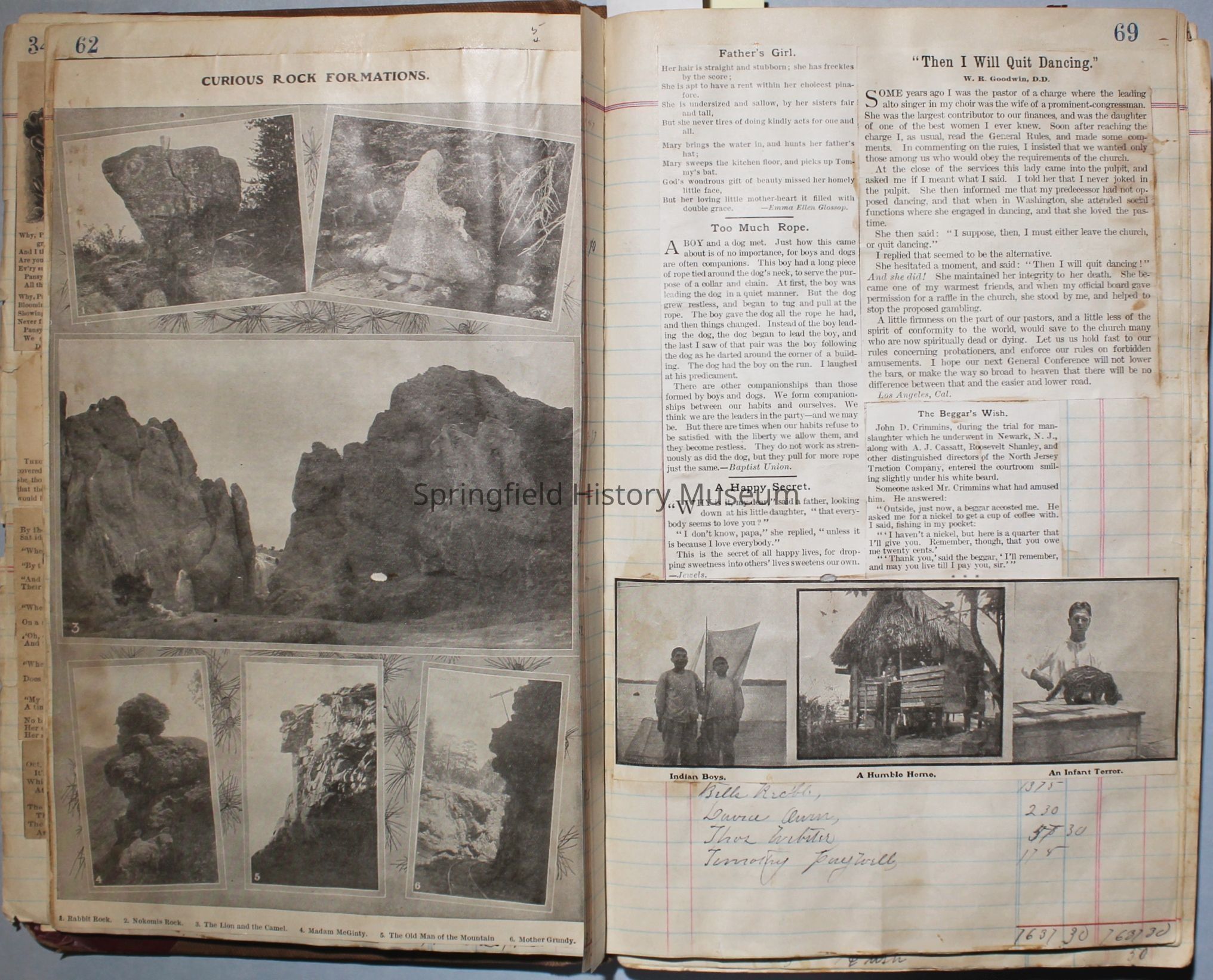 The scrapbook is made from an old ledger (circa 1899) containing furniture orders and/or money transactions (Cresswell).Collection