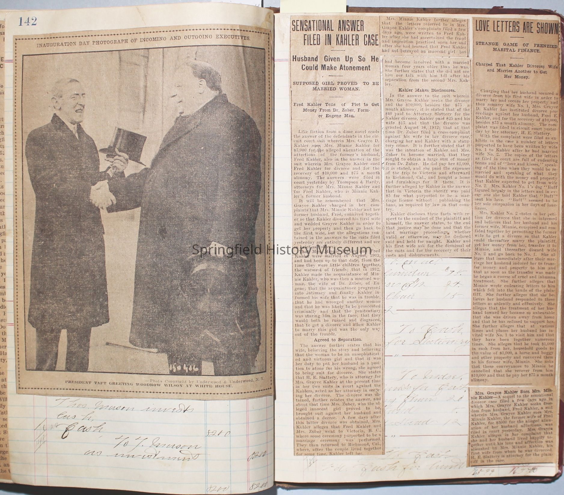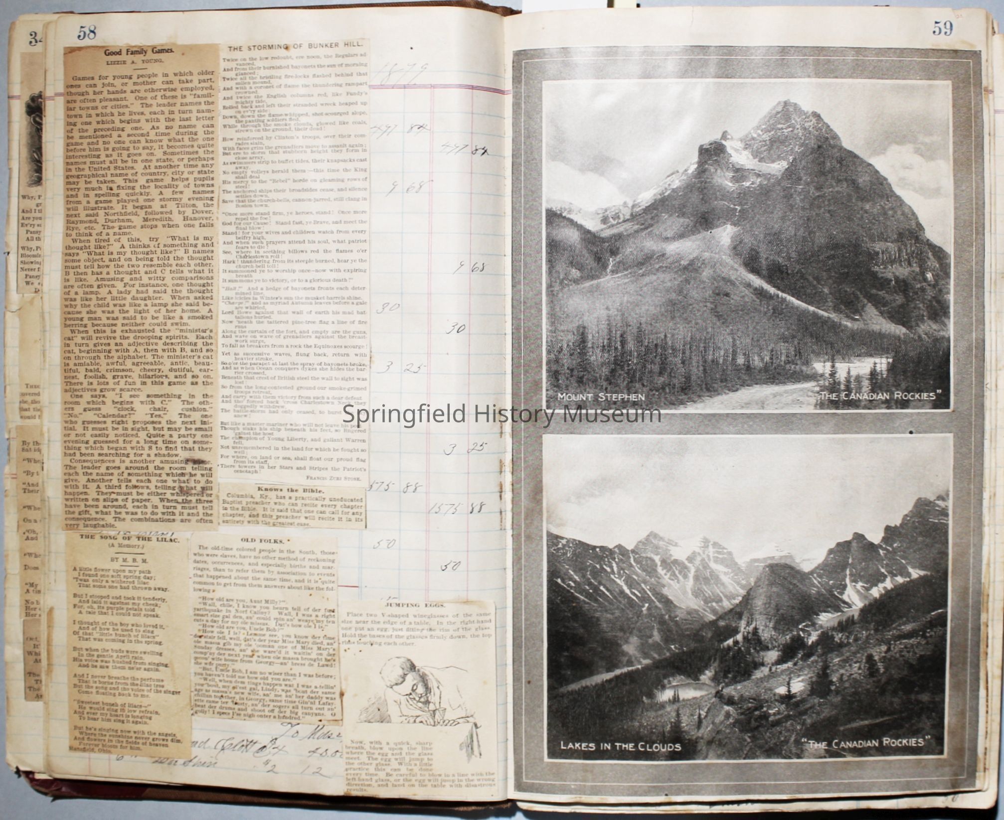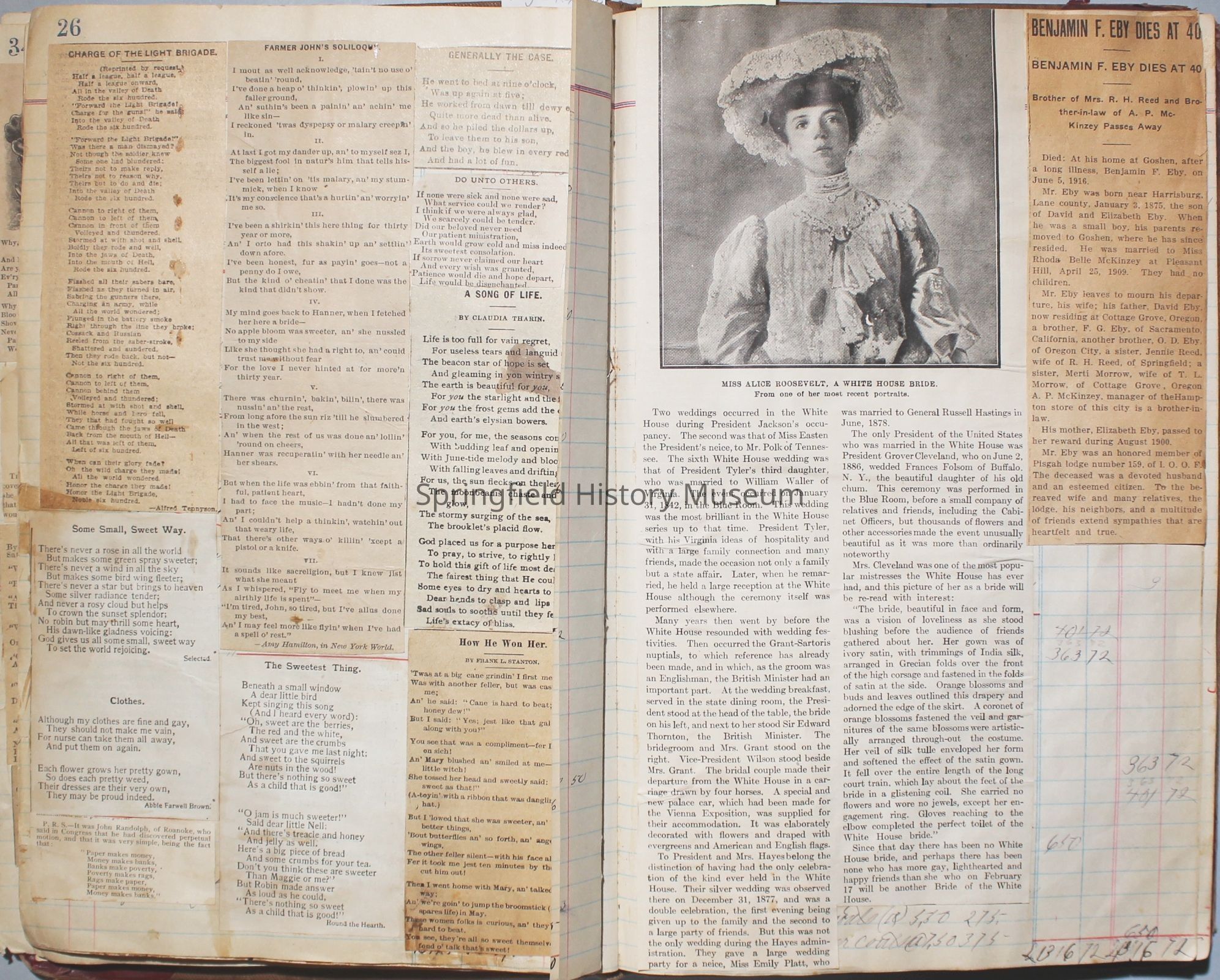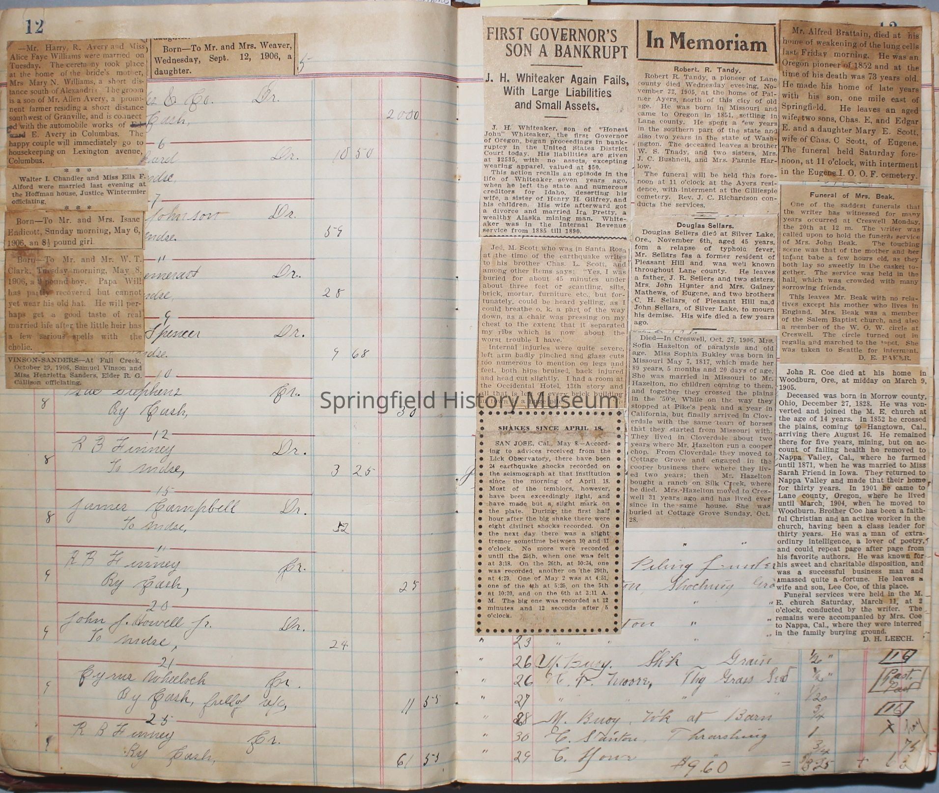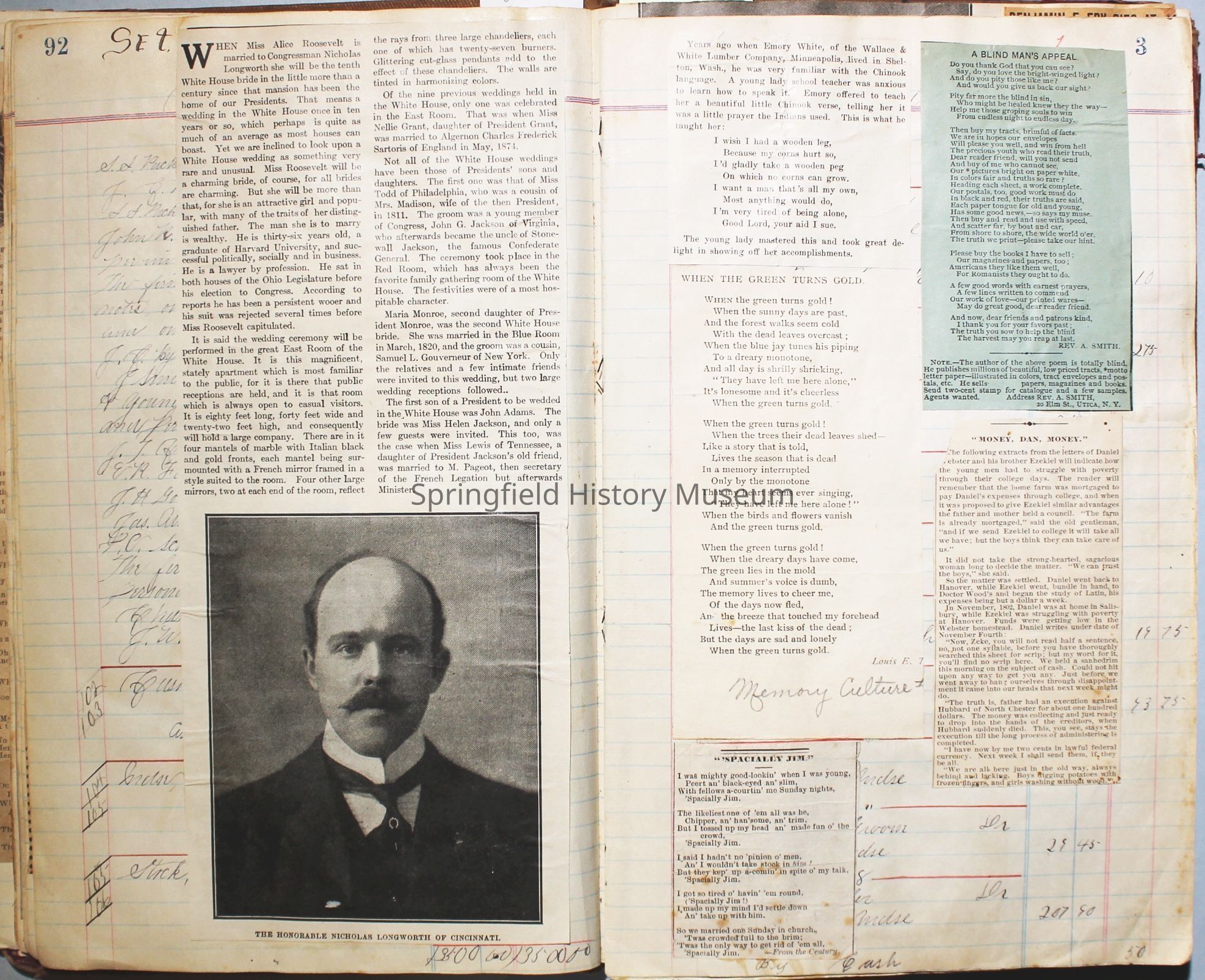The scrapbook is made from an old ledger (circa 1899) containing furniture orders and/or money transactions (Cresswell).Collection