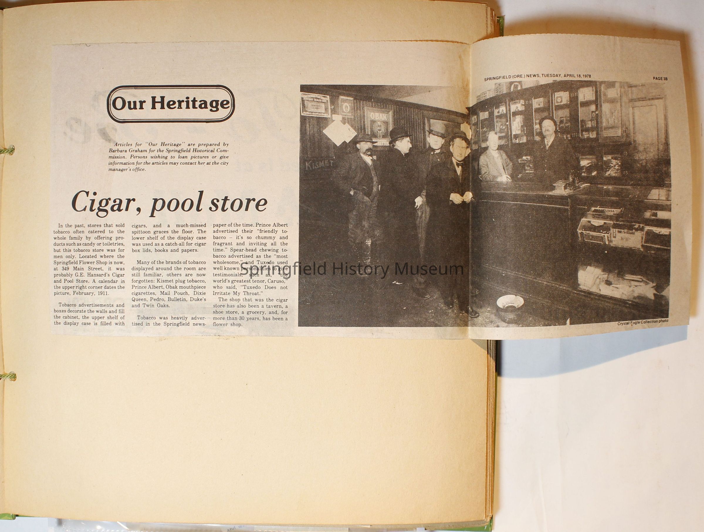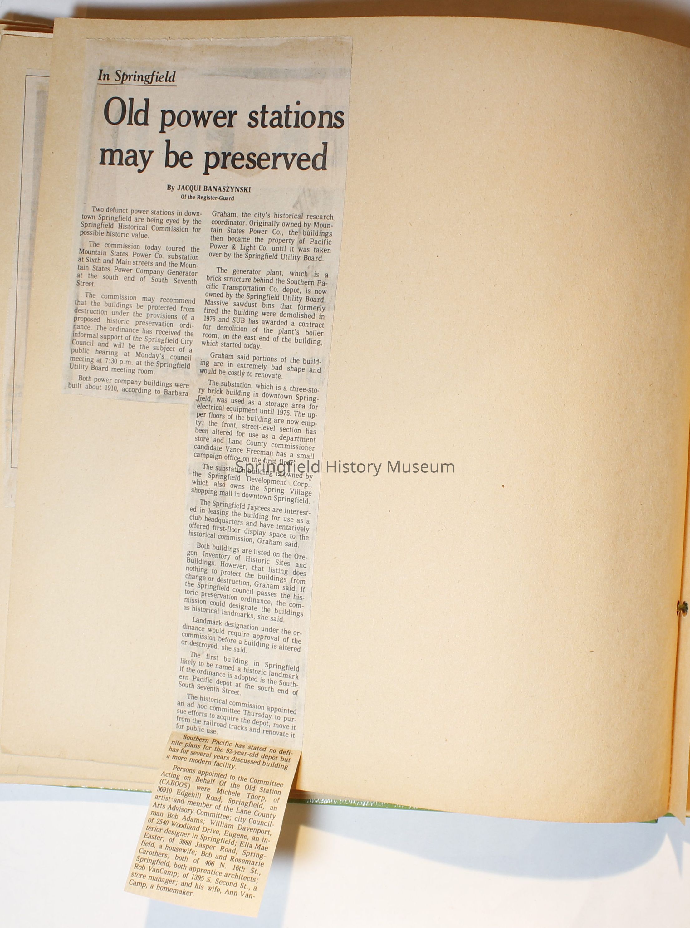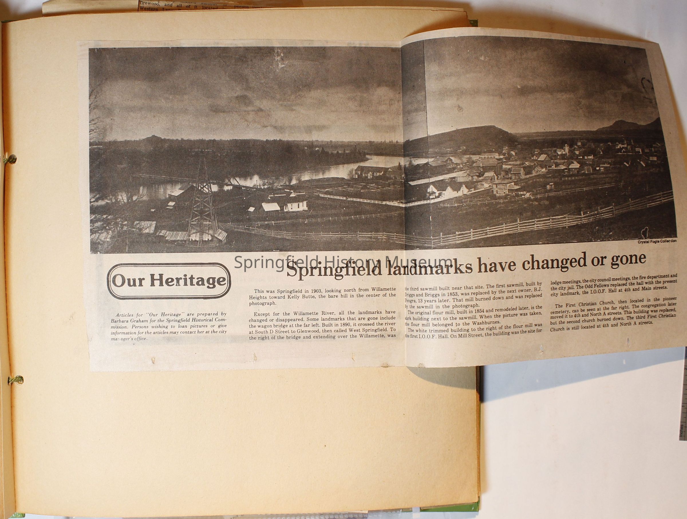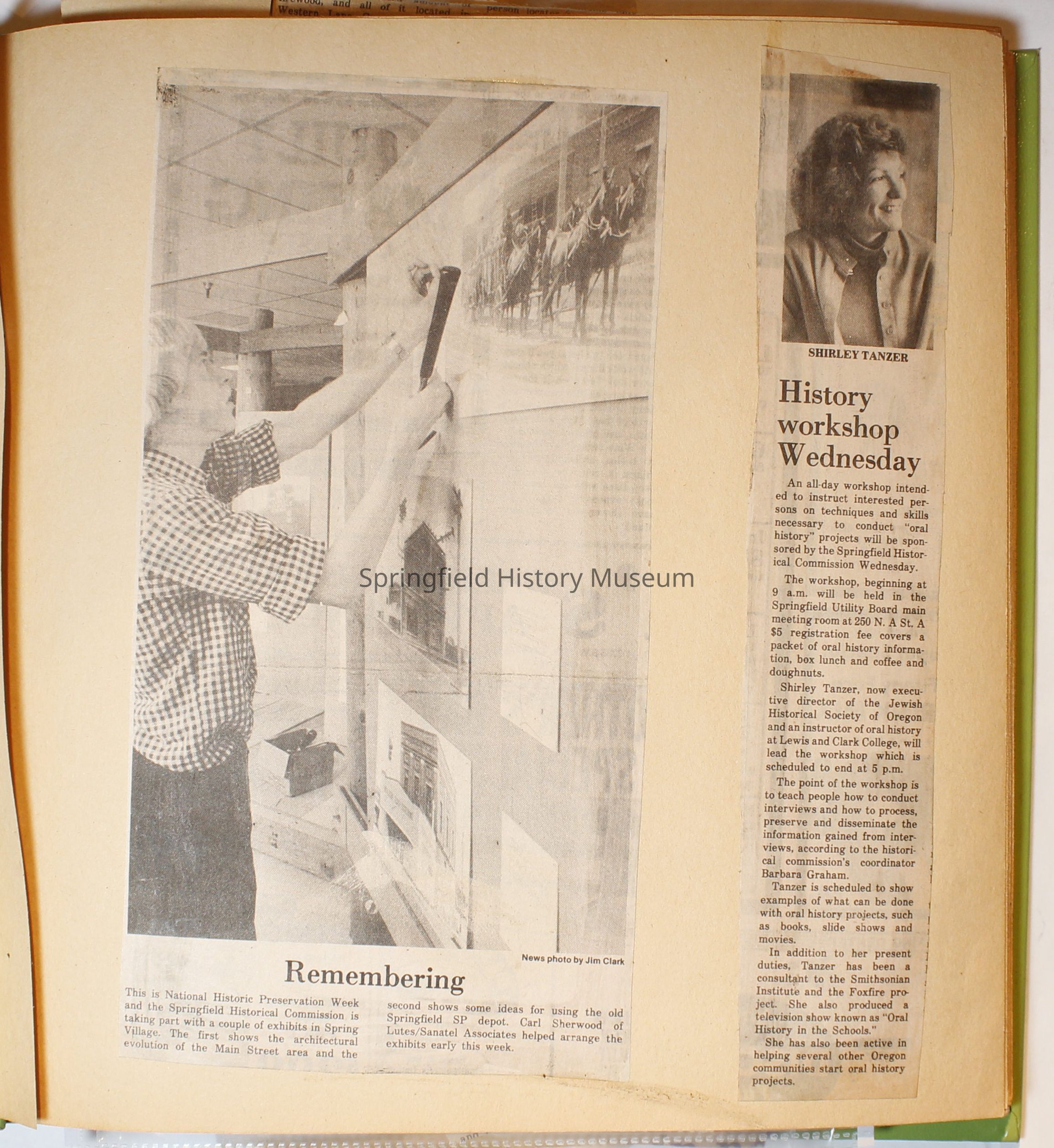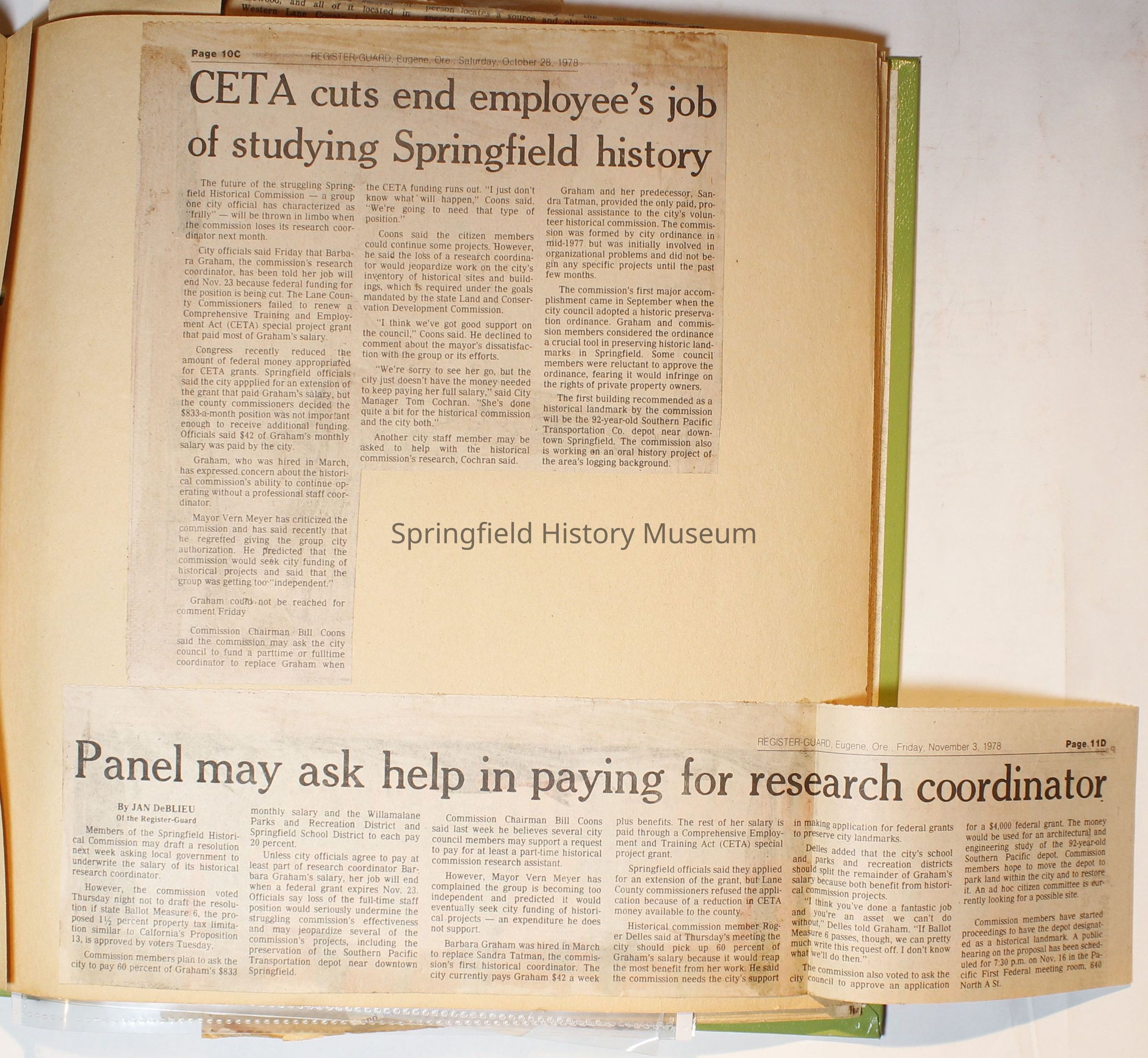 Scrapbook of the activities of the Springfield Historical Commission, circa 1977-79. Contains mostly newspaper clippings.