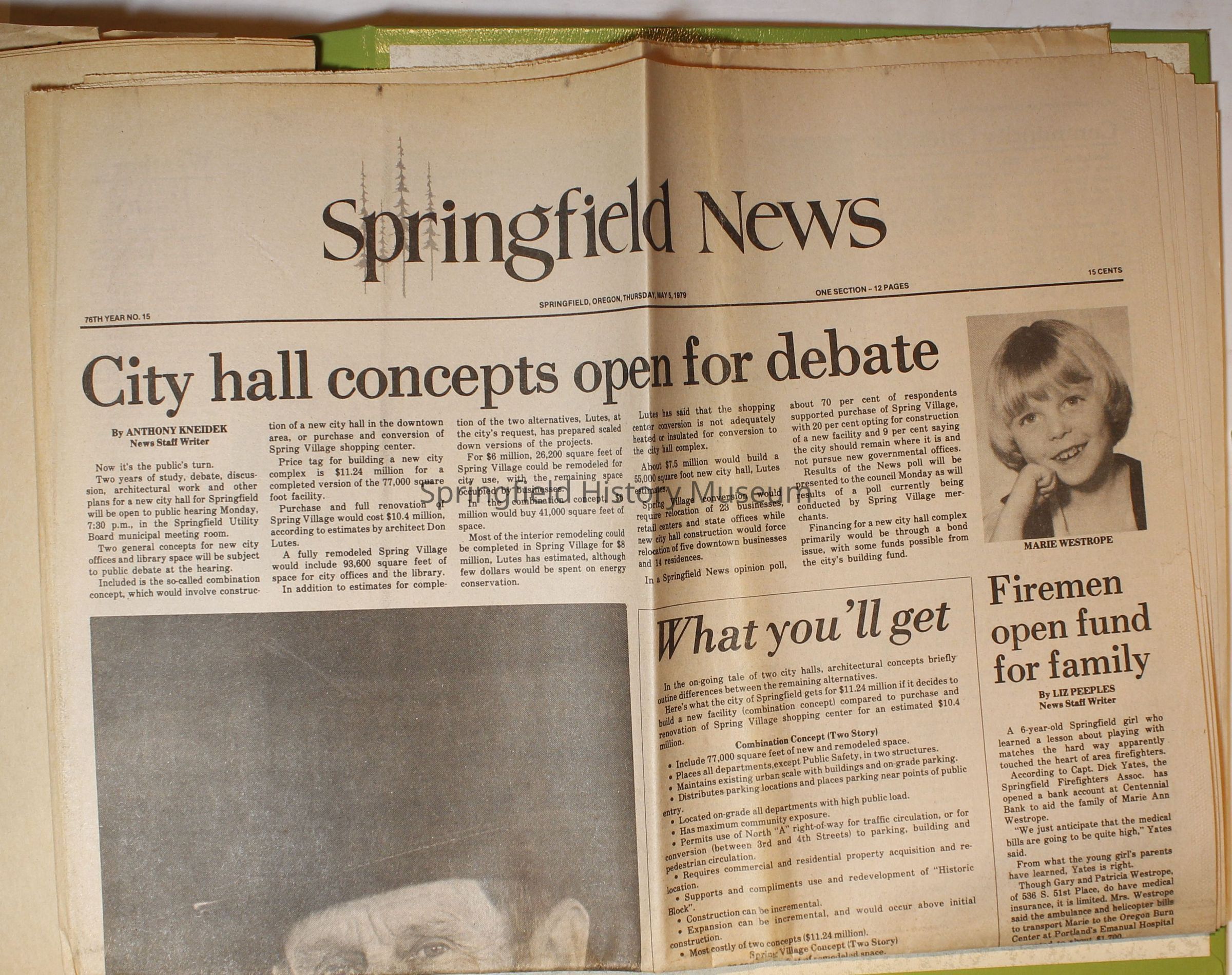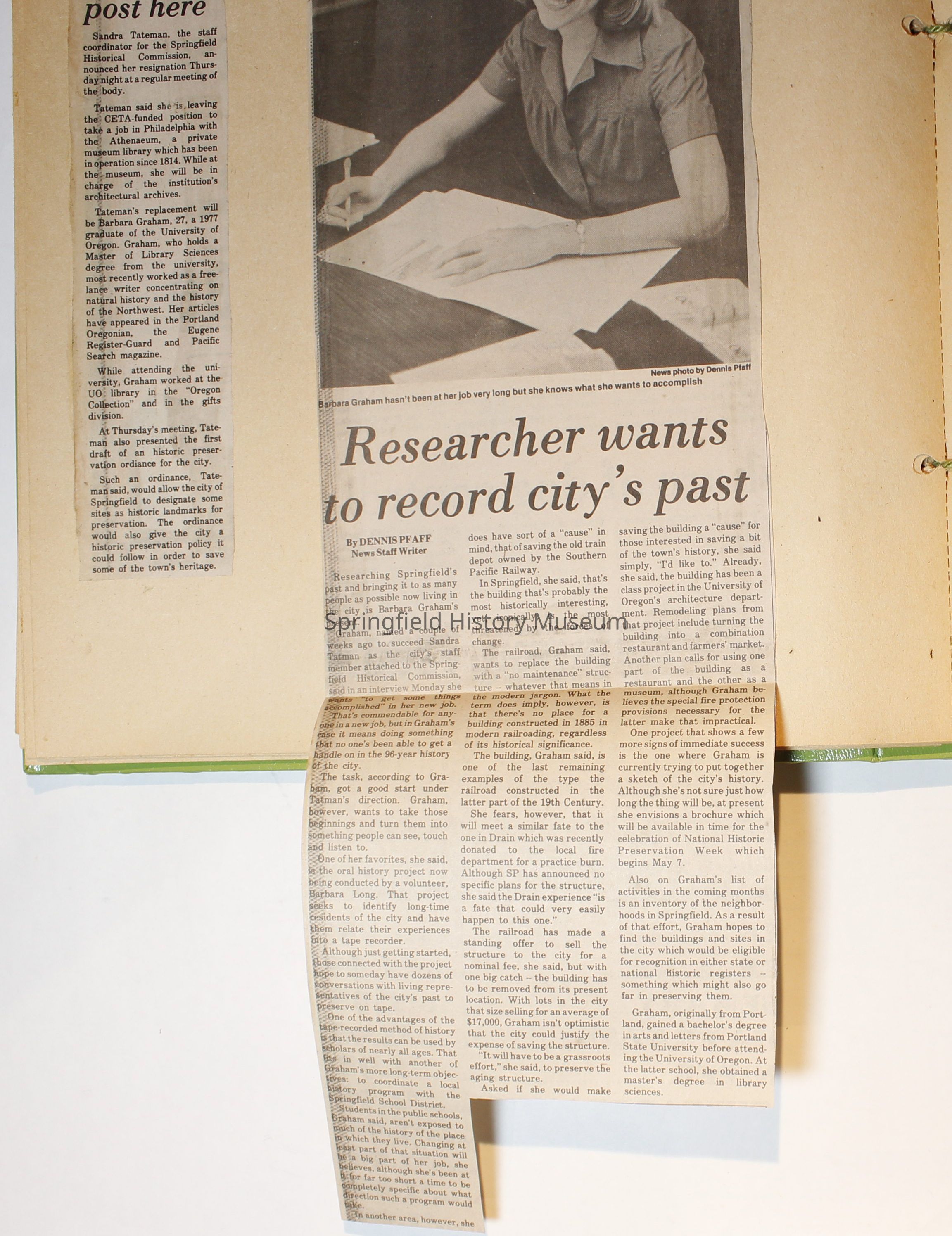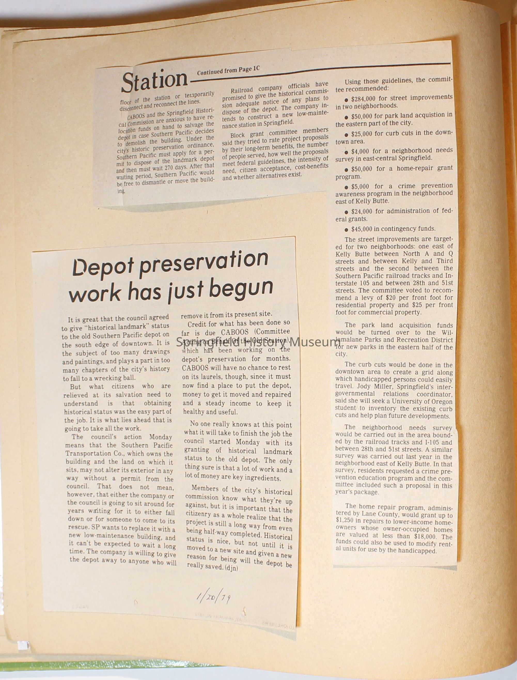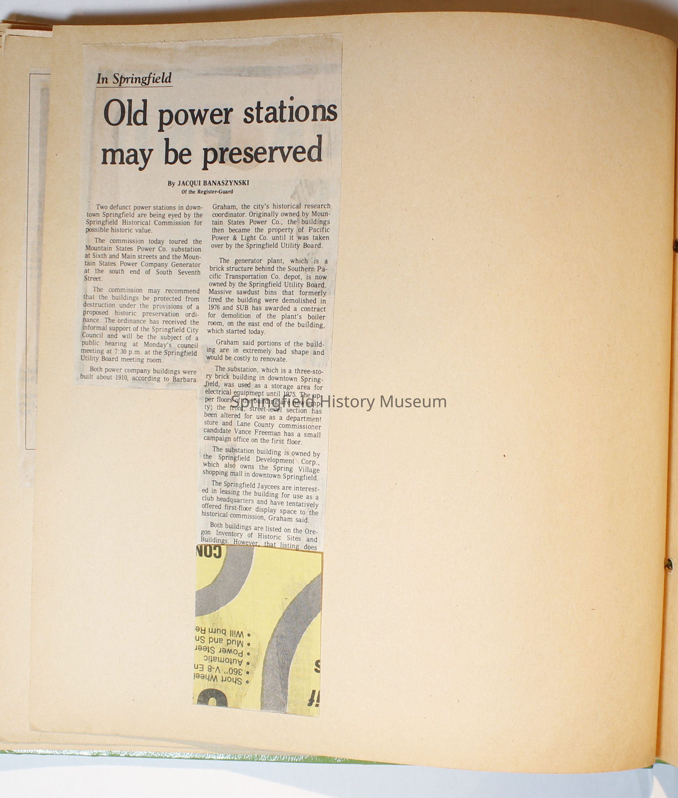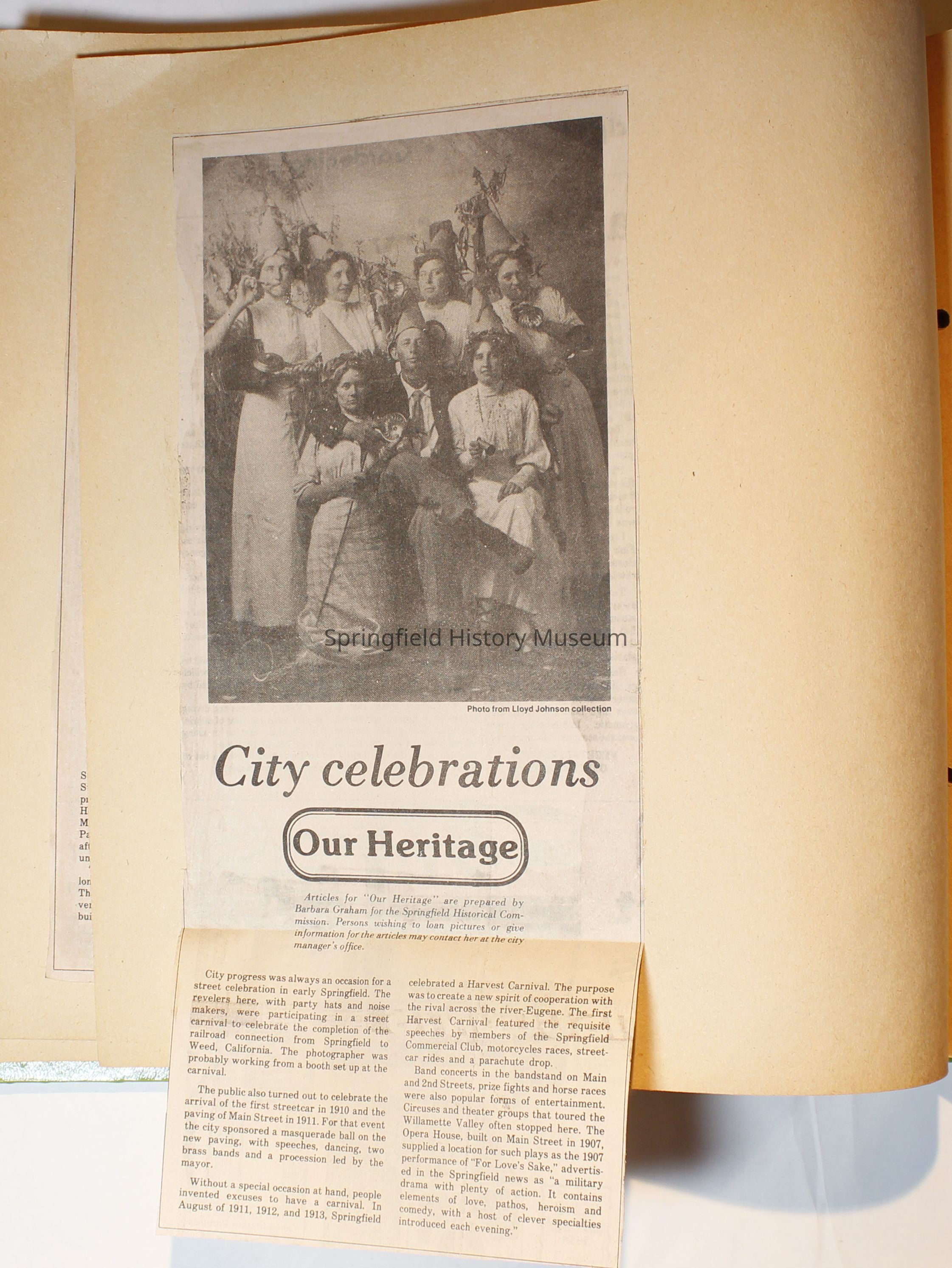 Scrapbook of the activities of the Springfield Historical Commission, circa 1977-79. Contains mostly newspaper clippings.