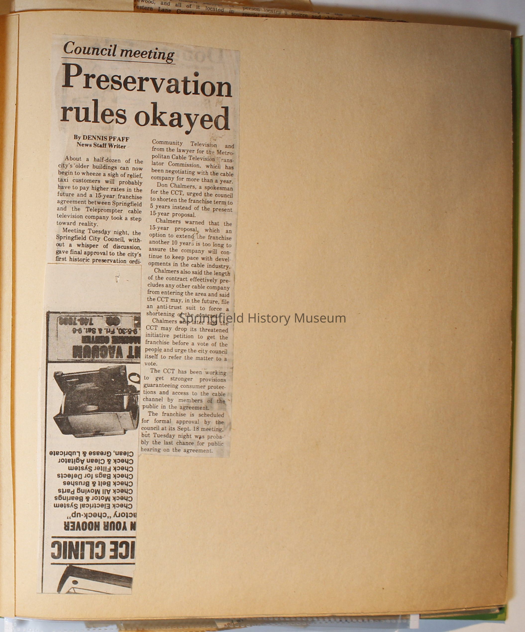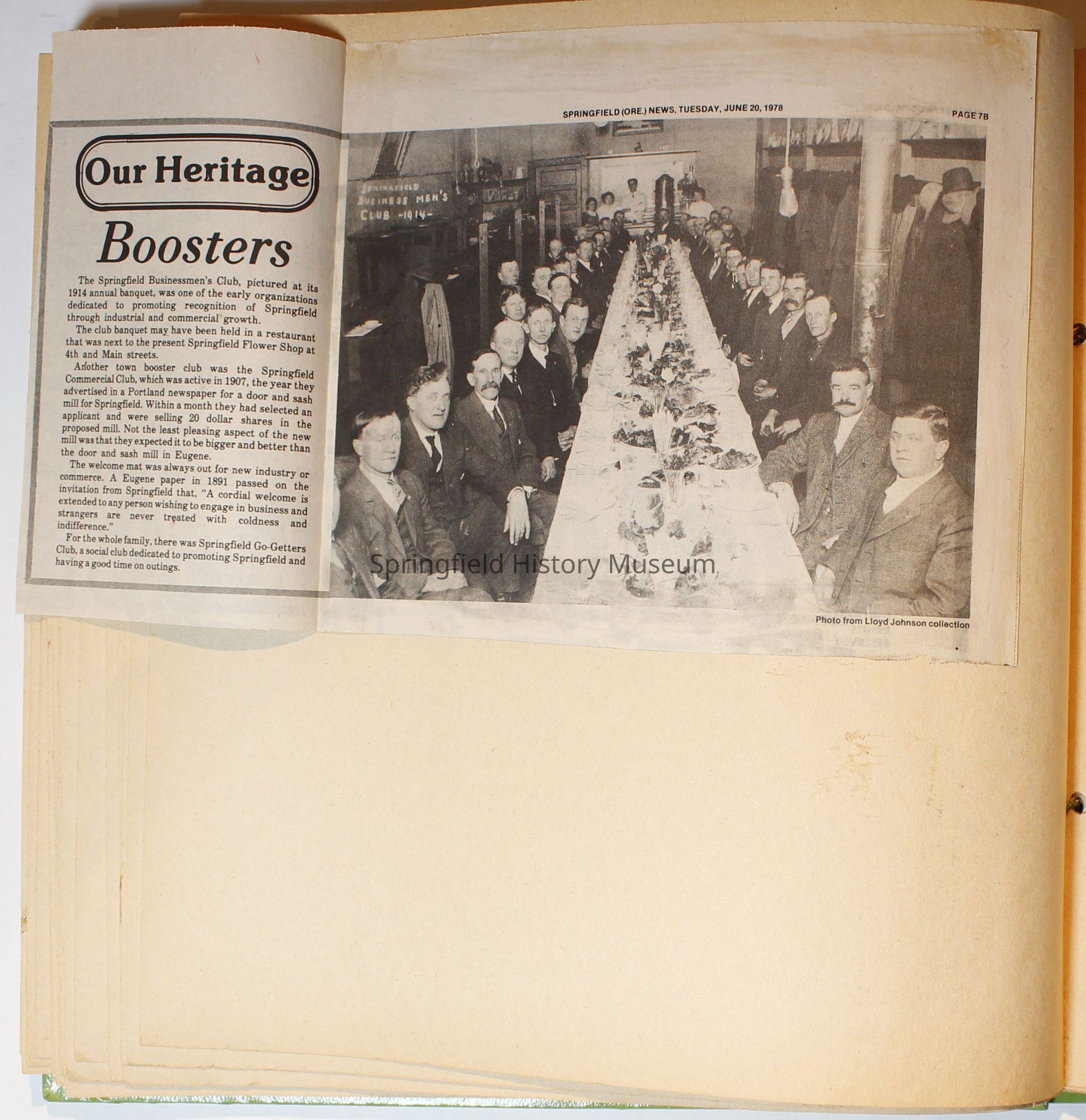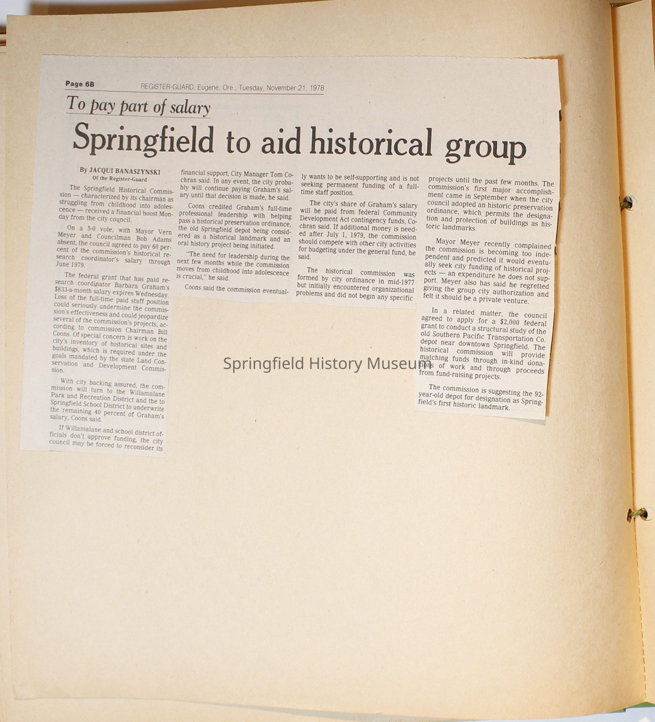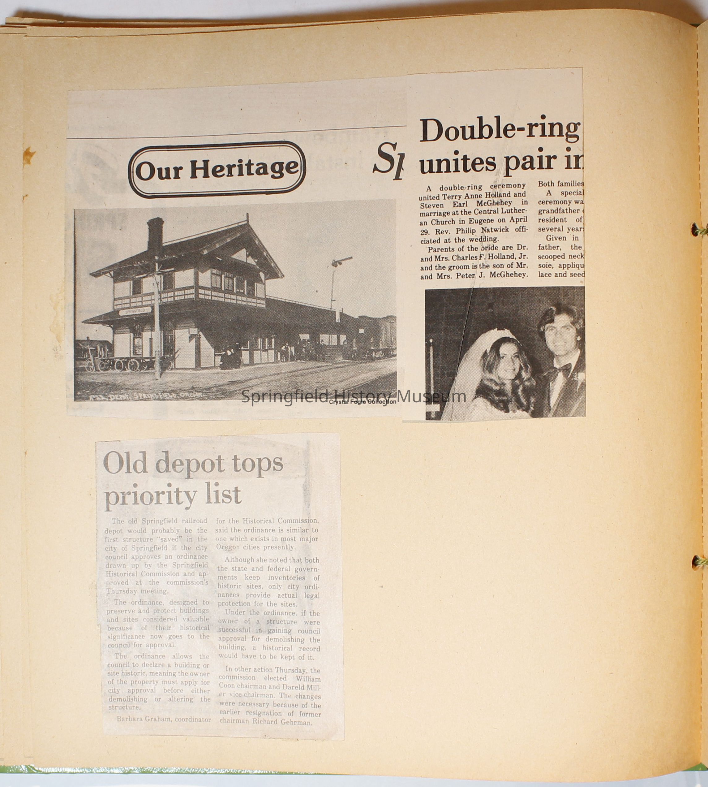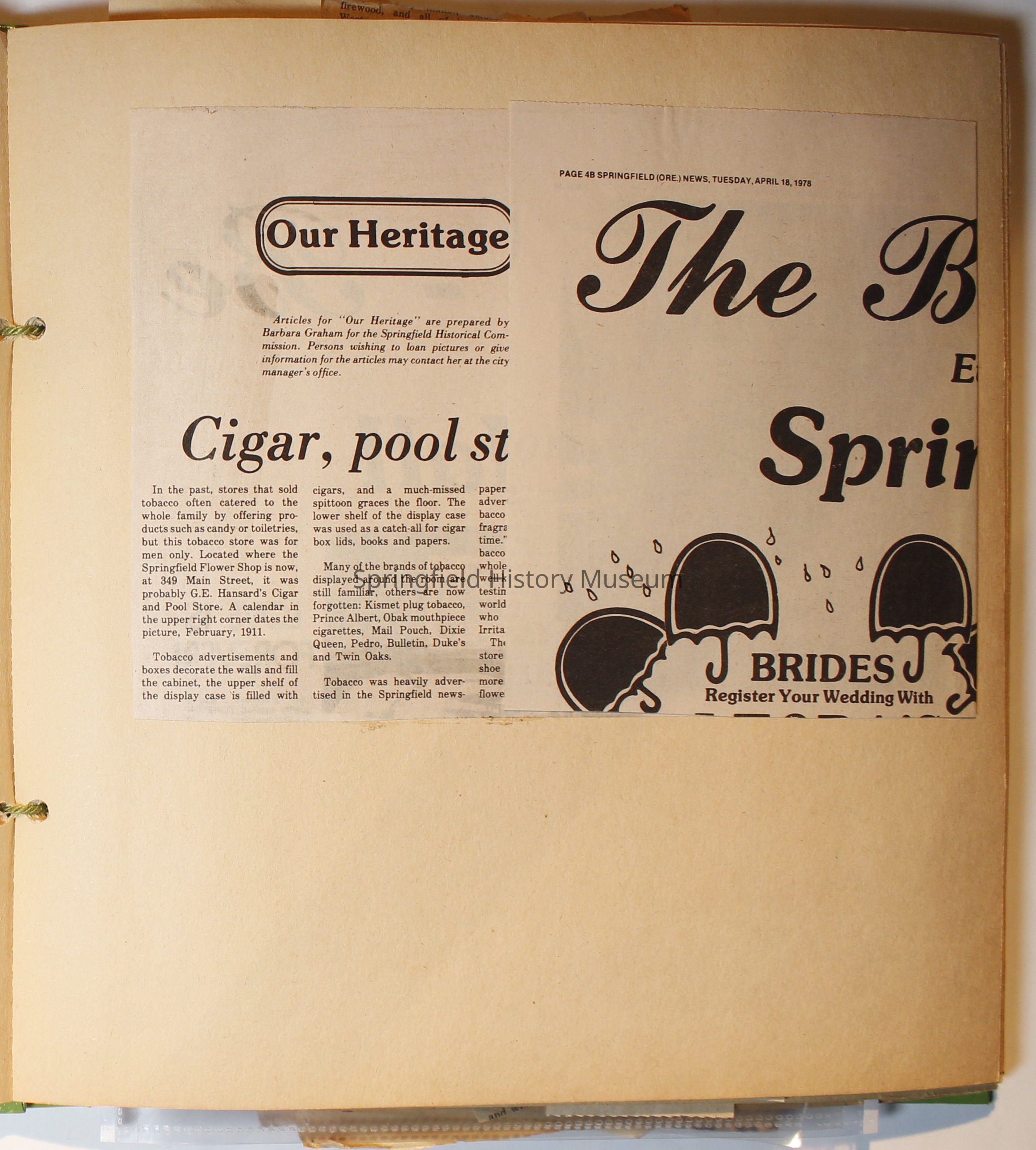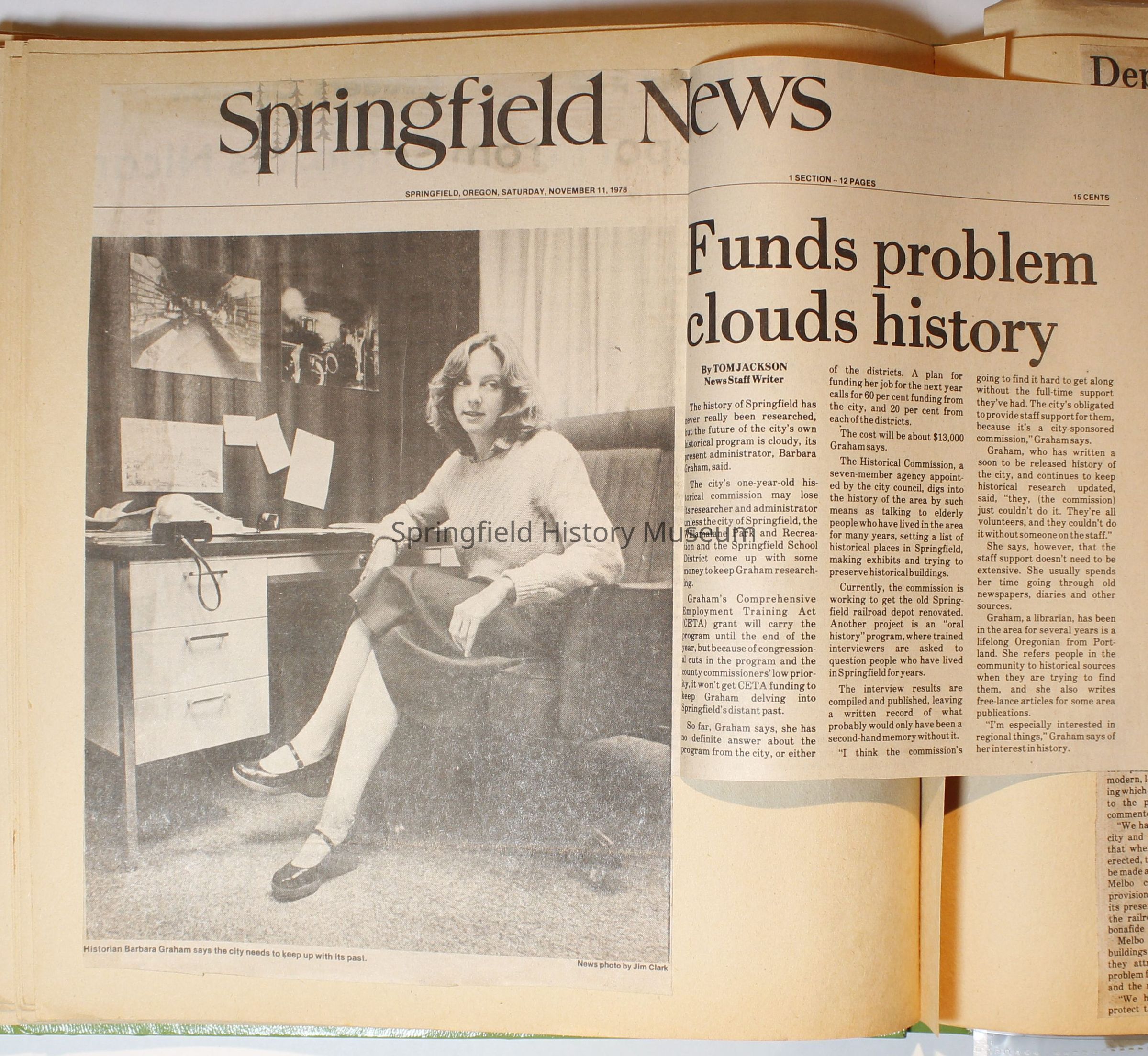 Scrapbook of the activities of the Springfield Historical Commission, circa 1977-79. Contains mostly newspaper clippings.