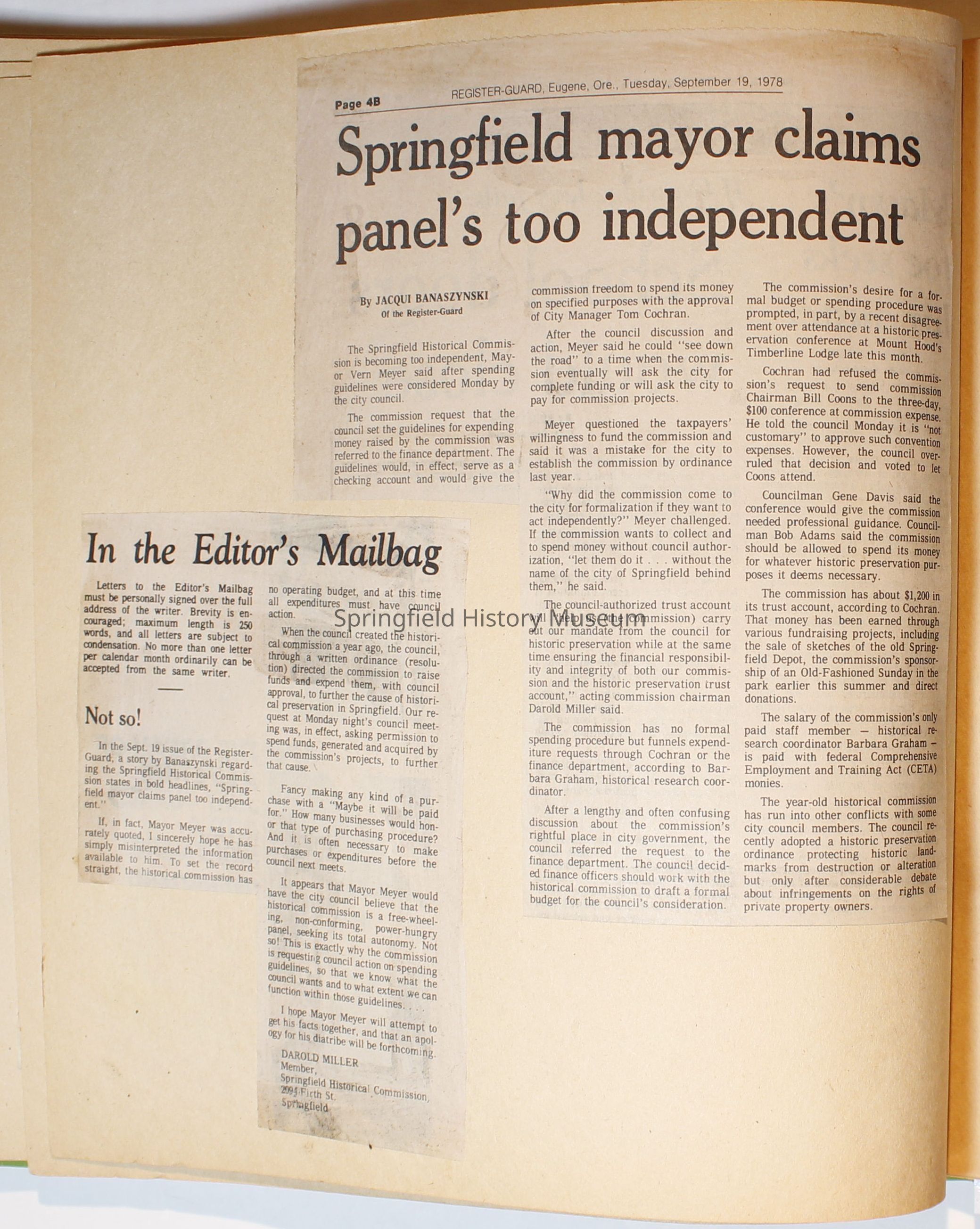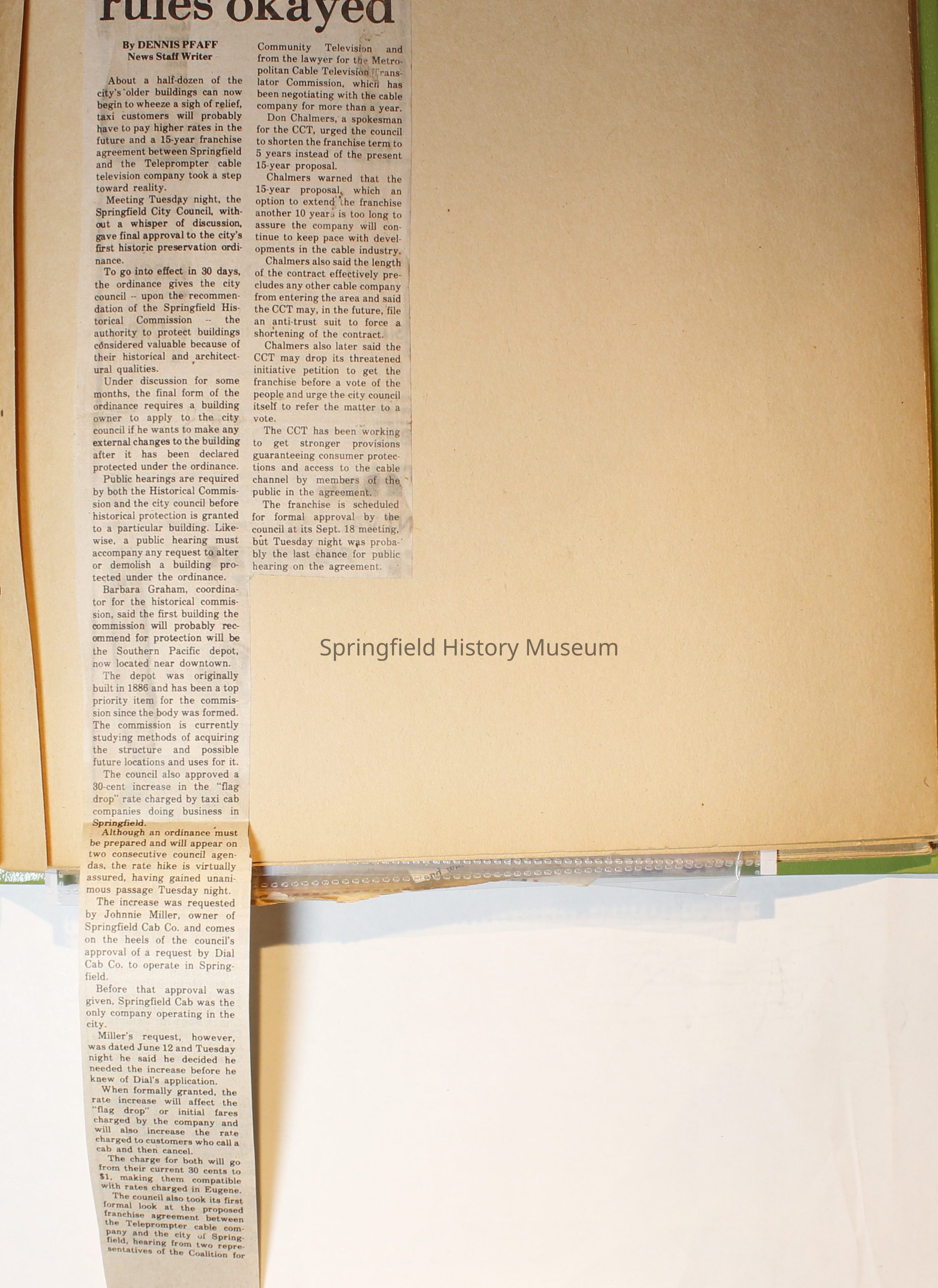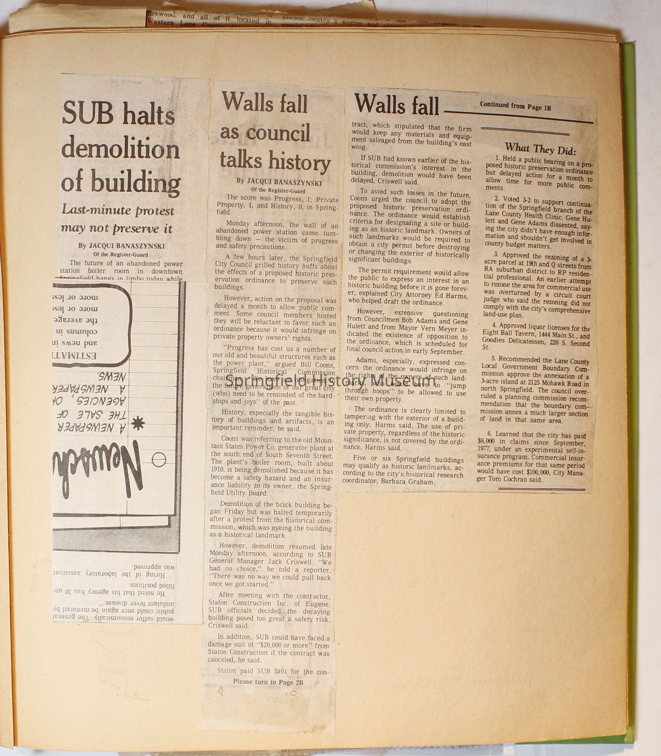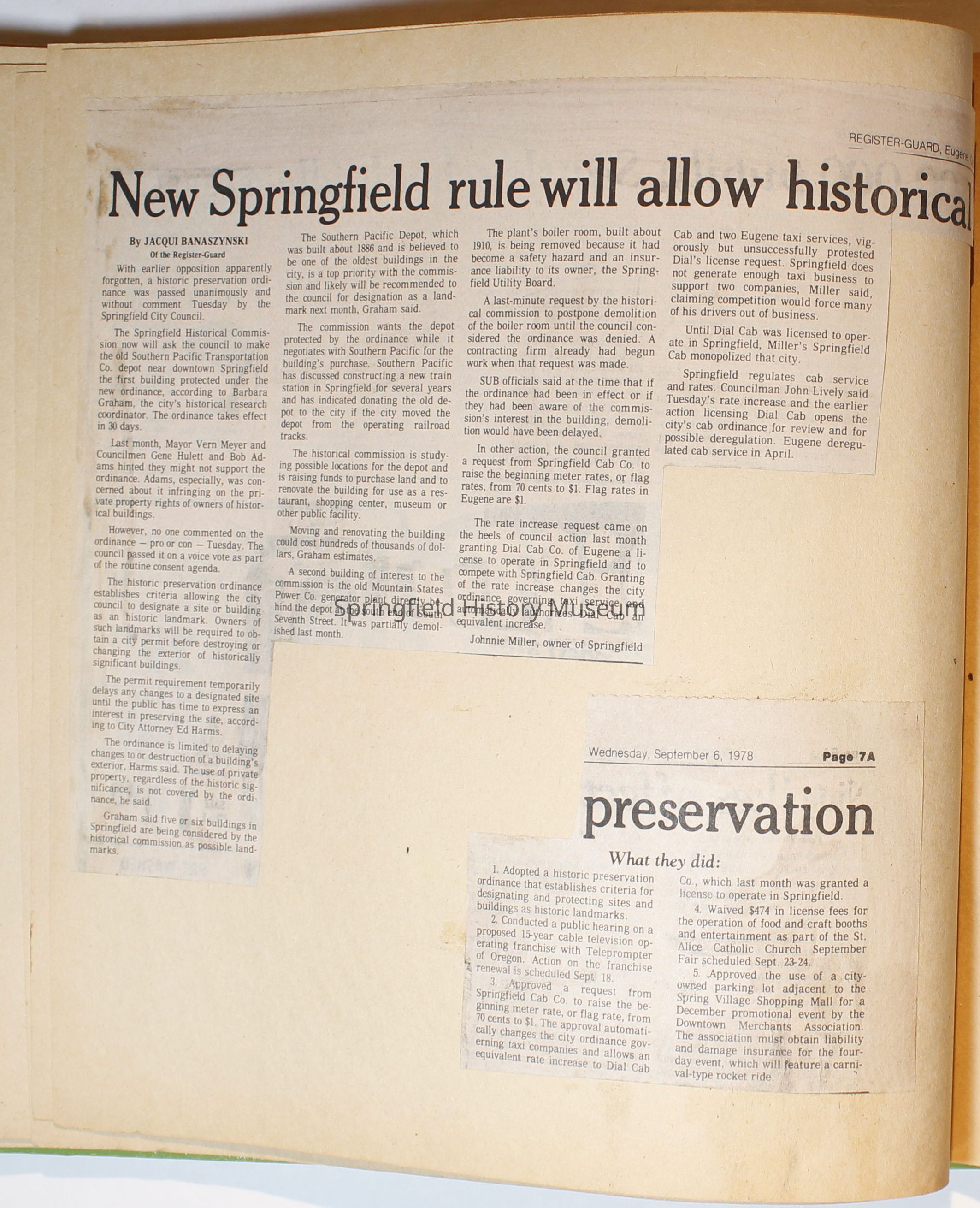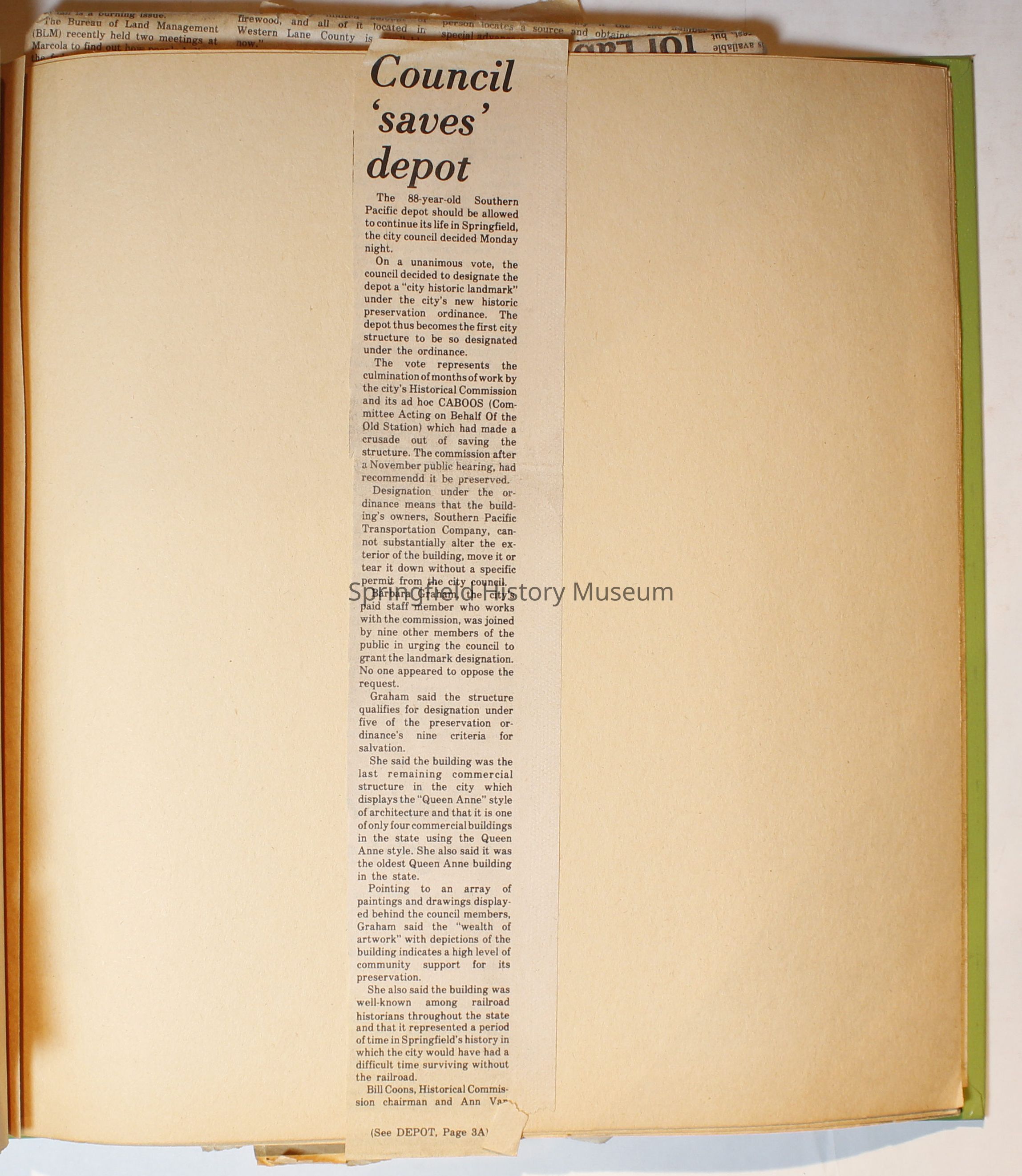 Scrapbook of the activities of the Springfield Historical Commission, circa 1977-79. Contains mostly newspaper clippings.
