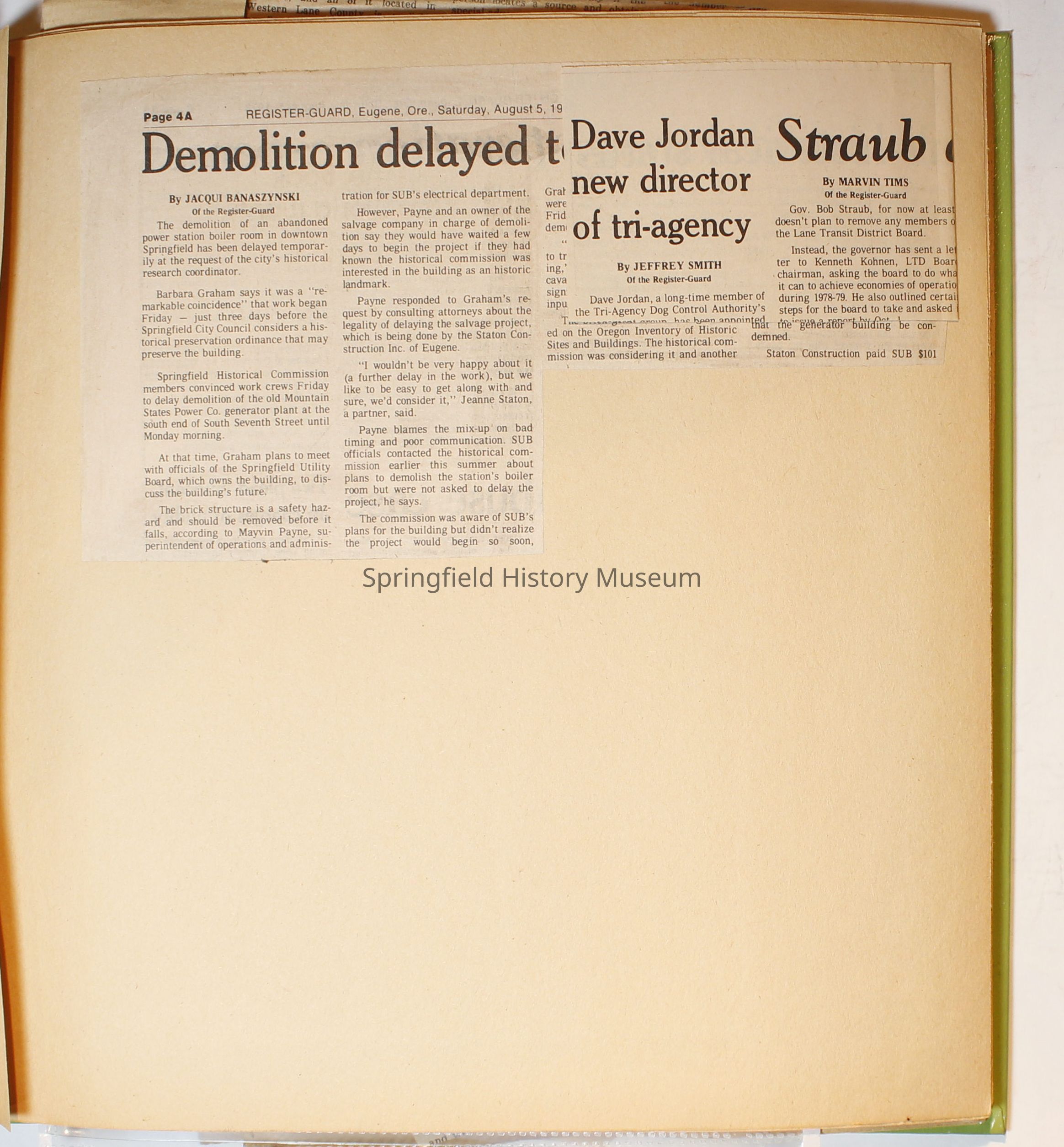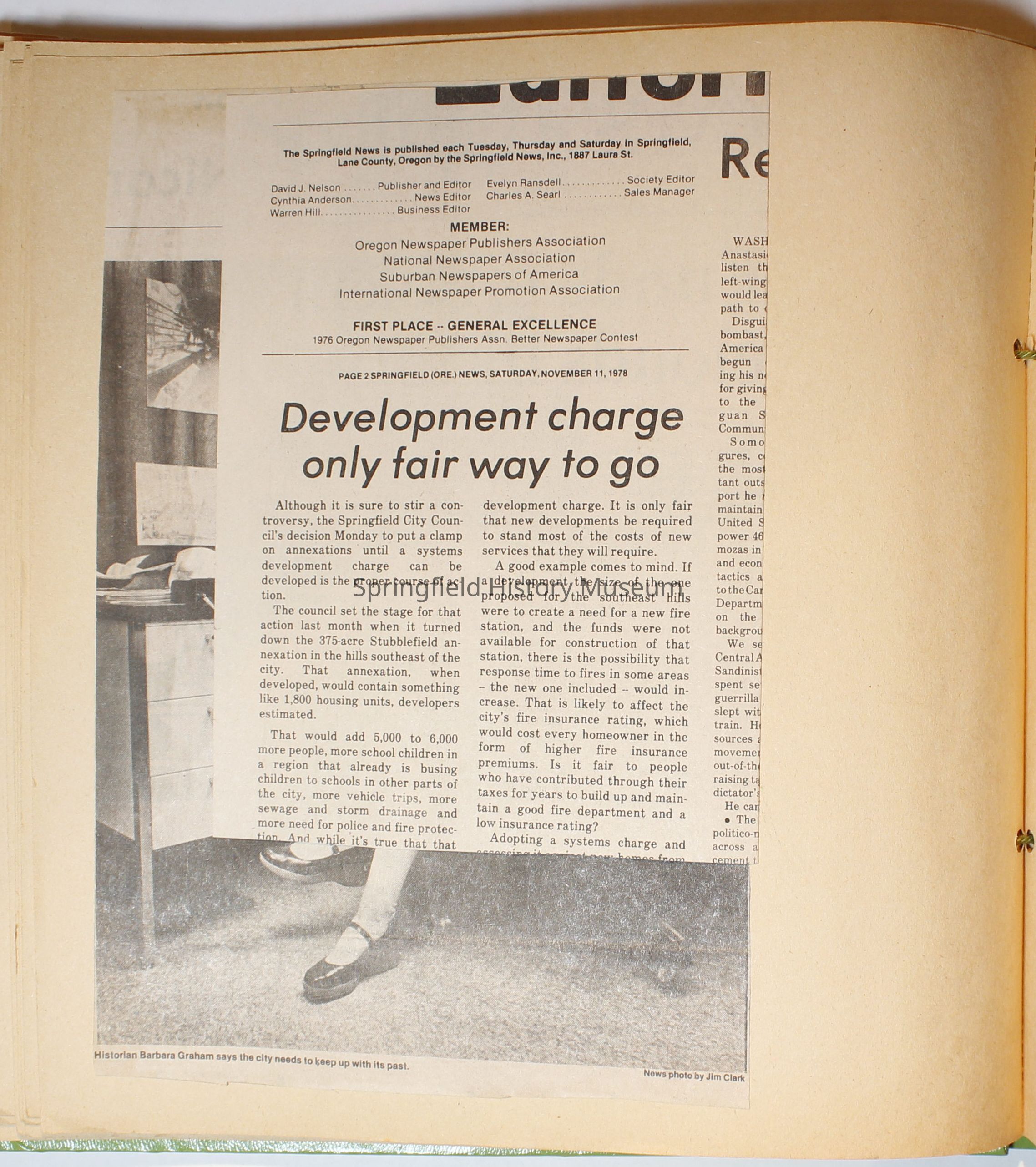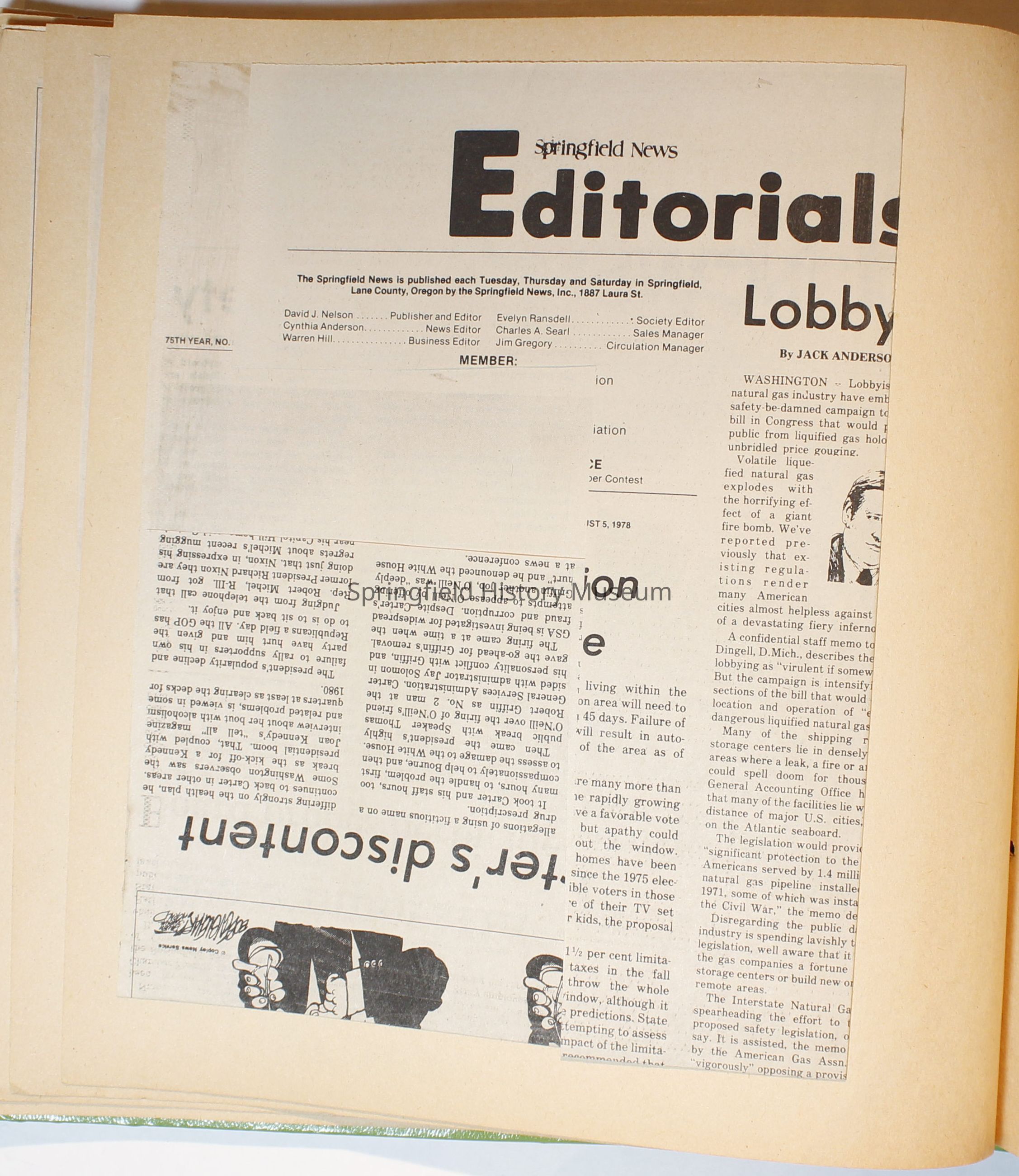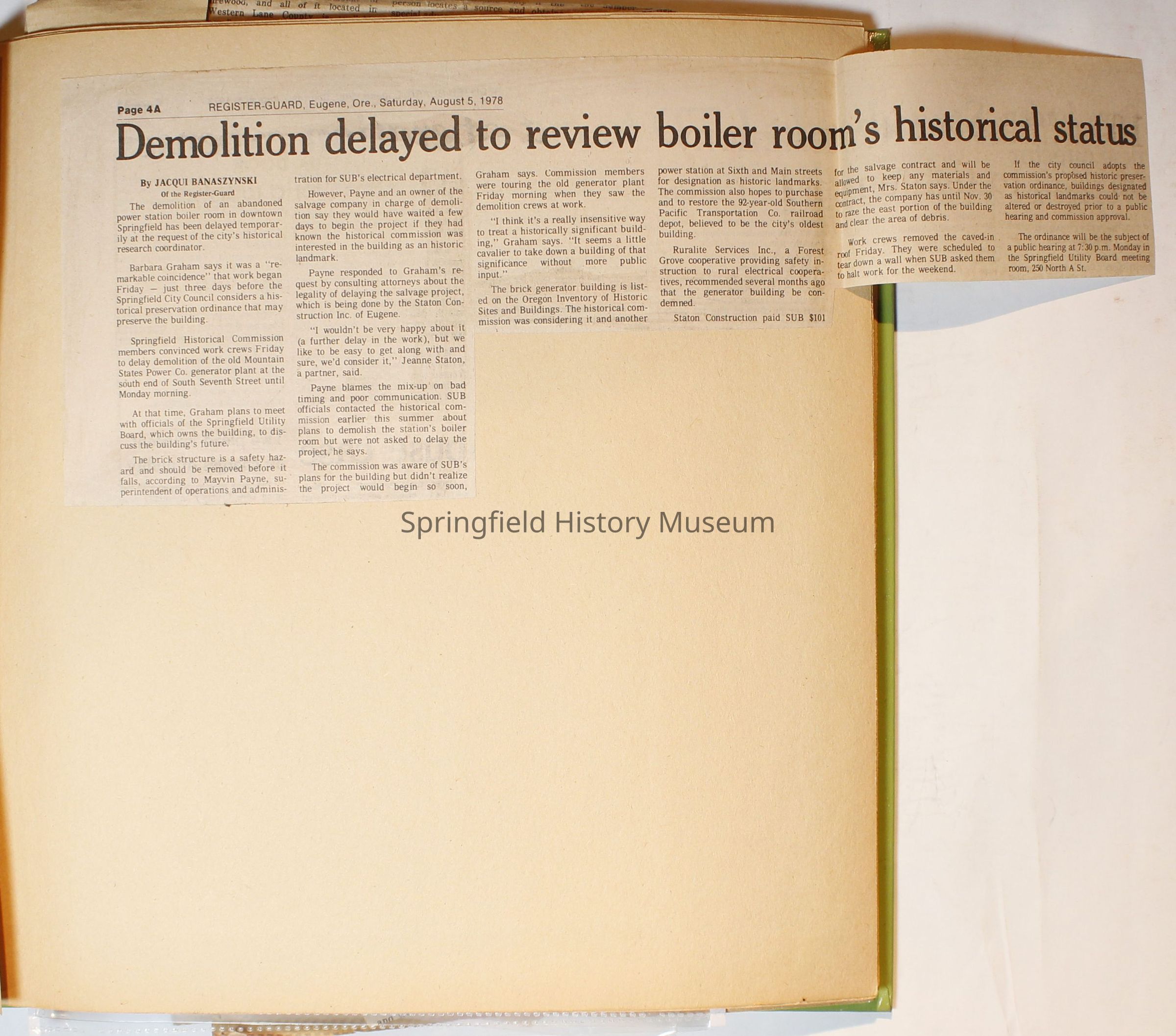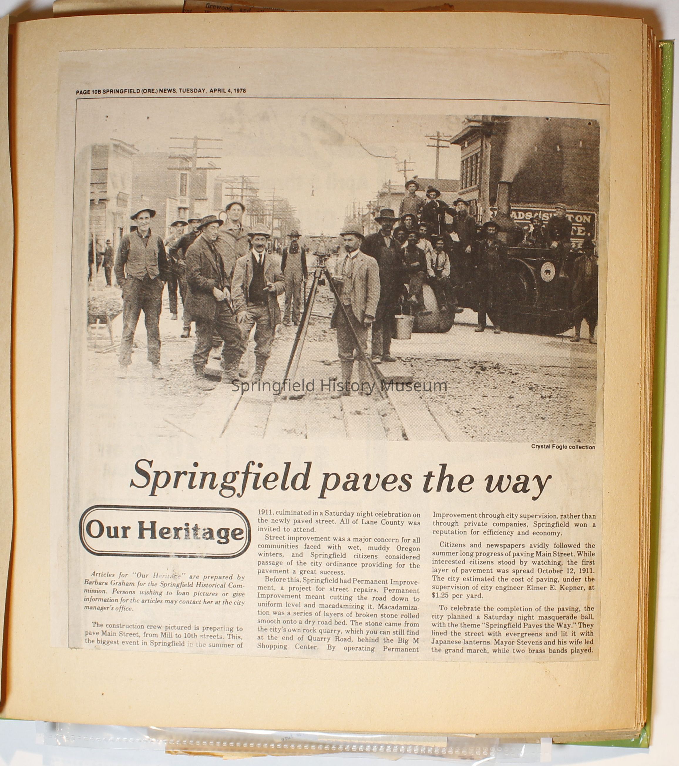 Scrapbook of the activities of the Springfield Historical Commission, circa 1977-79. Contains mostly newspaper clippings.
