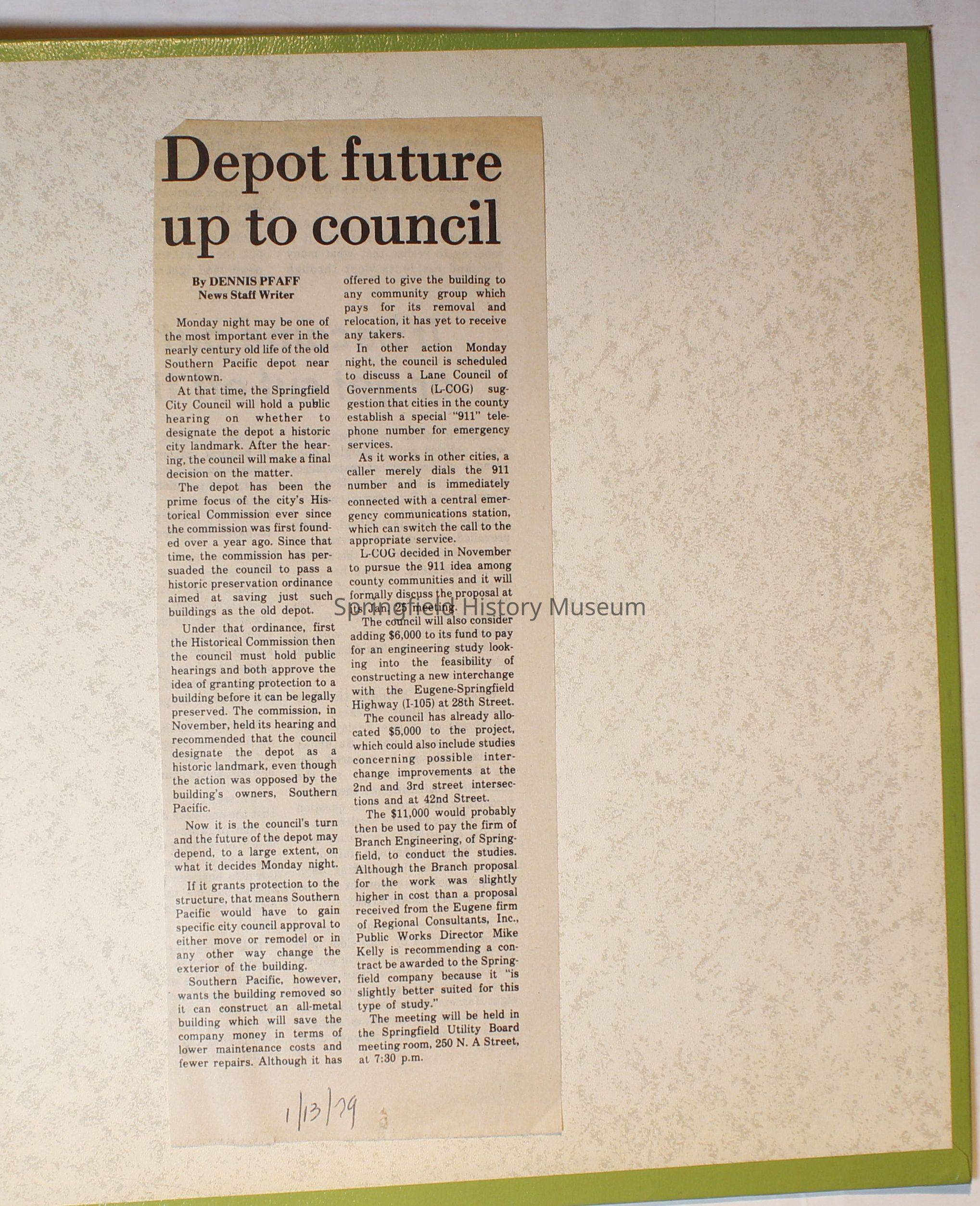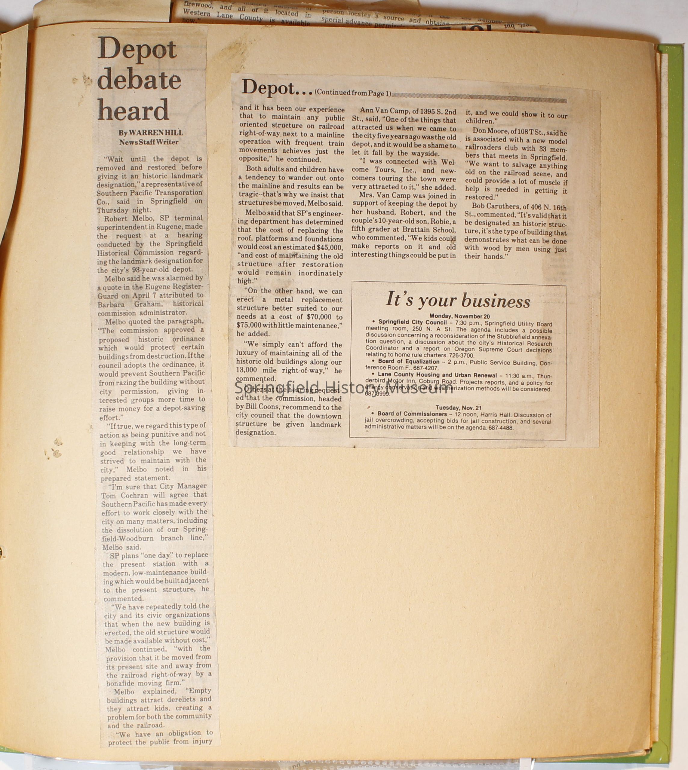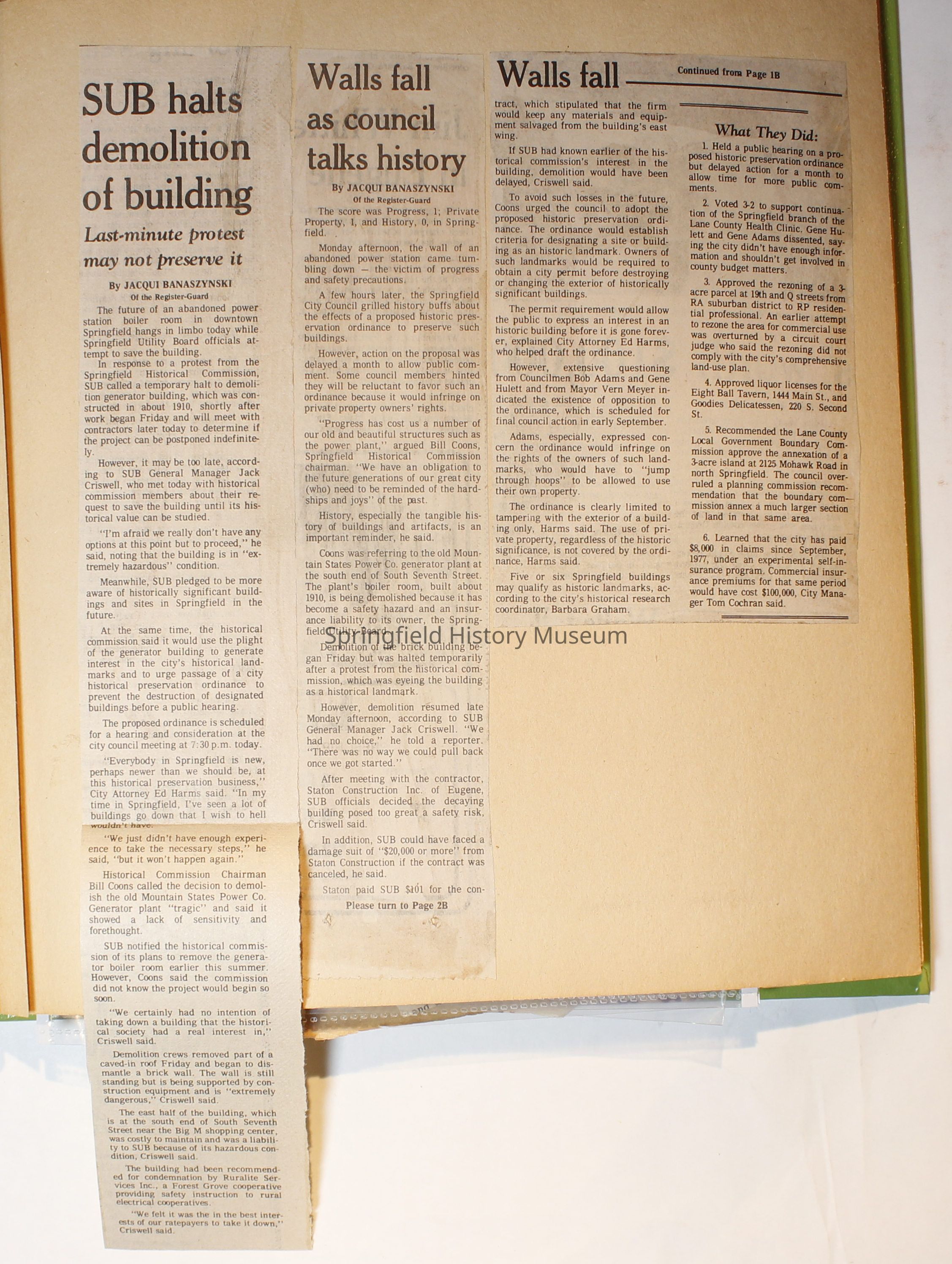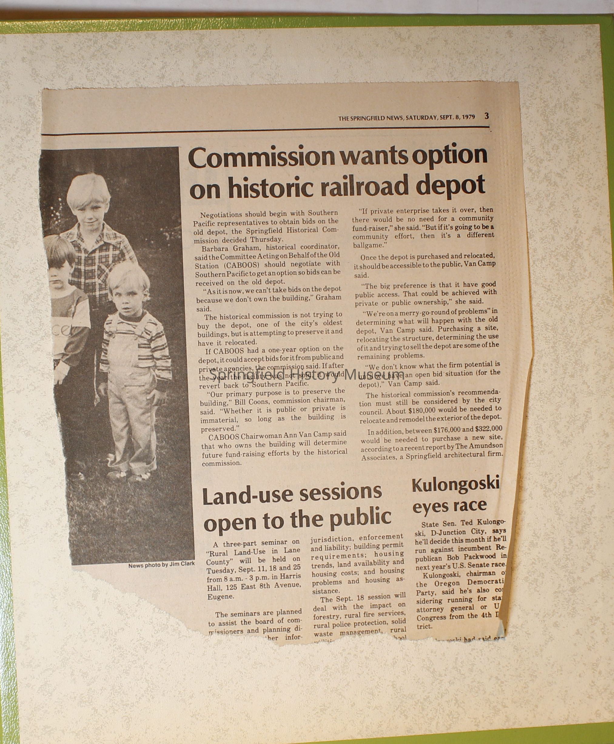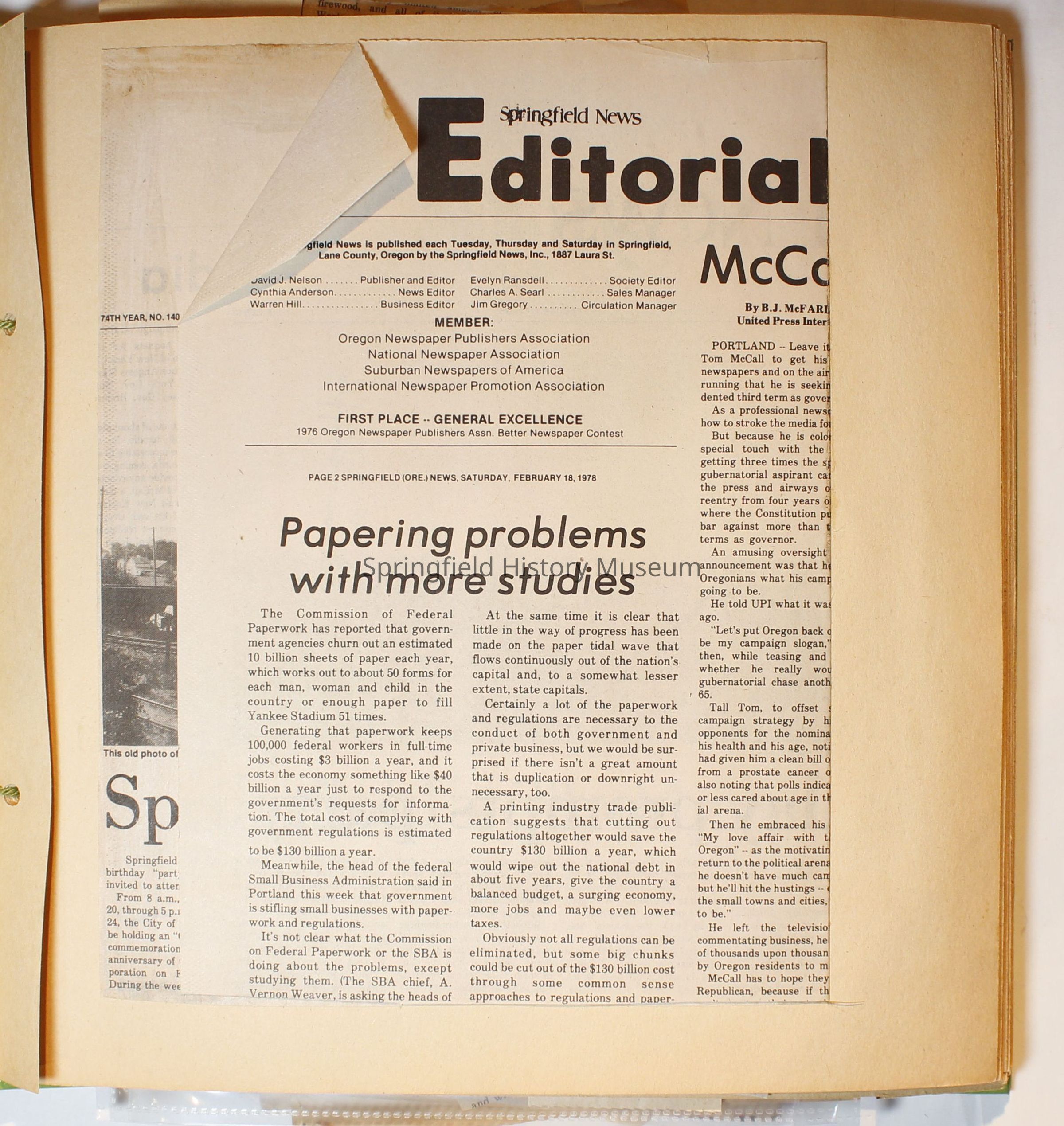 Scrapbook of the activities of the Springfield Historical Commission, circa 1977-79. Contains mostly newspaper clippings.