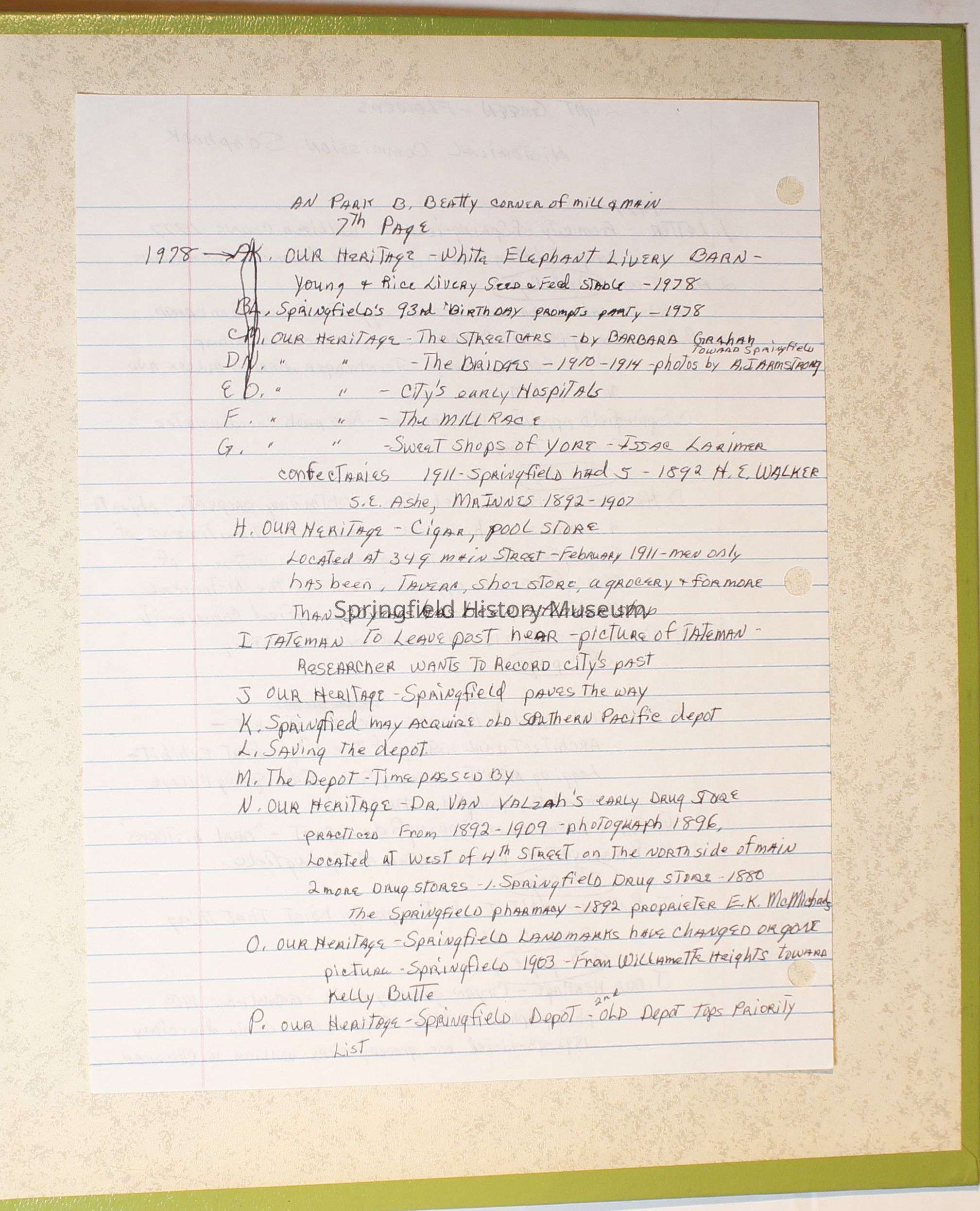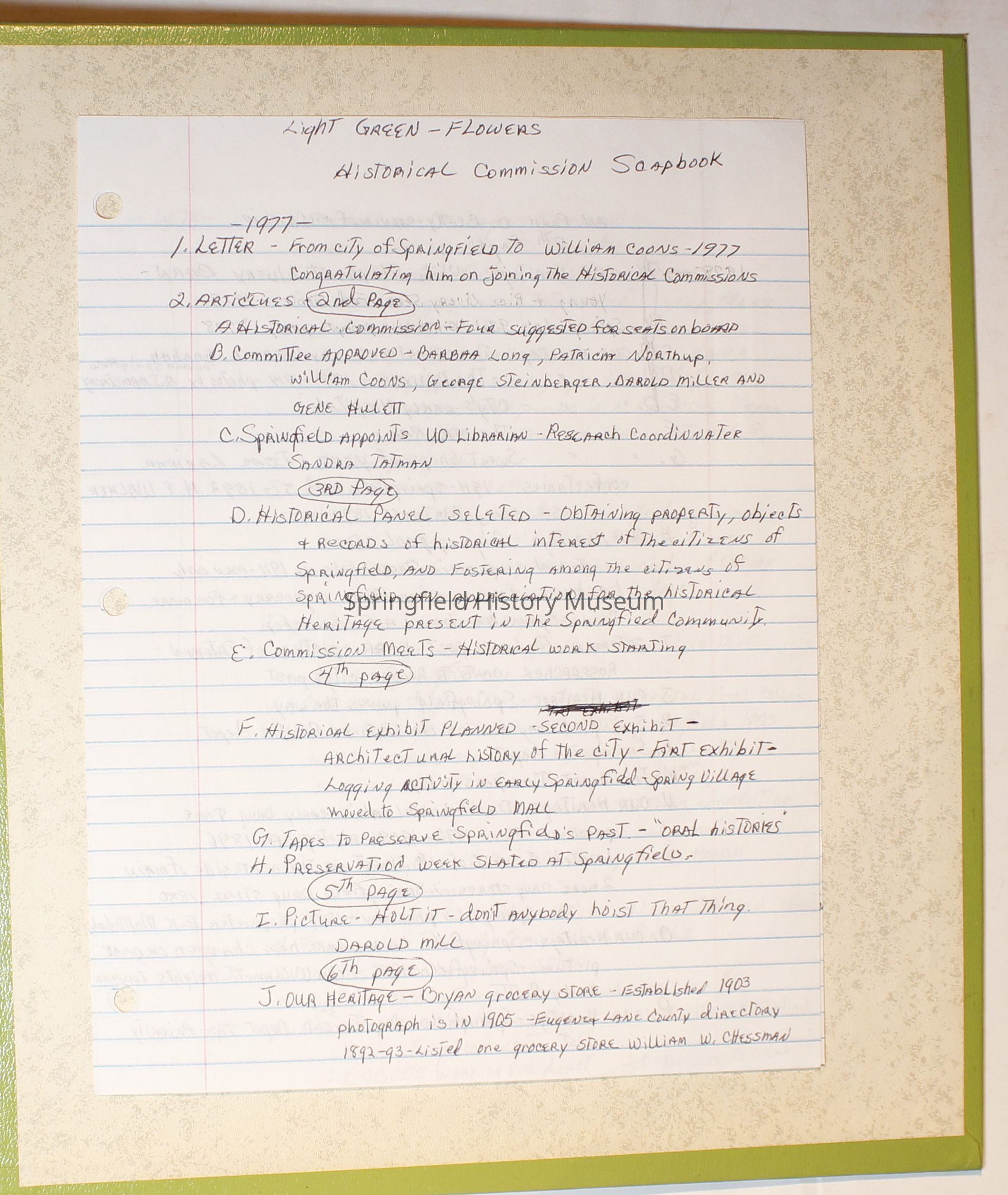 Scrapbook of the activities of the Springfield Historical Commission, circa 1977-79Entry/Object ID