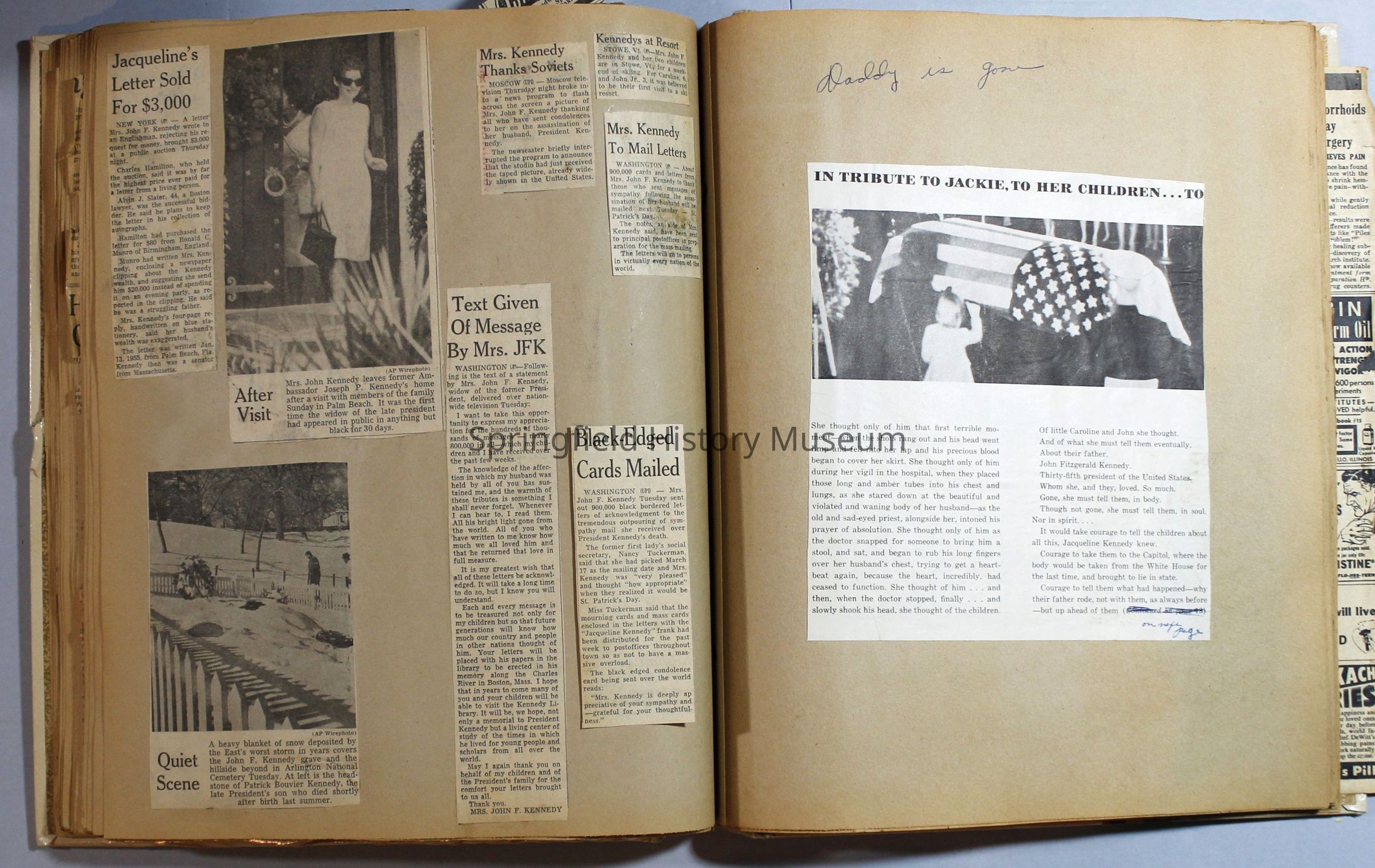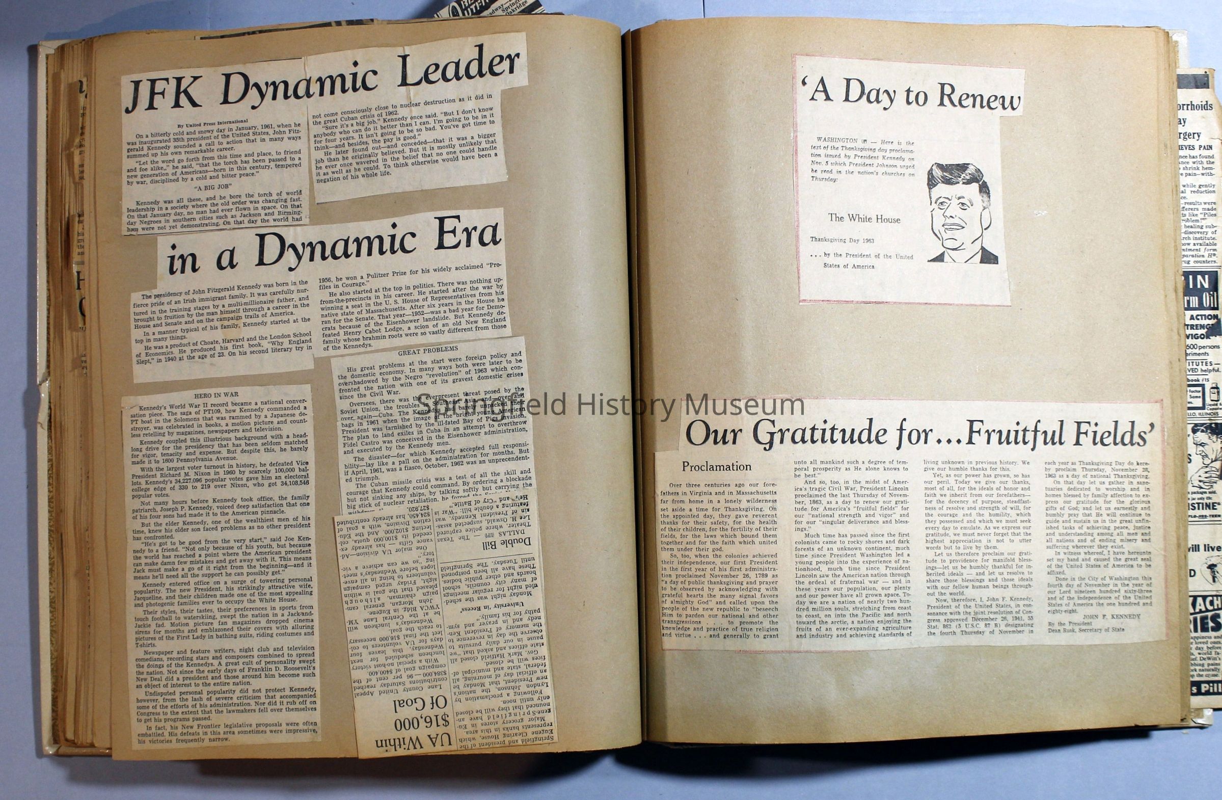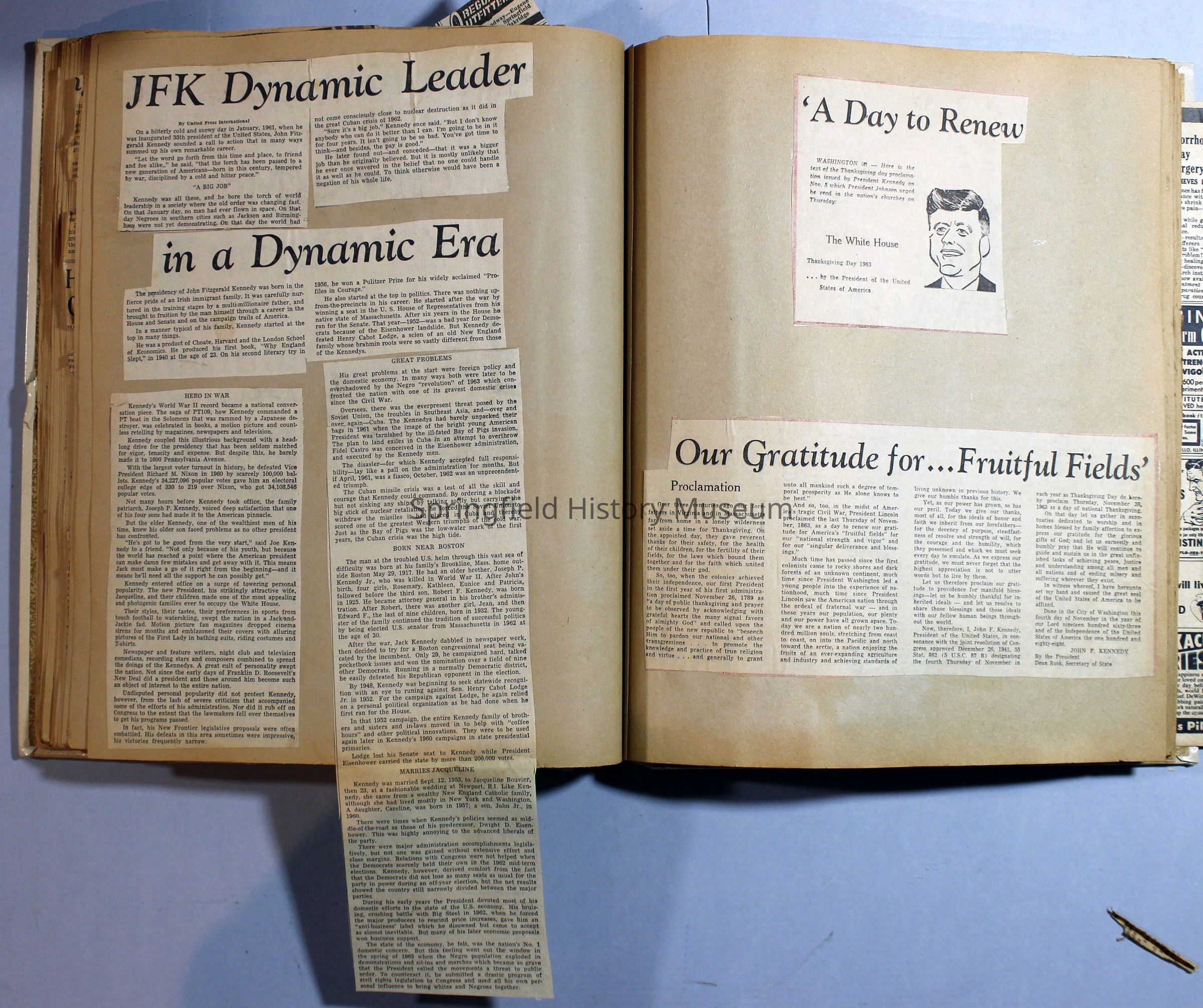 Scrapbook created and kept by Springfield resident Maxine Betty "Macky" Malkowski in 1963. The scrapbook was donated to the Museum by her daughter, Charlotte Kopple.